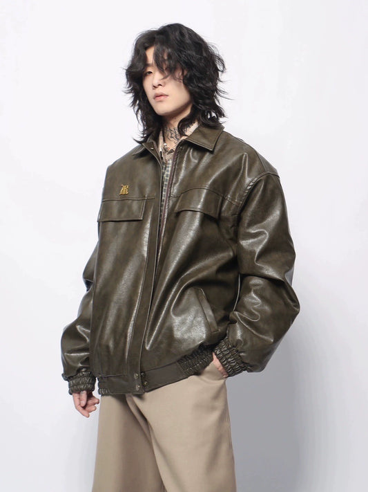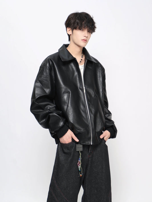 Lychee Texture PU Leather Zipper Jacket WN21022