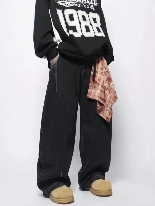 Washed Heavy Mix Design Wide Leg Denim Jeans WN21017