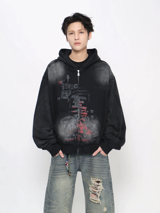Heavyweight Spray Paint Zipper Hoodie WN21021