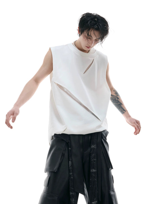 Fake Fur Splice PU Leather Deconstructed Wide Leg Pants WN22620