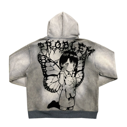 Anime Design Artistic Print Washed Zipper Hoodie WN18749