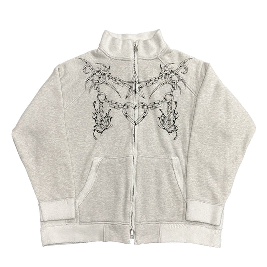Neckline Print Washed Artistic Design Zipper Hoodie WN18746