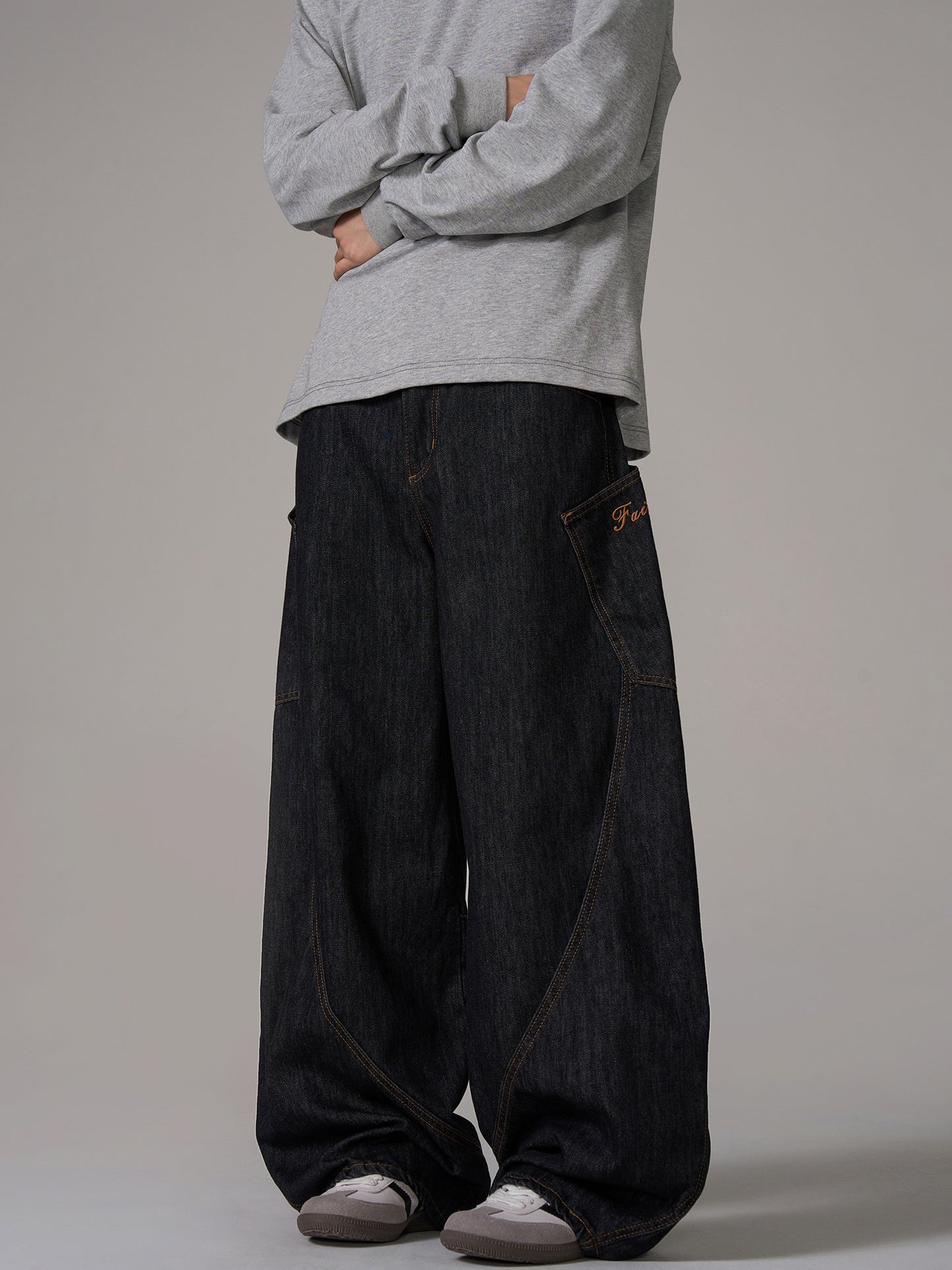Washed Wide-Leg Baggy Denim Jeans WN10638