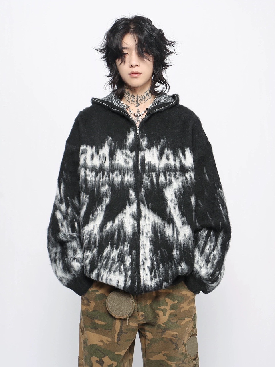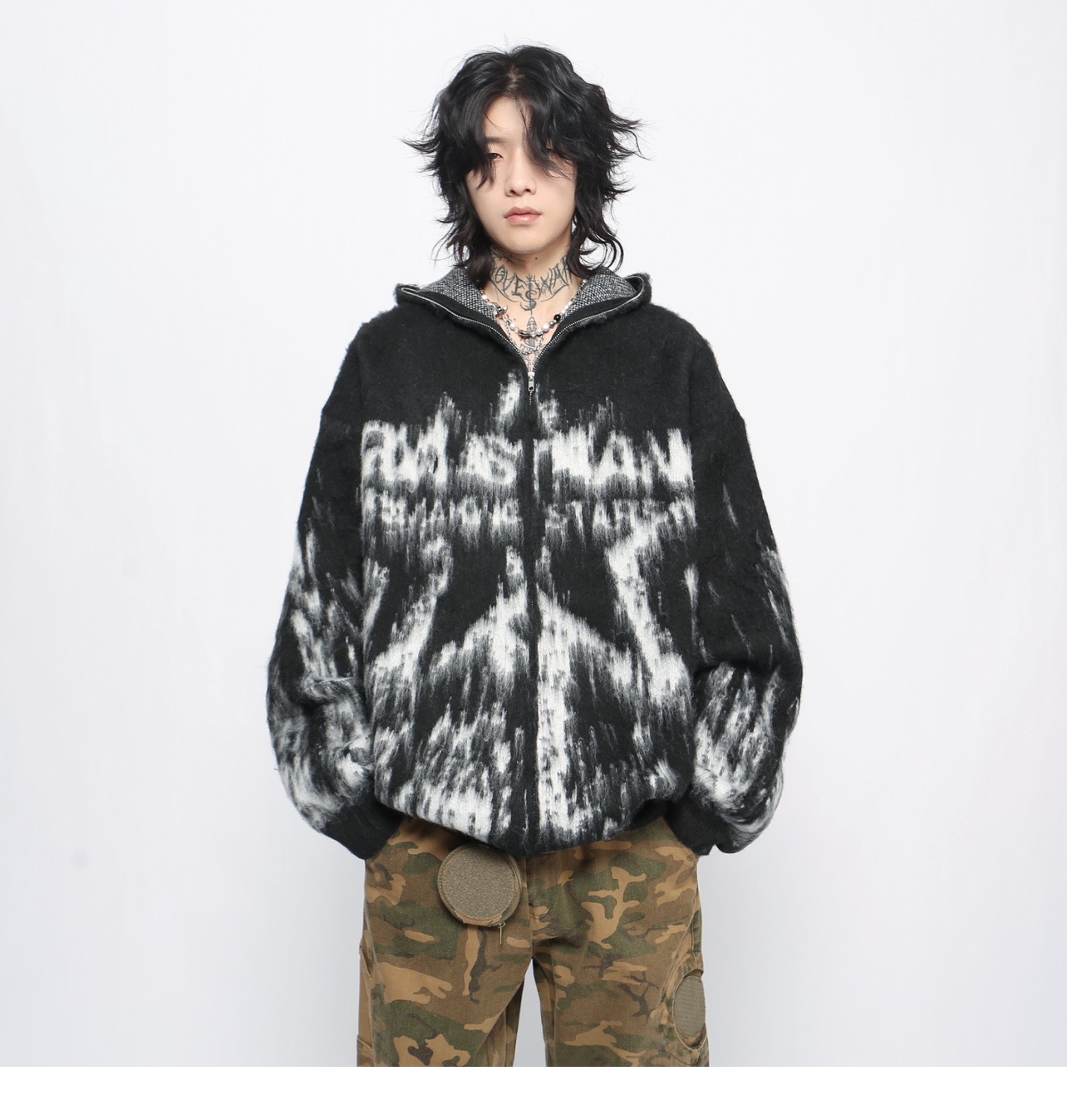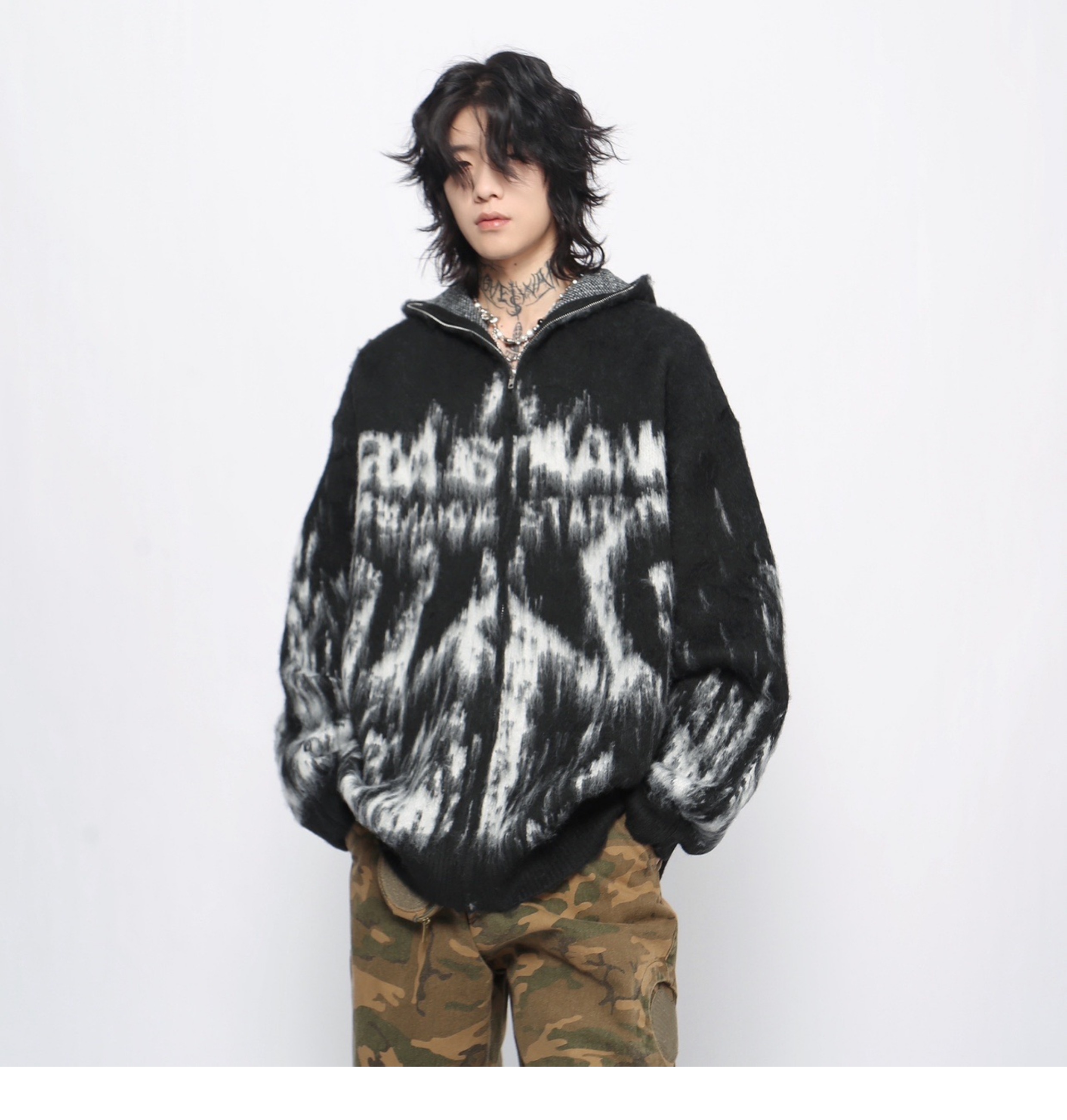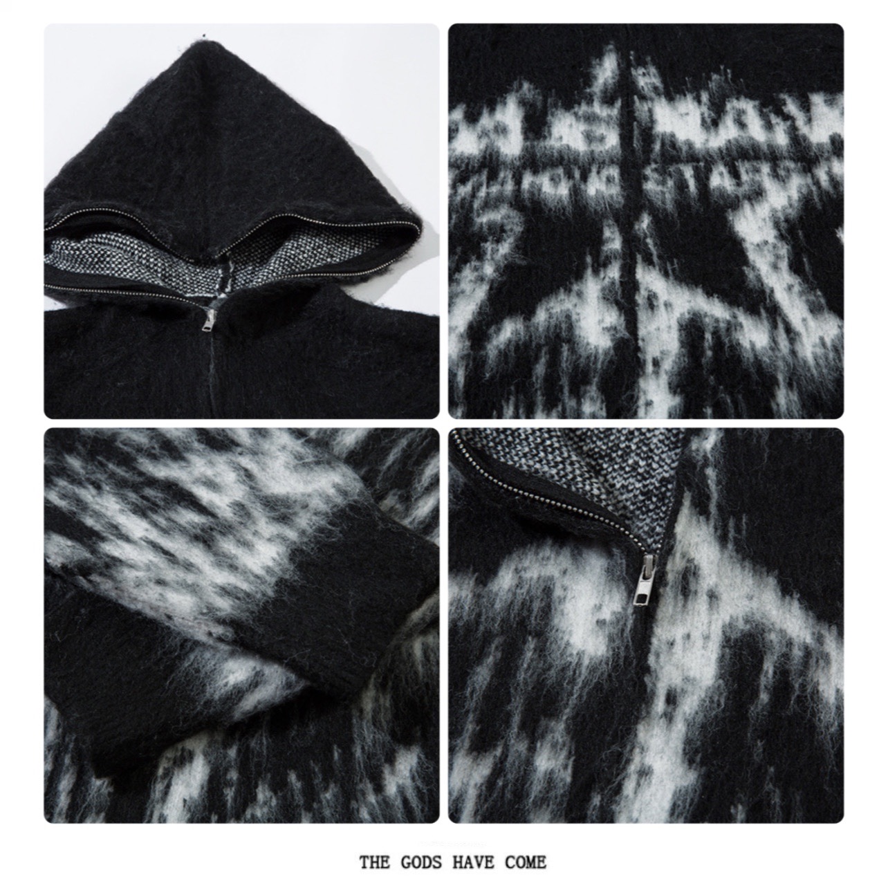 Oversize Shaggy Hooded Knit Cardigan WN10922