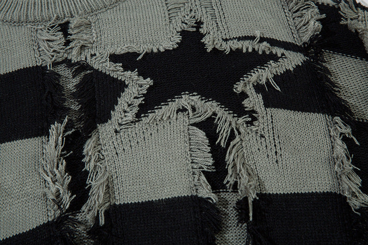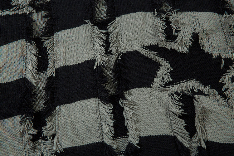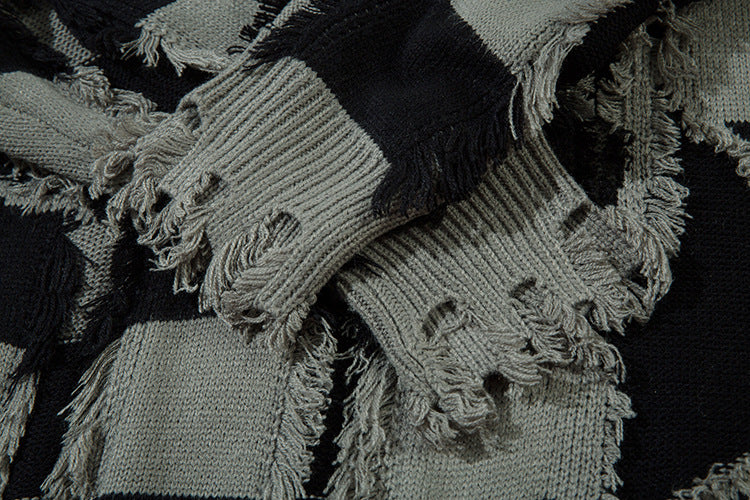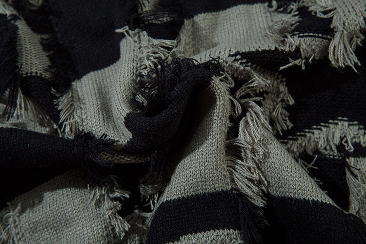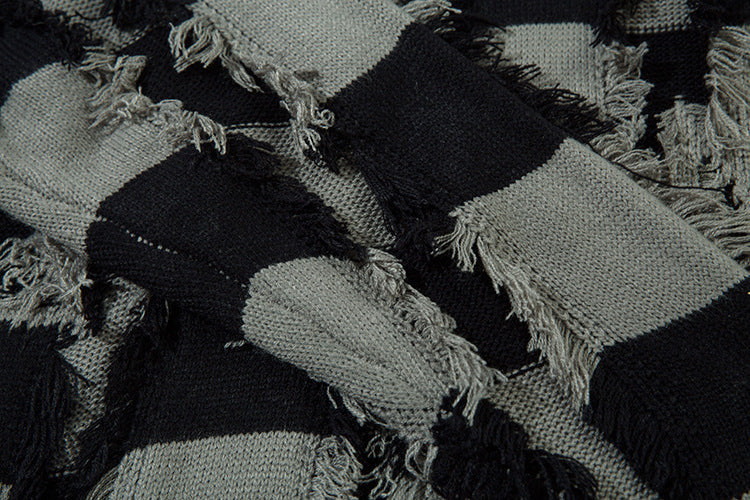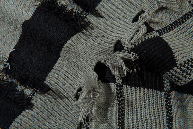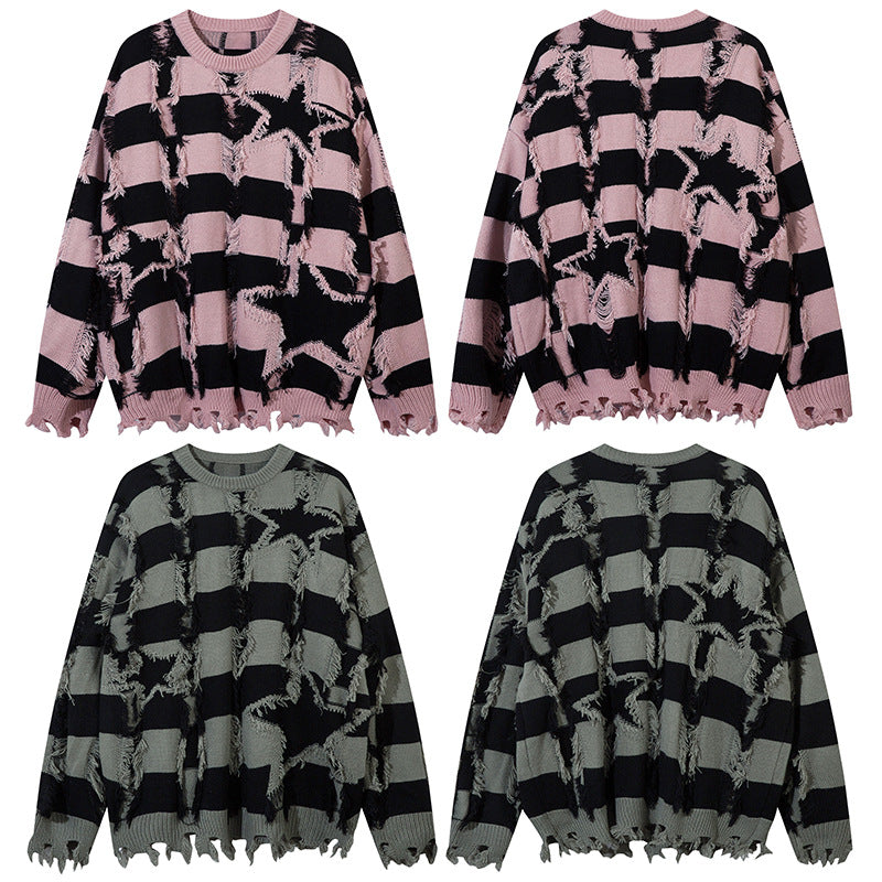 Damage Hem Colorblock Striped Knit Sweater WN11454