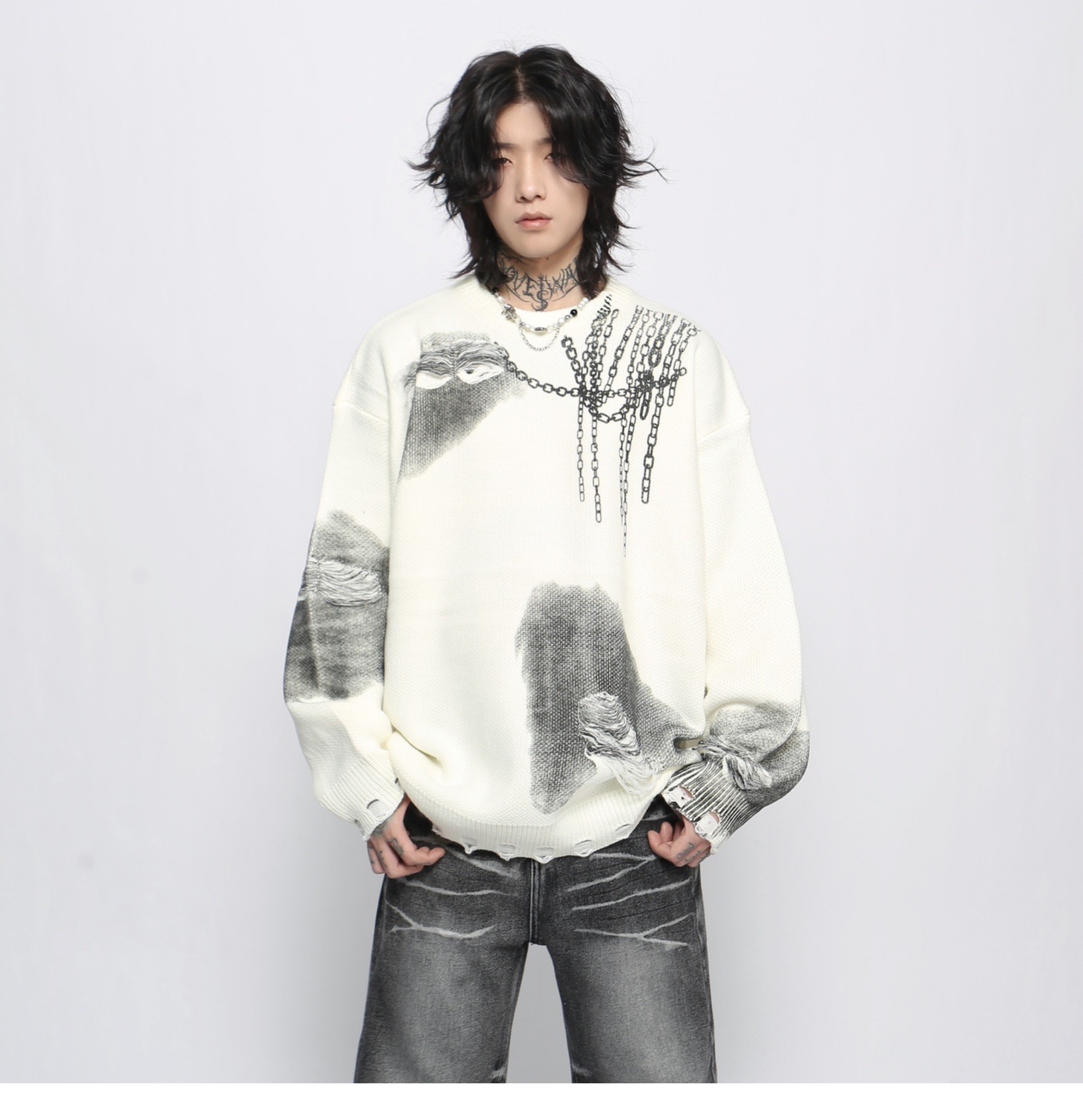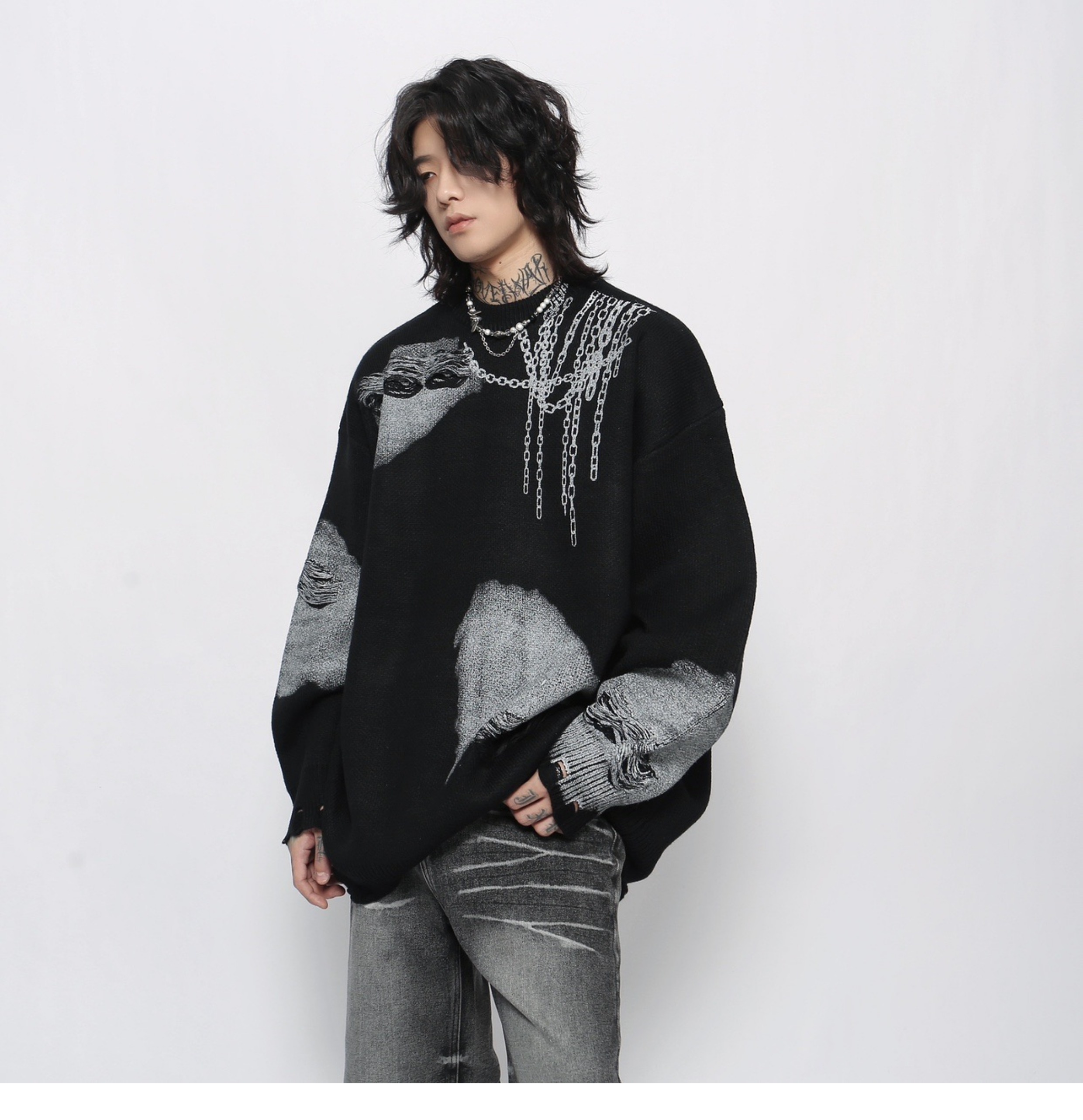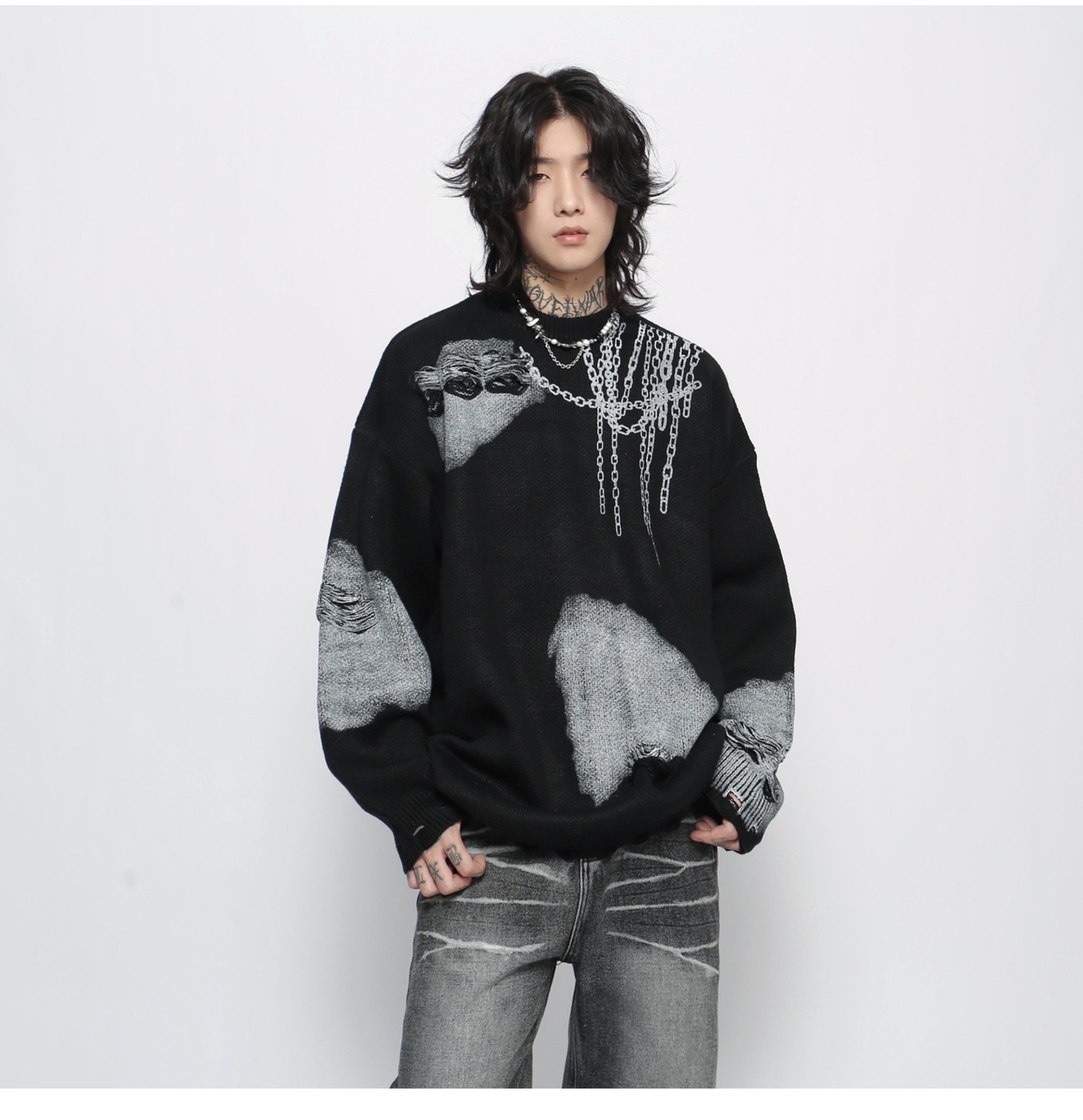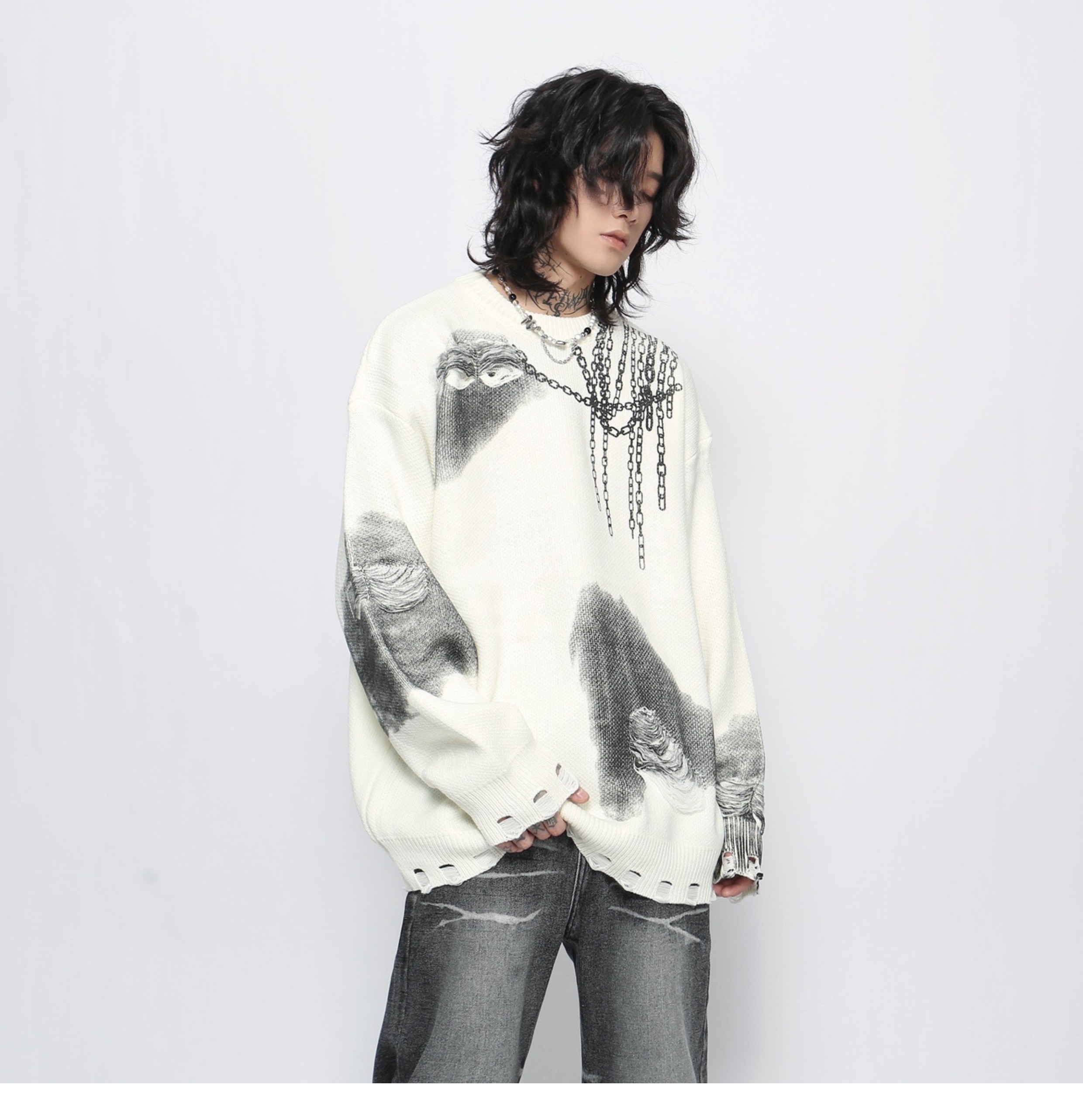 Jacquard Oversize Pullover Knit Sweater WN13151