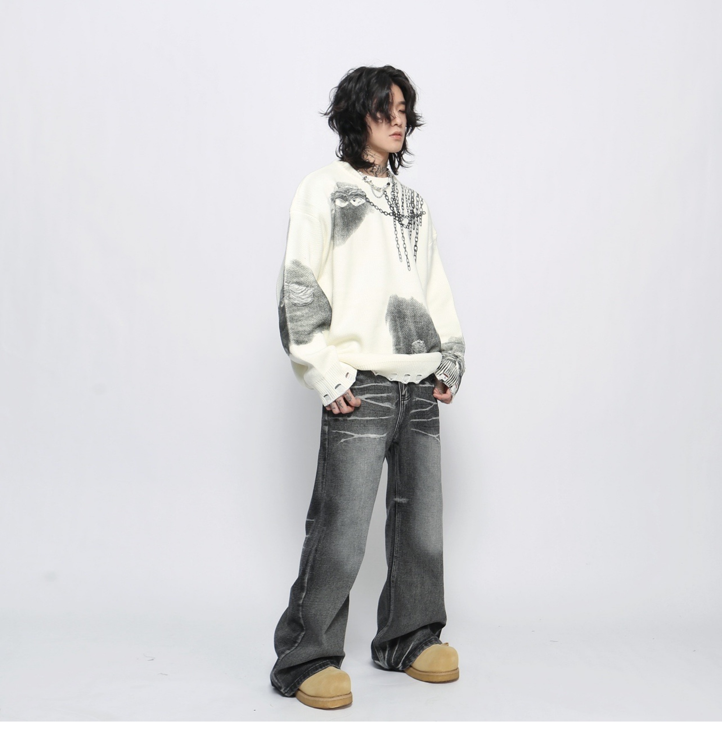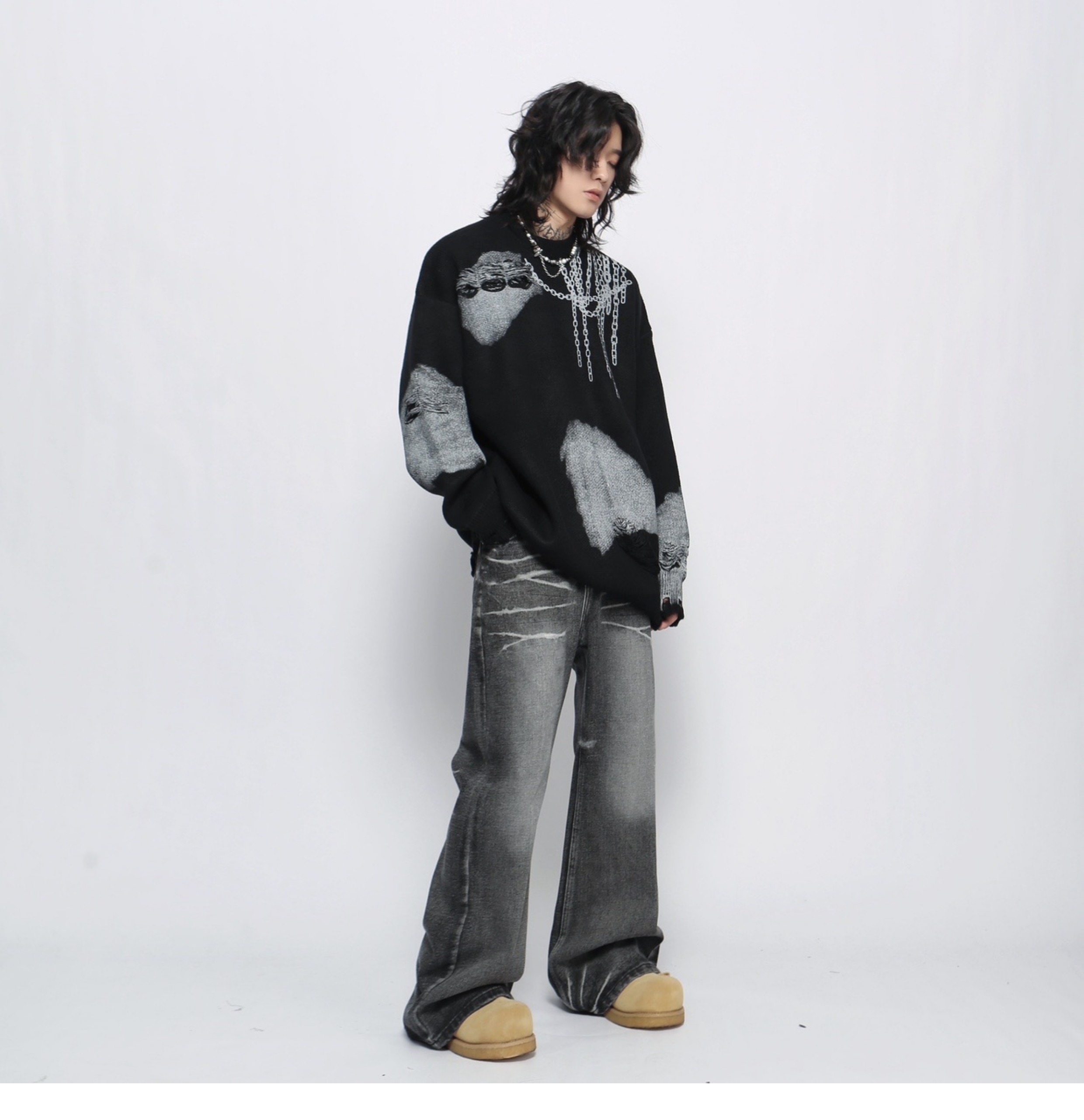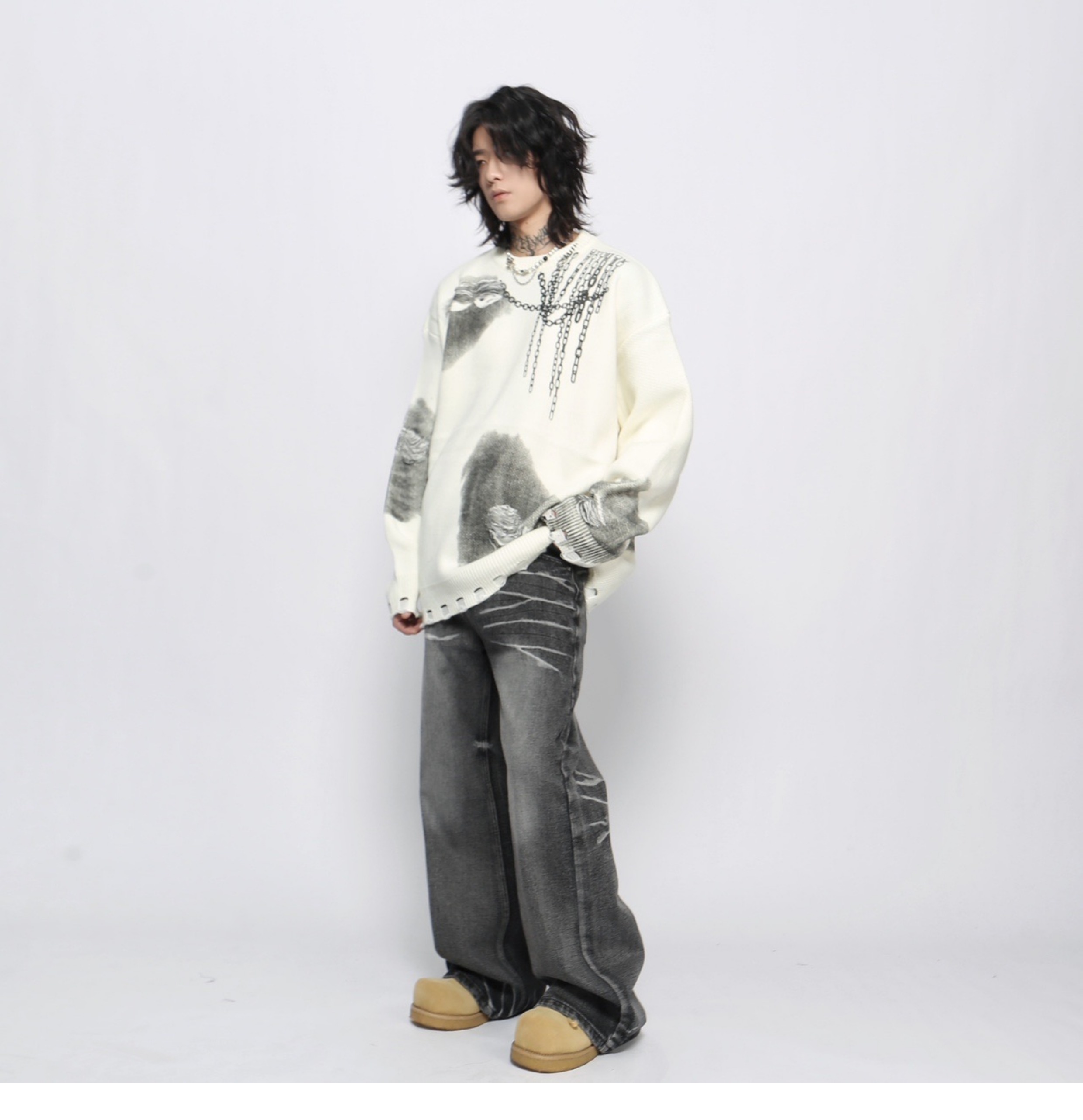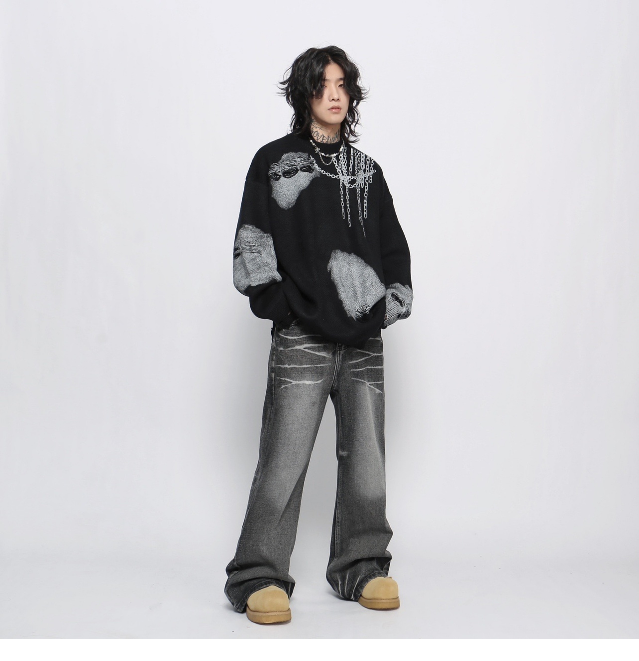 Jacquard Oversize Pullover Knit Sweater WN13151