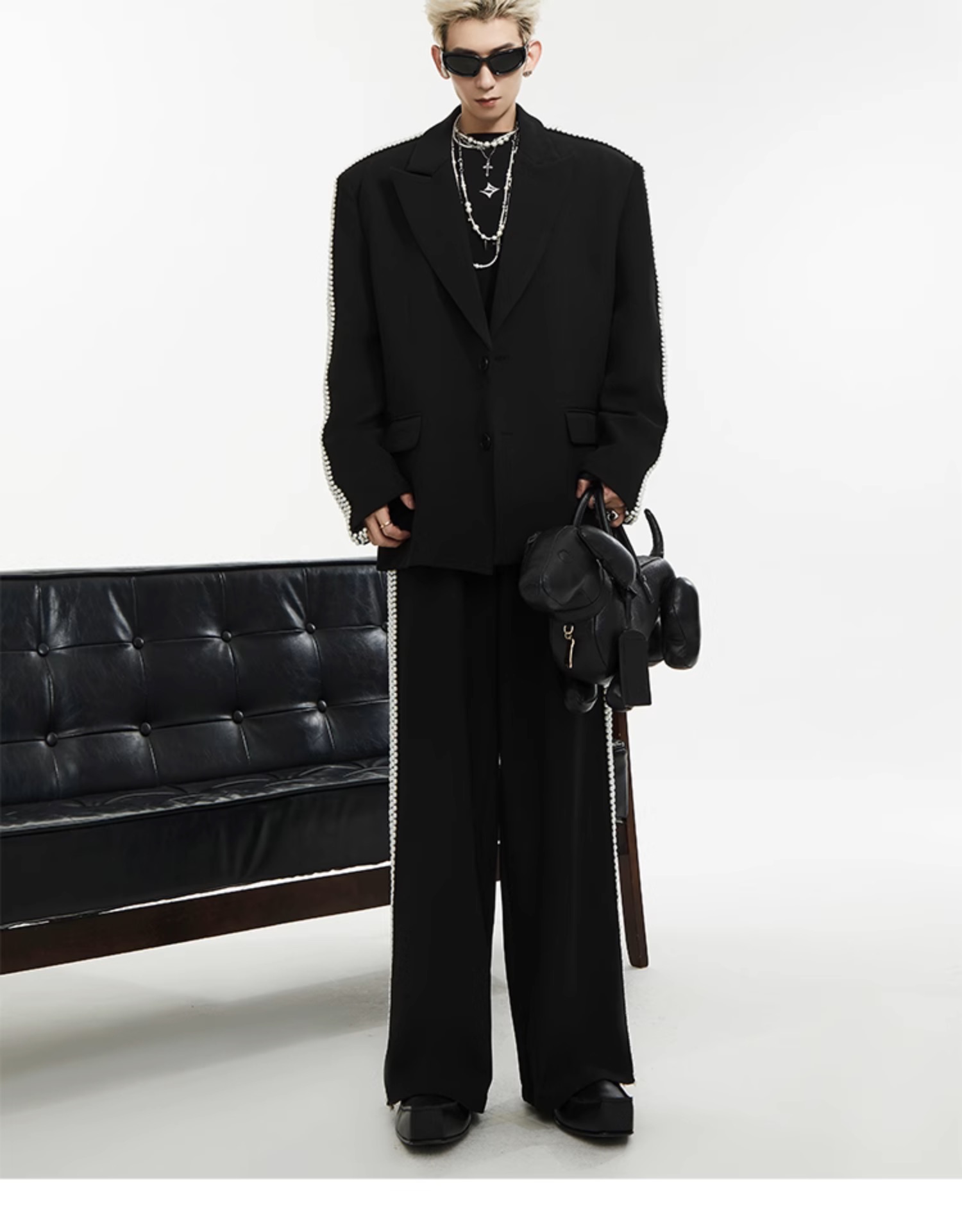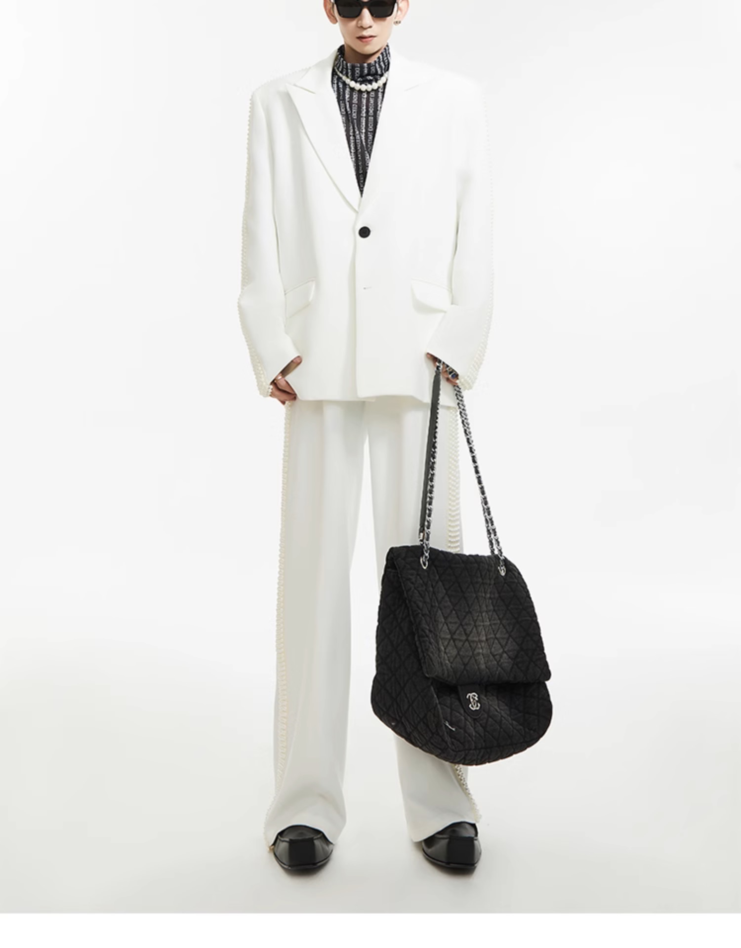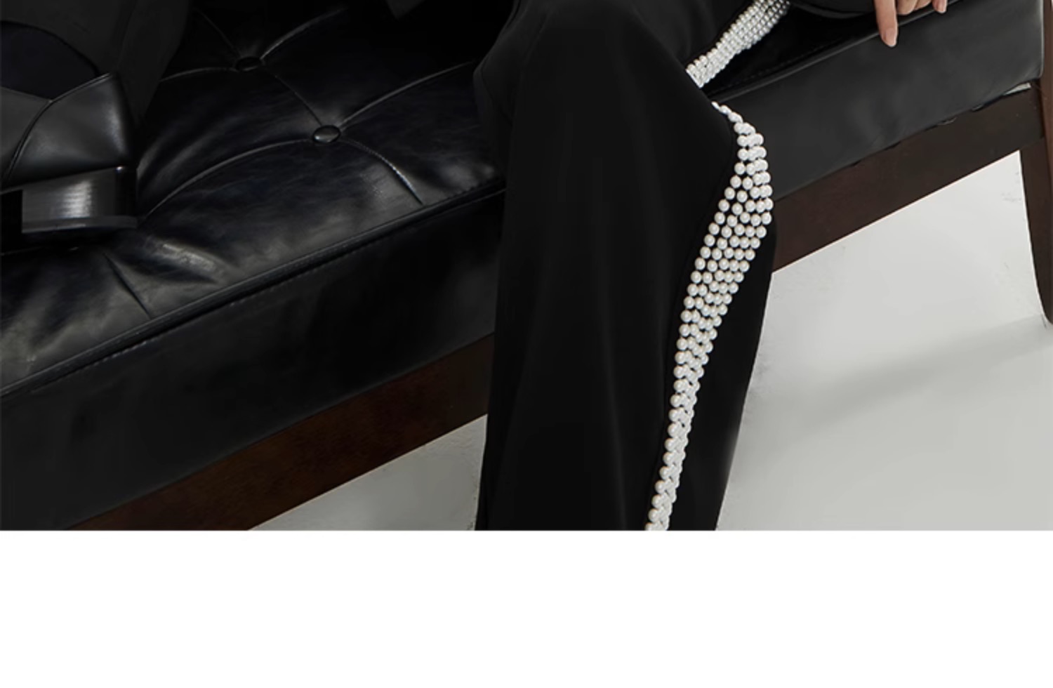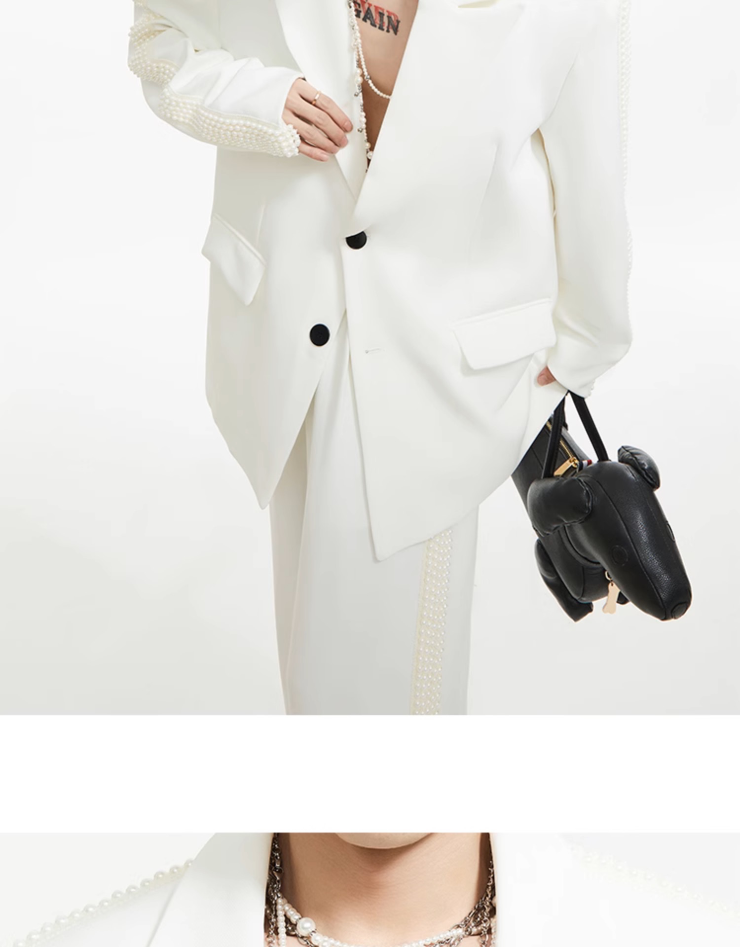 Pearl Detail Shoulder-pad Tailored Jacket & Draping Wide Leg Trousers Setup WN15447