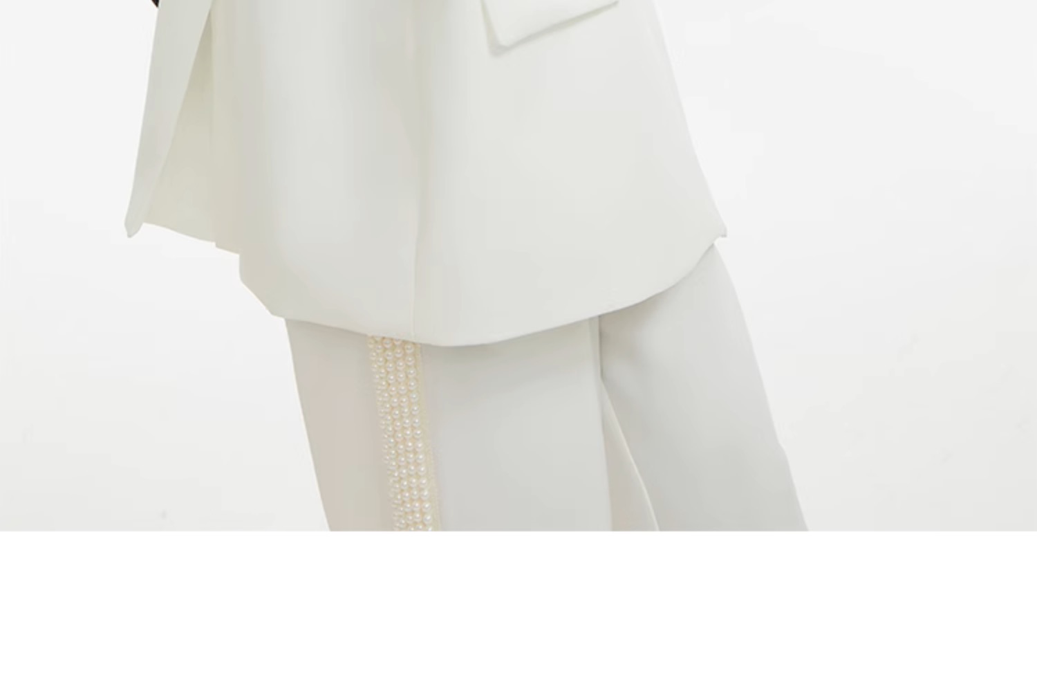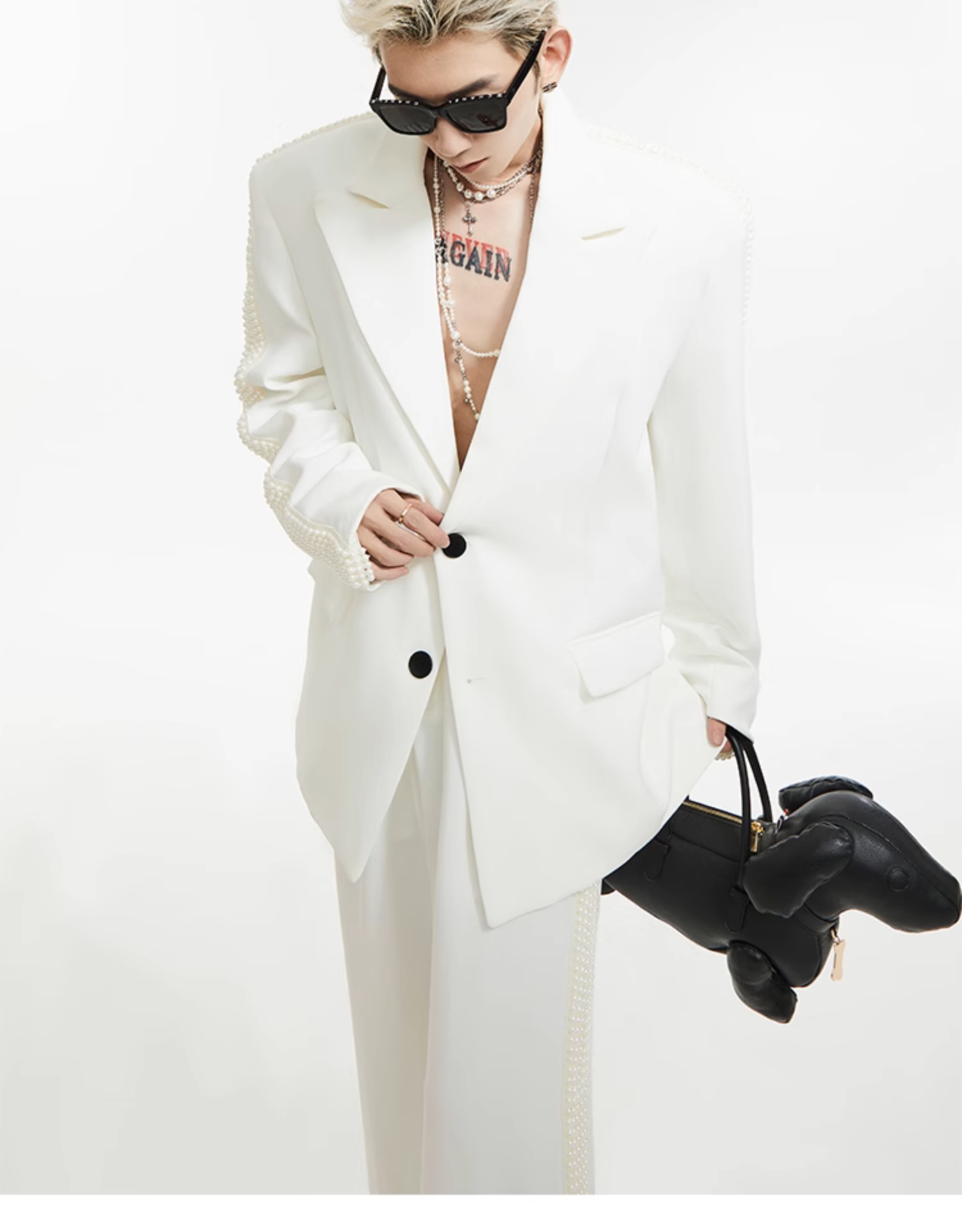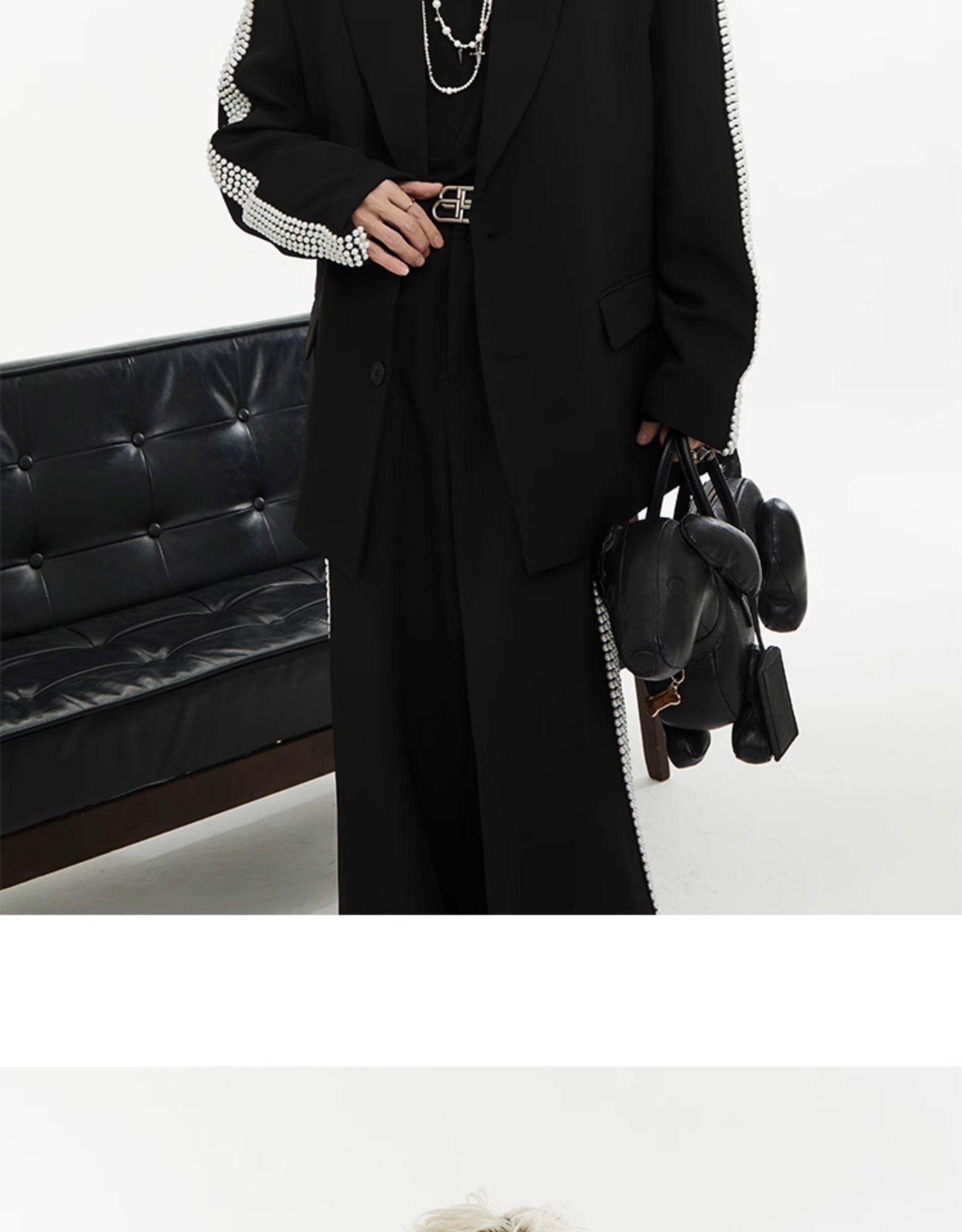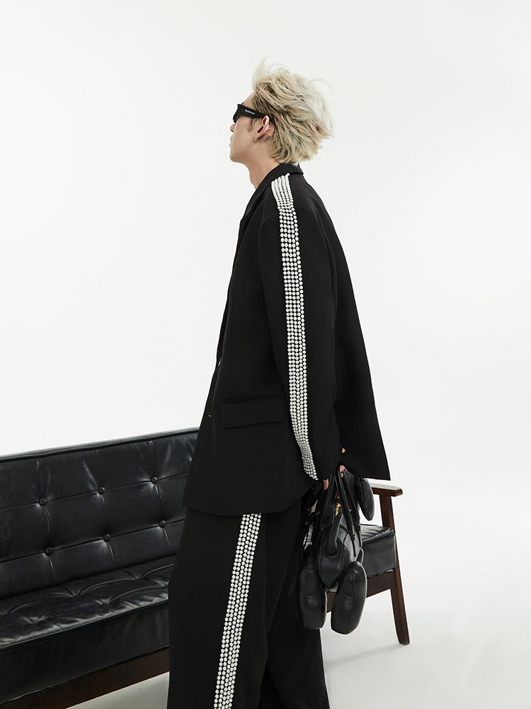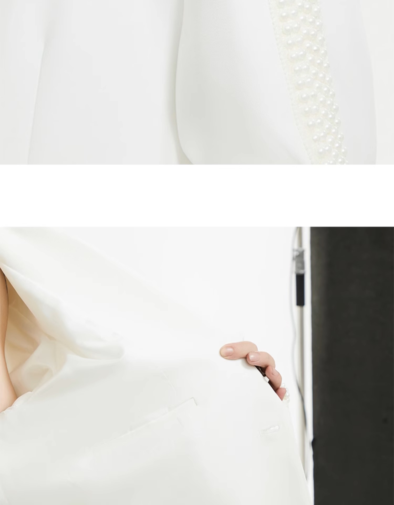Pearl Detail Shoulder-pad Tailored Jacket & Draping Wide Leg Trousers Setup WN15447