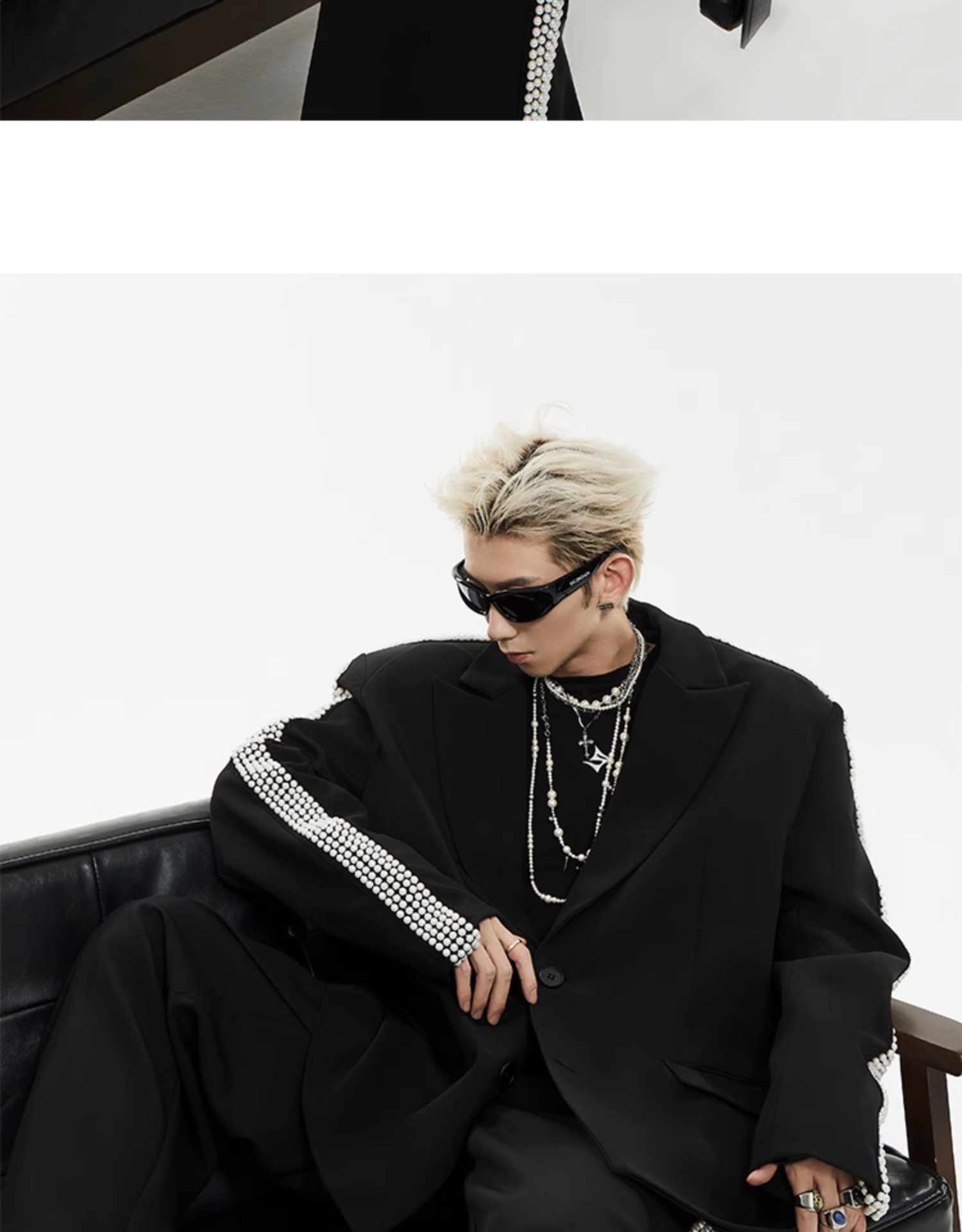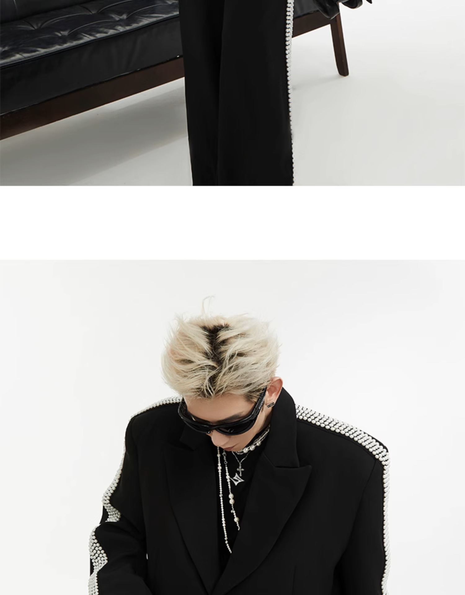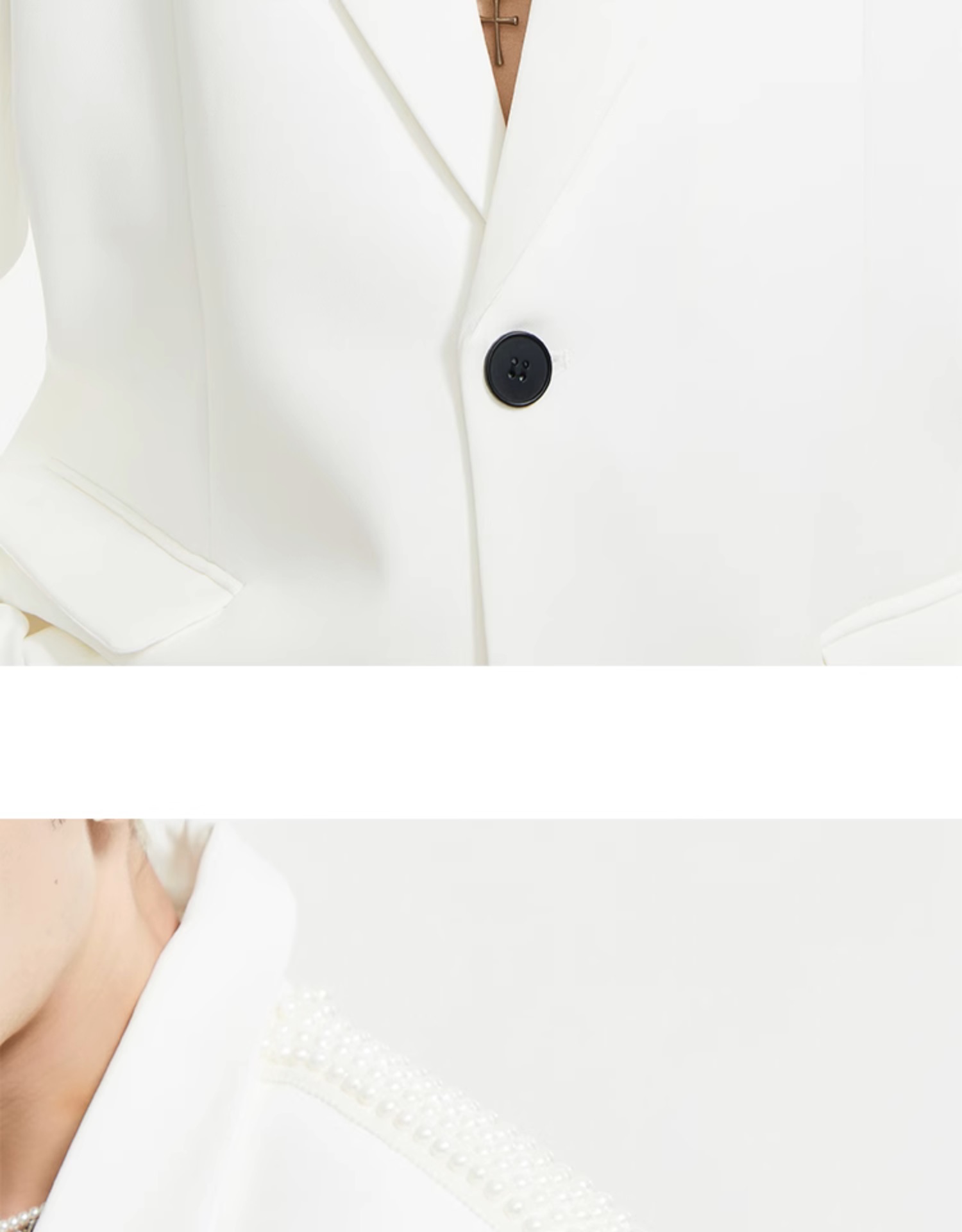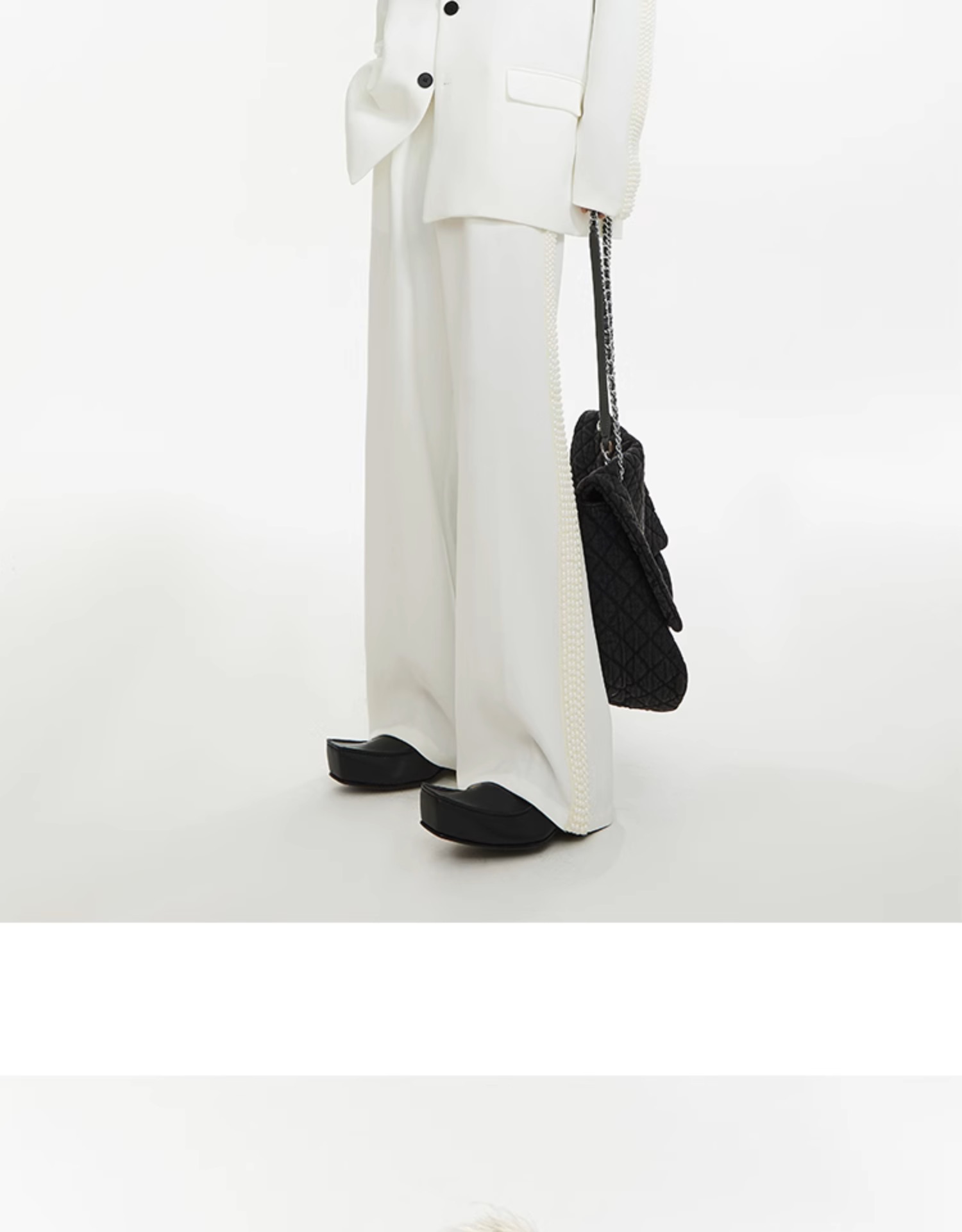 Pearl Detail Shoulder-pad Tailored Jacket & Draping Wide Leg Trousers Setup WN15447