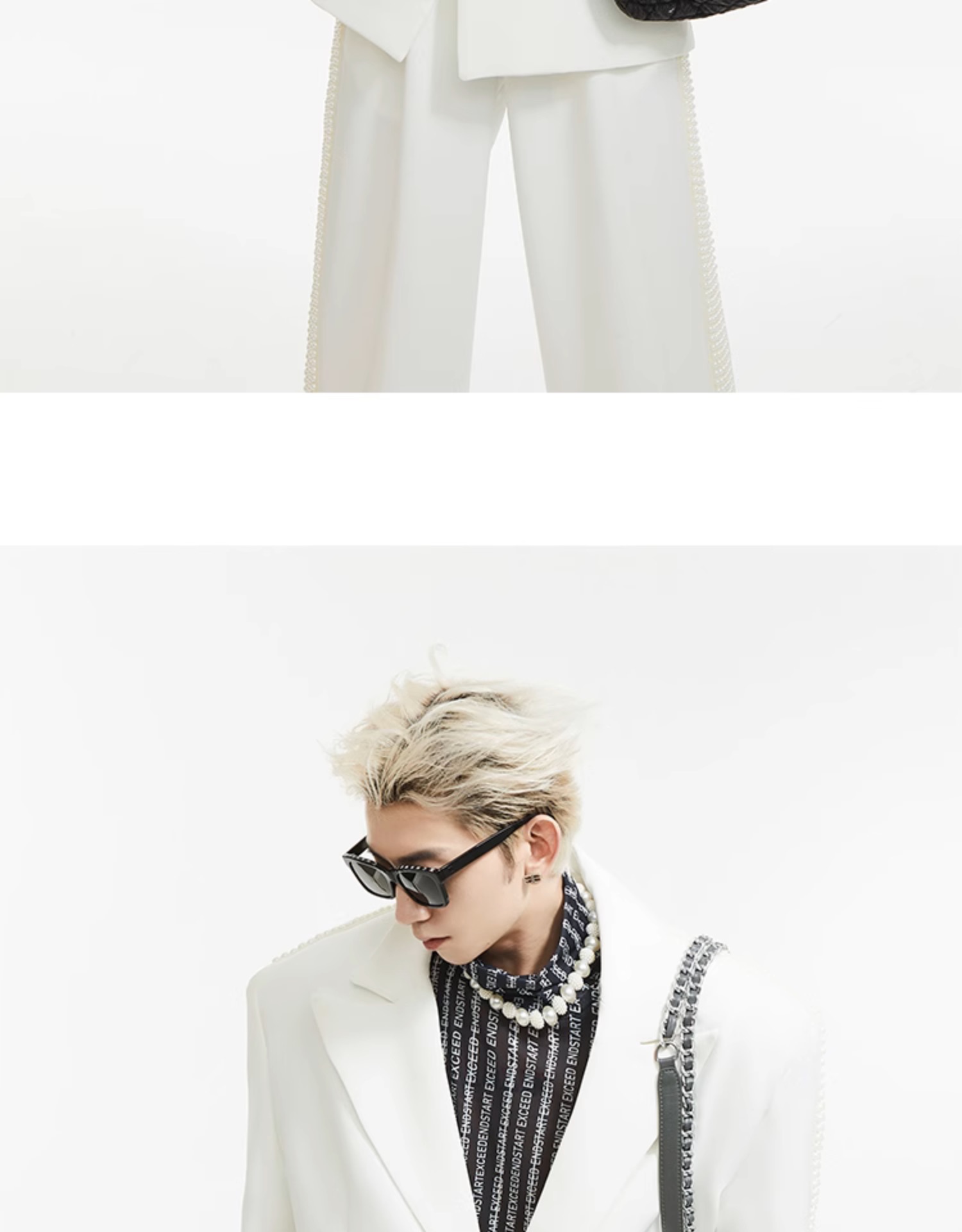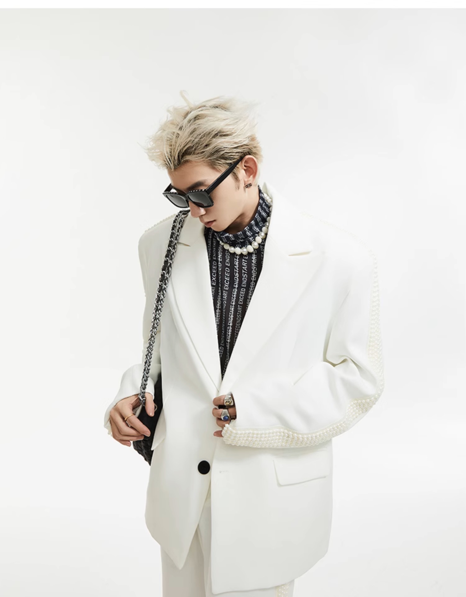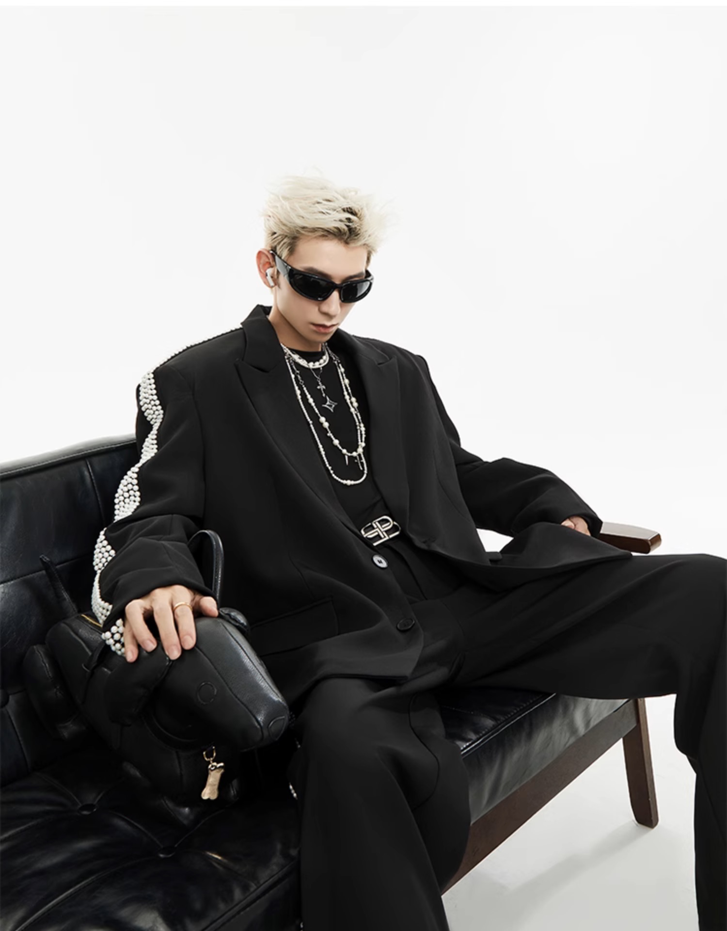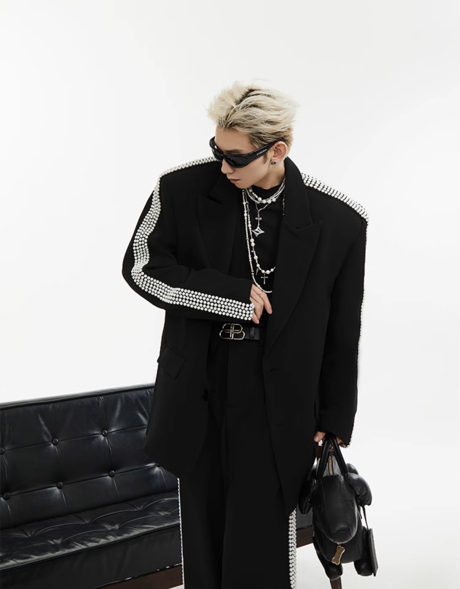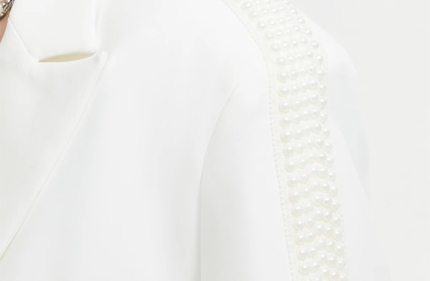 Pearl Detail Shoulder-pad Tailored Jacket & Draping Wide Leg Trousers Setup WN15447