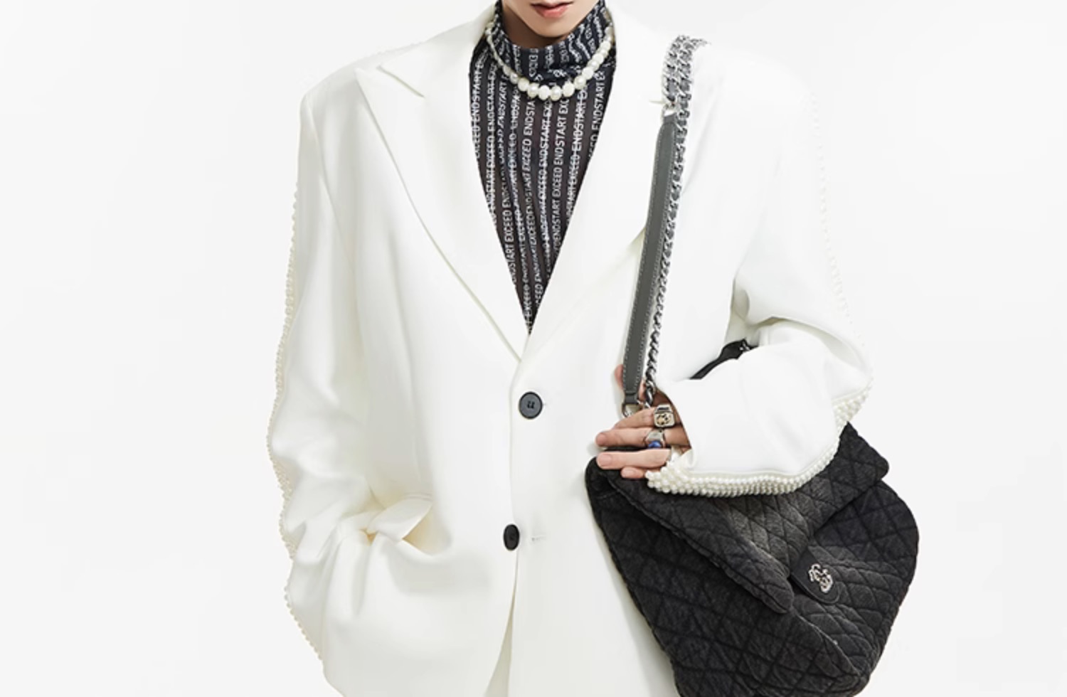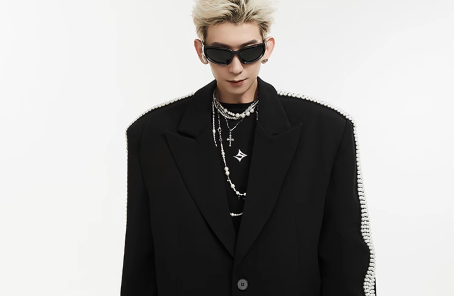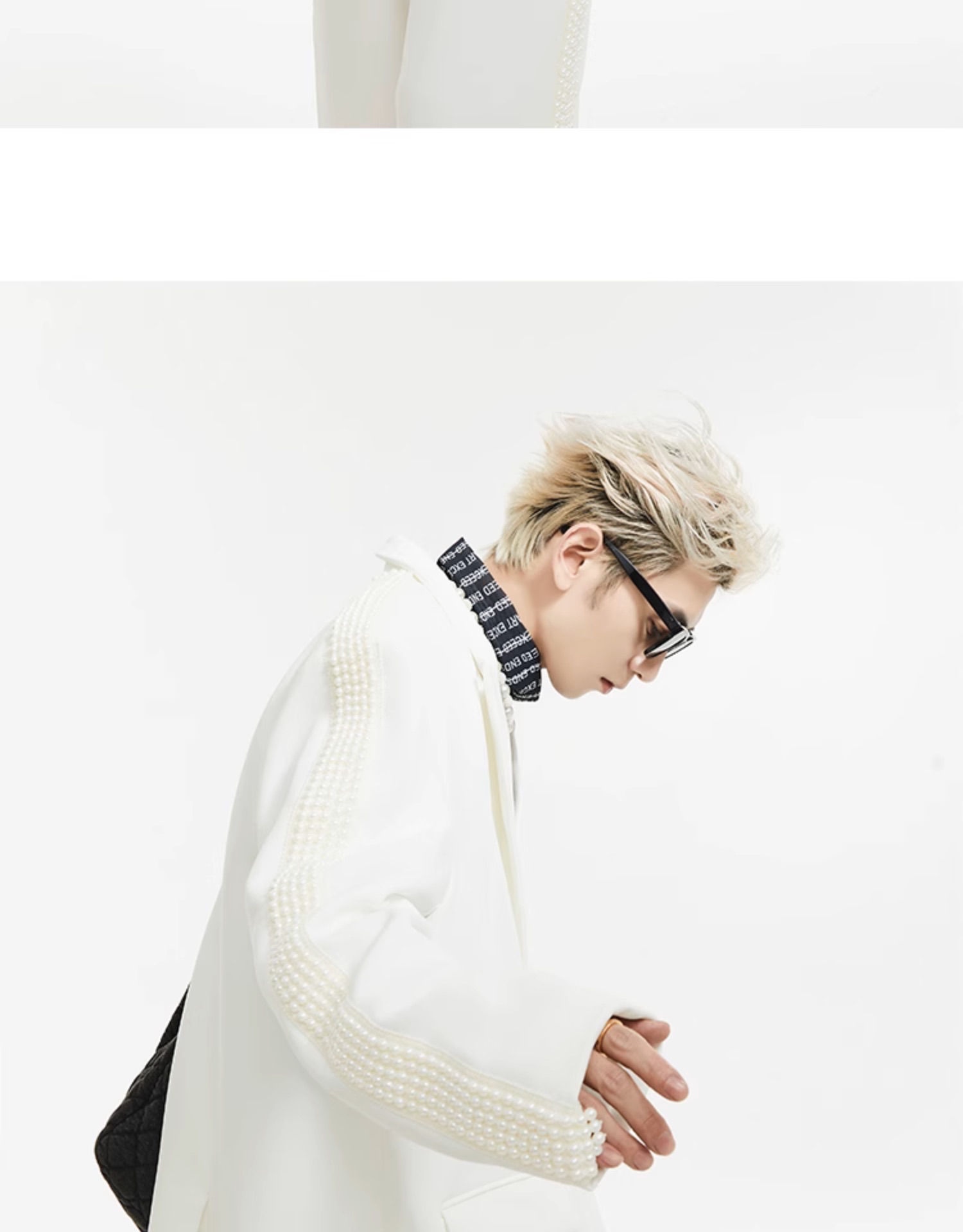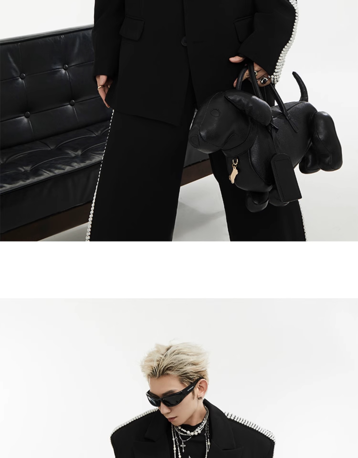 Pearl Detail Shoulder-pad Tailored Jacket & Draping Wide Leg Trousers Setup WN15447