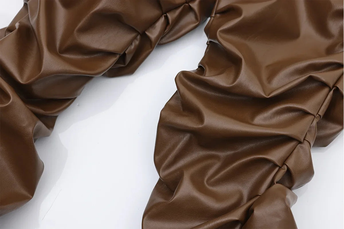 Wrinkle PU Leather Straight Pants WN16104