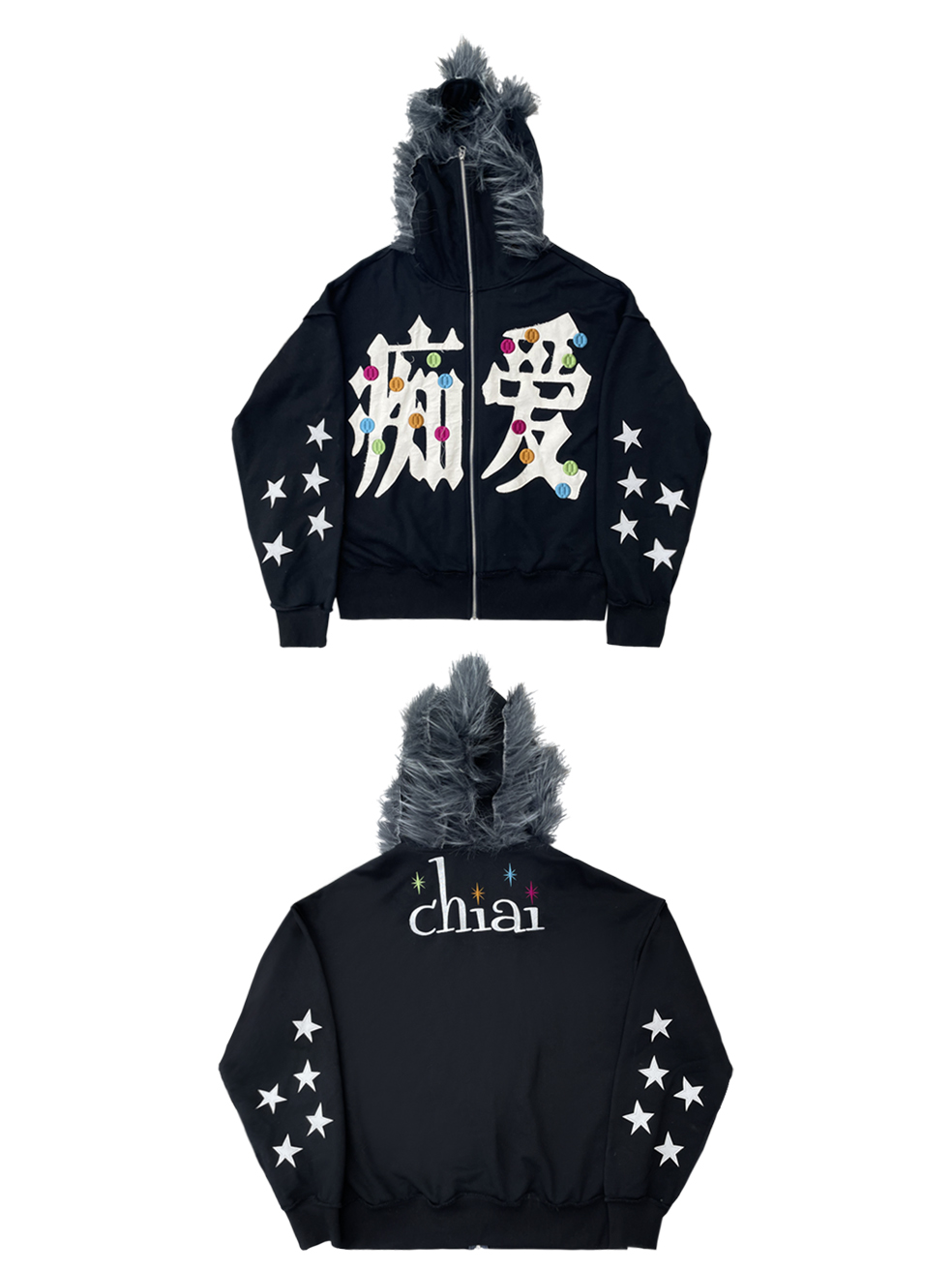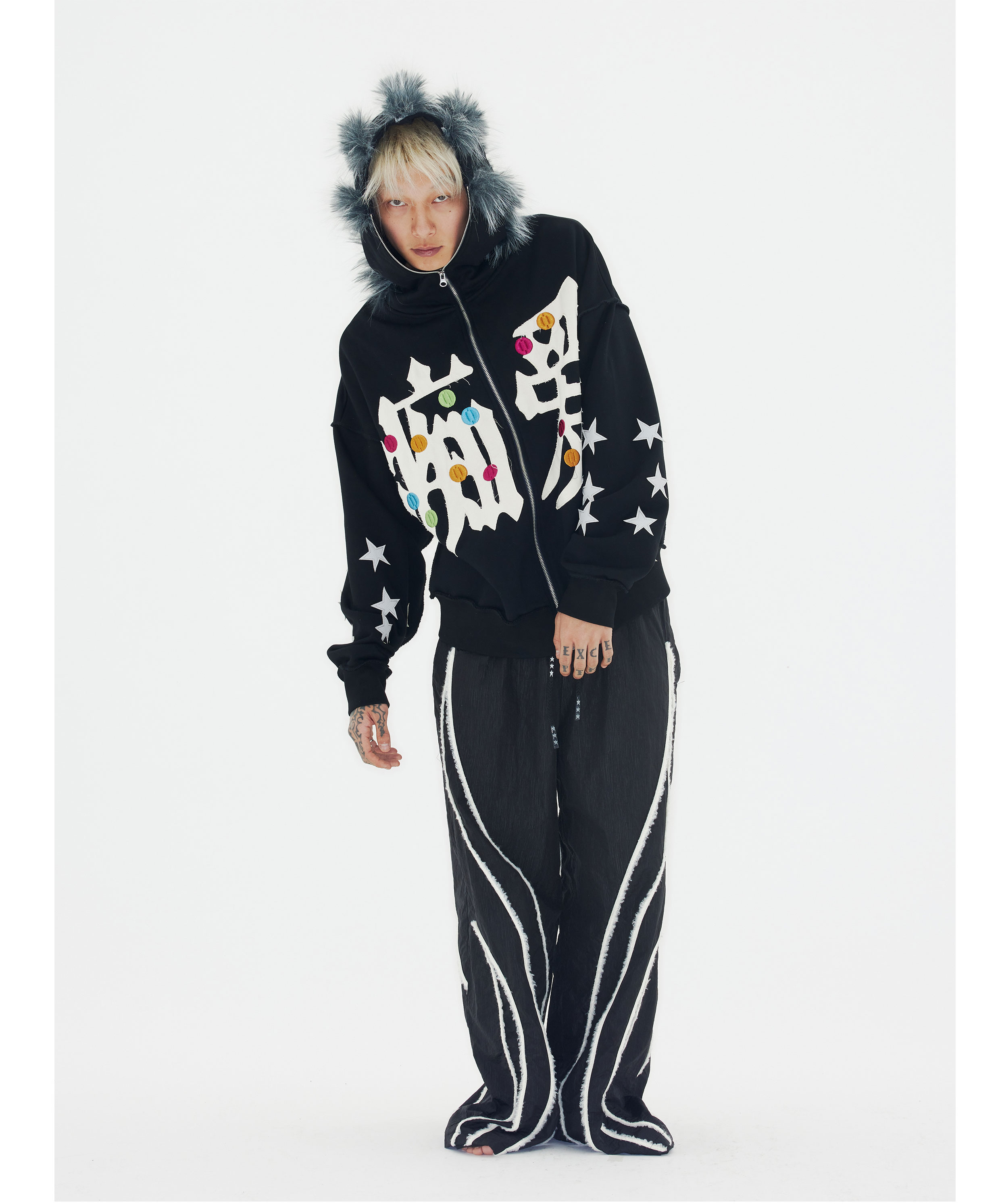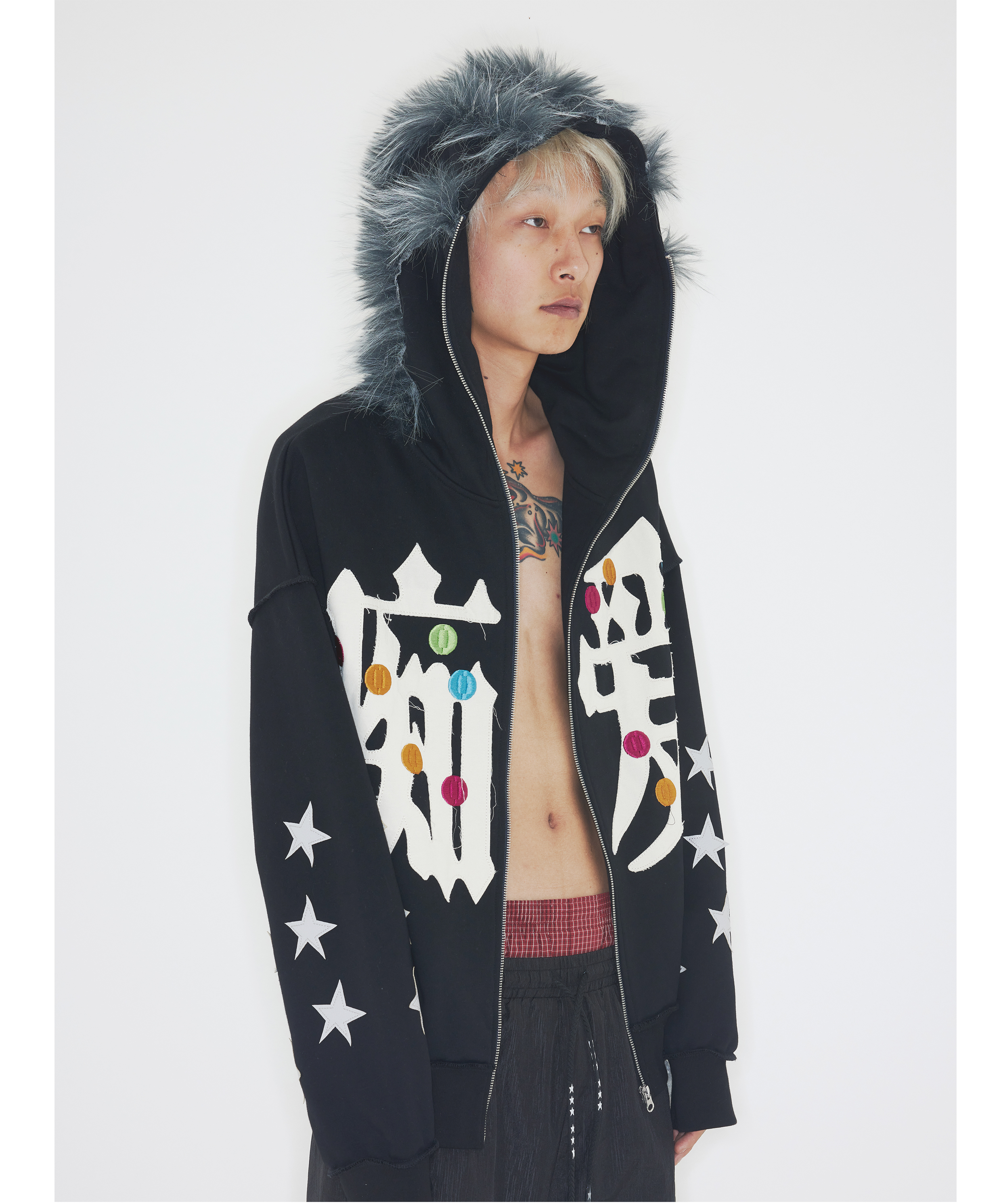 Embroidery Letter Design Hooded Zipper Jacket WN19104