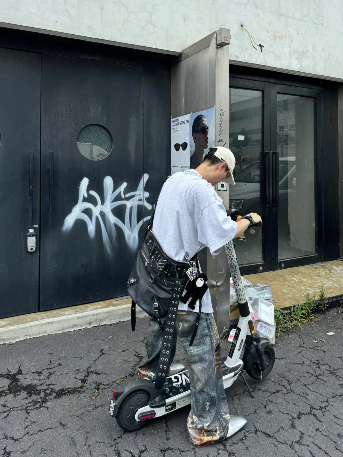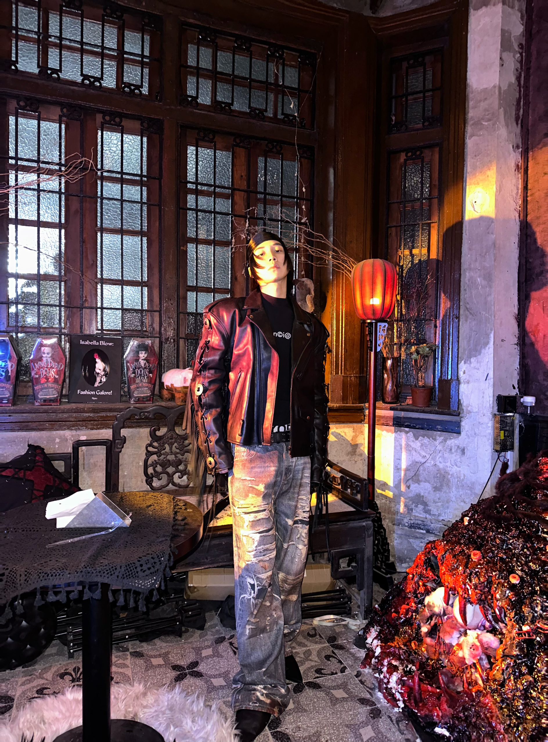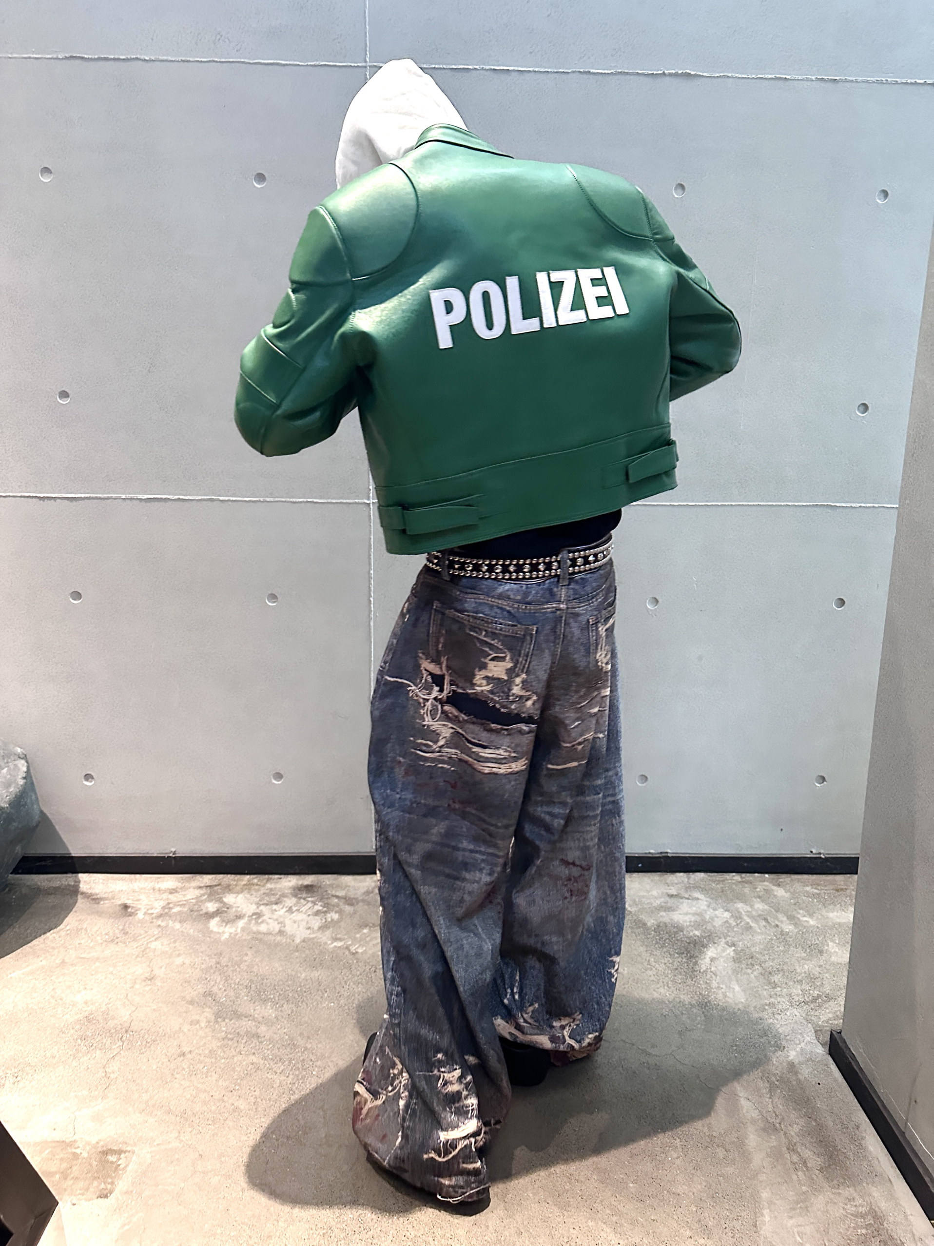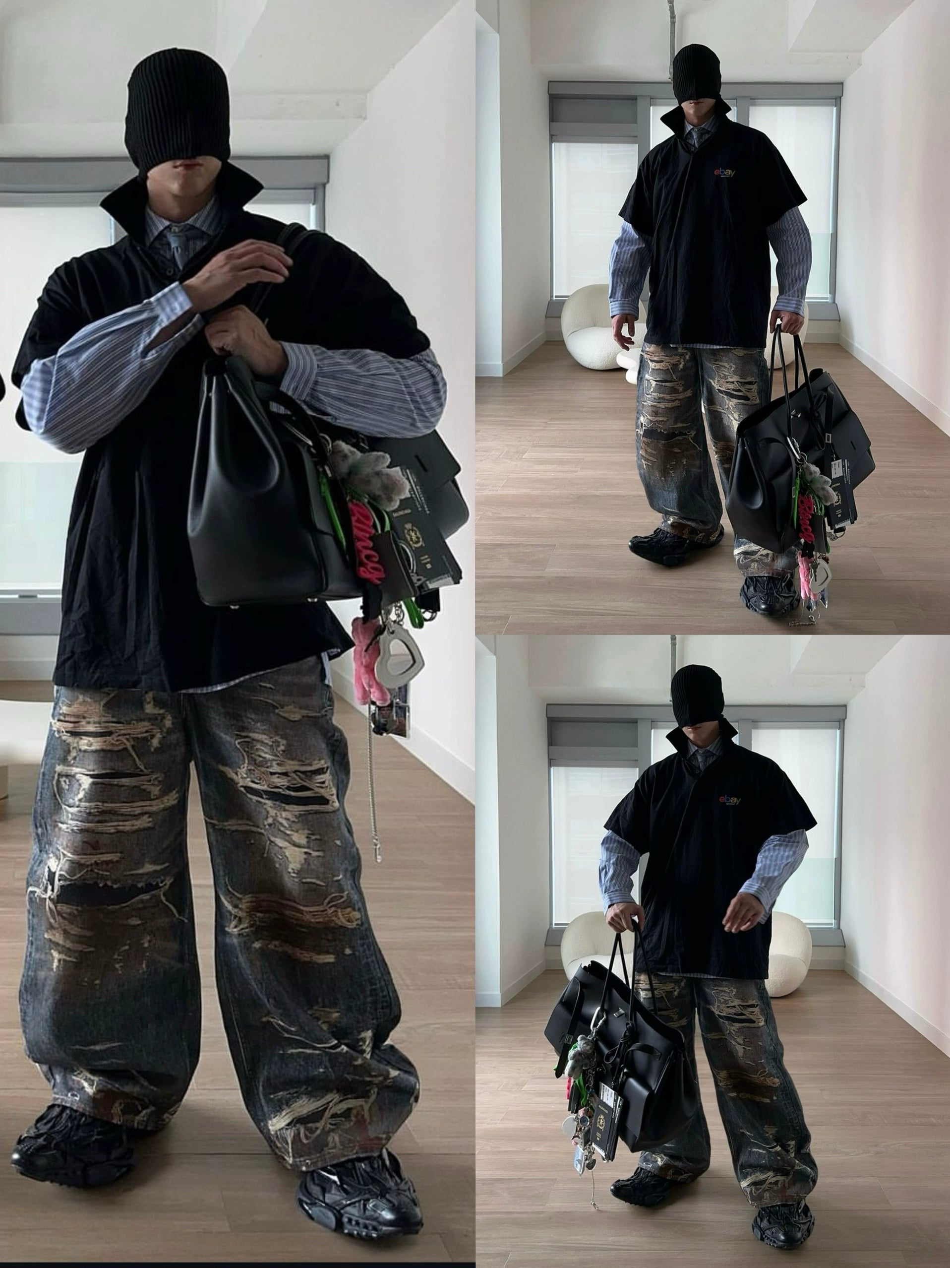 Washed Dirty Stain Damage Digital Print Denim Jeans WN19686