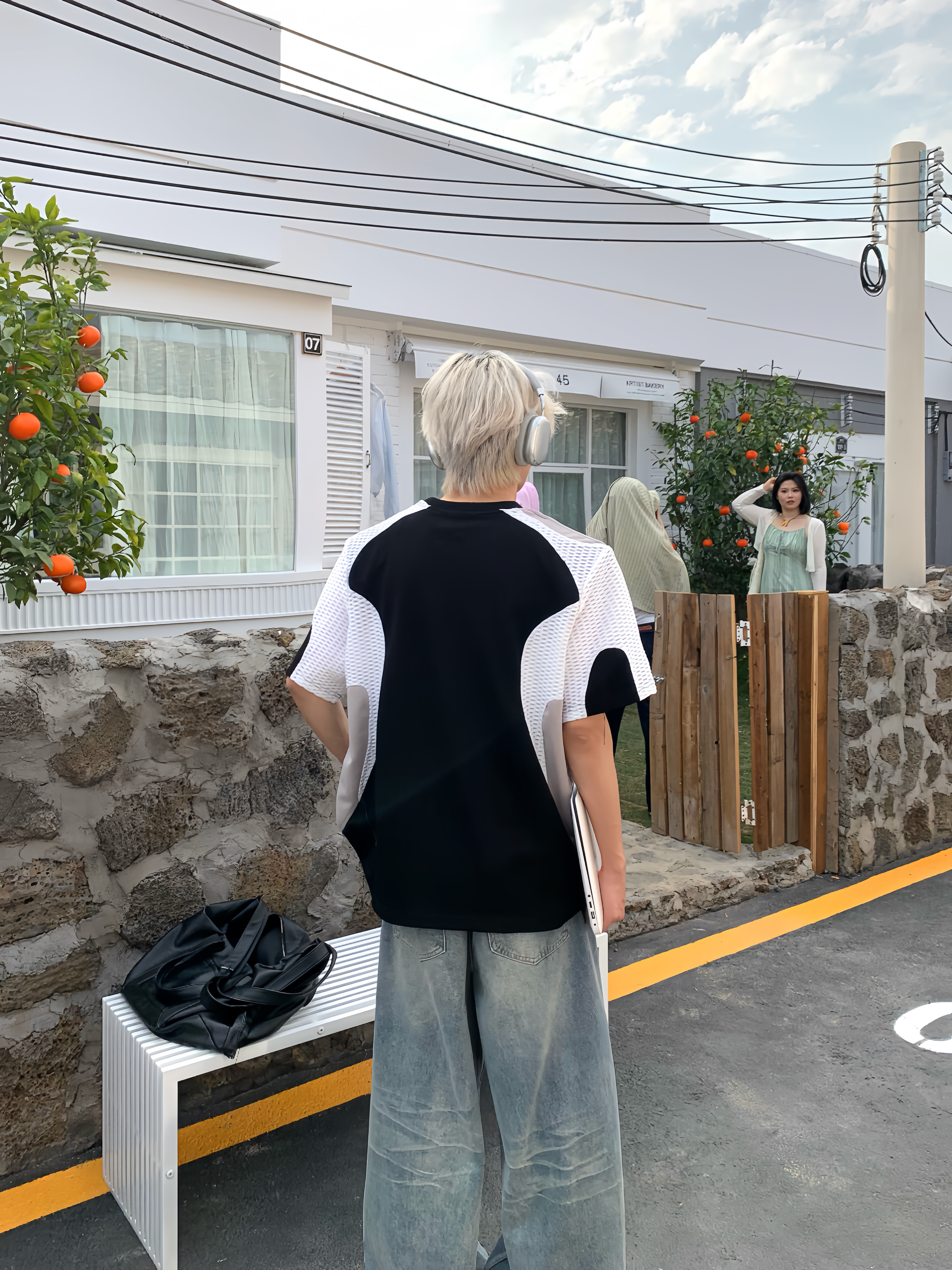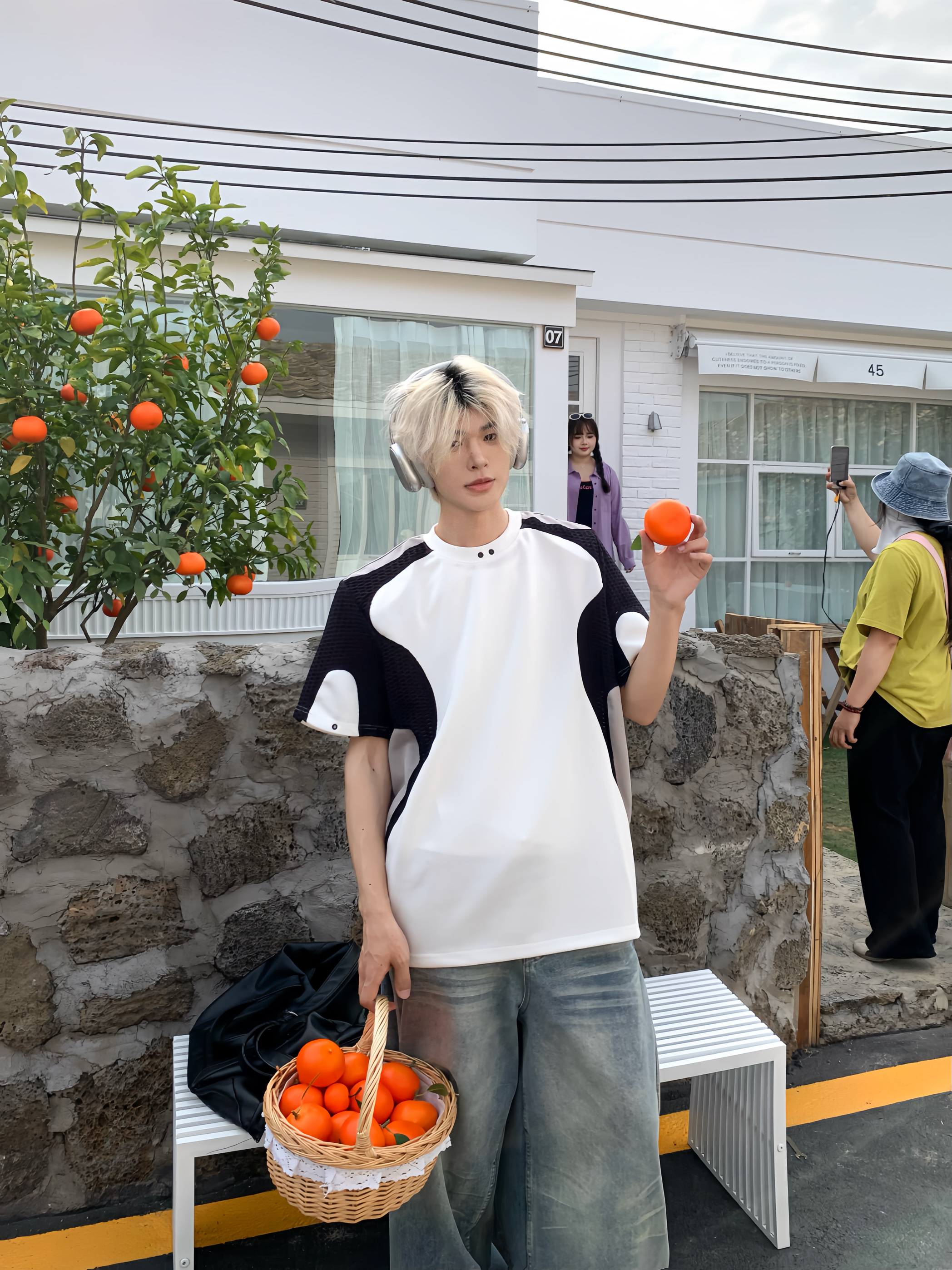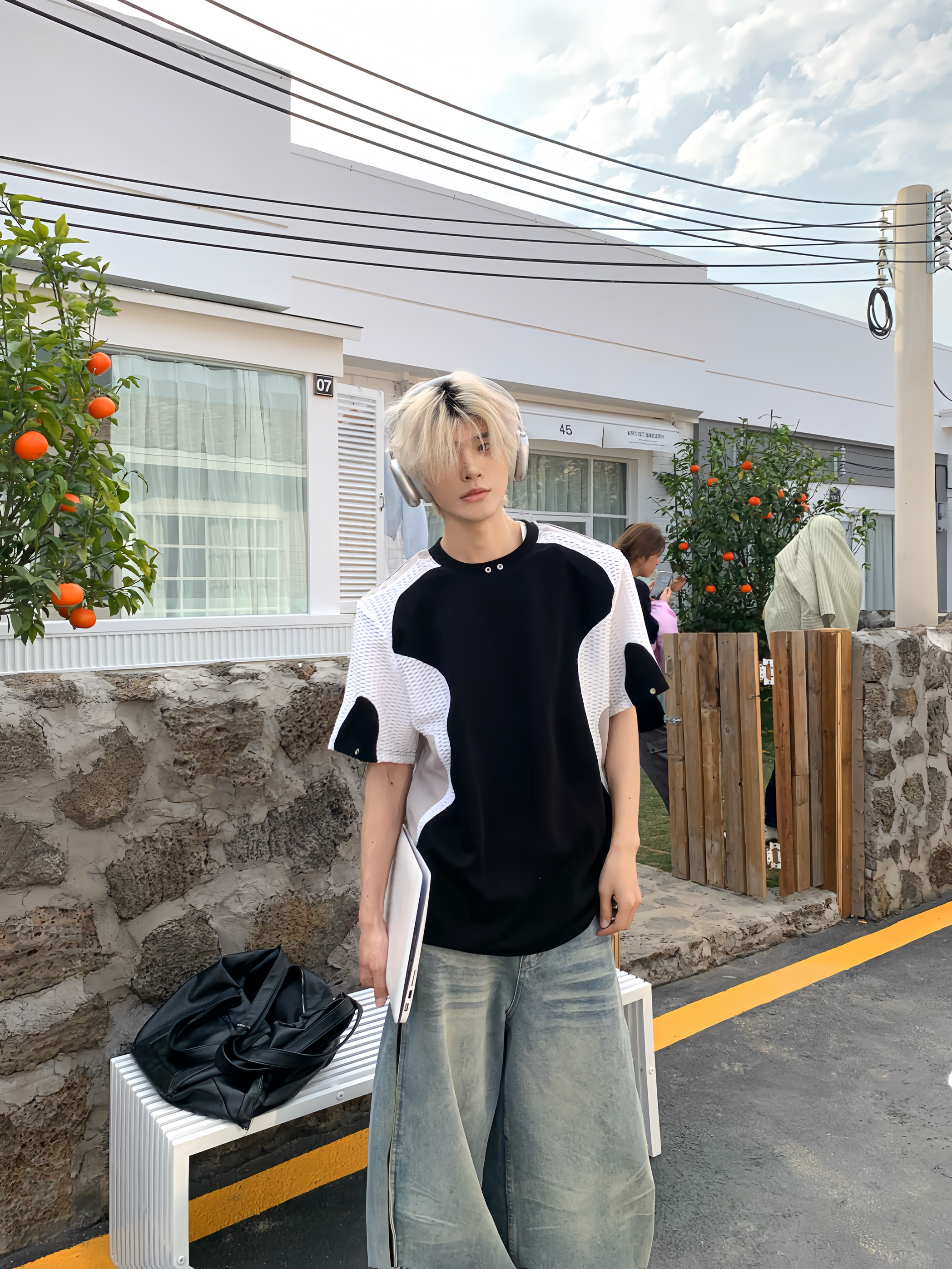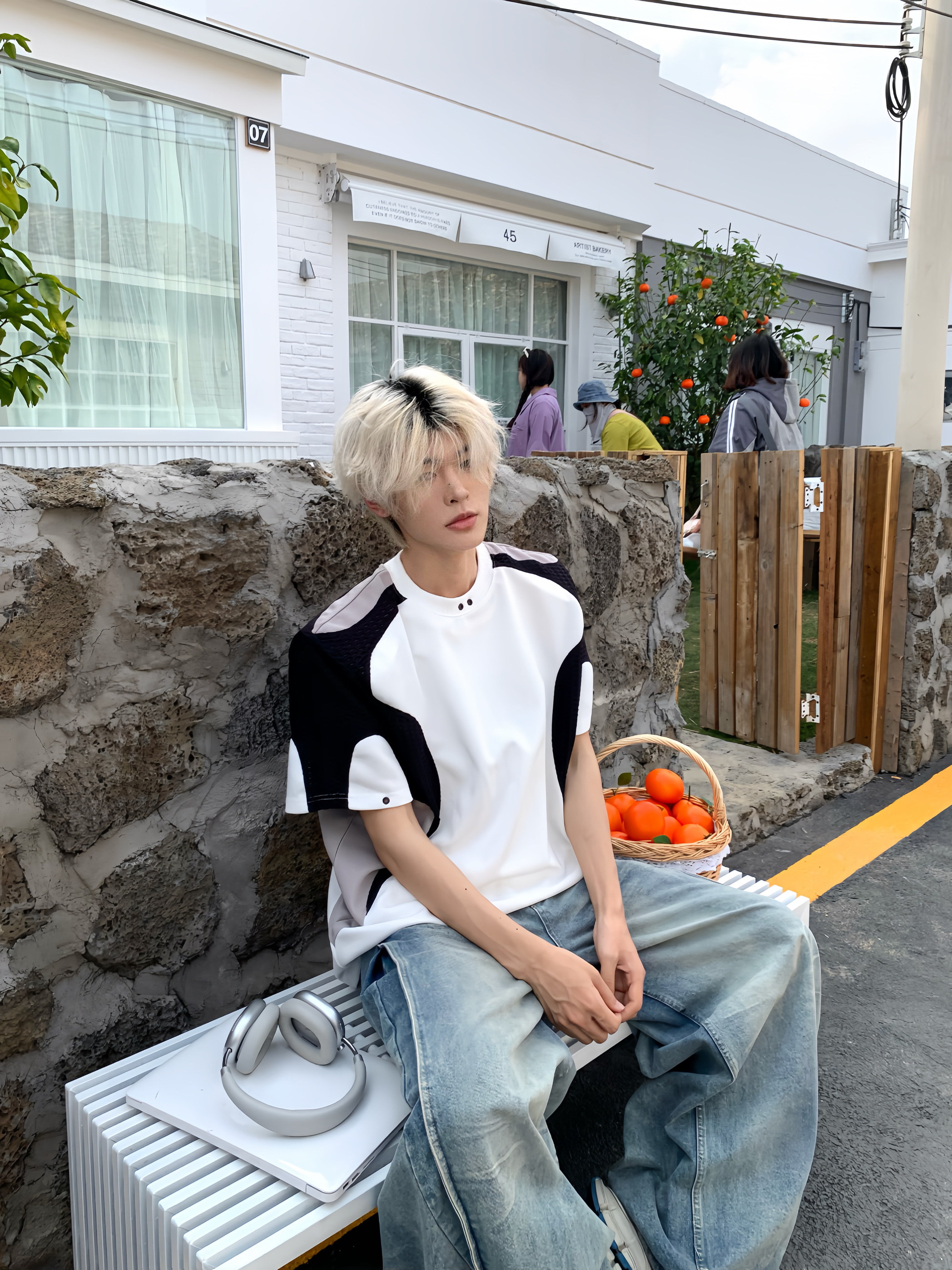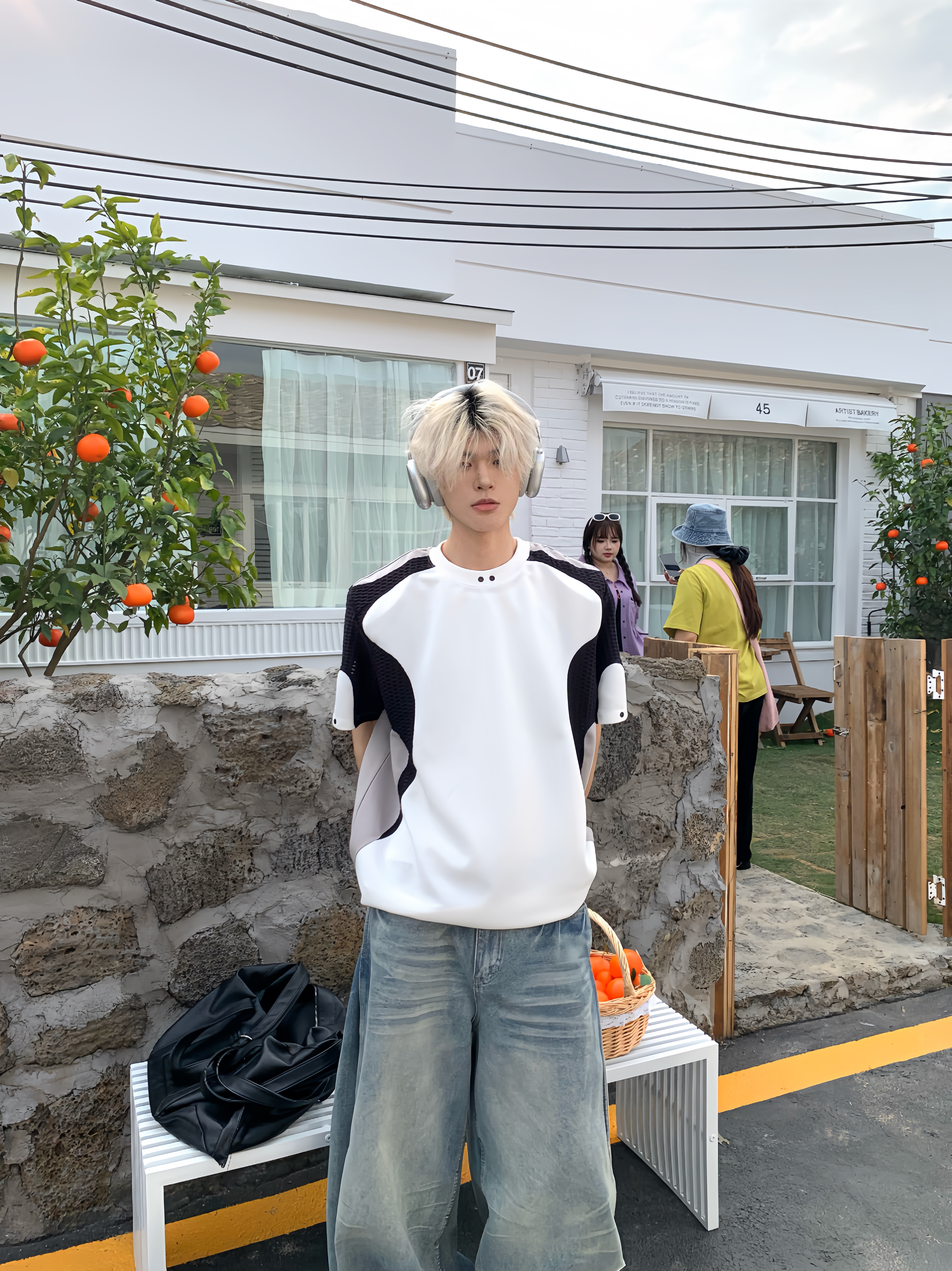 Color Block Panel Sporty Shoulder-Pad Oversize Short Sleeve T-Shirt WN19896