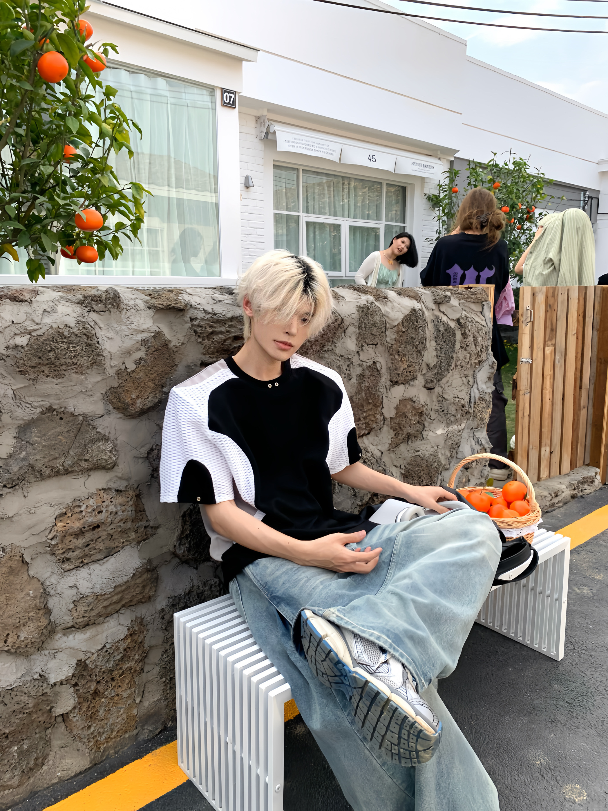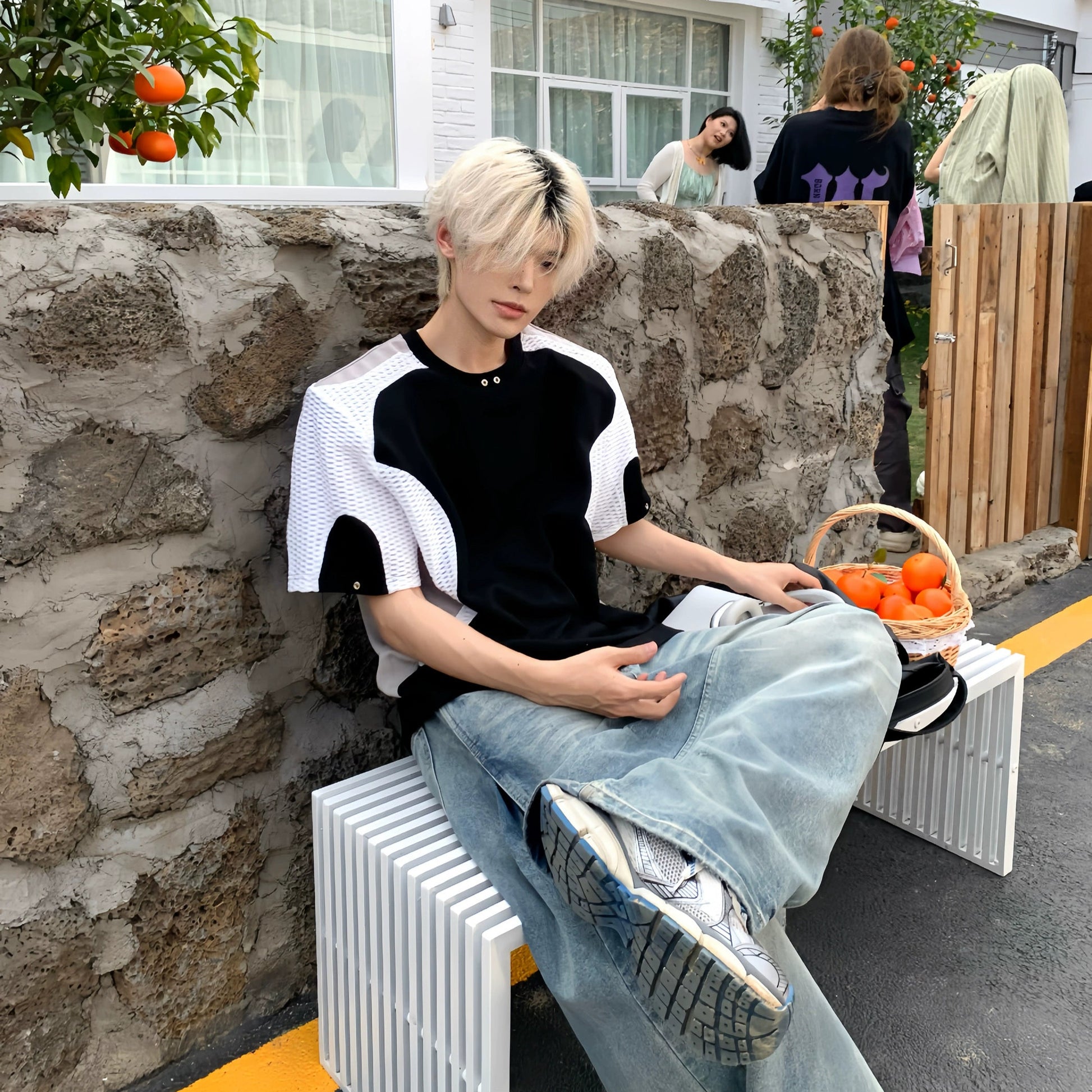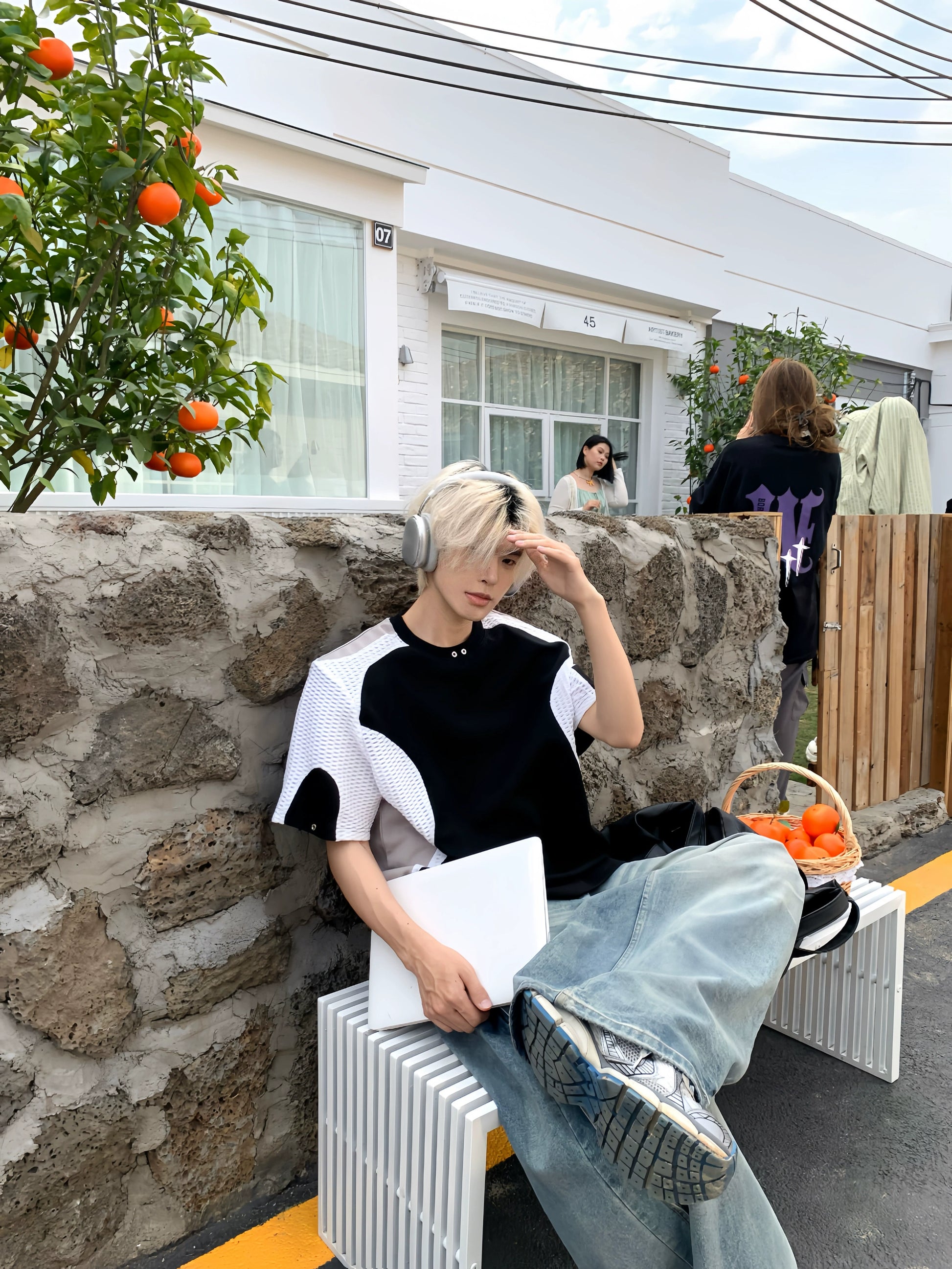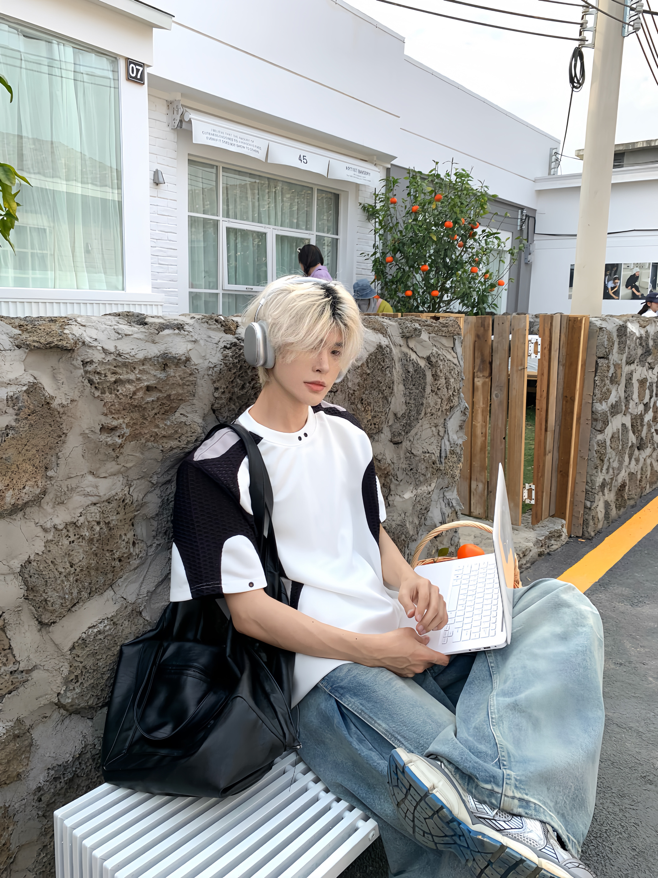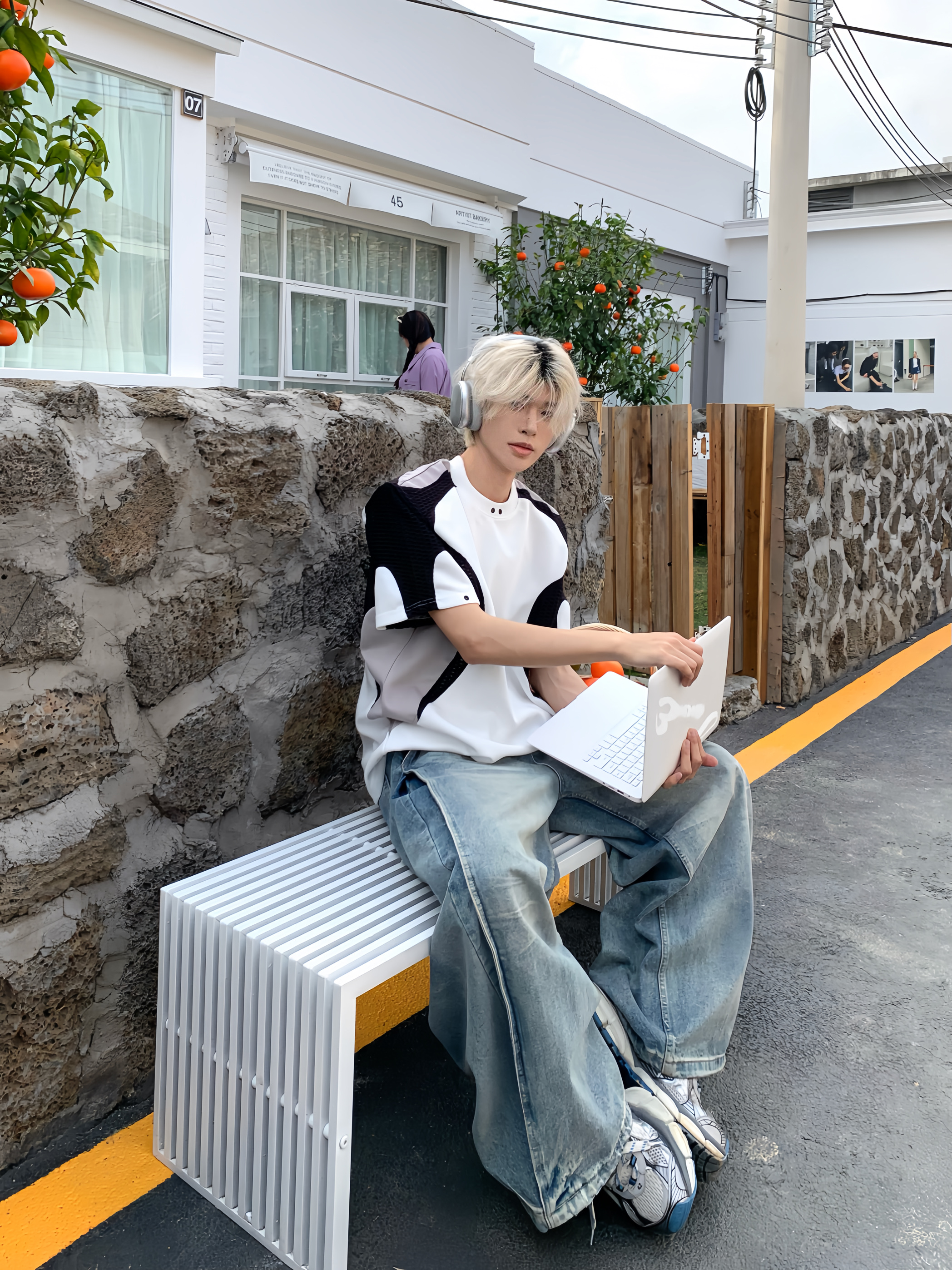 Color Block Panel Sporty Shoulder-Pad Oversize Short Sleeve T-Shirt WN19896
