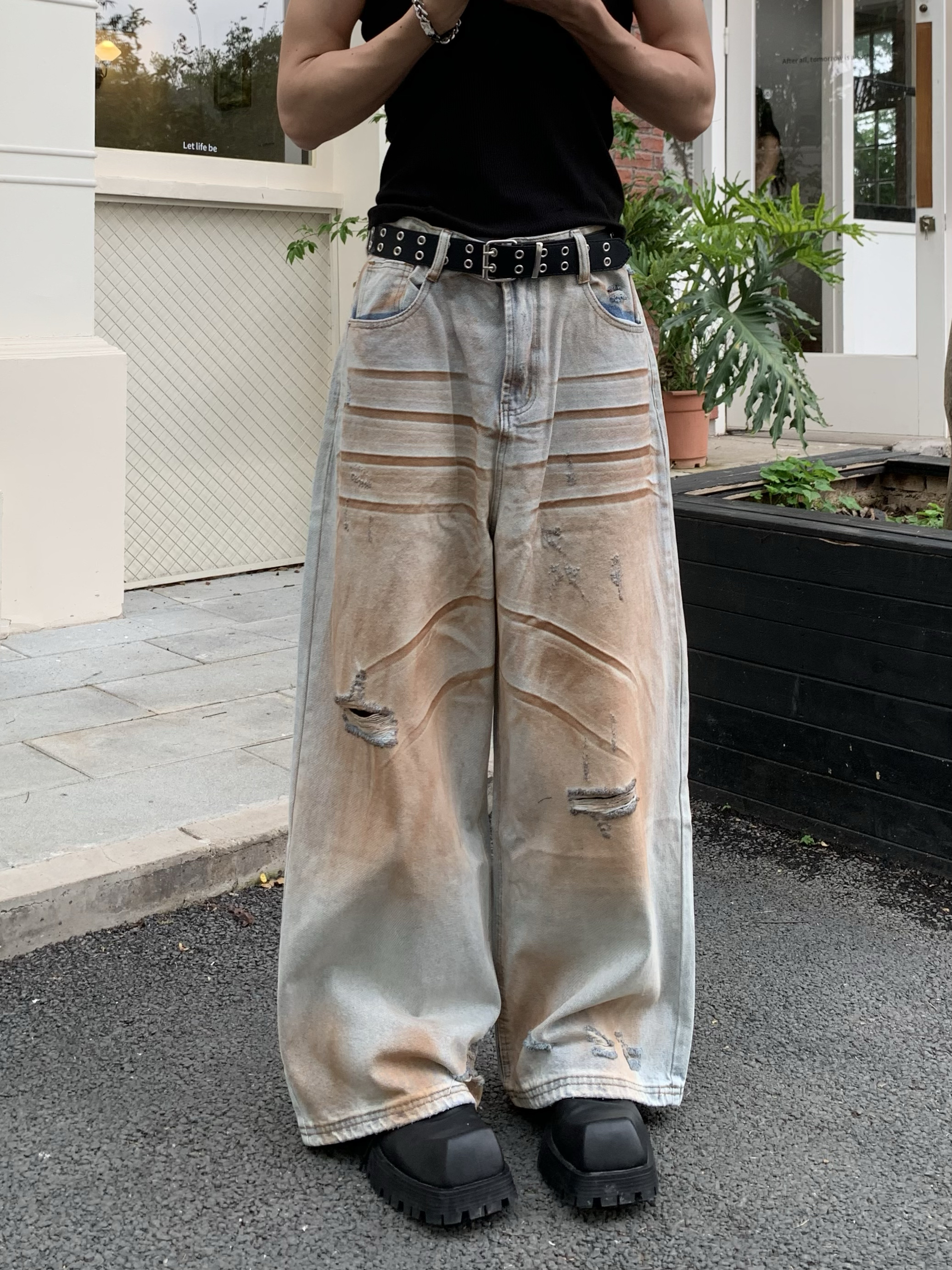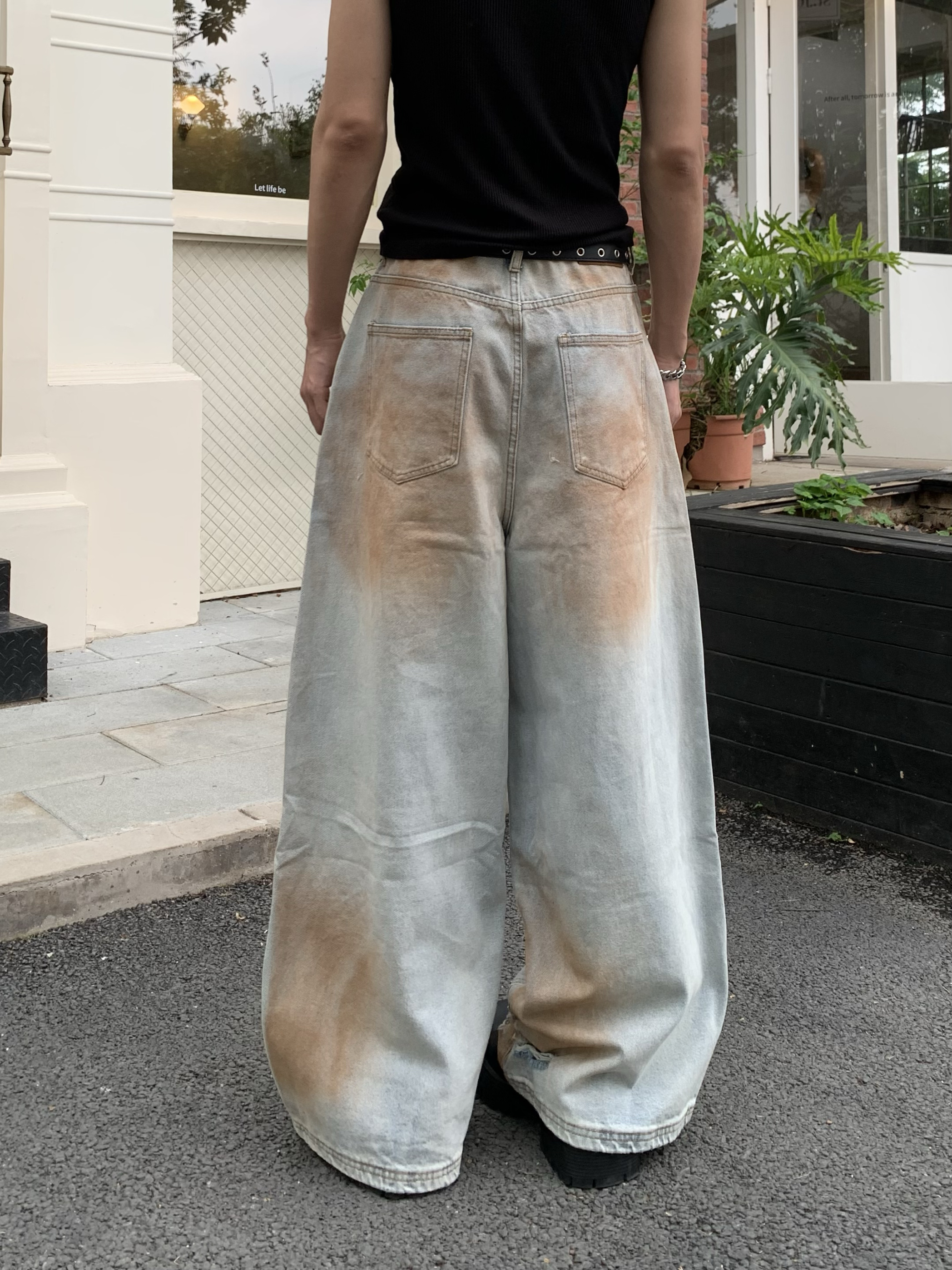 Mud Dye Damage Wash Wide Leg Denim Jeans WN19921