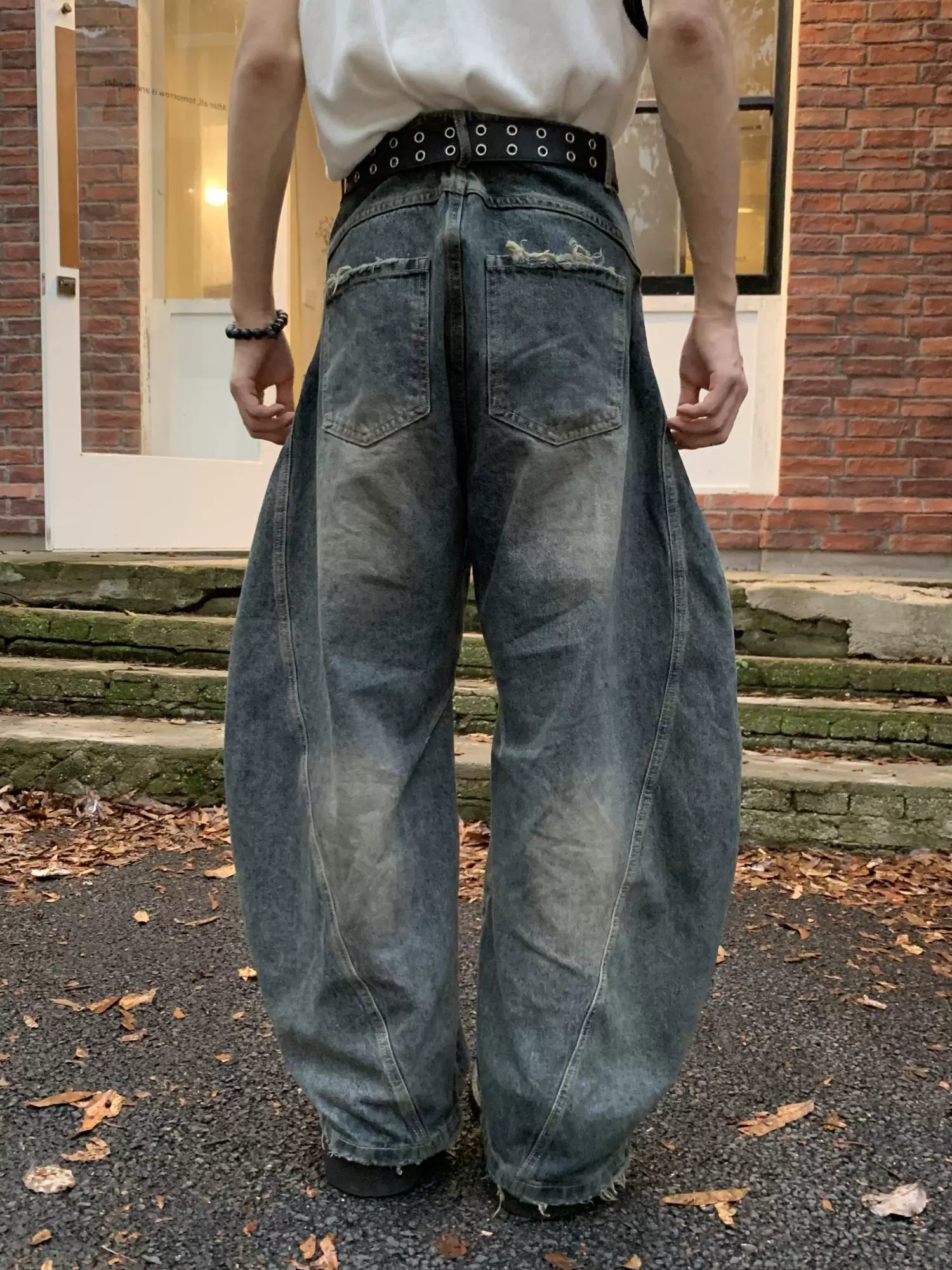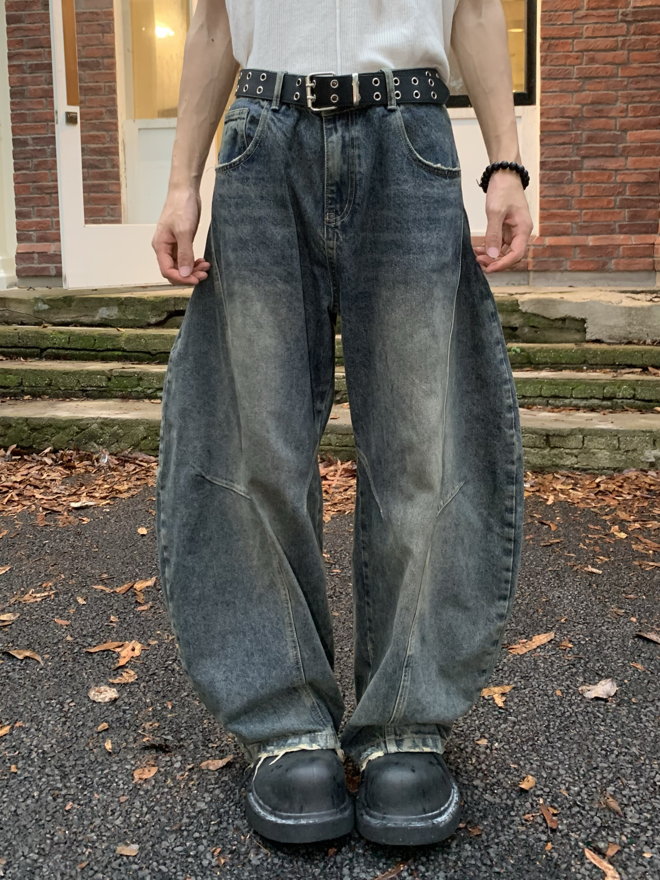 Fade Wash Heavyweight Wide Leg Denim Jeans WN19923