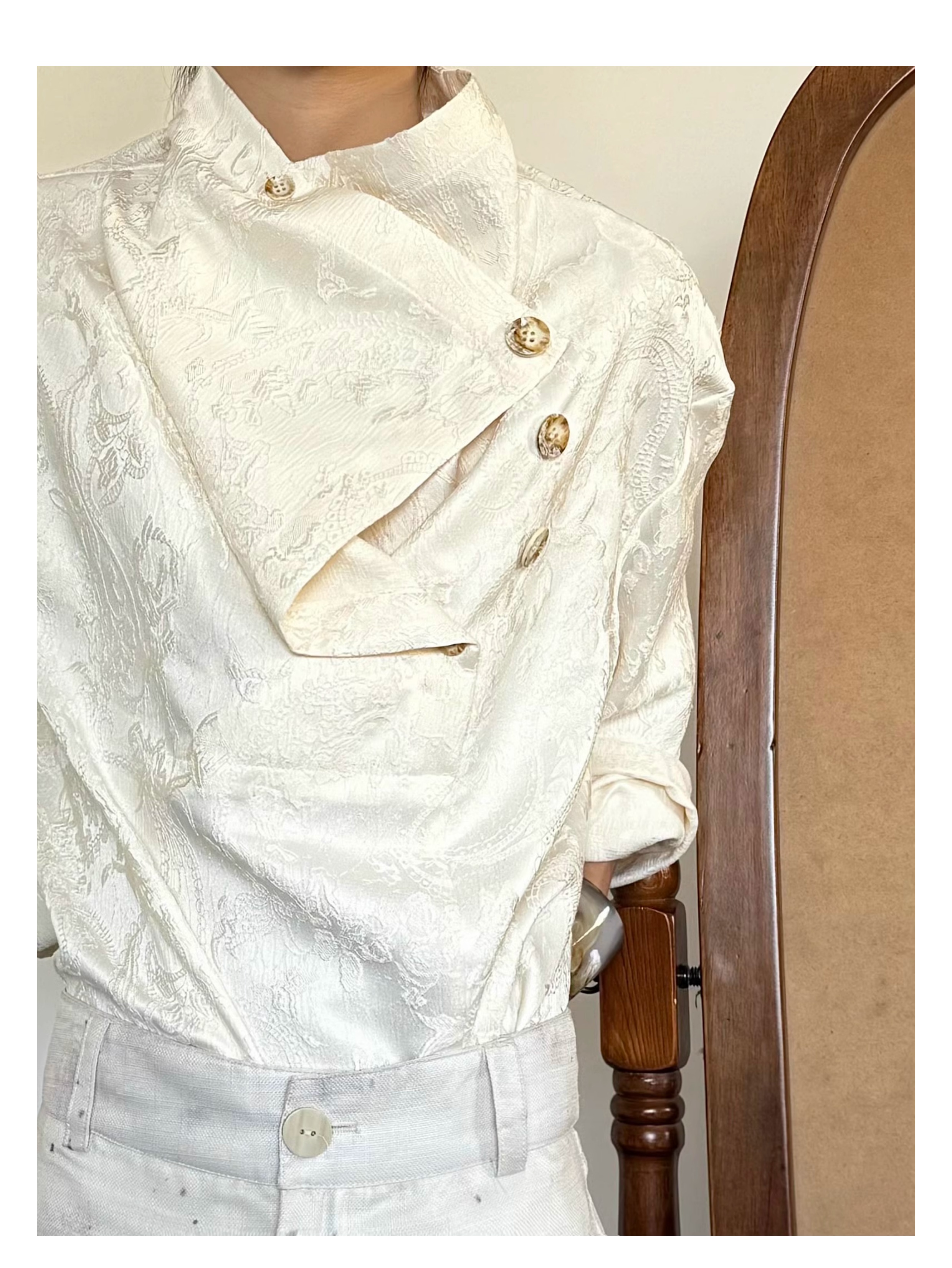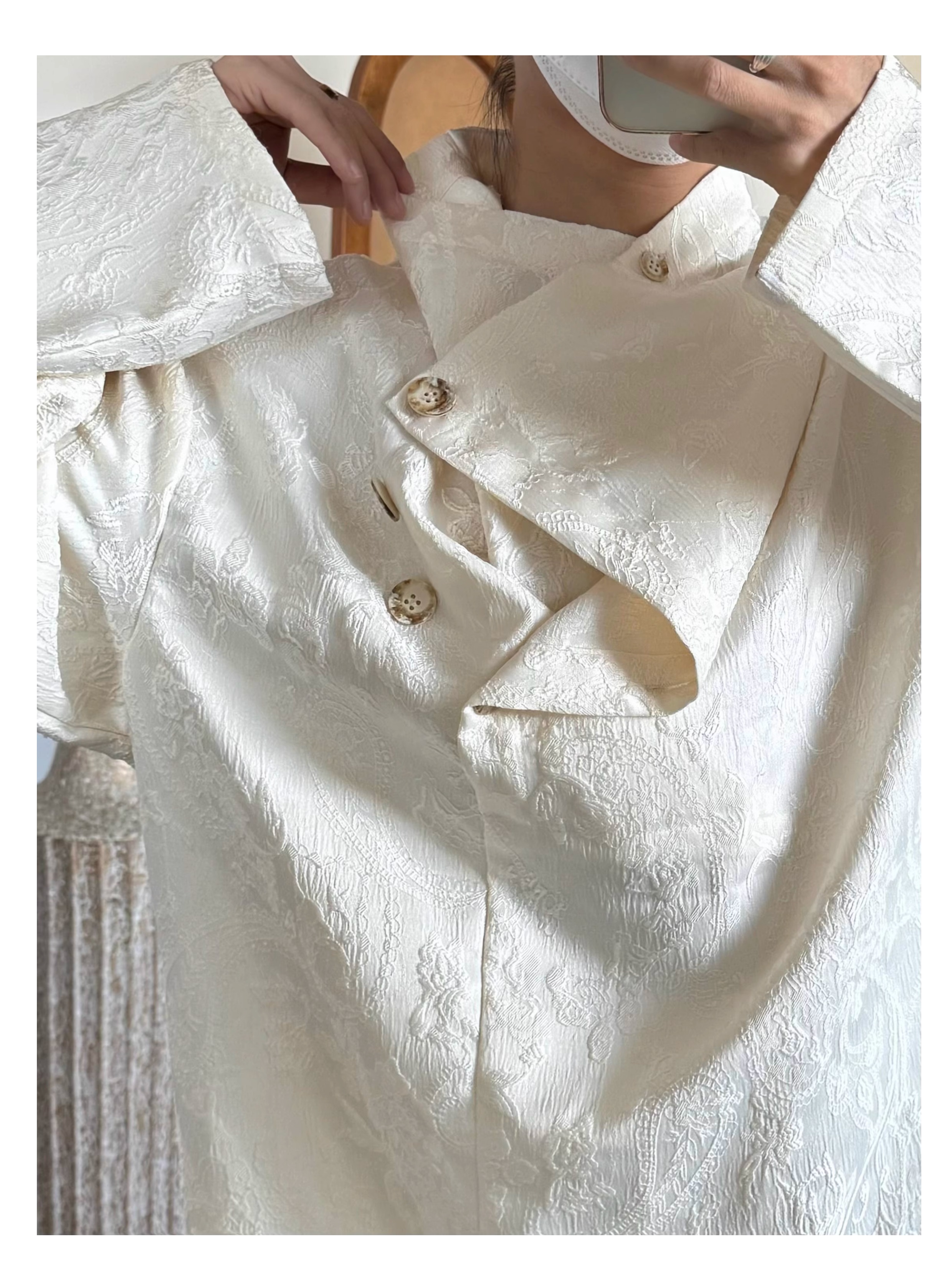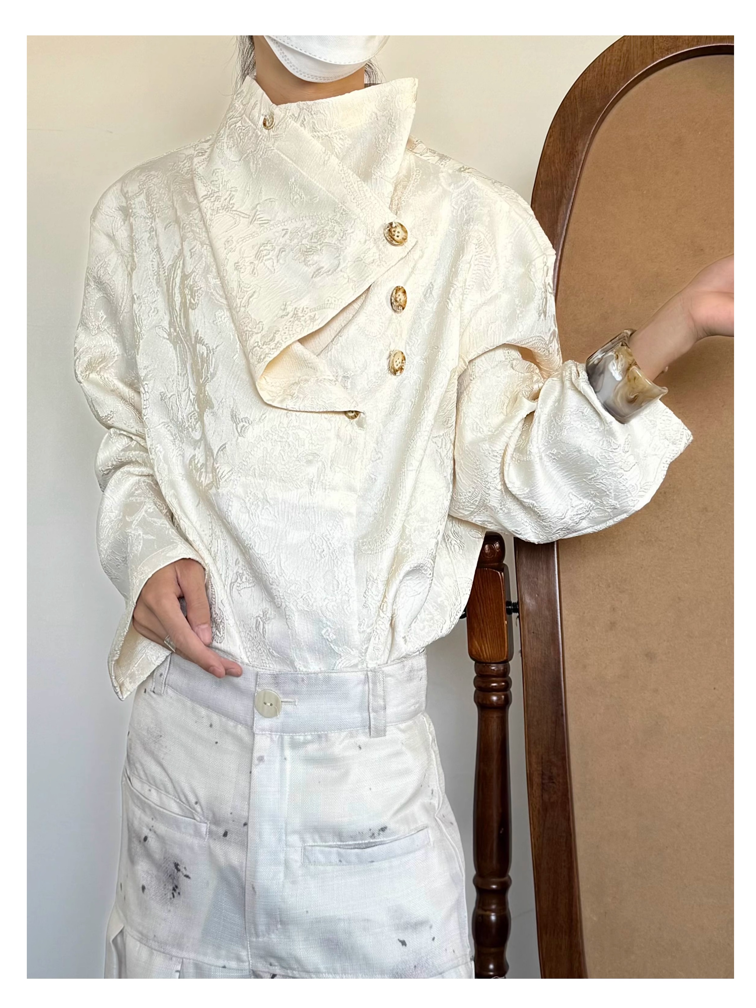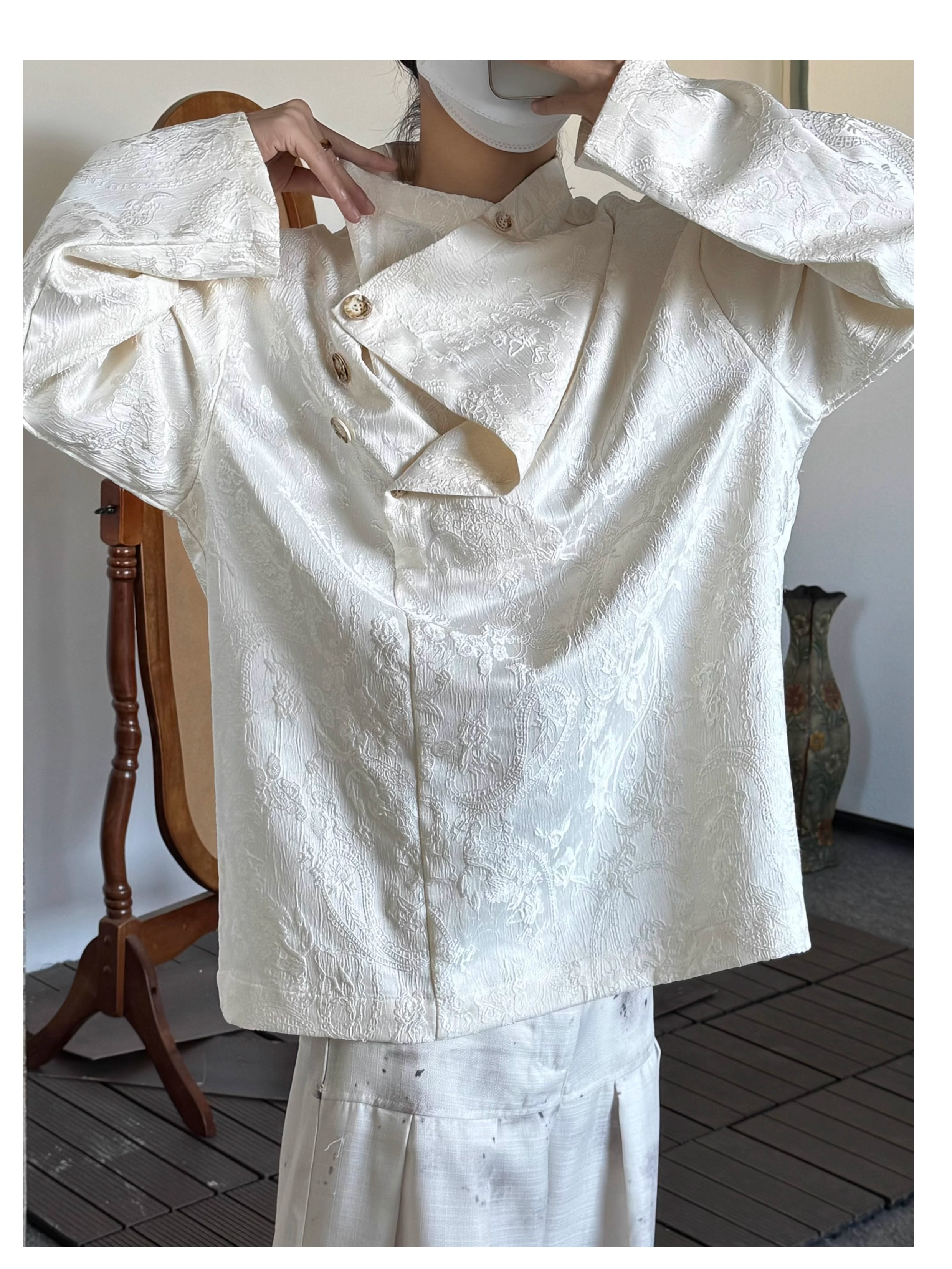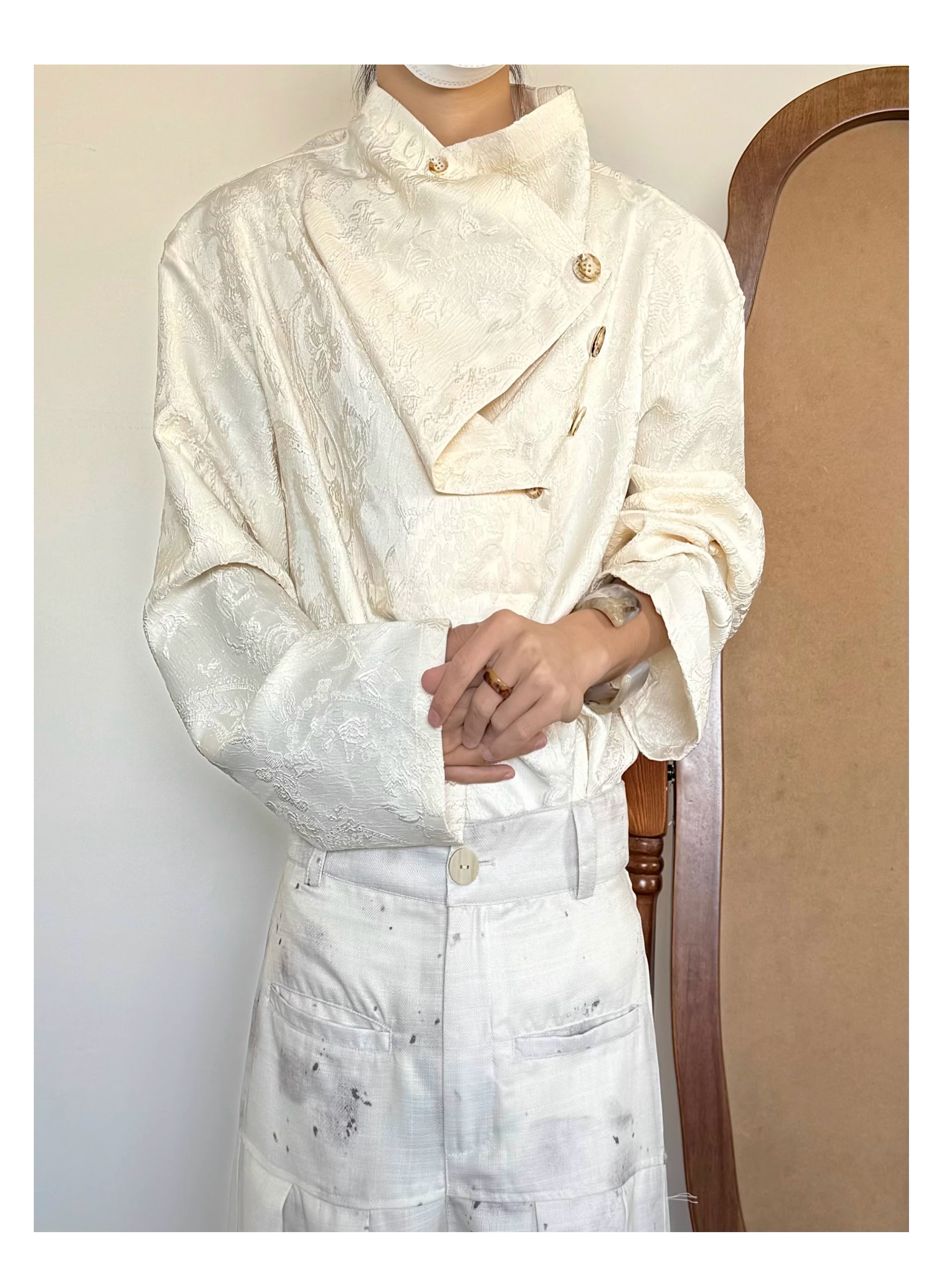 Embroidery Jacquard Asymmetrical Long Sleeve Shirt WN19942