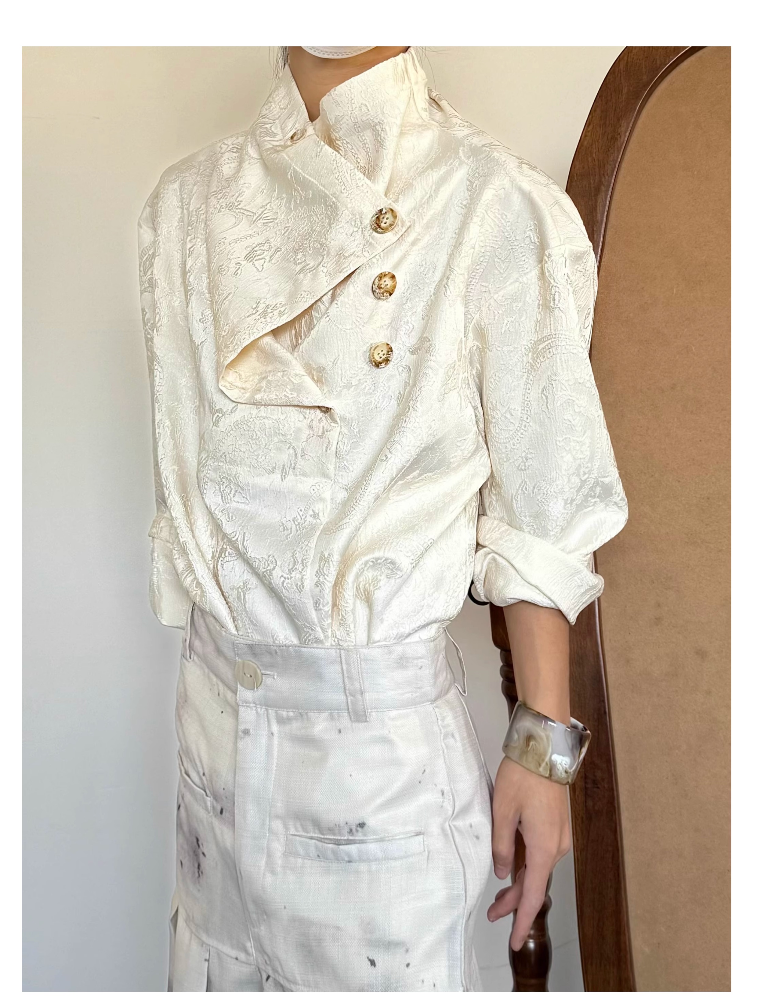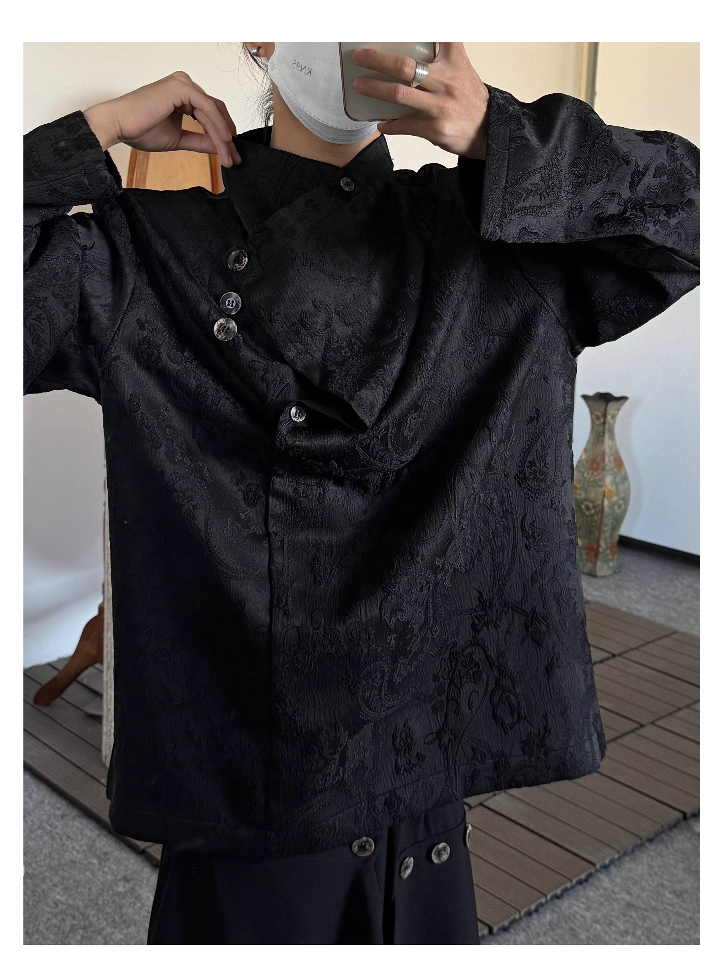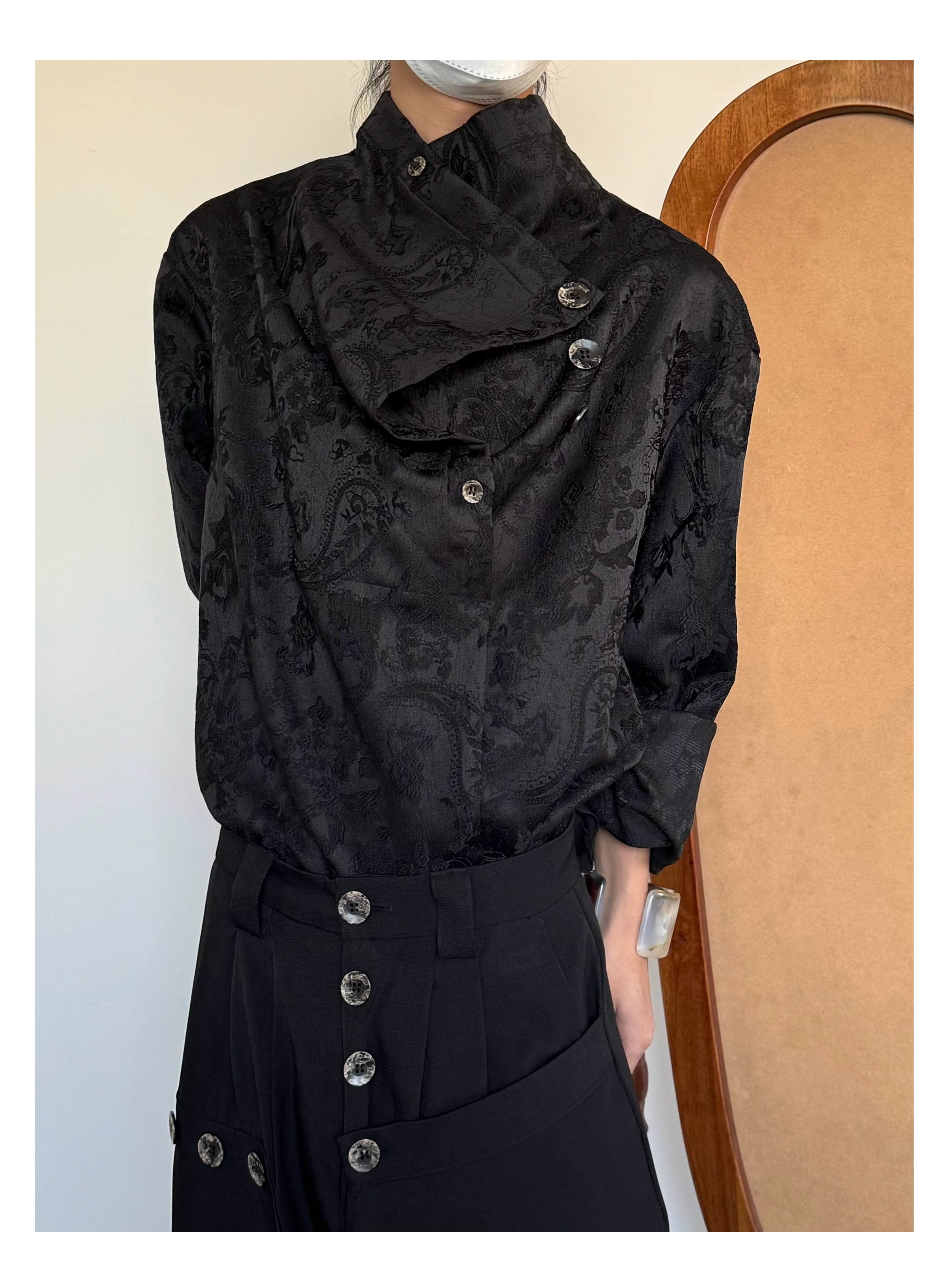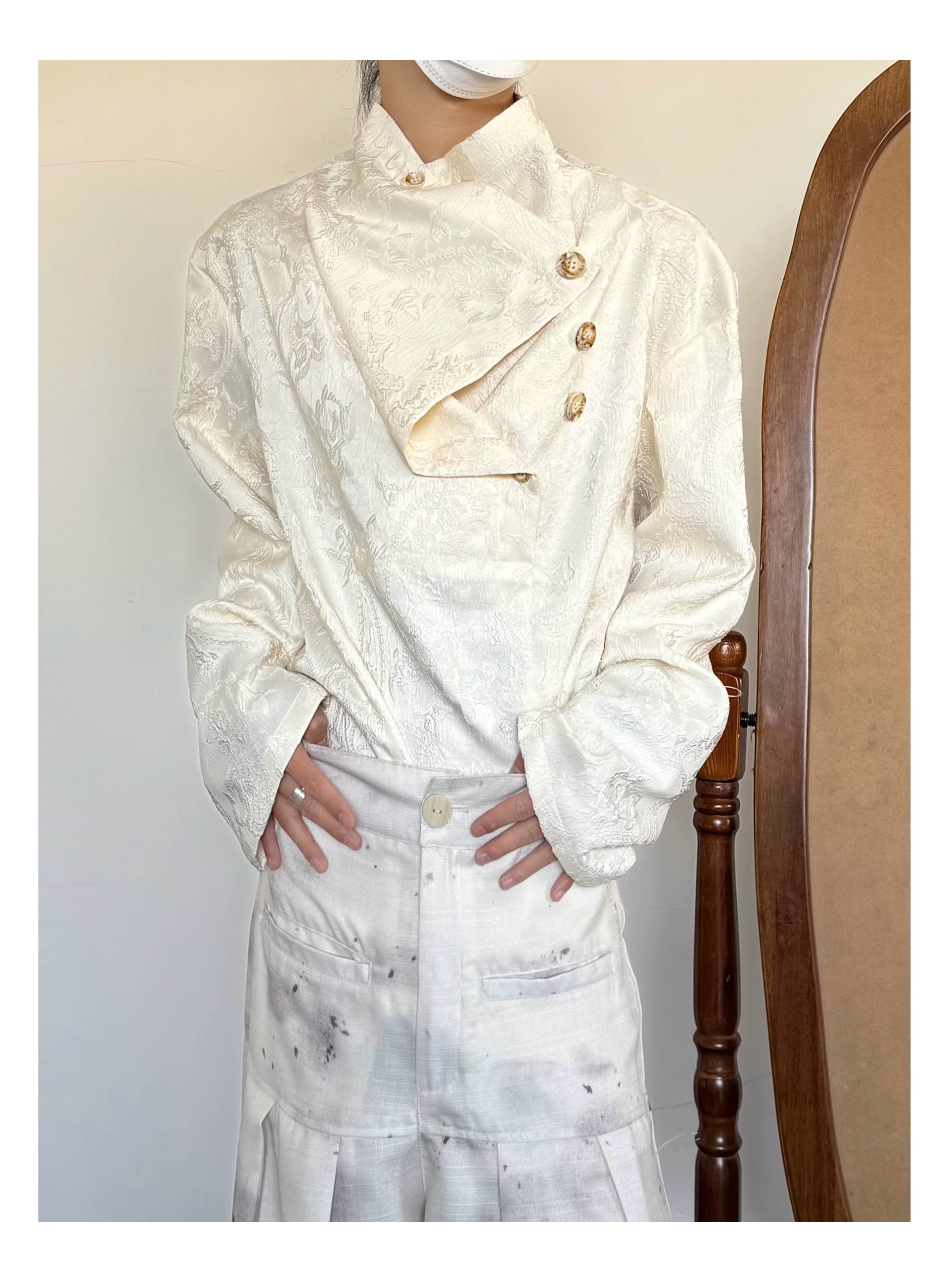 Embroidery Jacquard Asymmetrical Long Sleeve Shirt WN19942