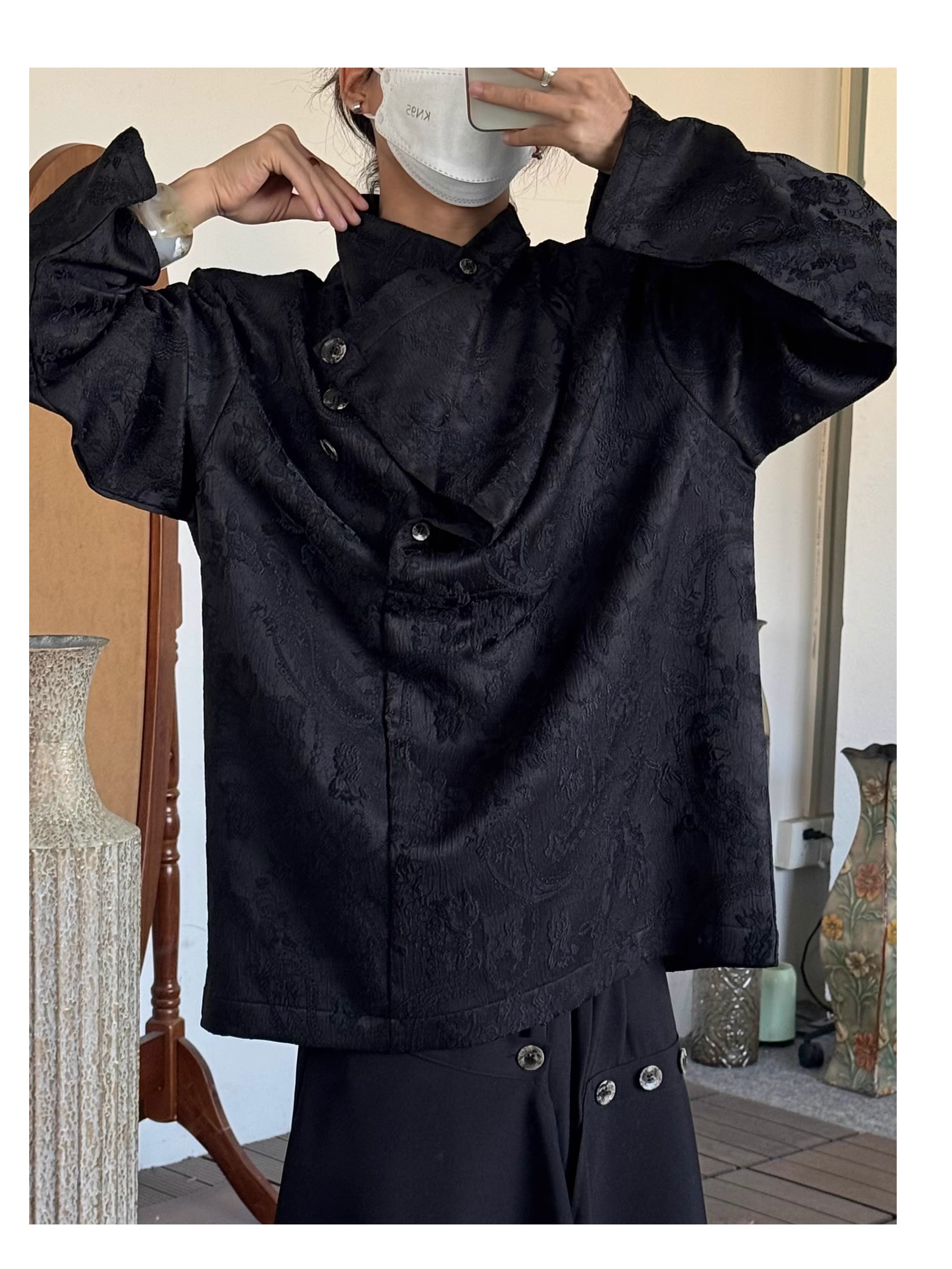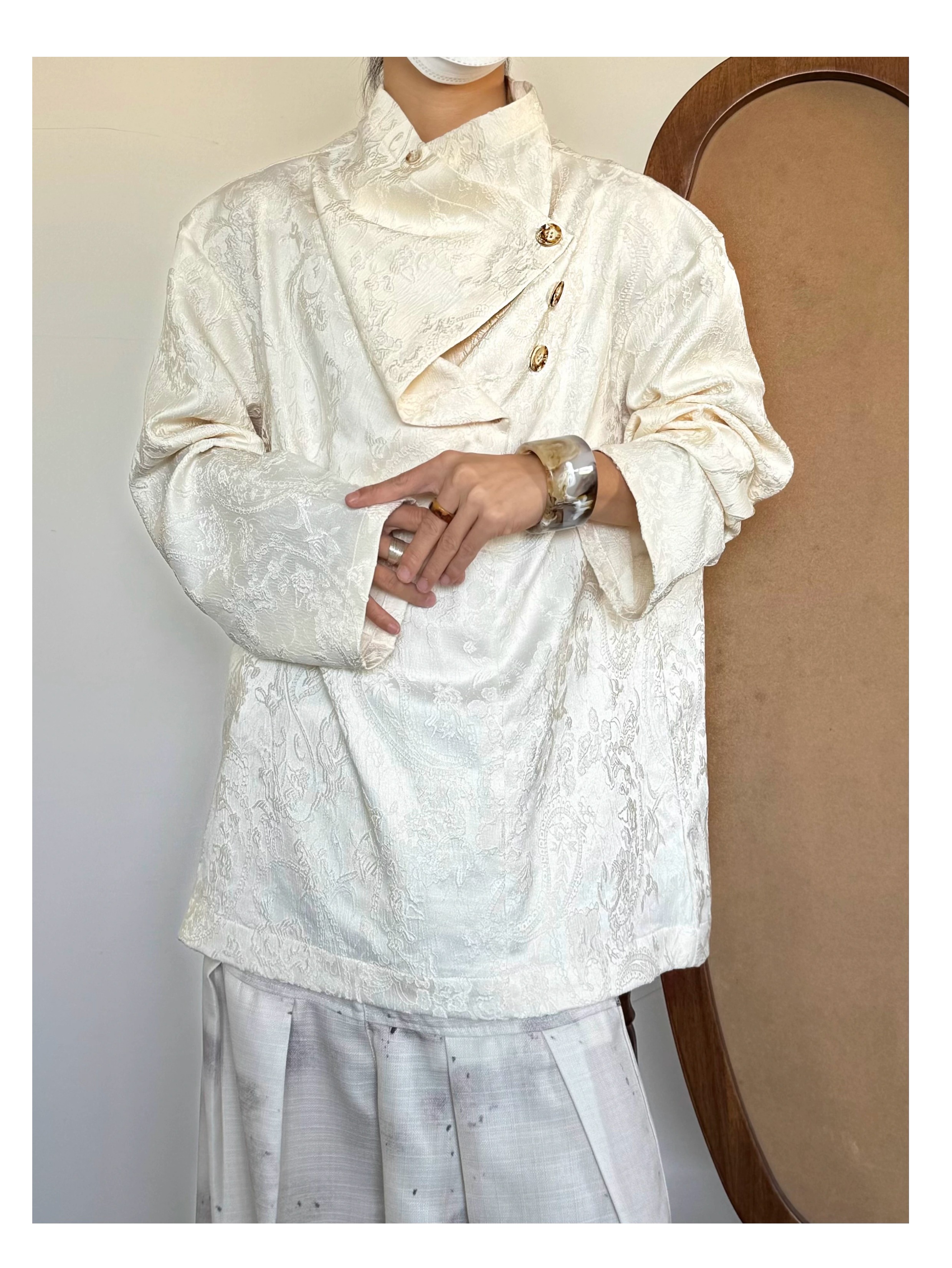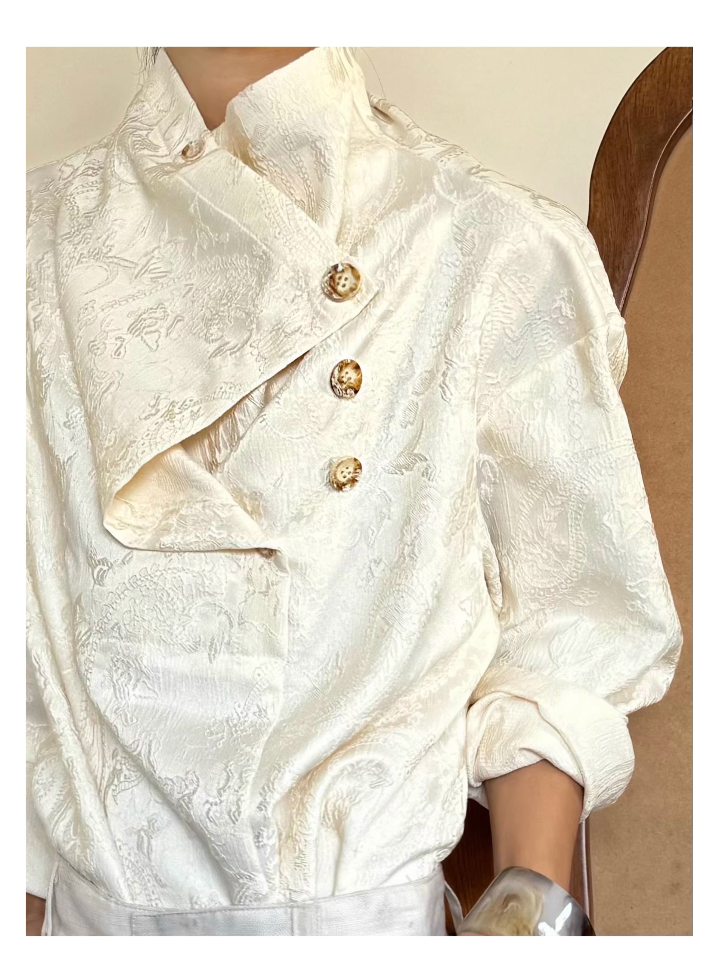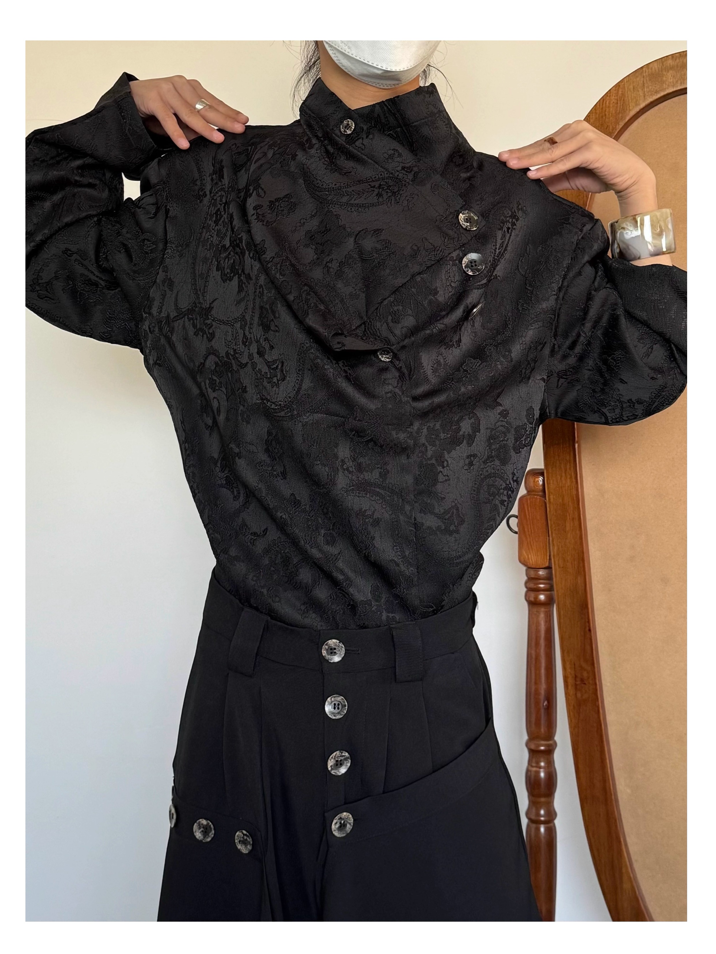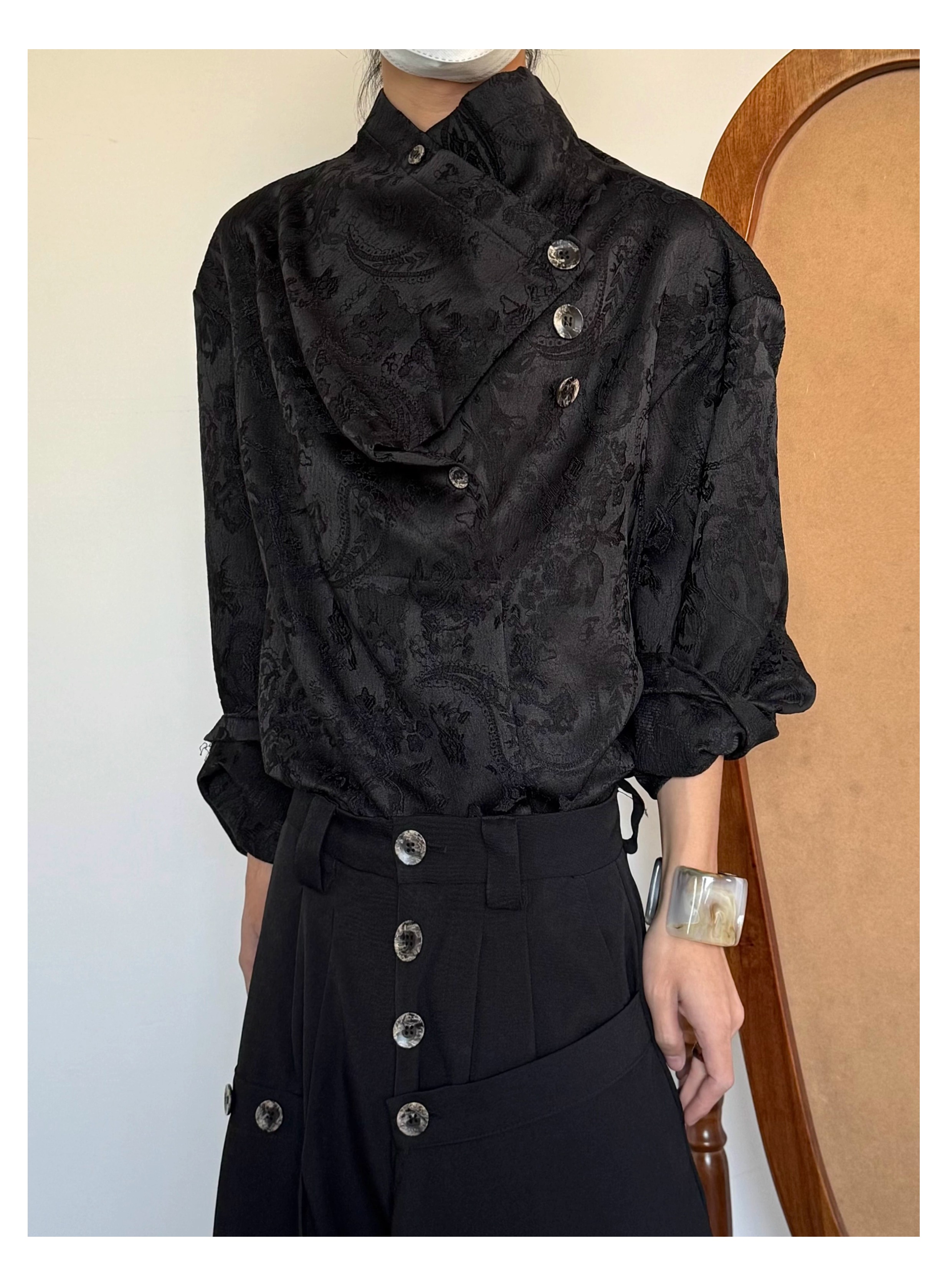 Embroidery Jacquard Asymmetrical Long Sleeve Shirt WN19942