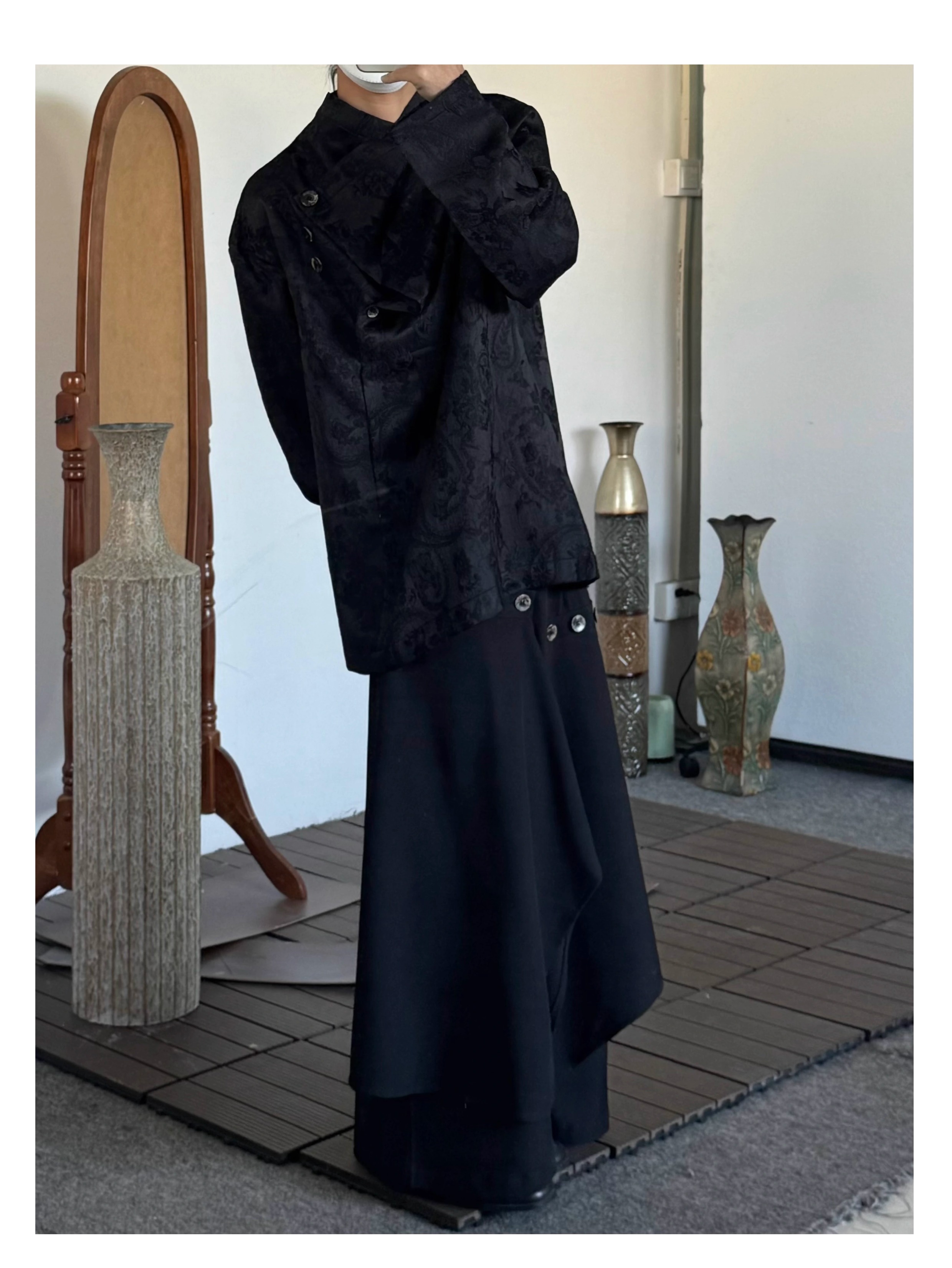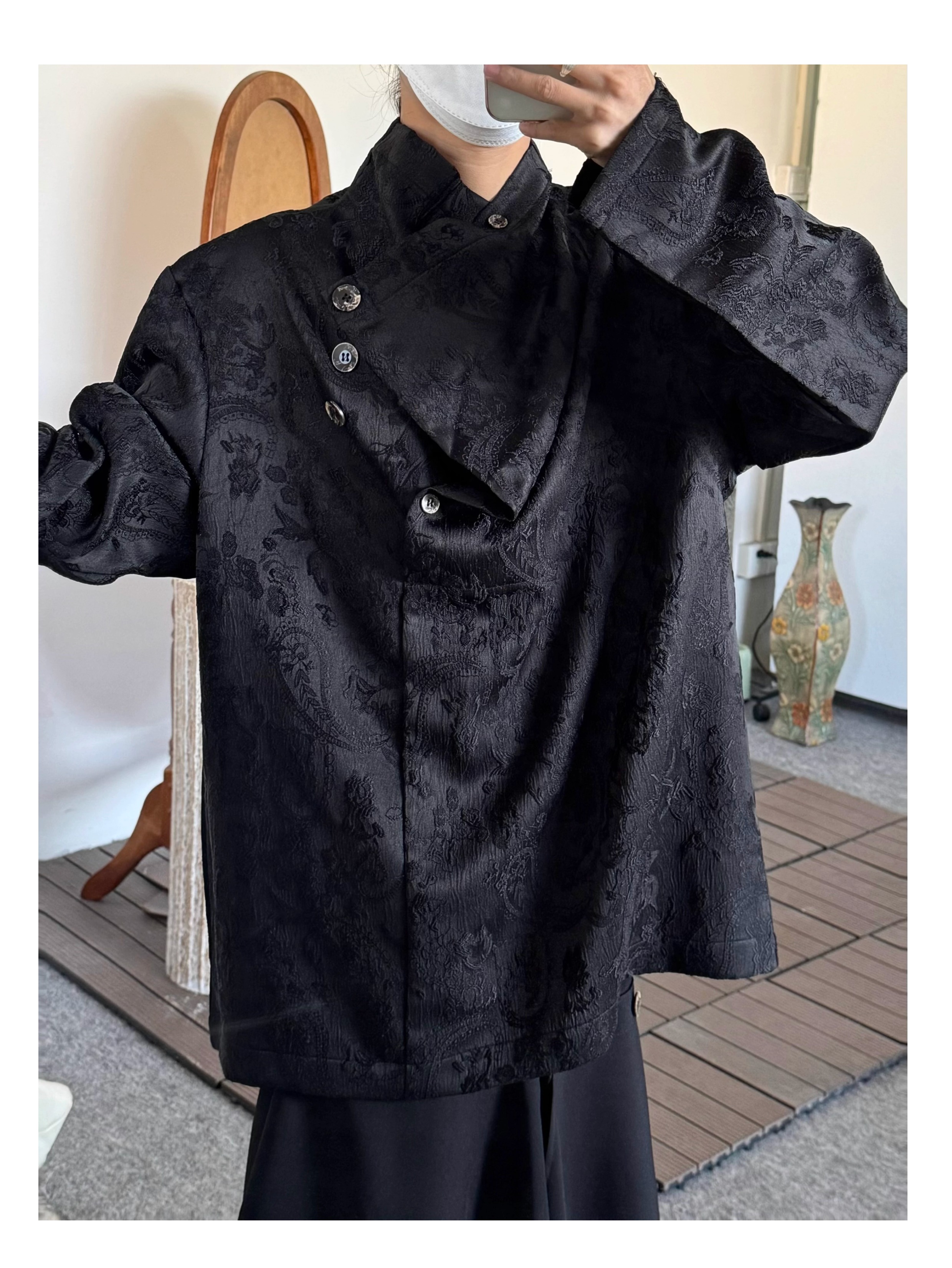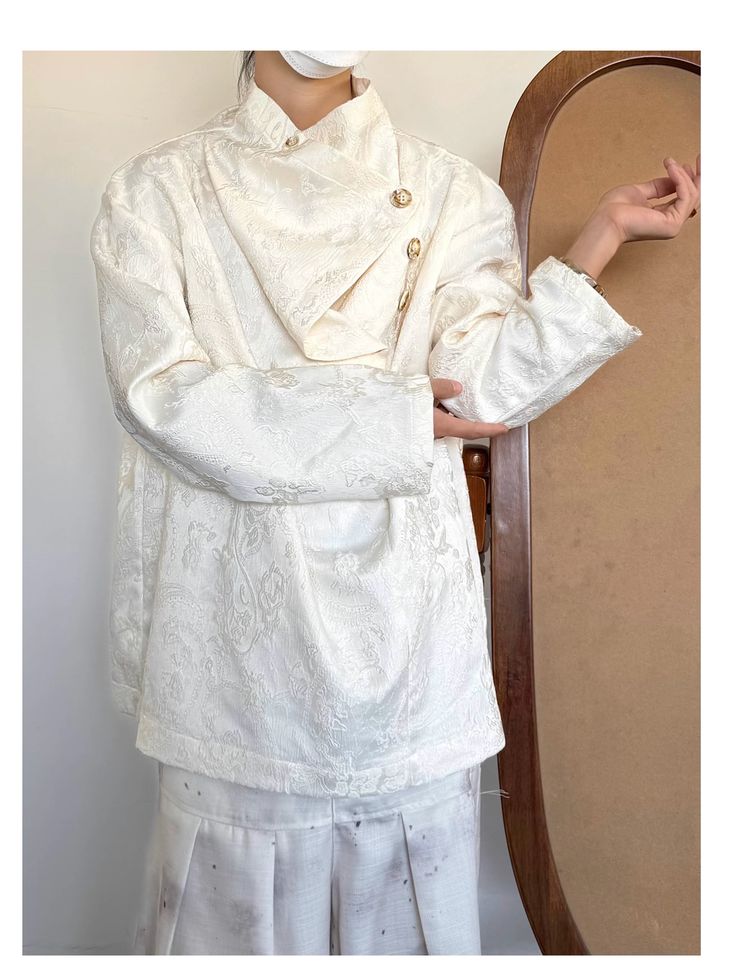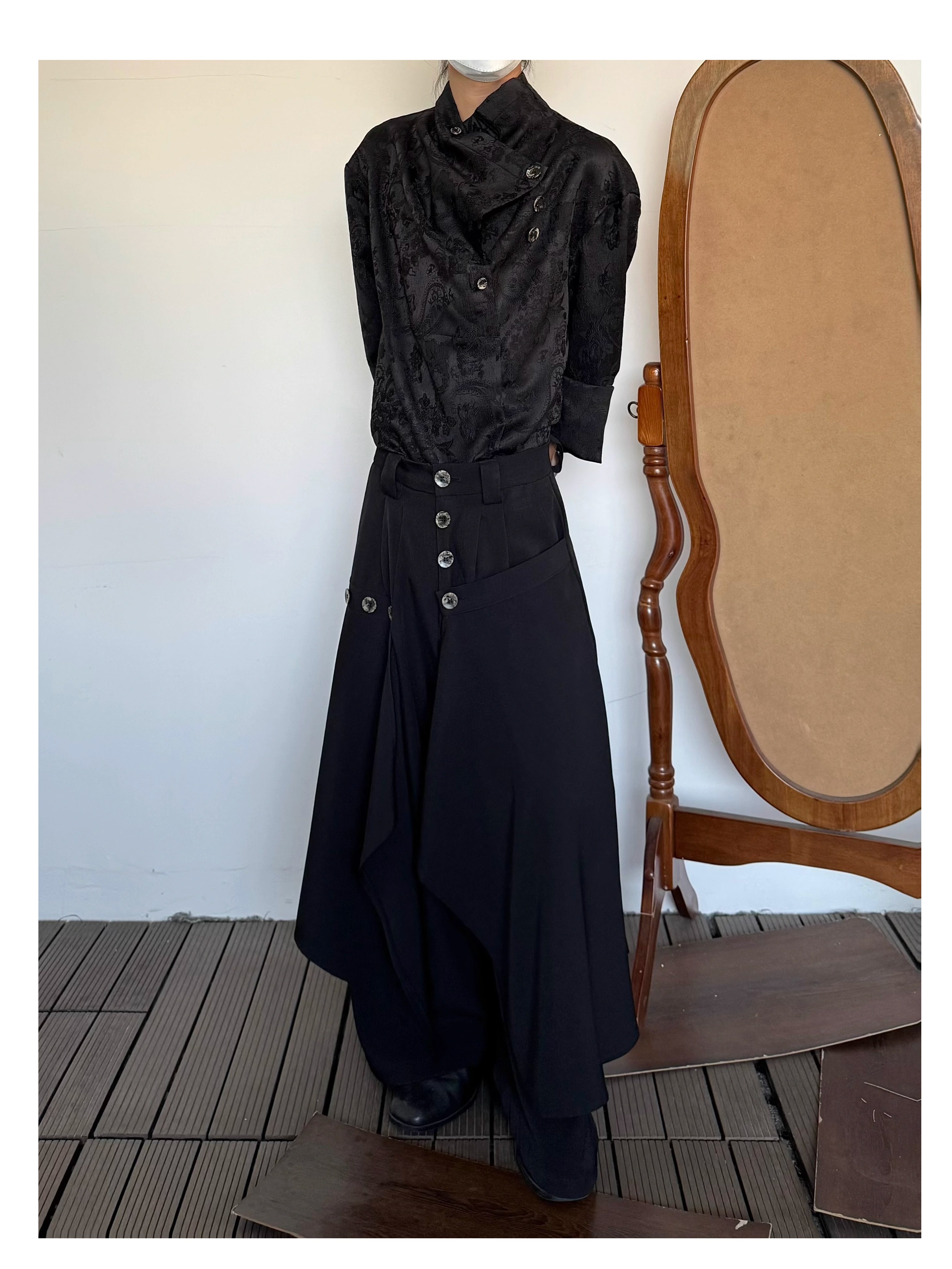 Embroidery Jacquard Asymmetrical Long Sleeve Shirt WN19942