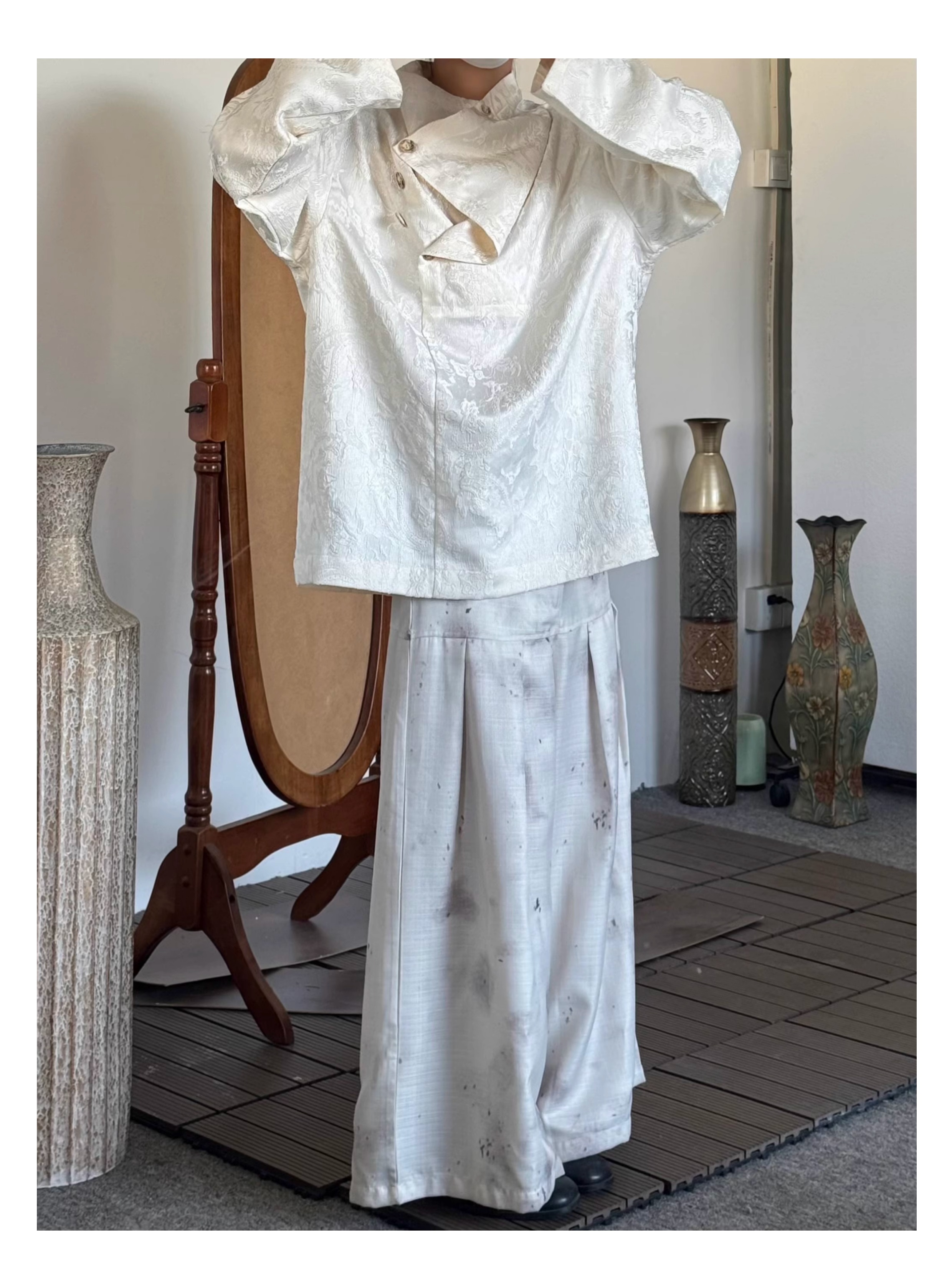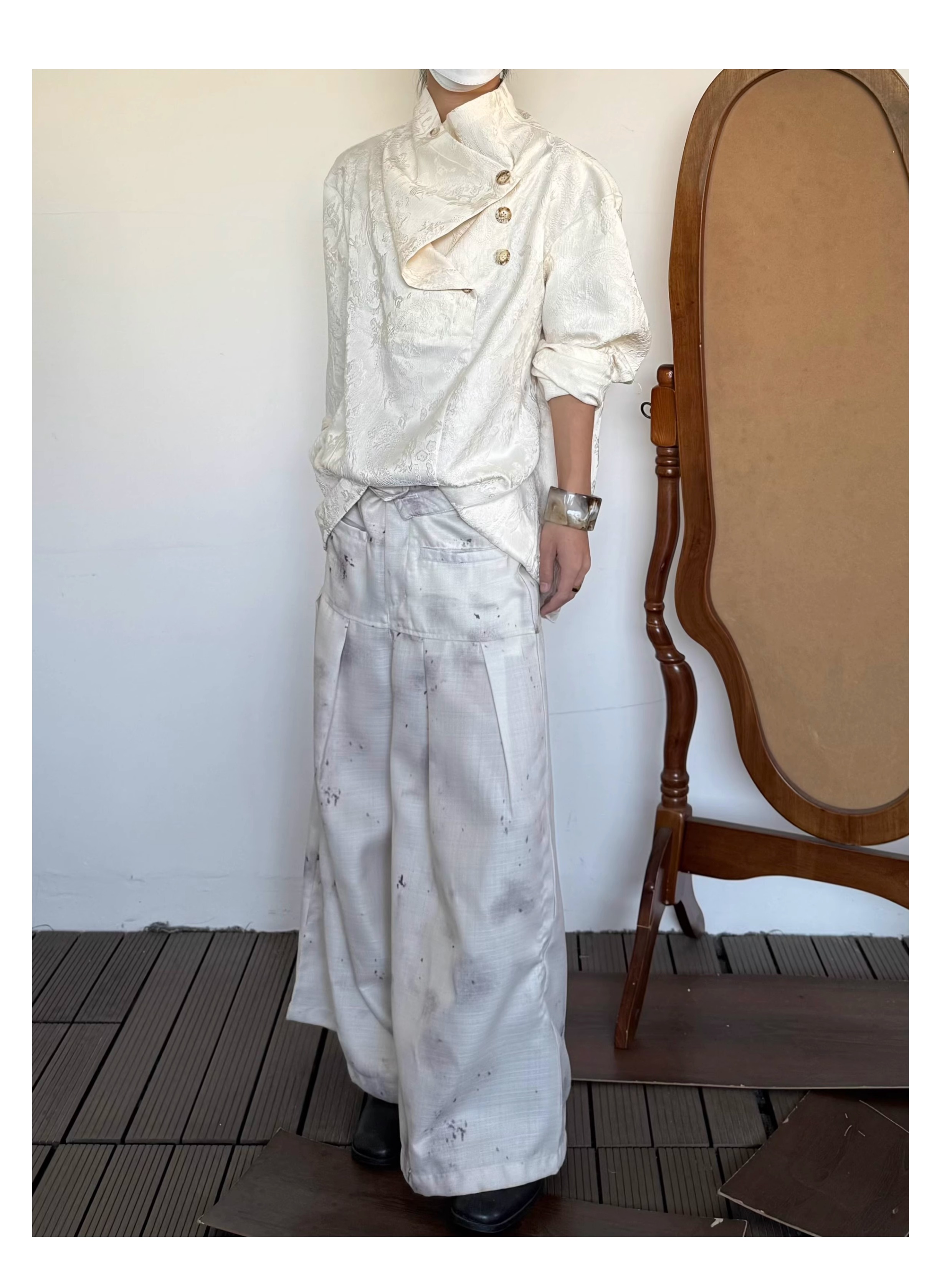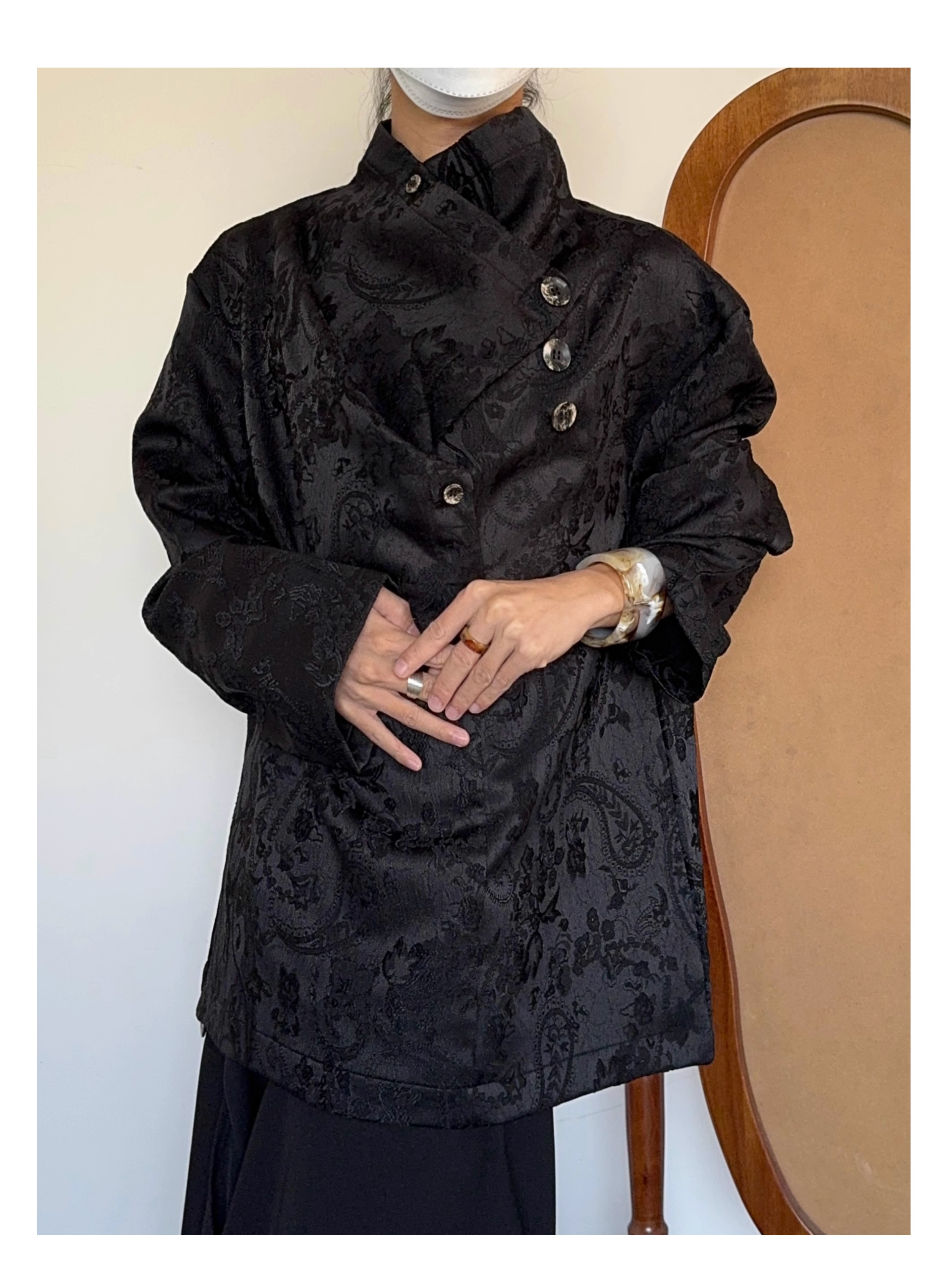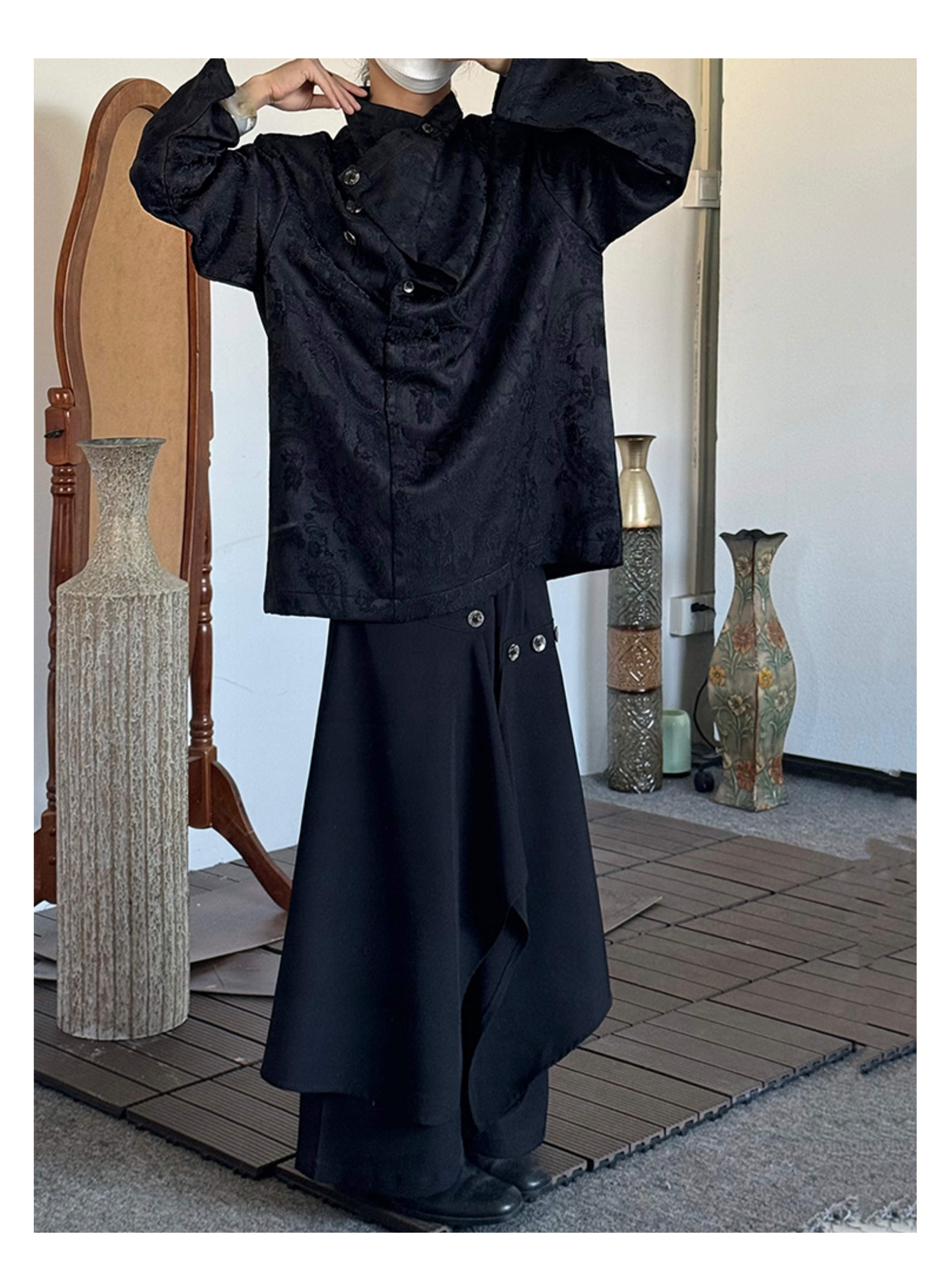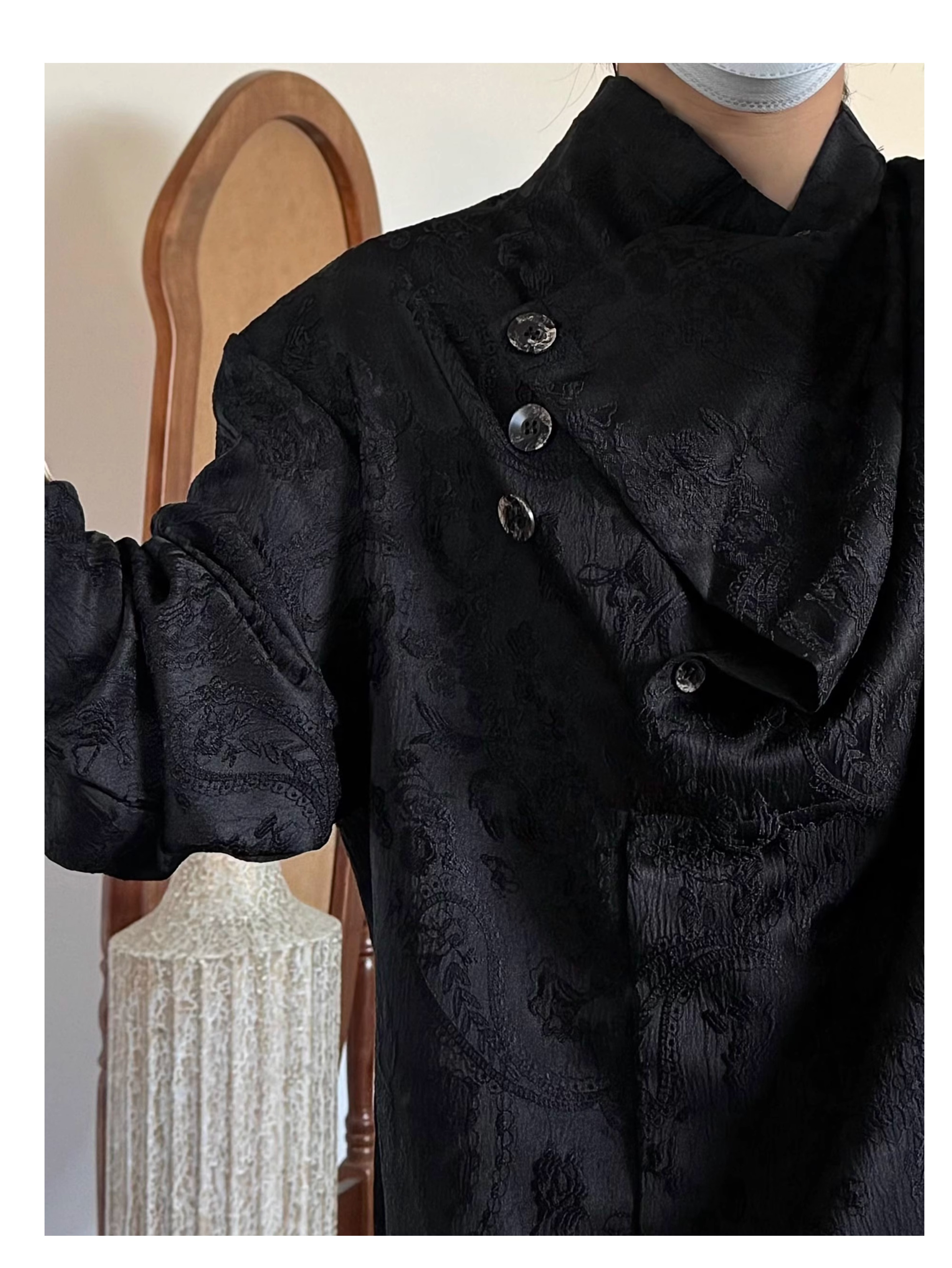 Embroidery Jacquard Asymmetrical Long Sleeve Shirt WN19942