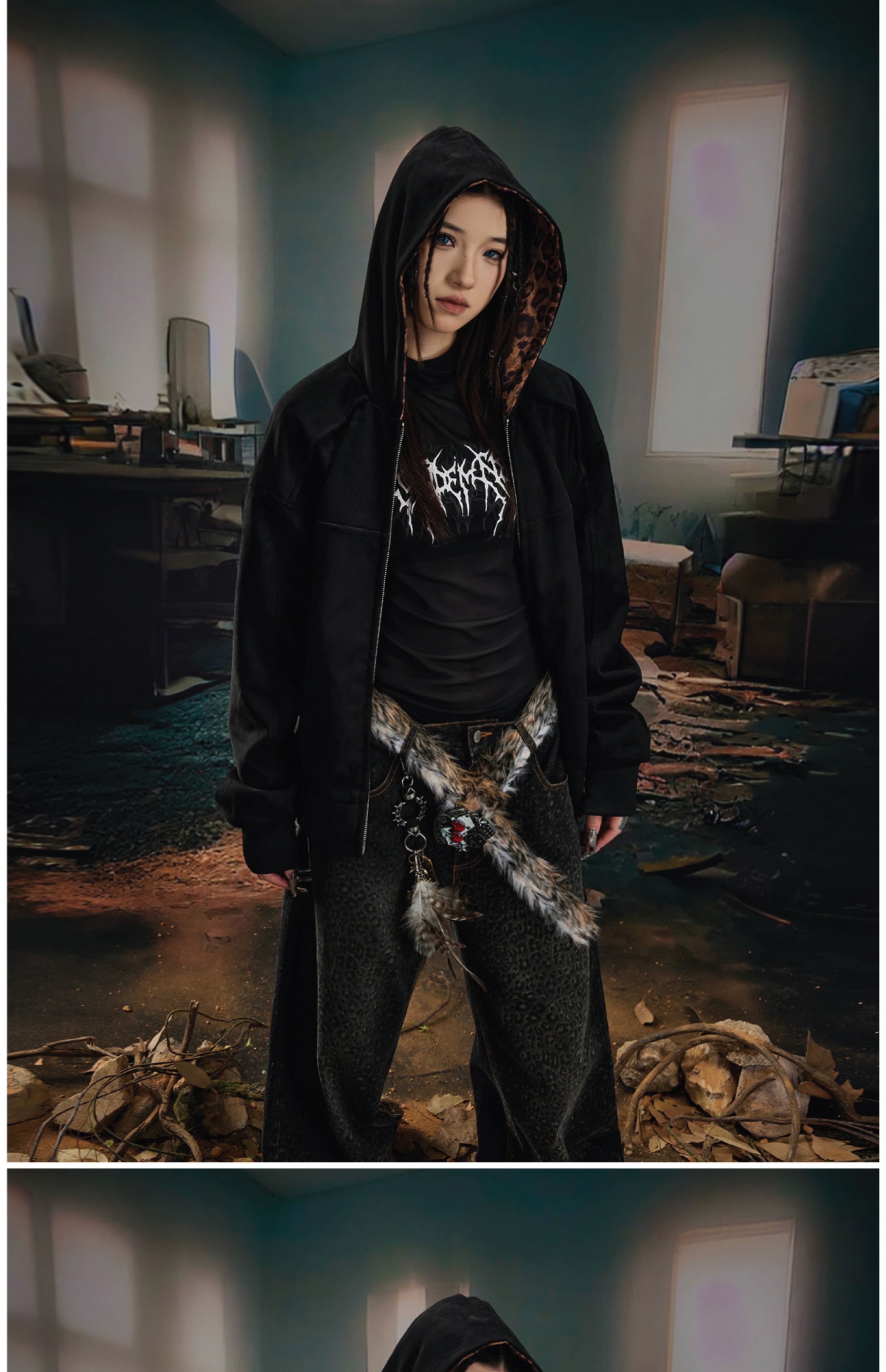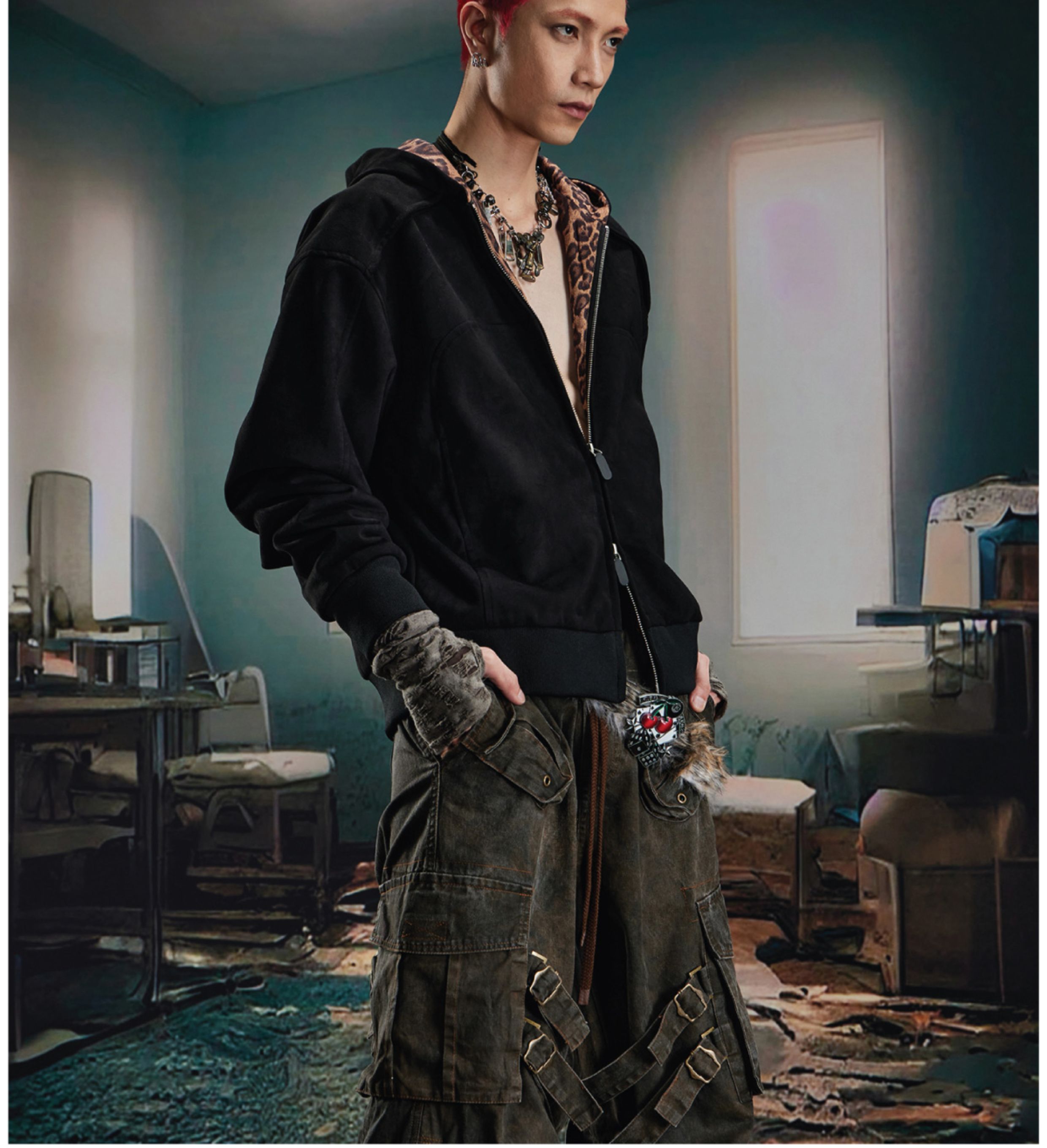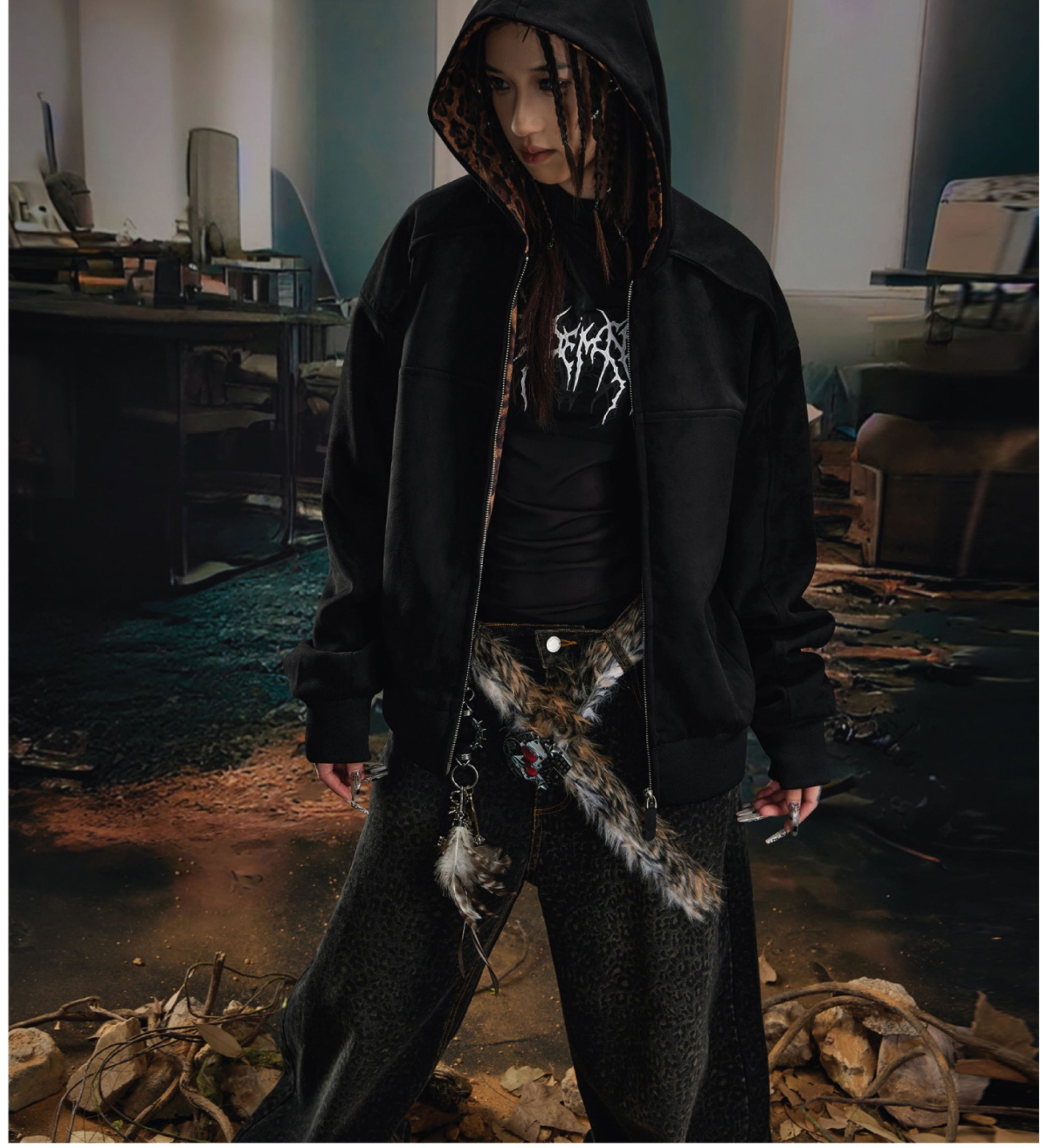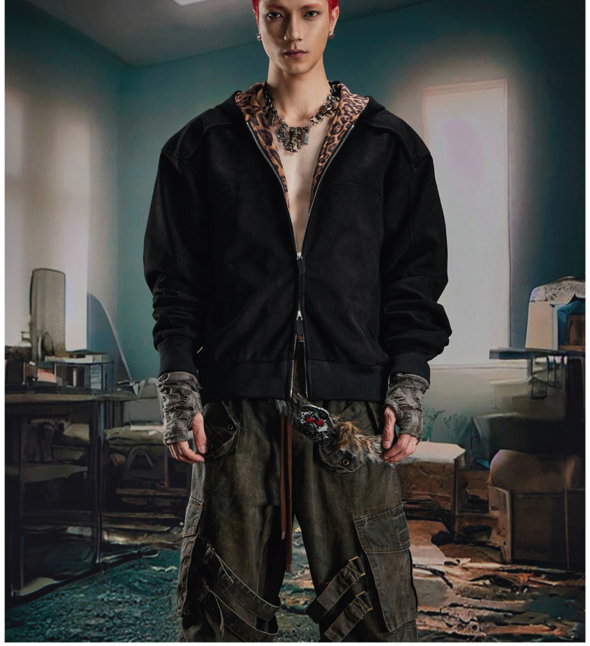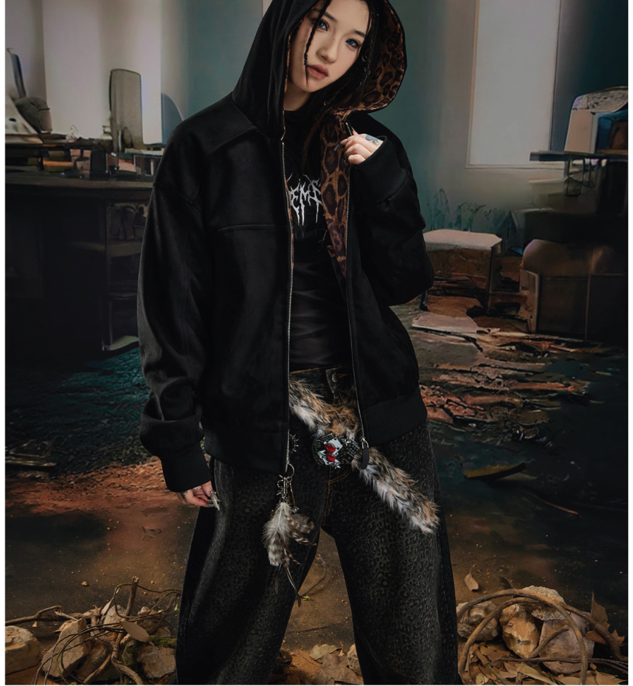 Leopard Print Double Zipper Hoodie WN20570
