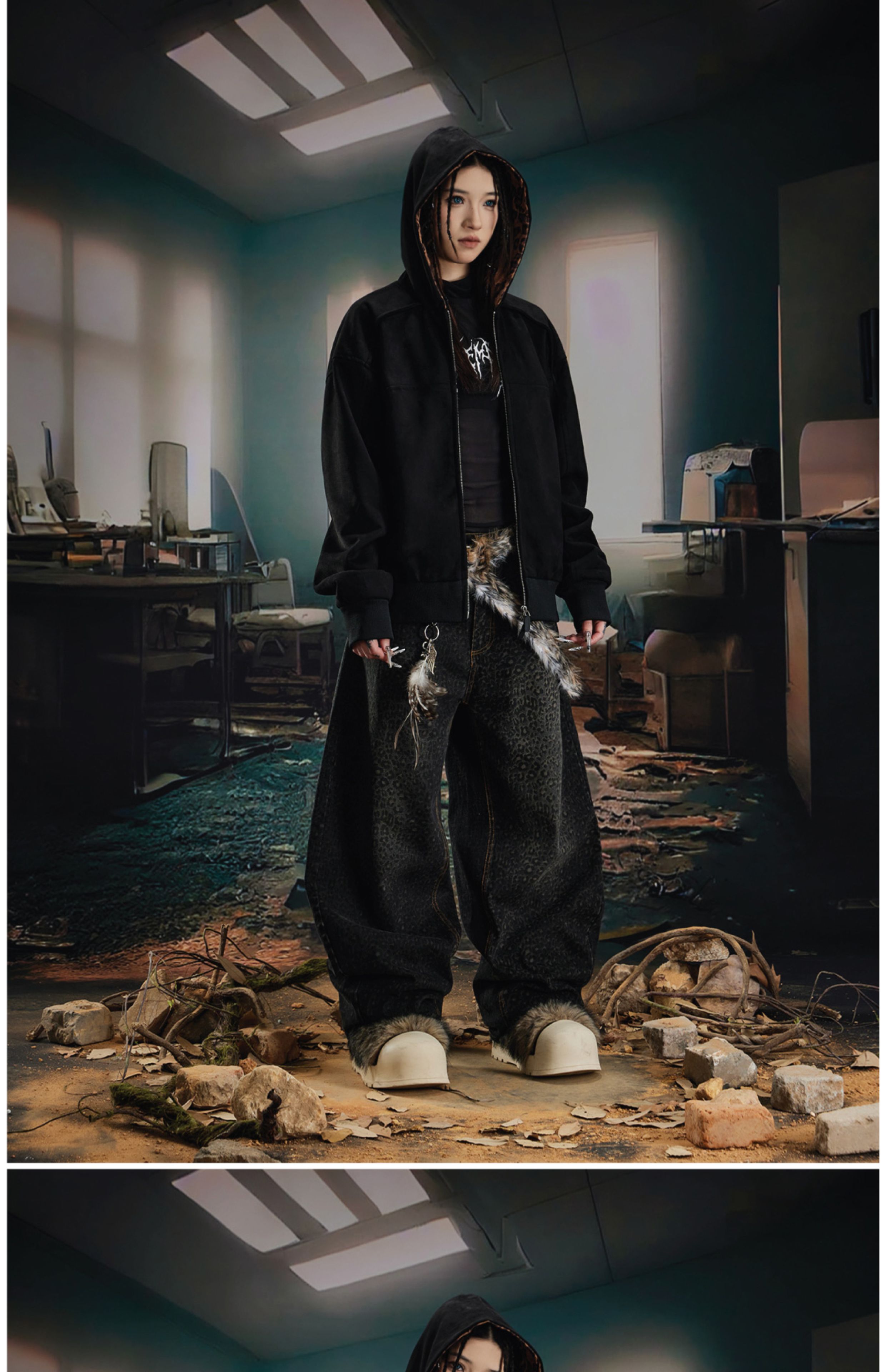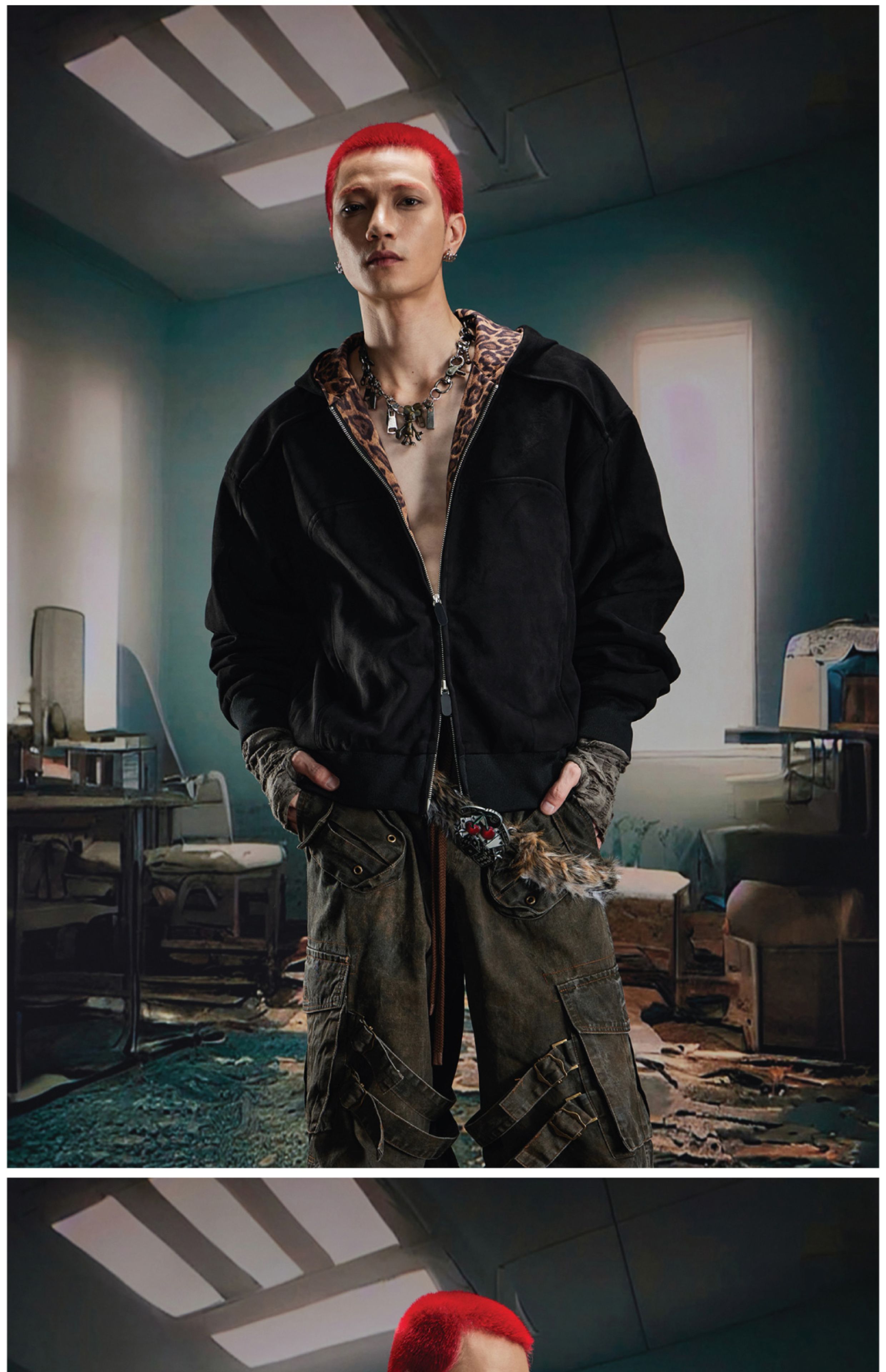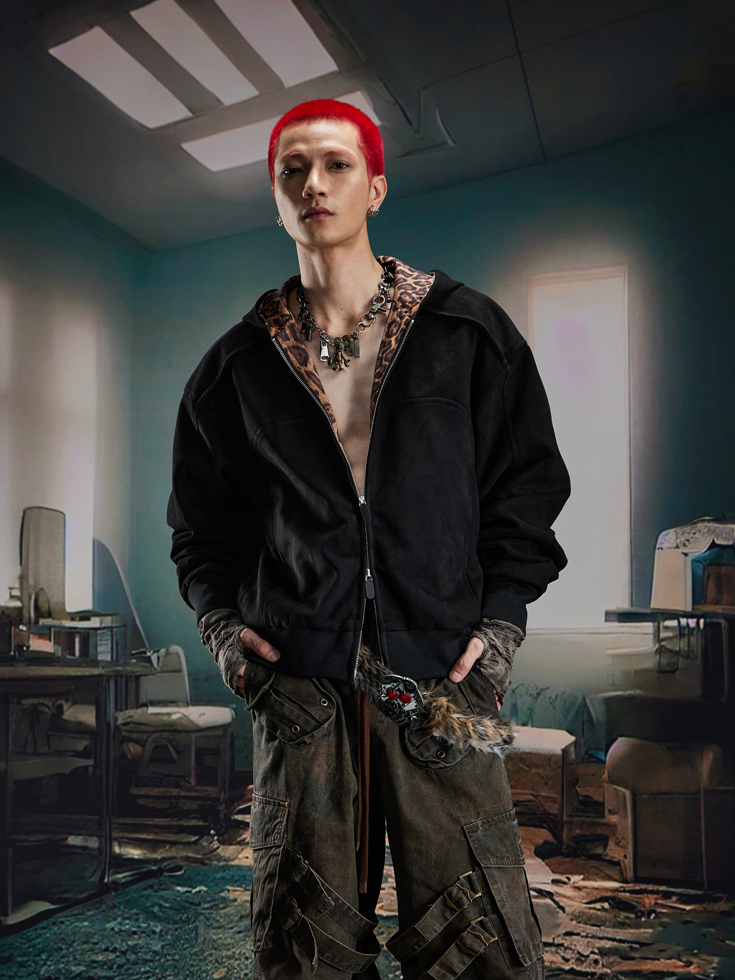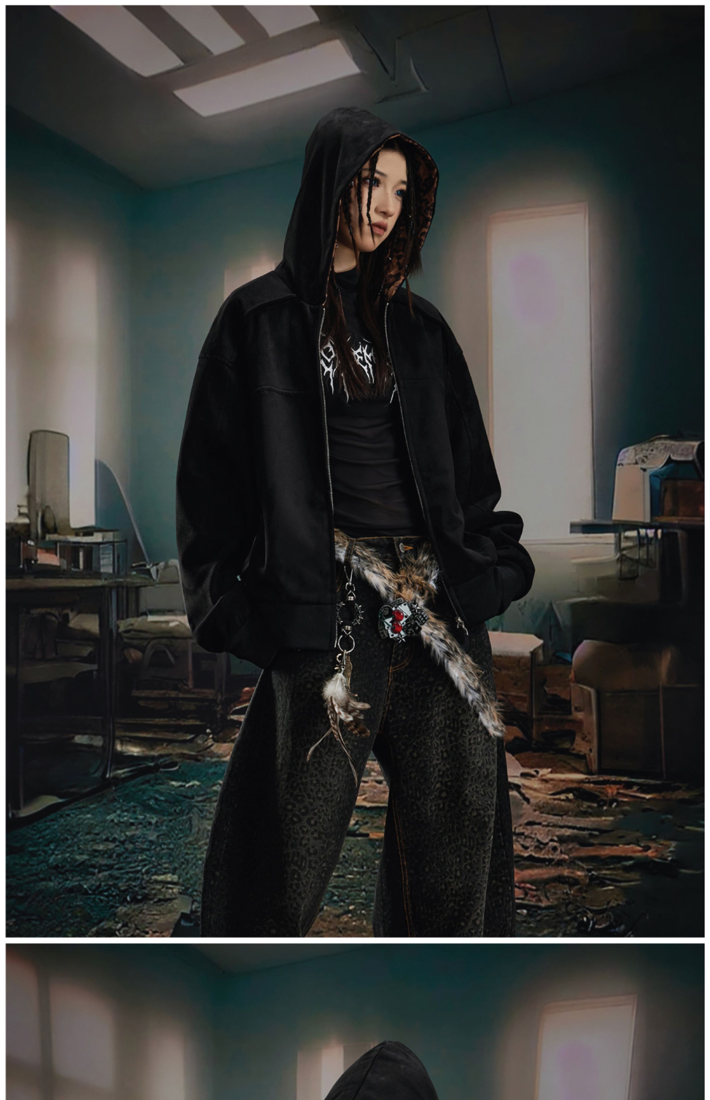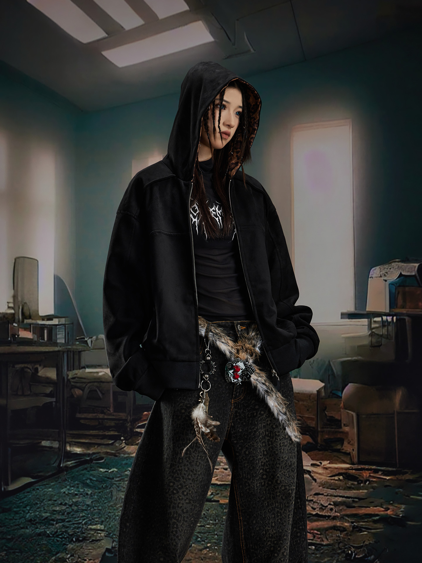 Leopard Print Double Zipper Hoodie WN20570