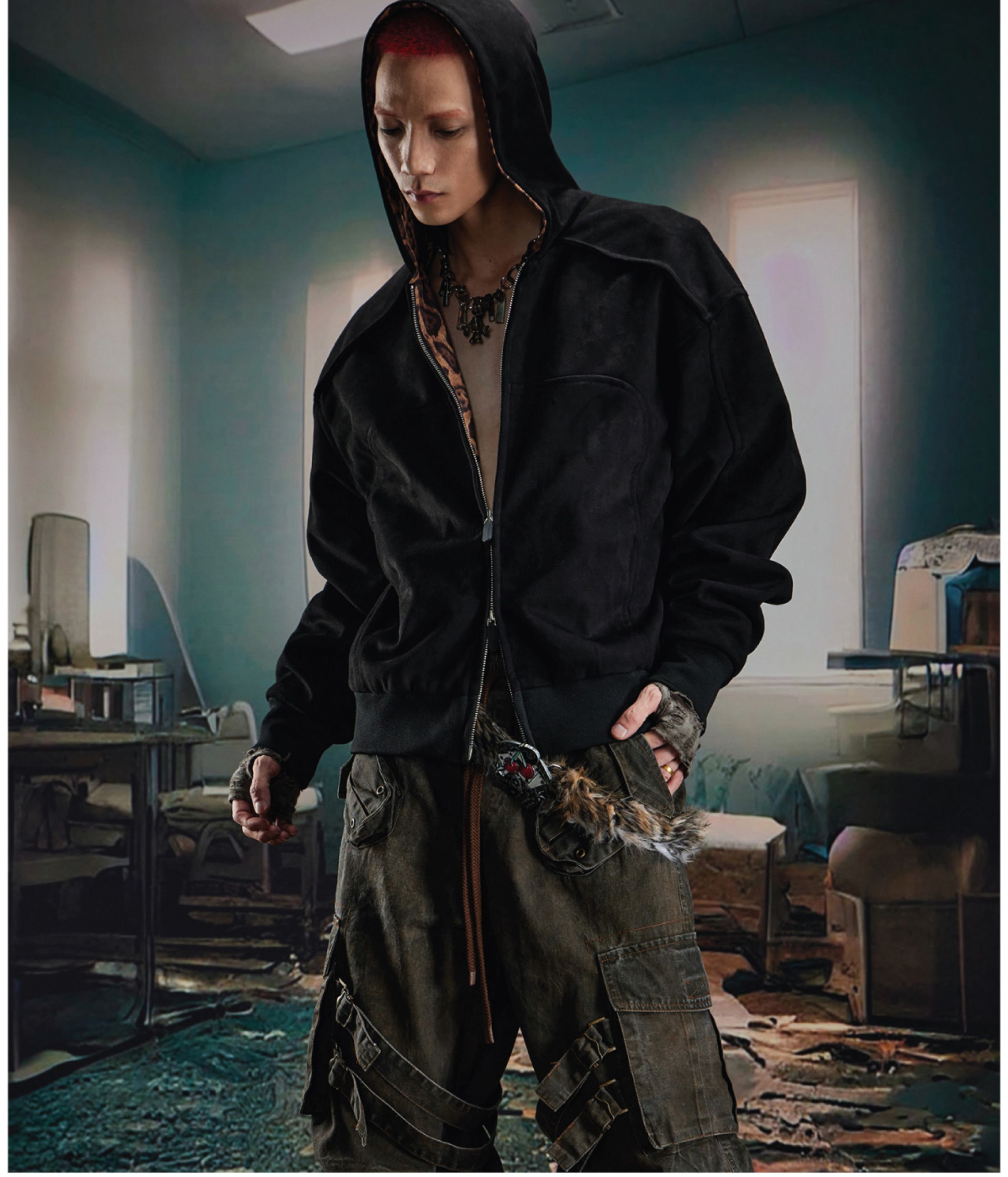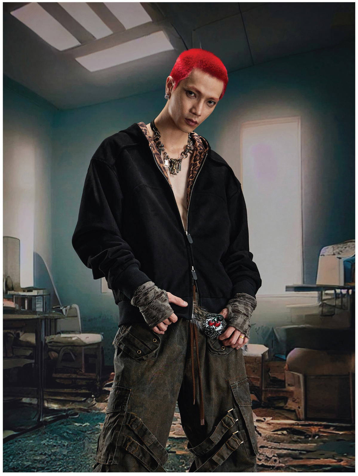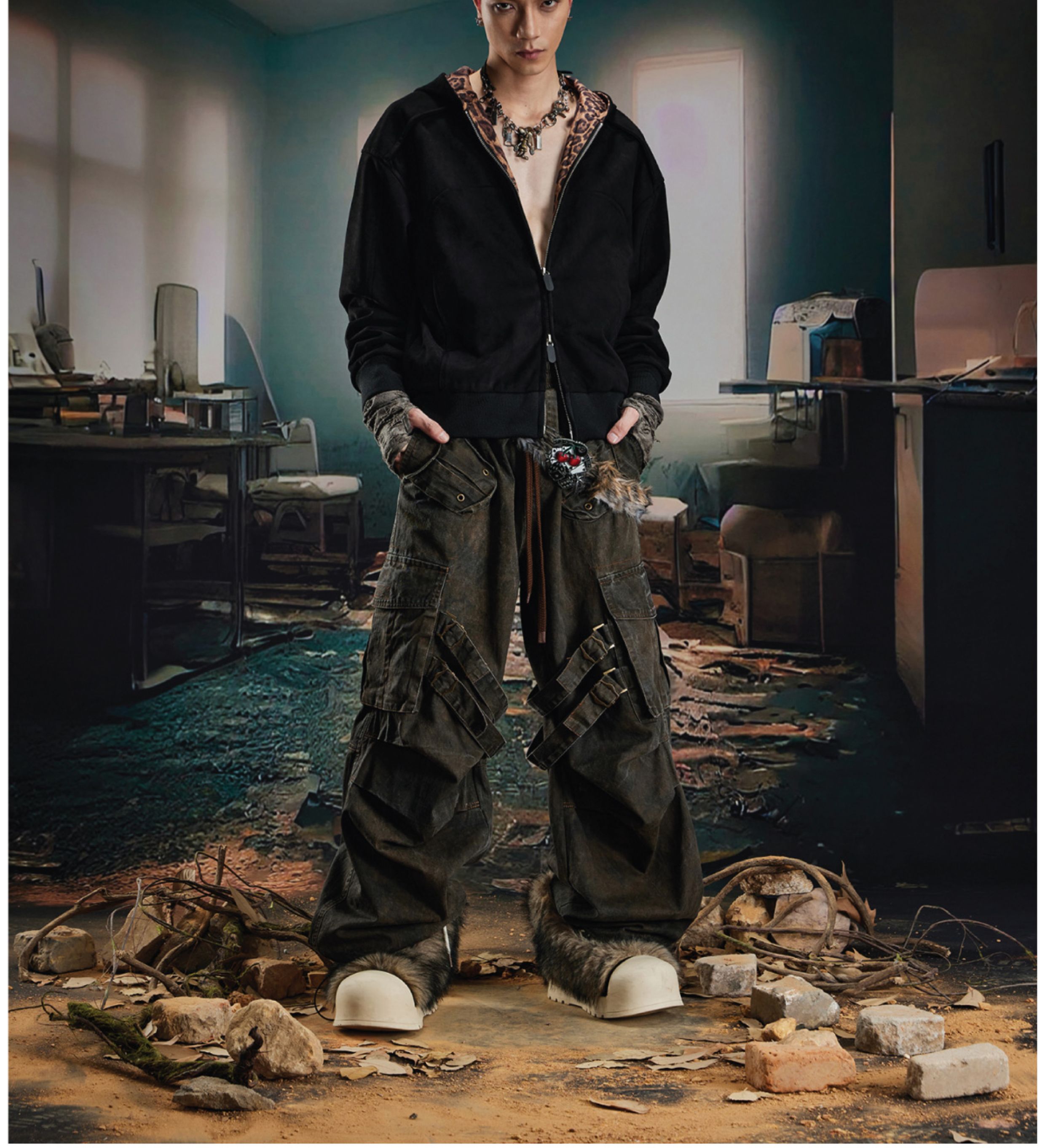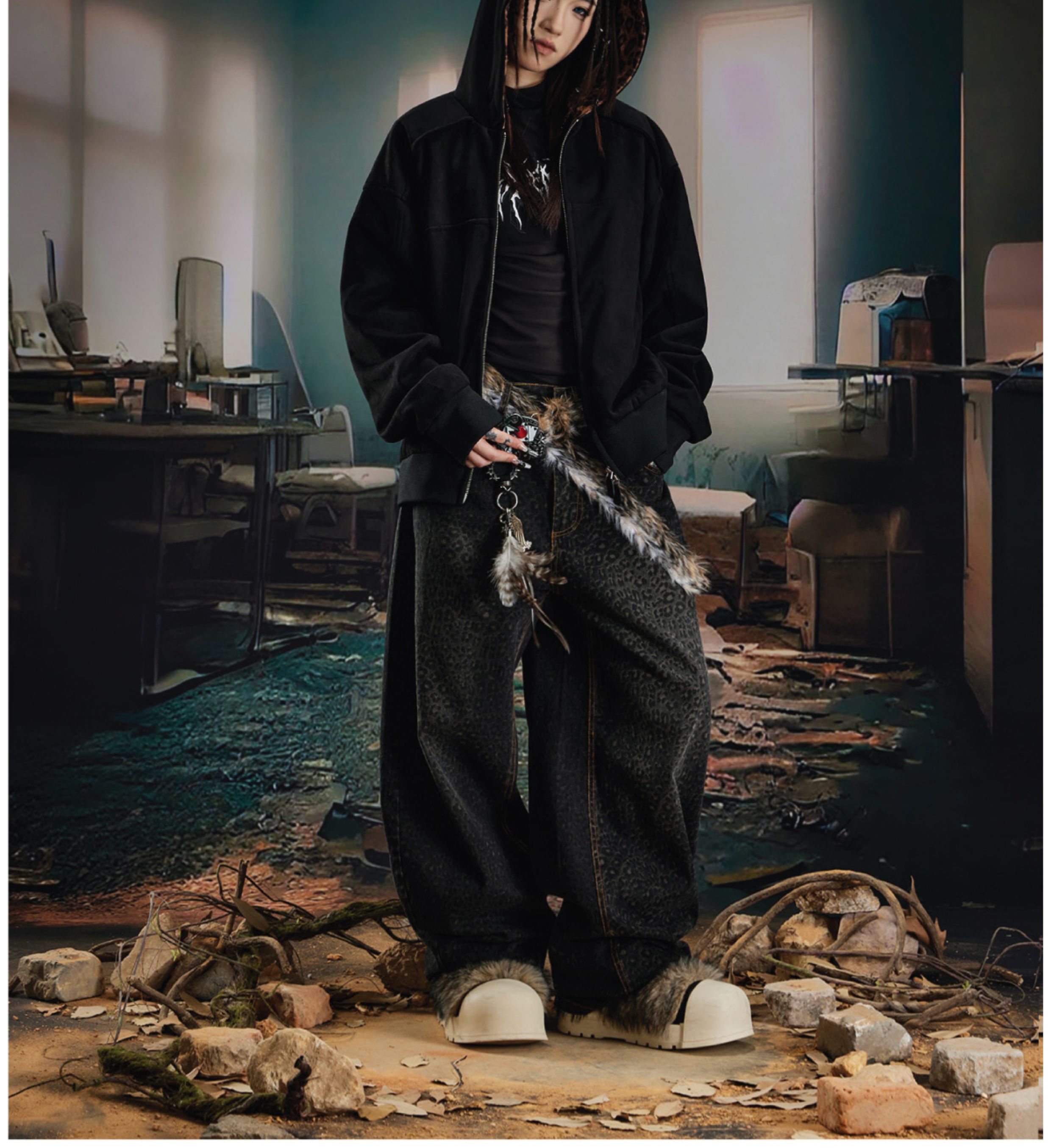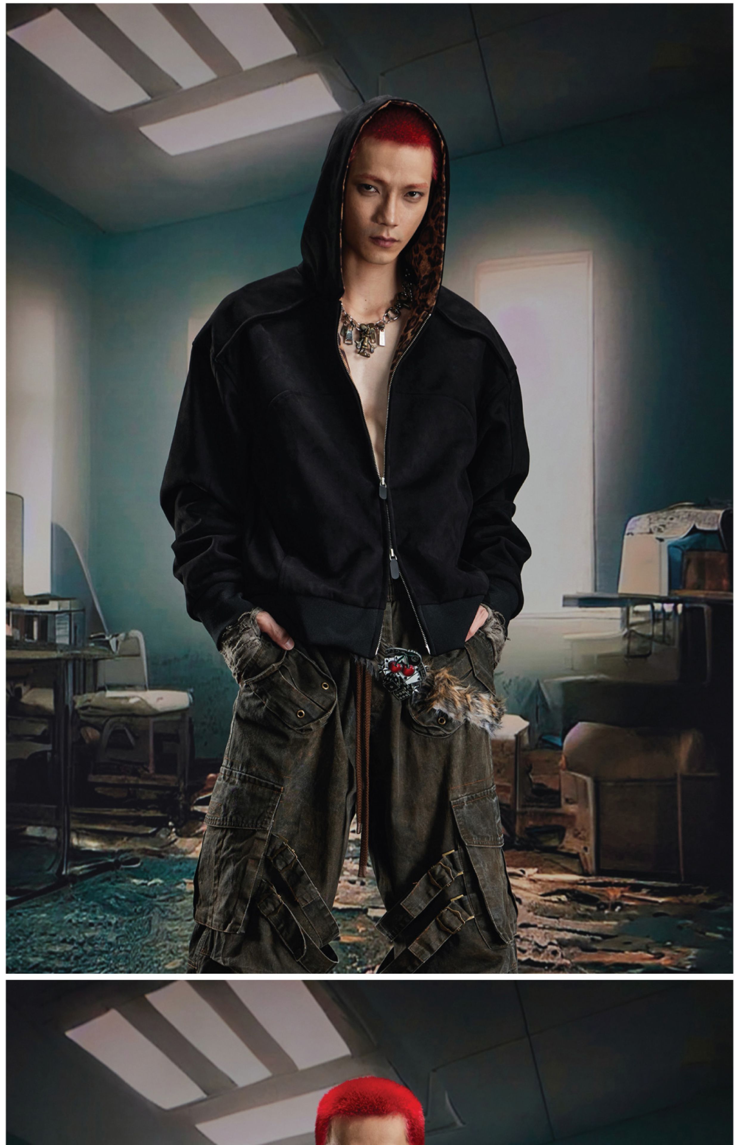Leopard Print Double Zipper Hoodie WN20570