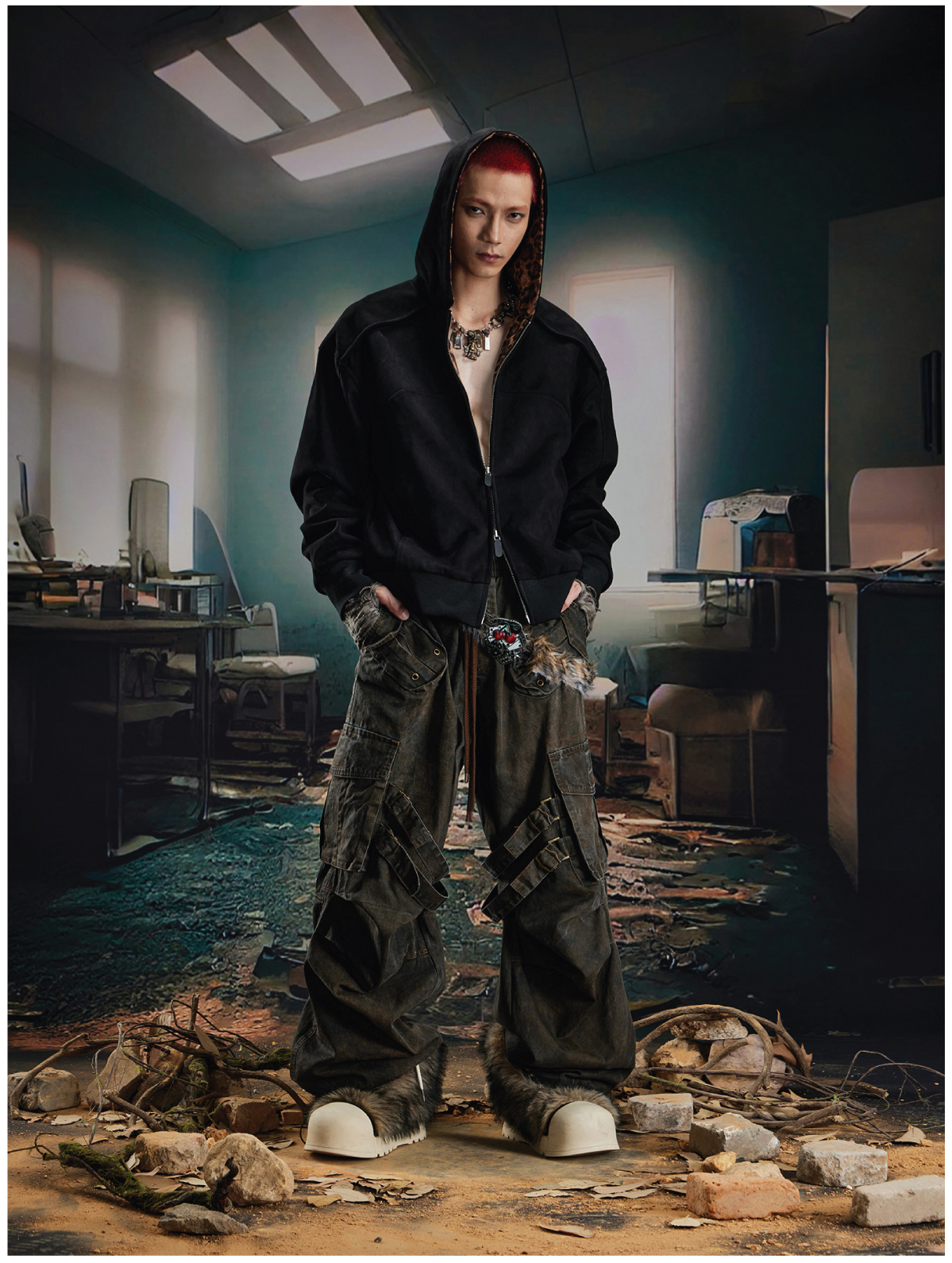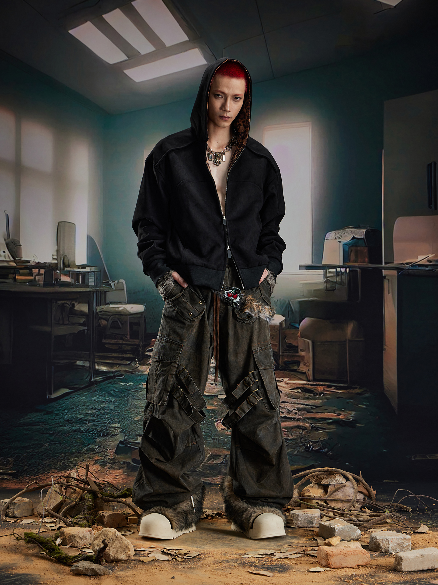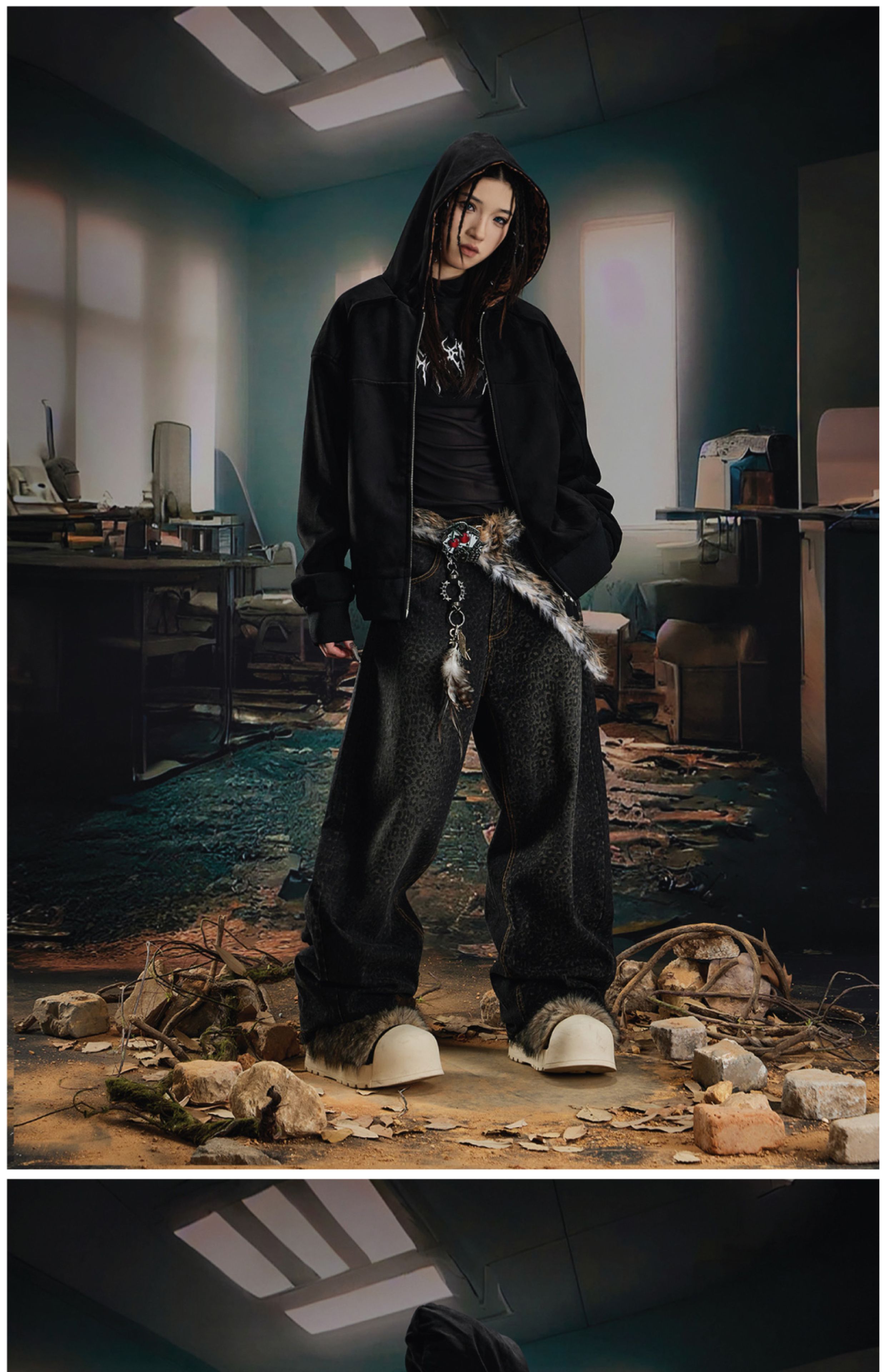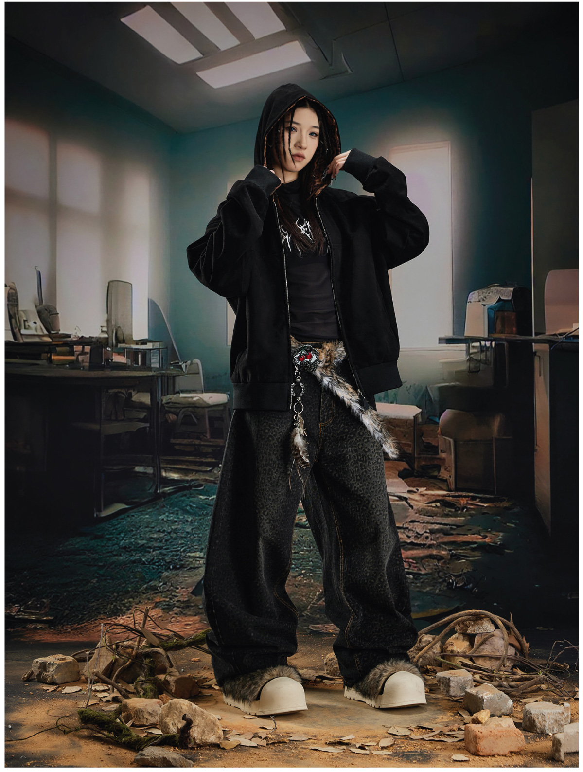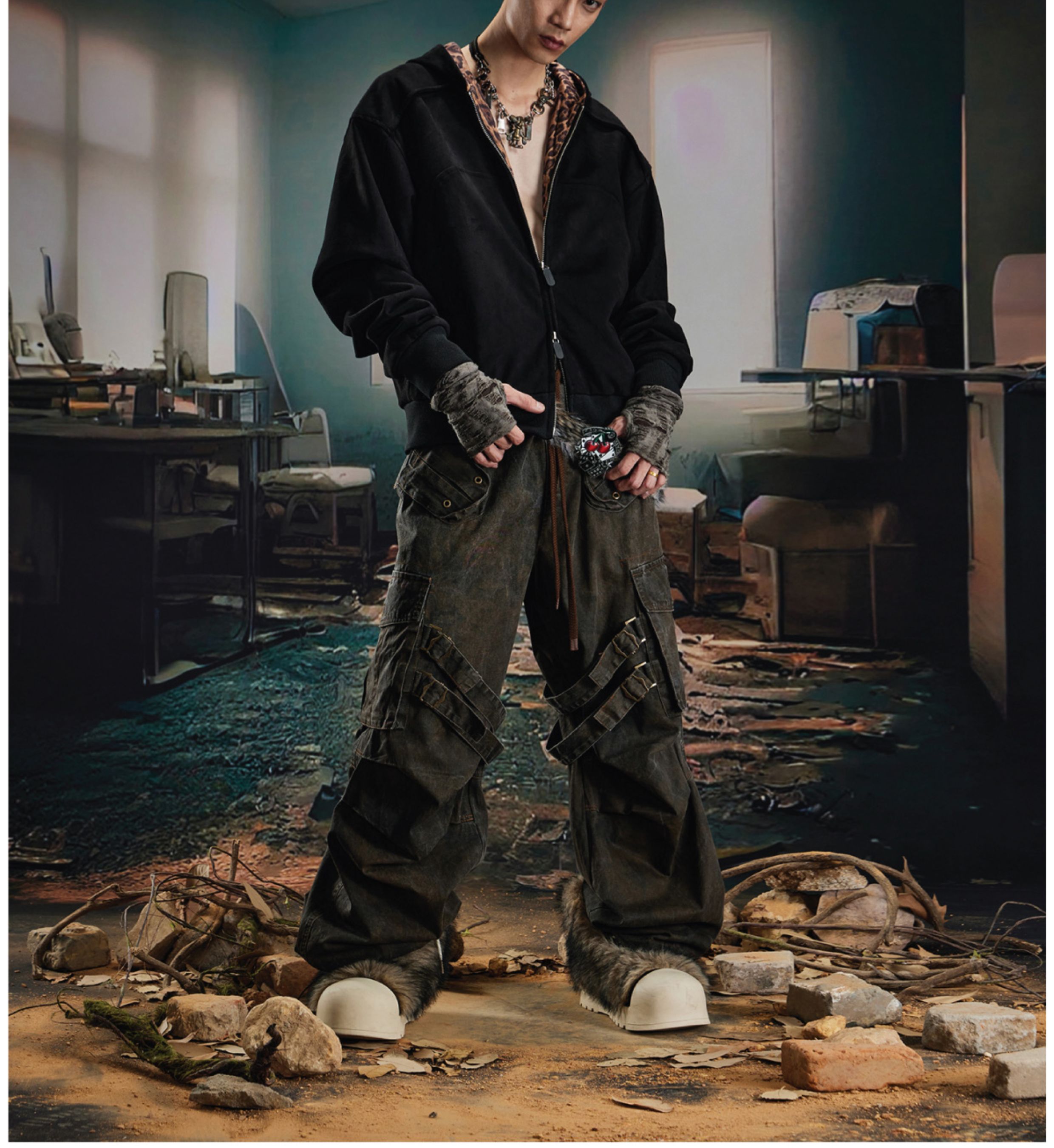 Leopard Print Double Zipper Hoodie WN20570