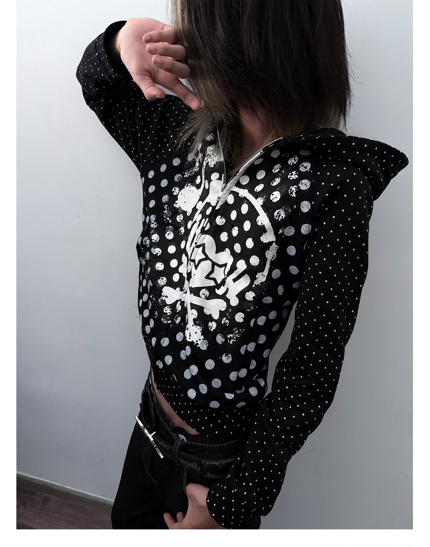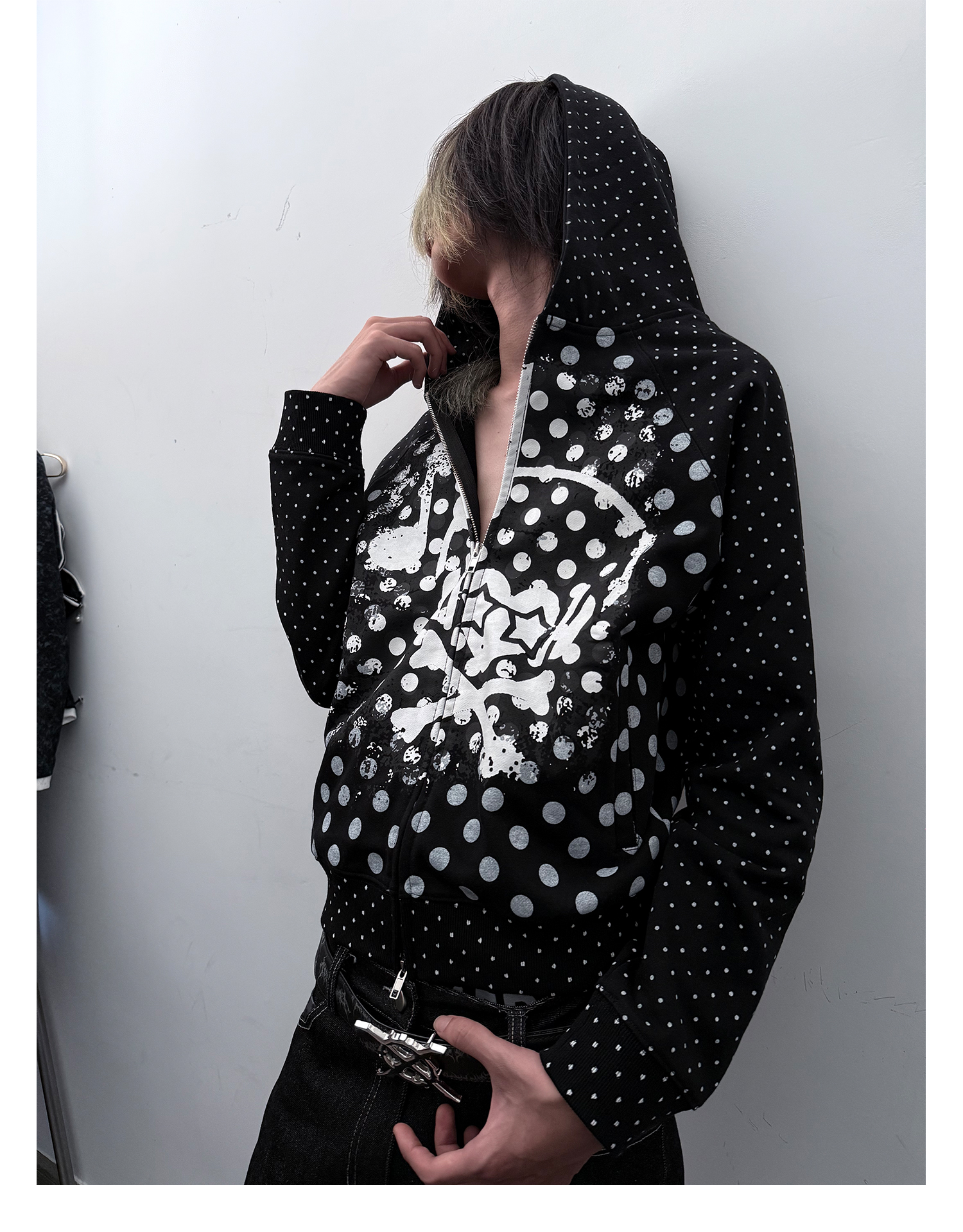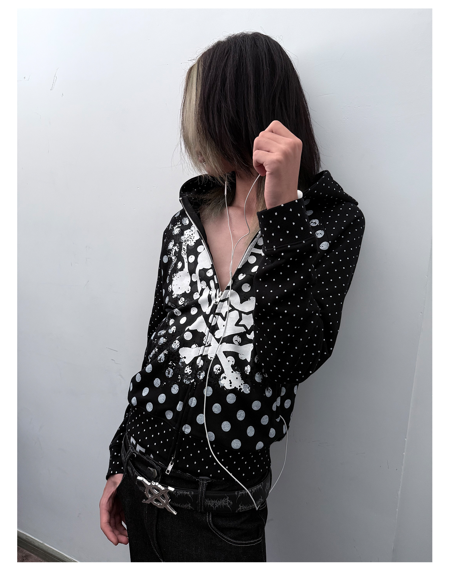 Polka Dot Headphone Skull Note Zipper Hoodie WN20917