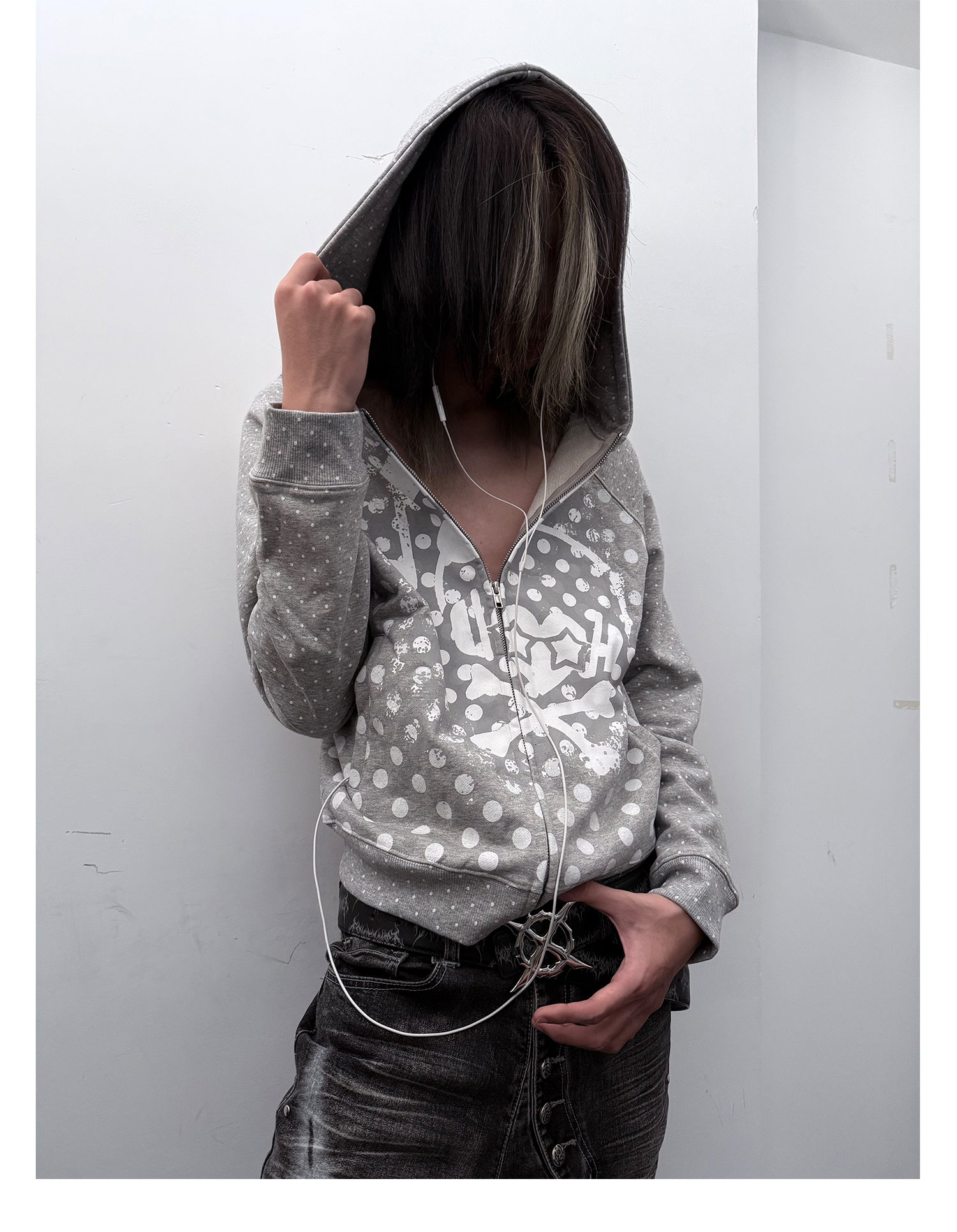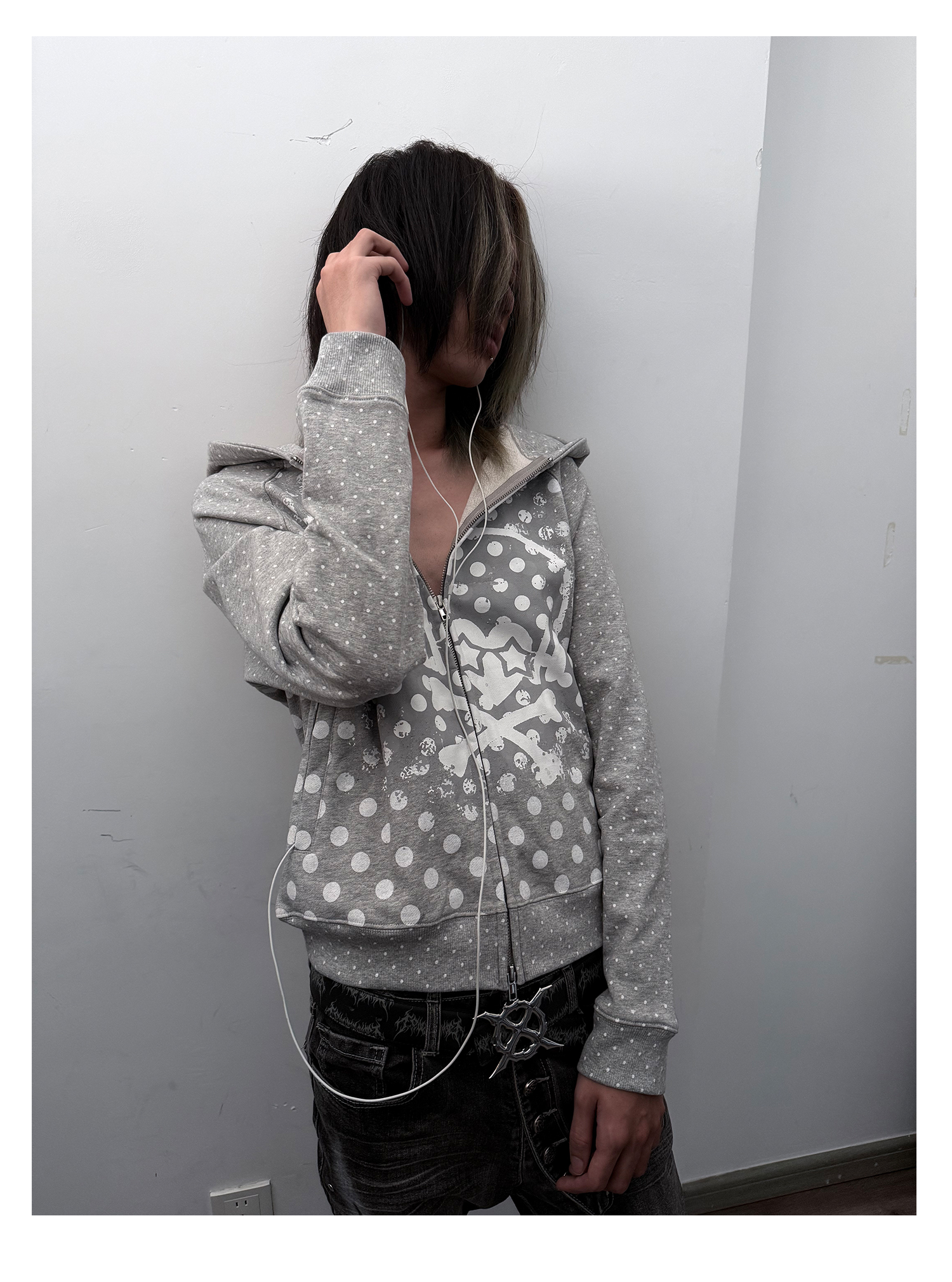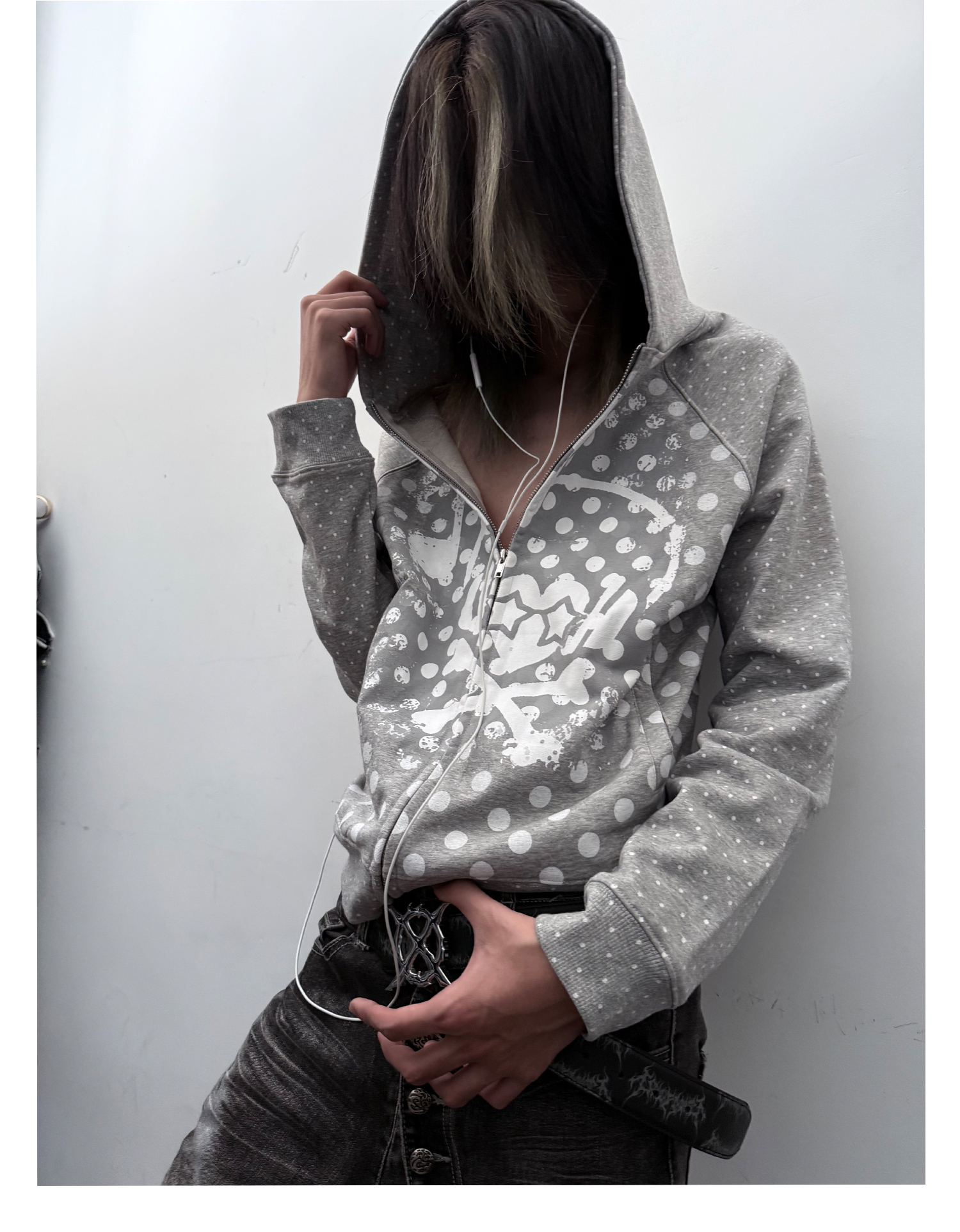 Polka Dot Headphone Skull Note Zipper Hoodie WN20917