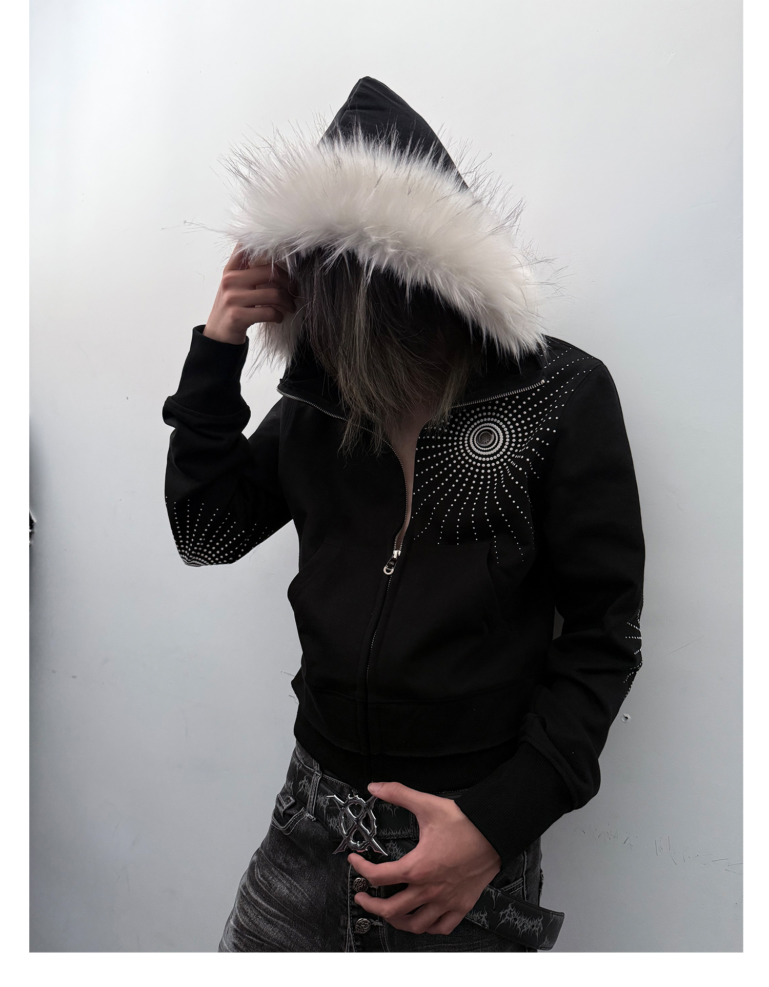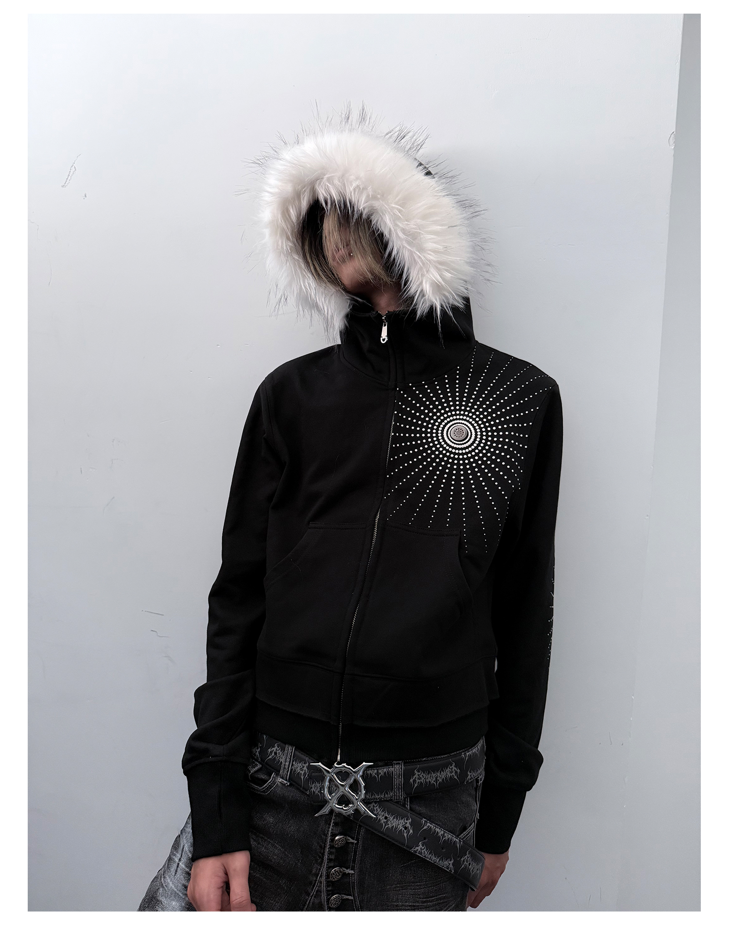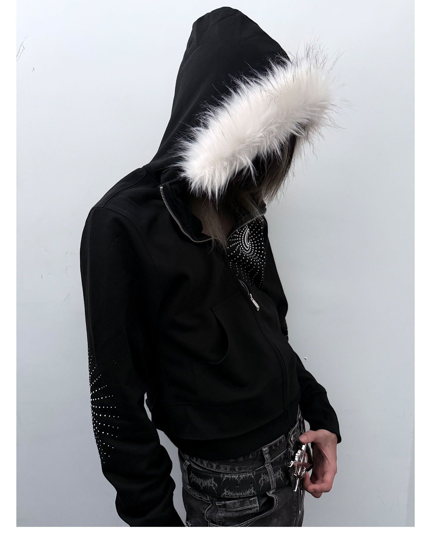 Soundwave Design Fake Fur Collar Zipper Hoodie WN20922