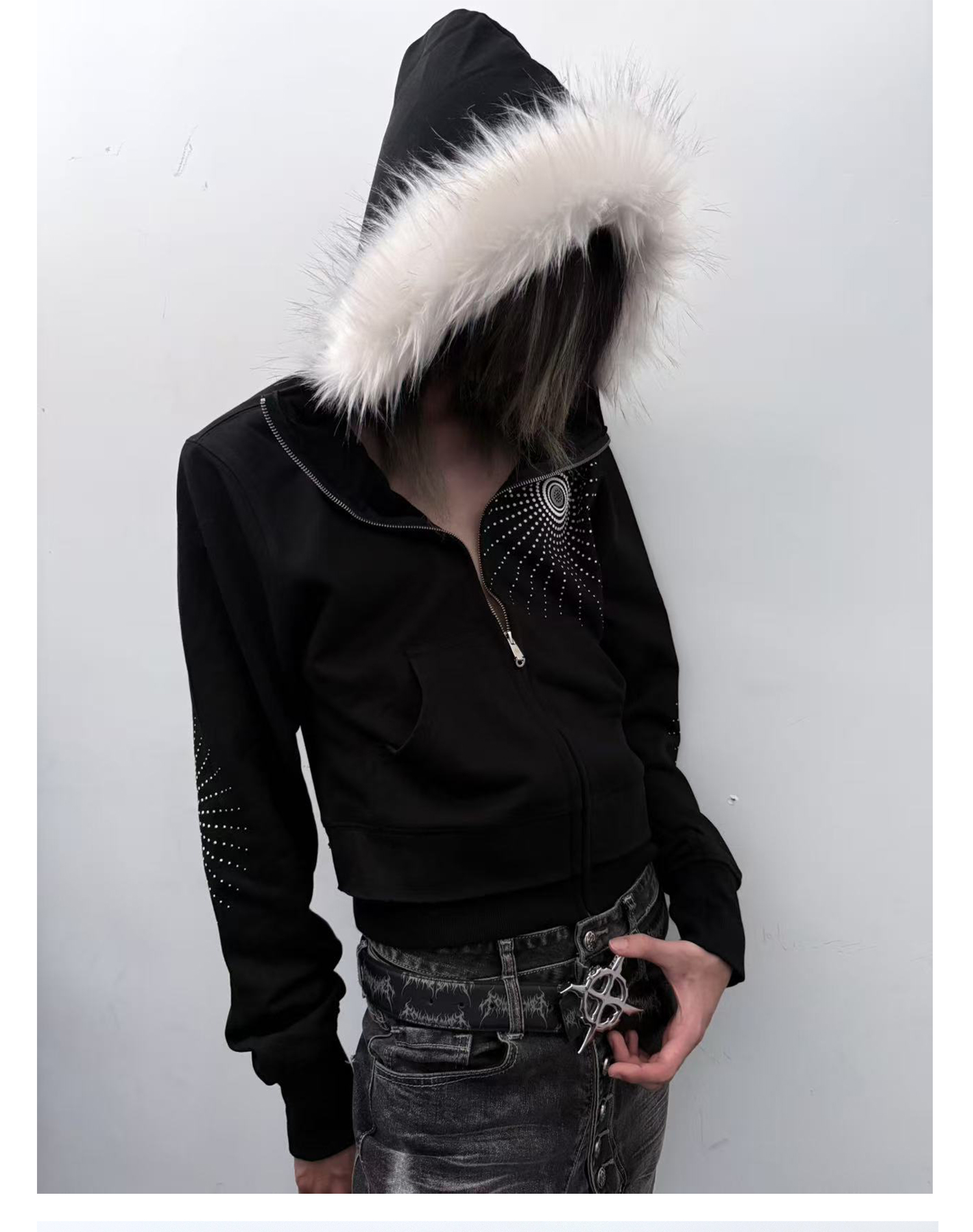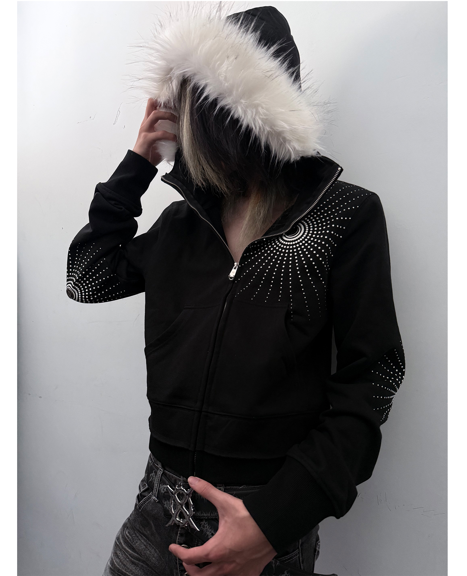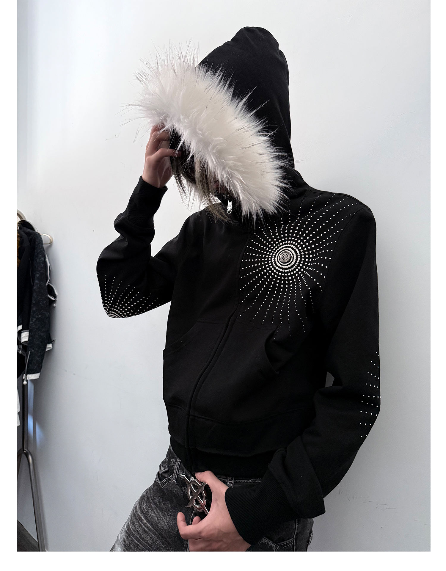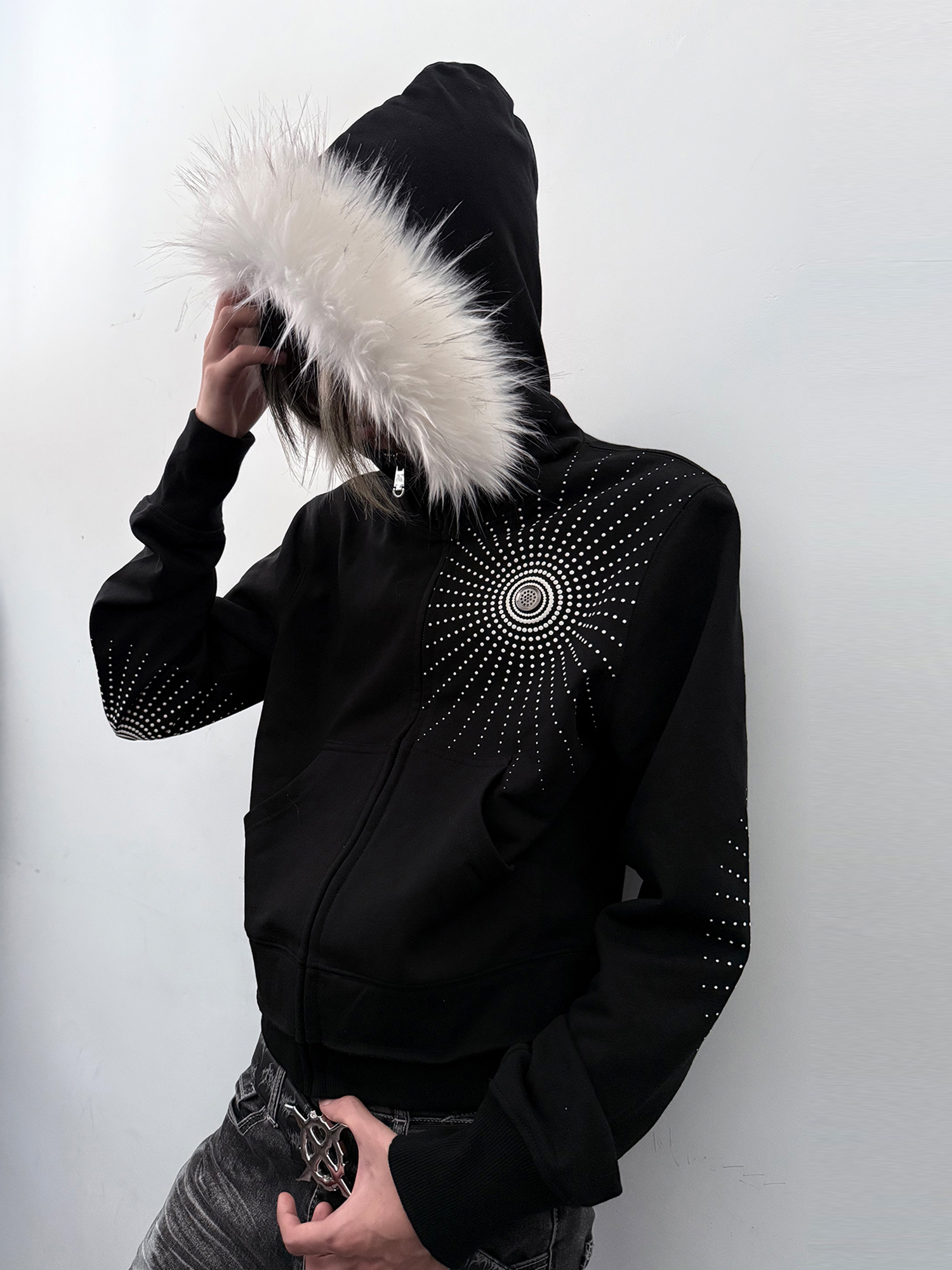 Soundwave Design Fake Fur Collar Zipper Hoodie WN20922