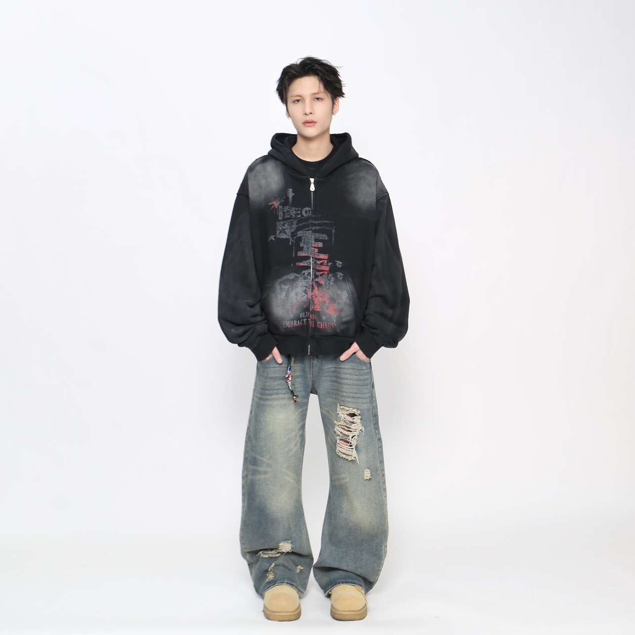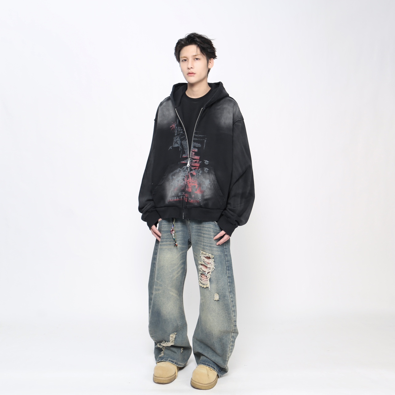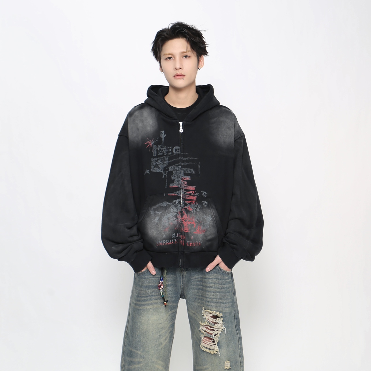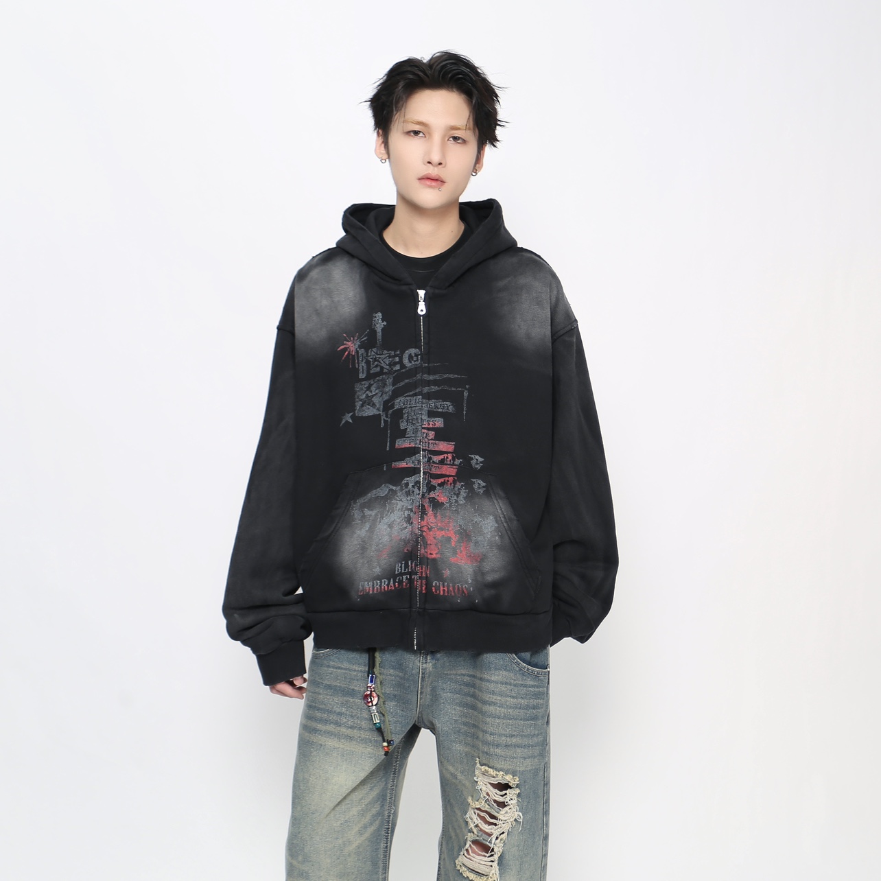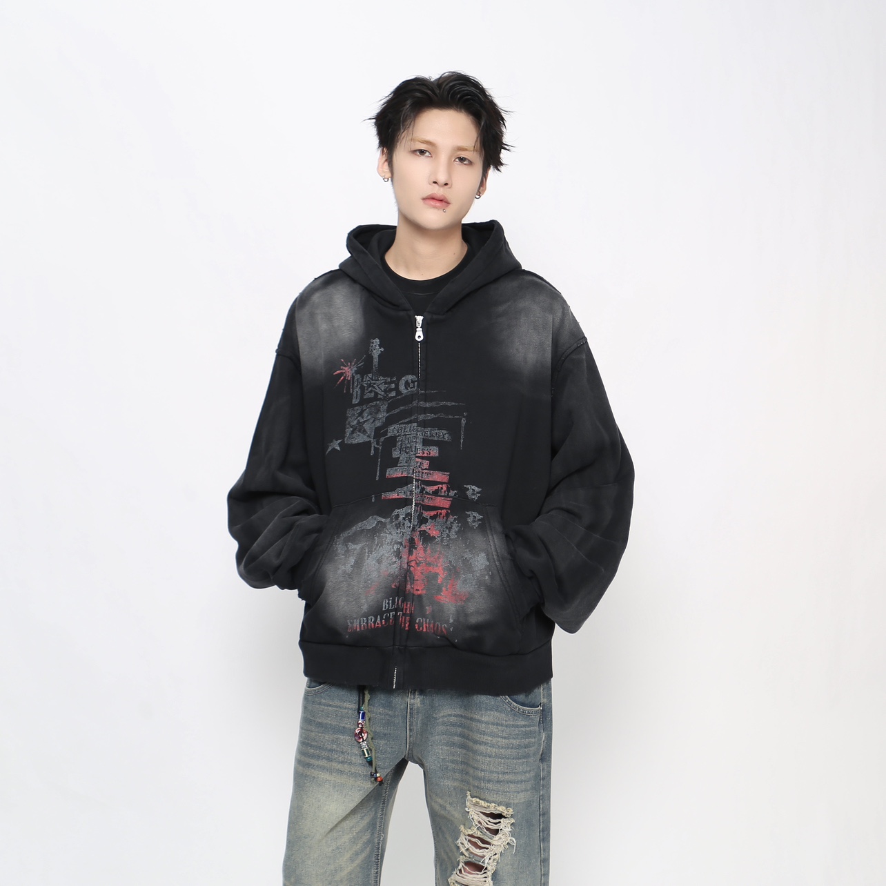 Heavyweight Spray Paint Zipper Hoodie WN21021