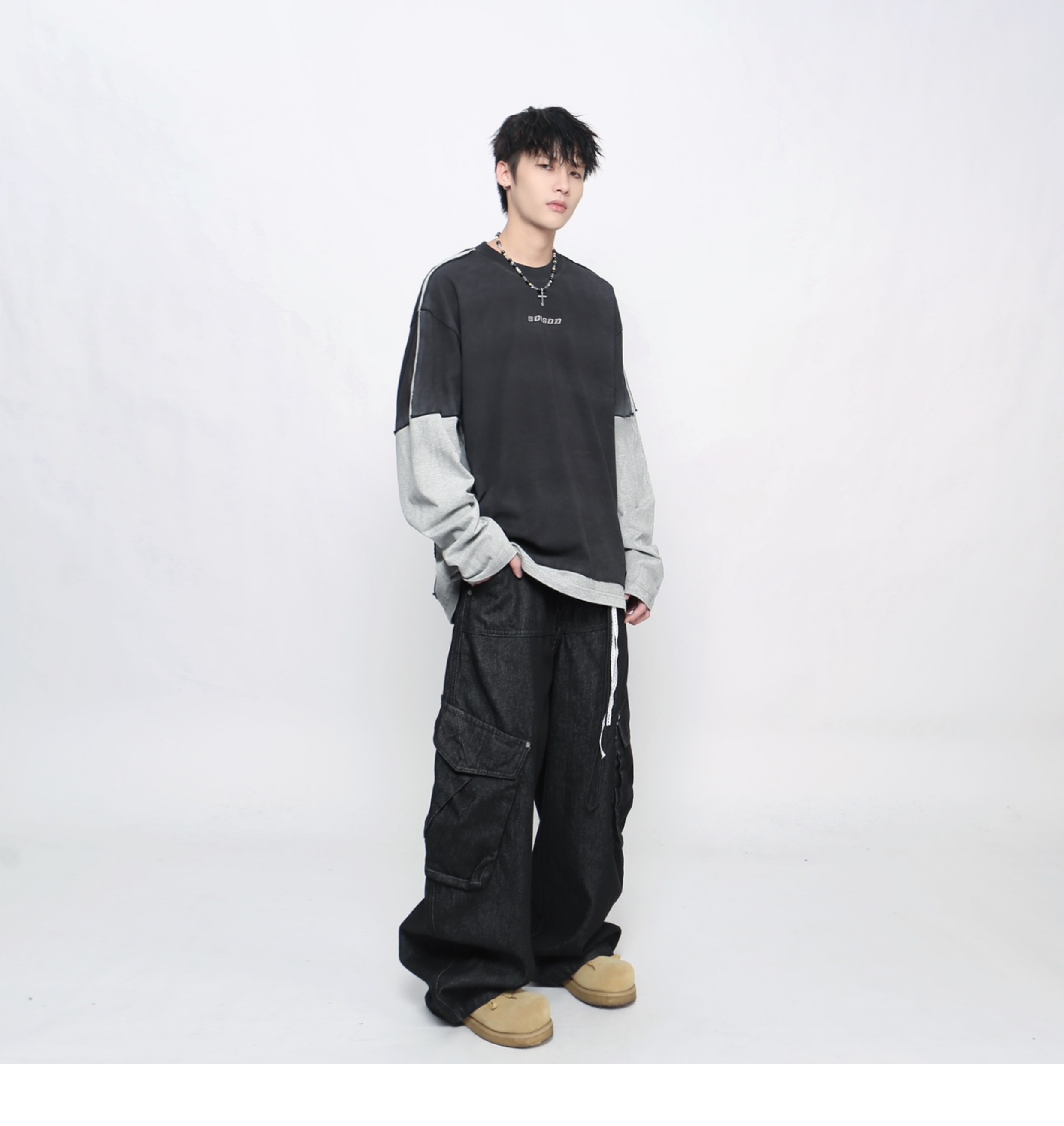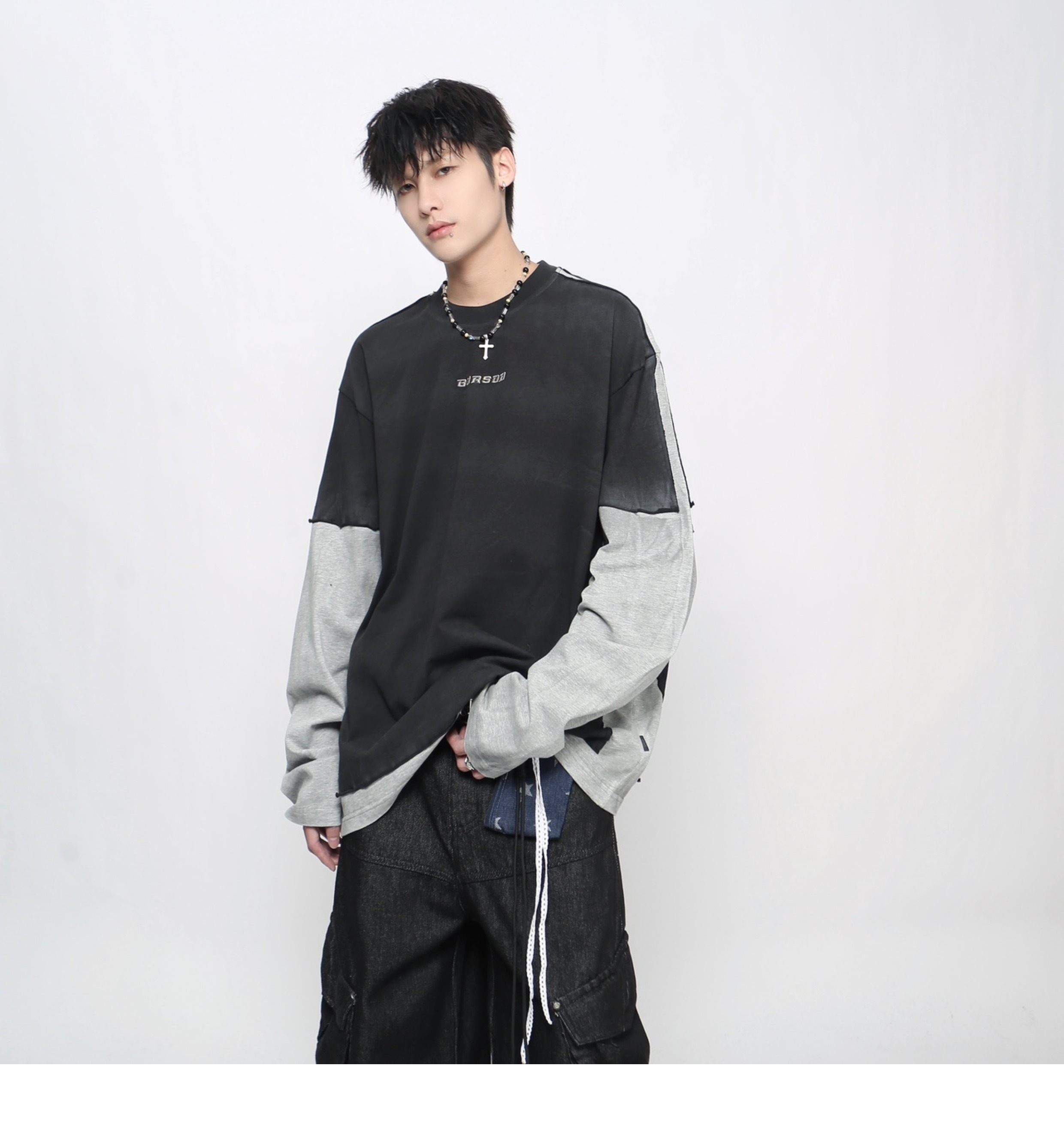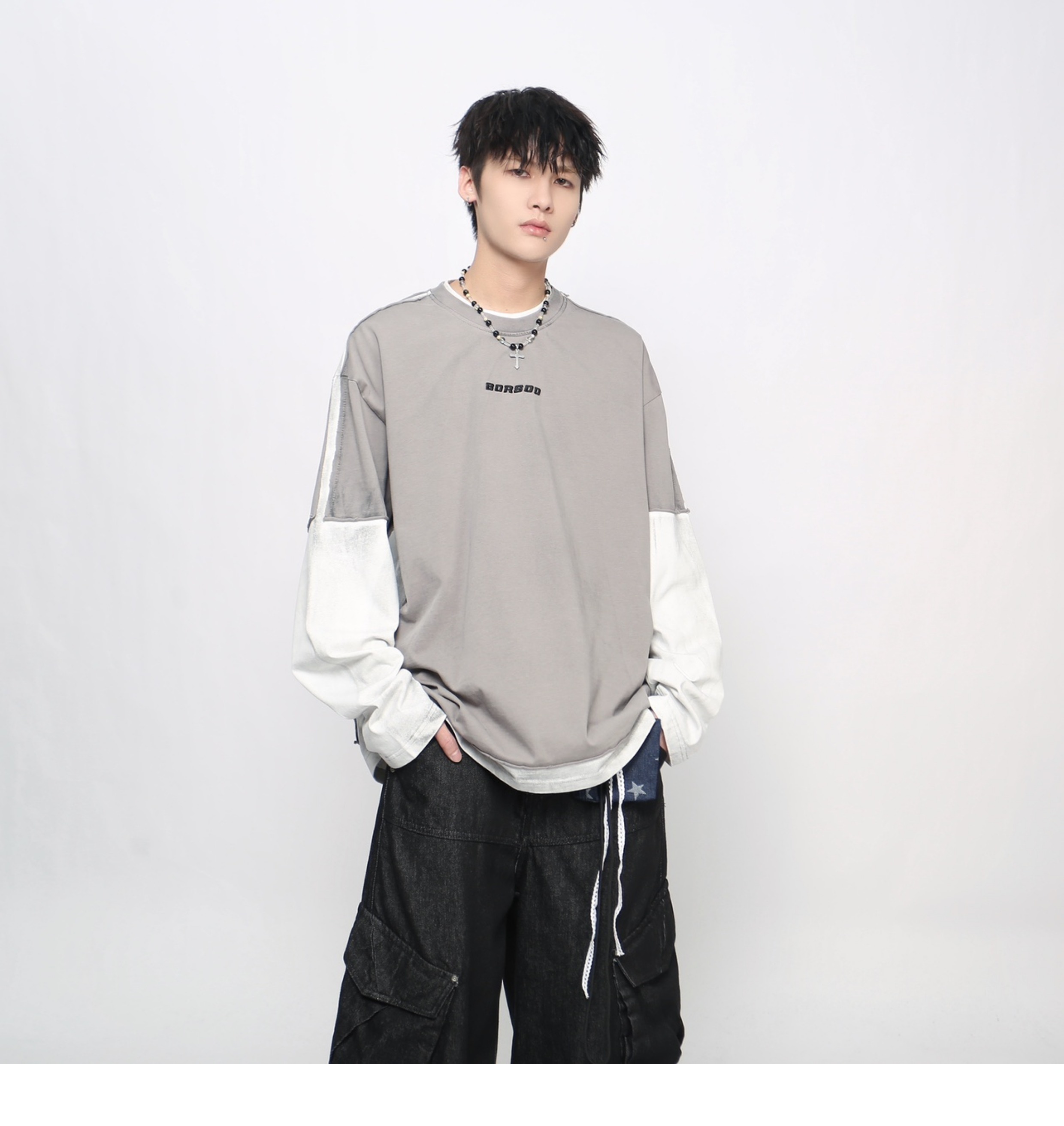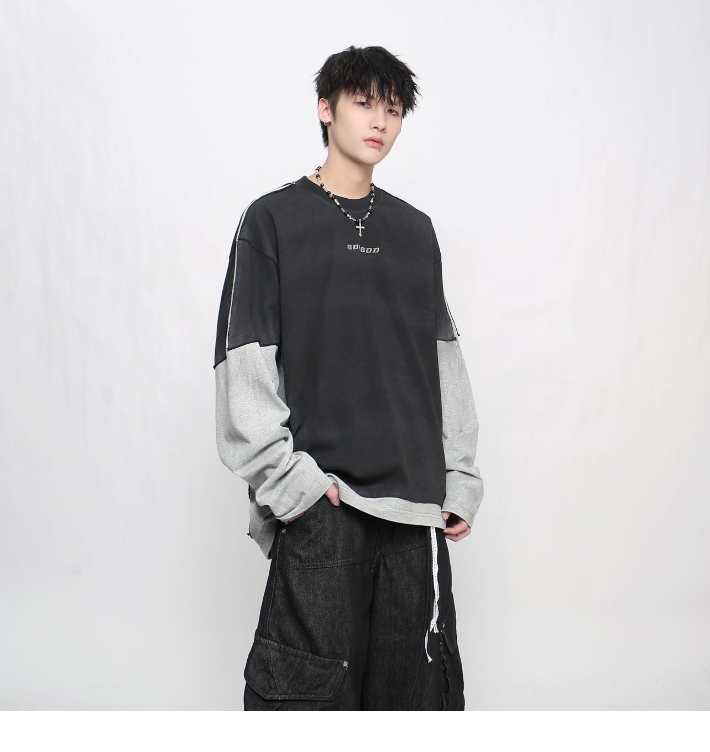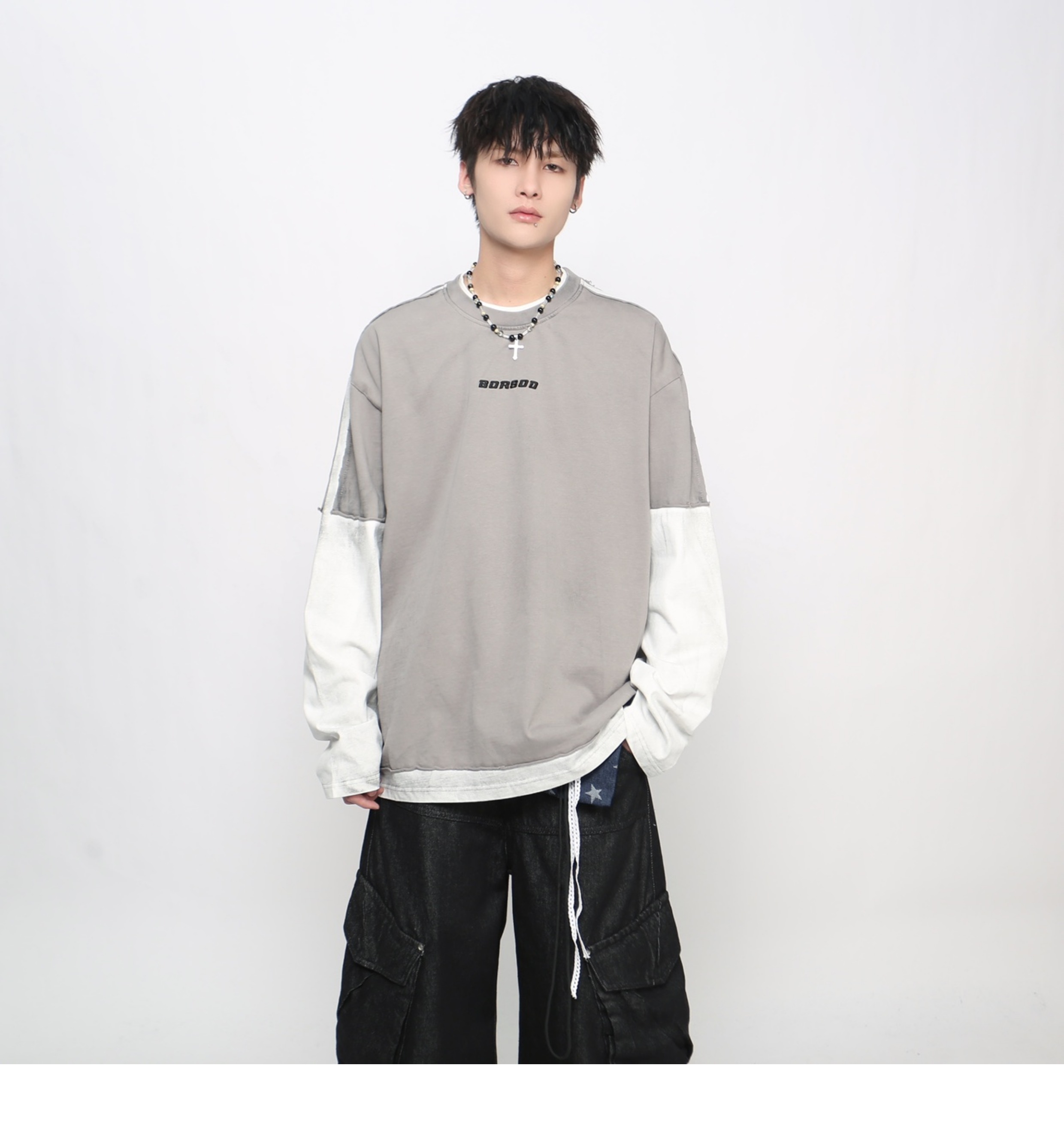Heavyweight Mix Patchwork Long Sleeve T-Shirt WN21034