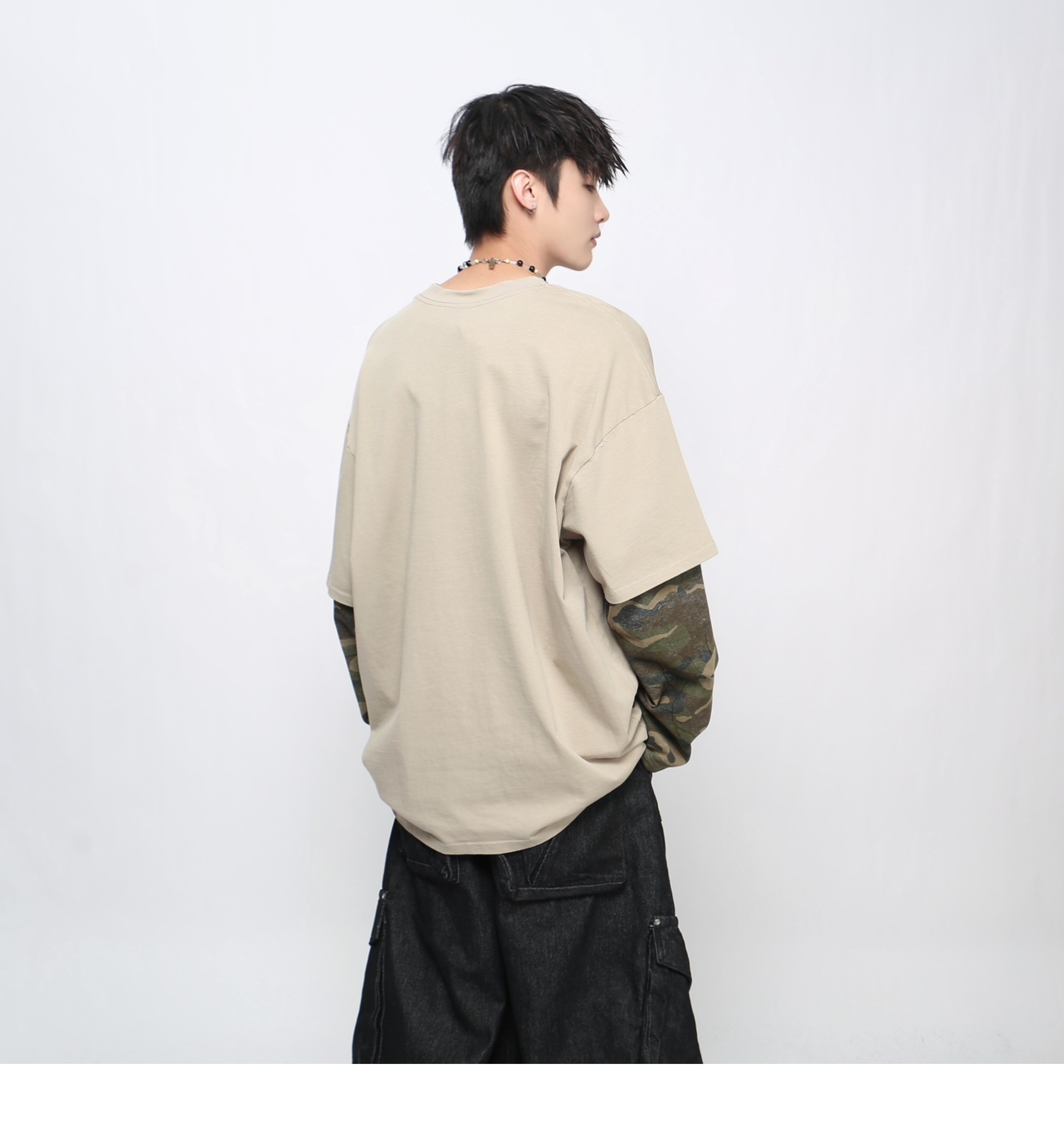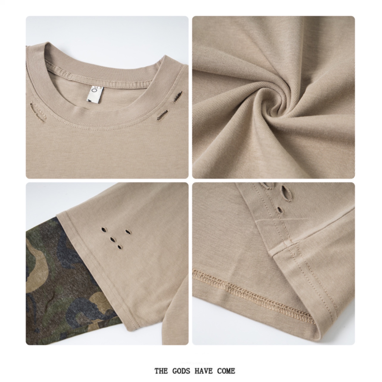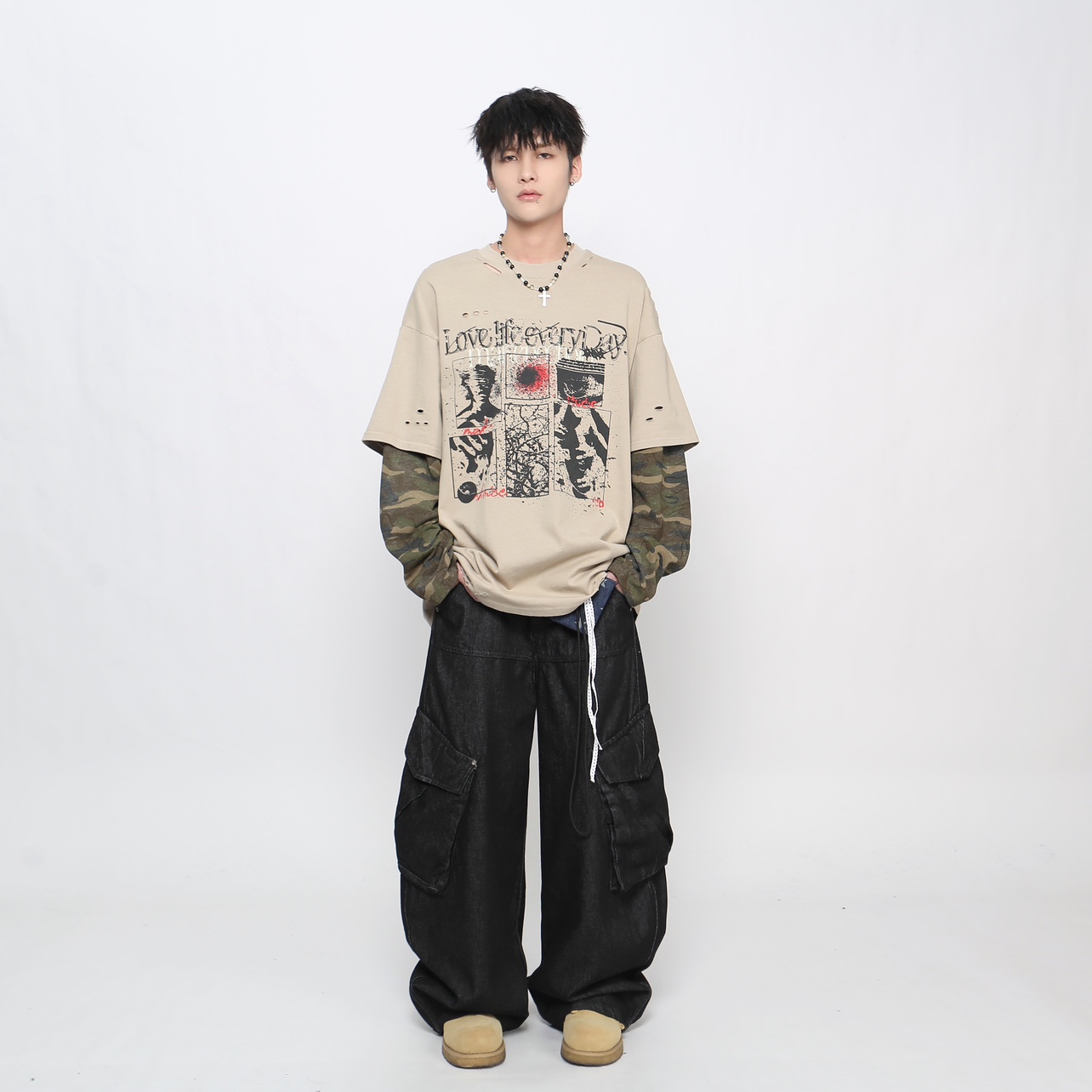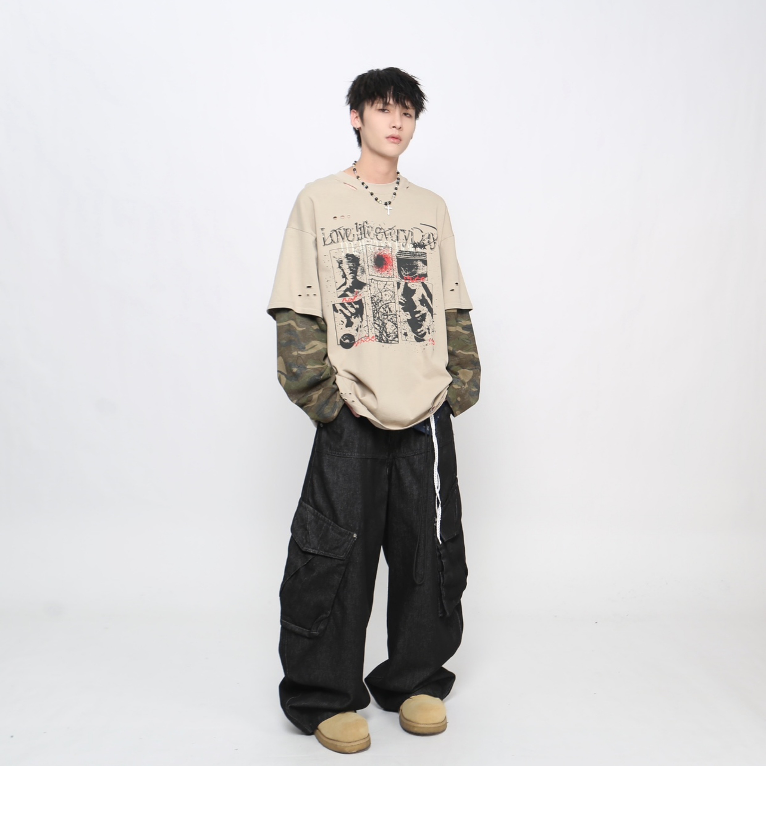 Camouflage Fake Layered Damage Hole Long Sleeve T-Shirt WN21037