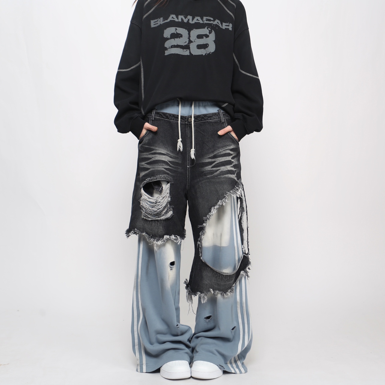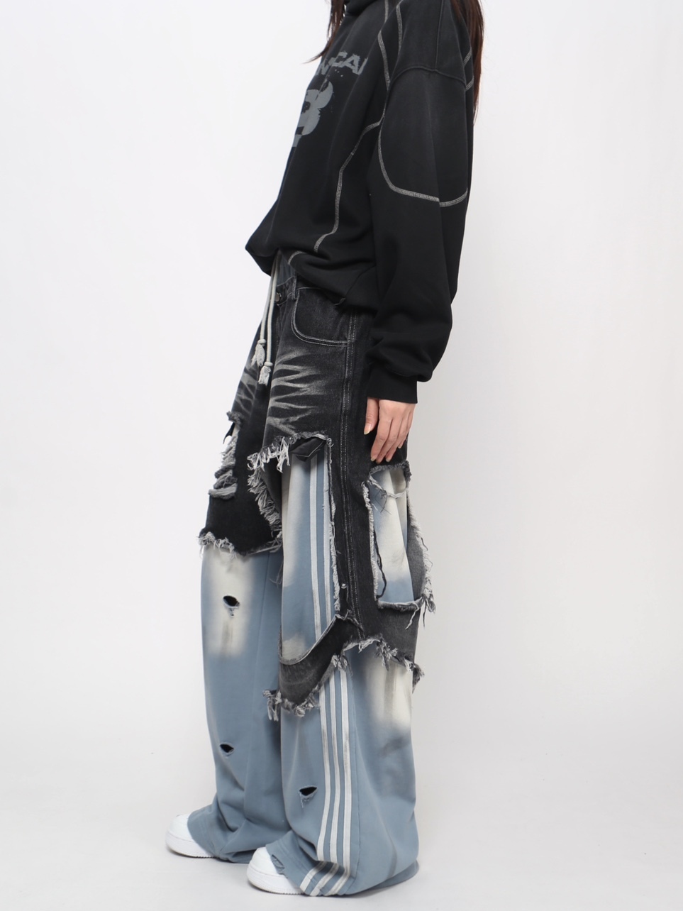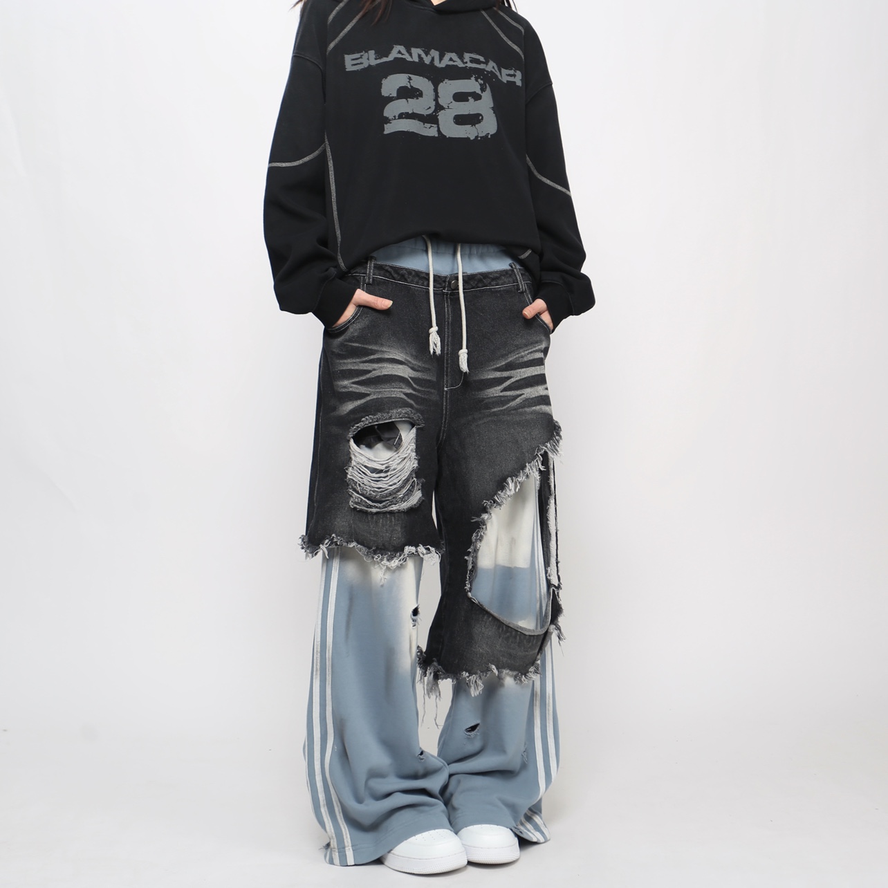 Damage Hole Fake Layered Stripe Sweatpants WN21052