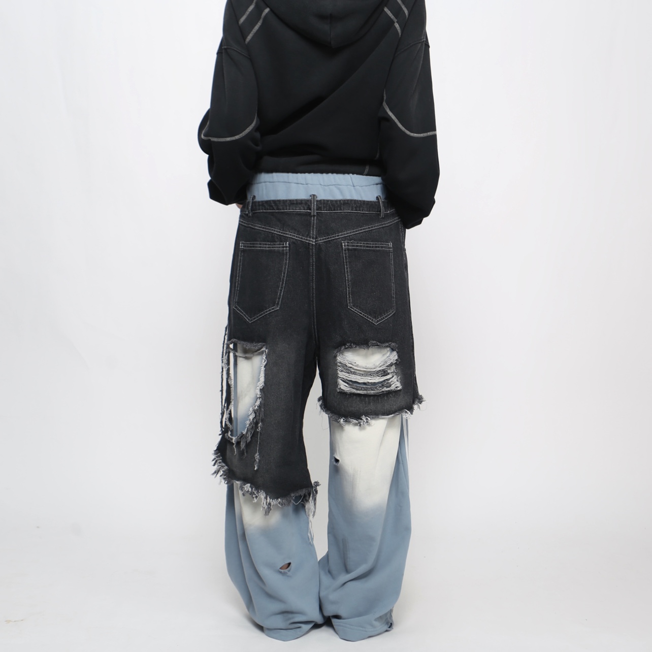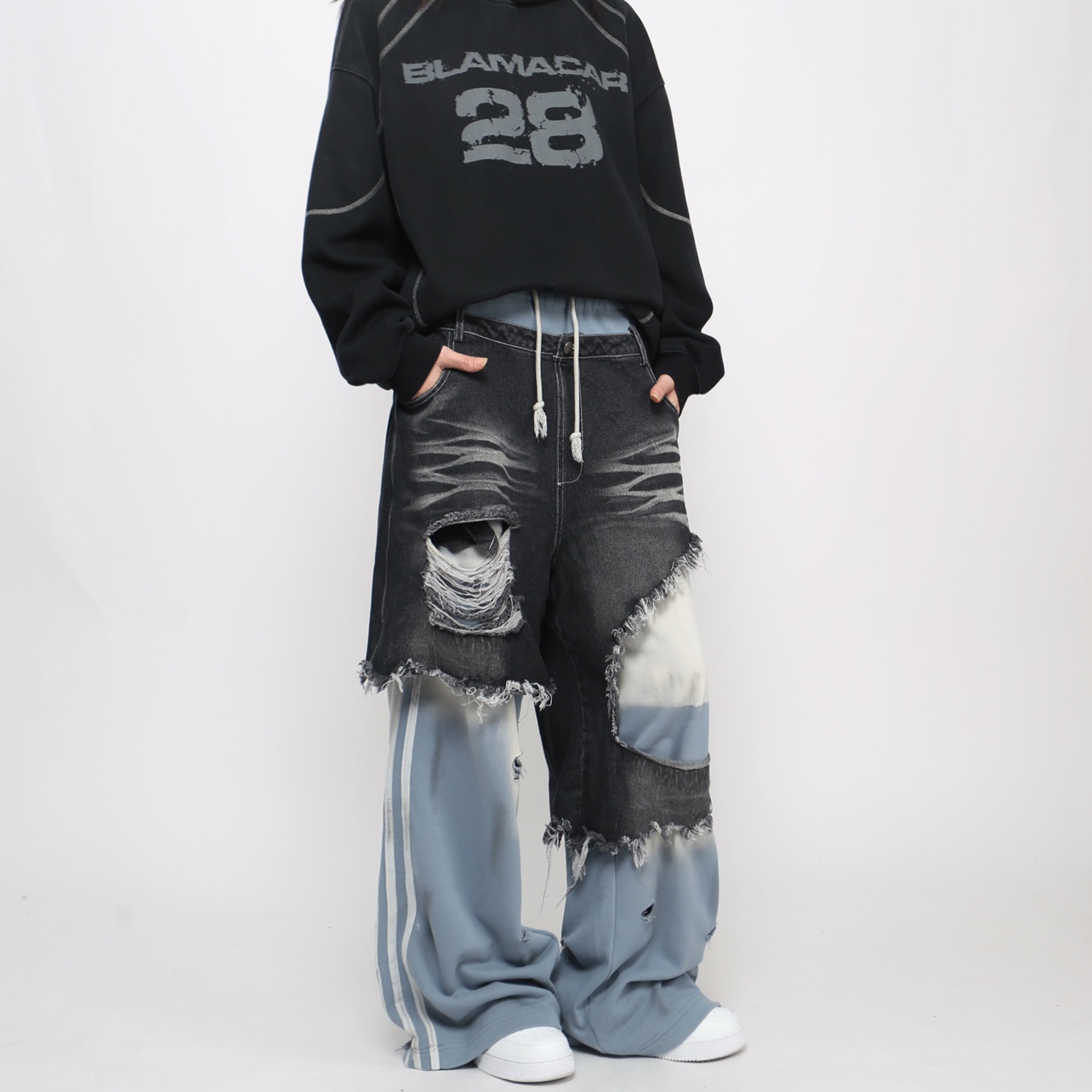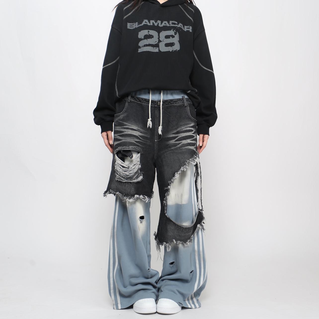 Damage Hole Fake Layered Stripe Sweatpants WN21052