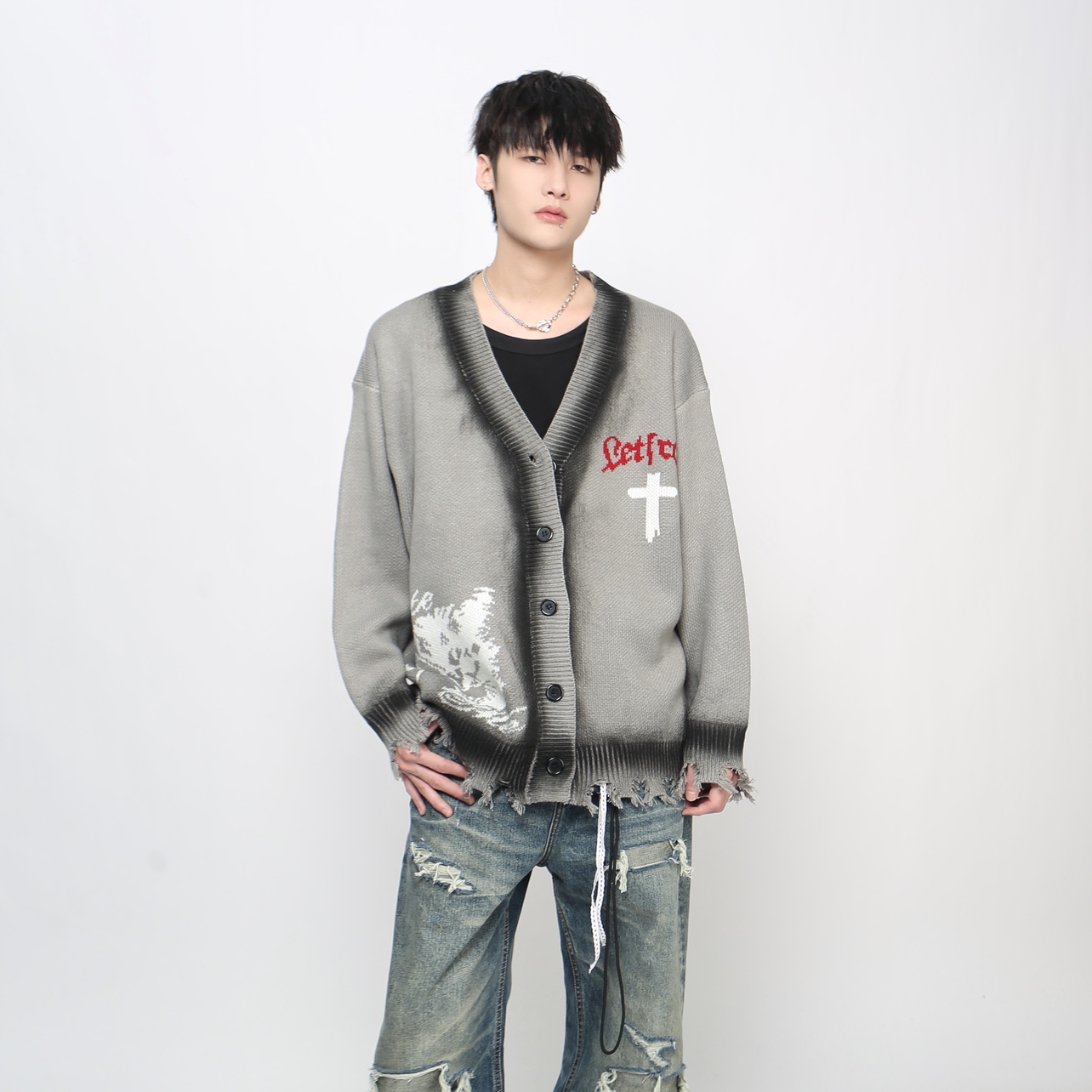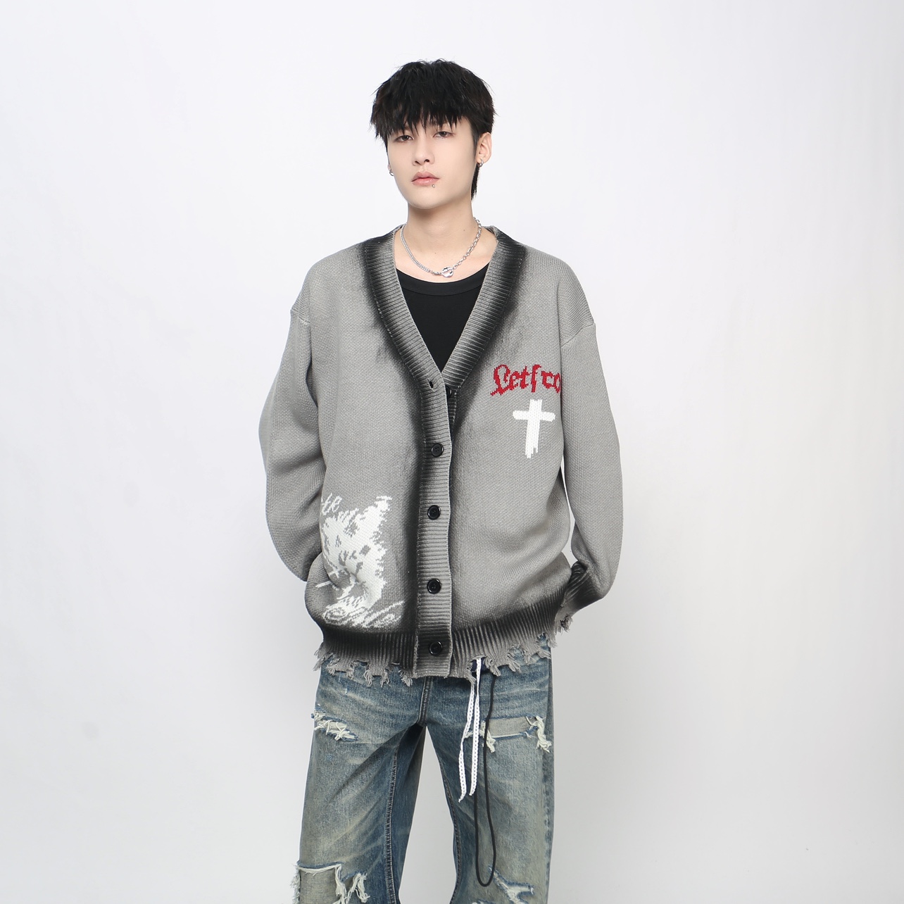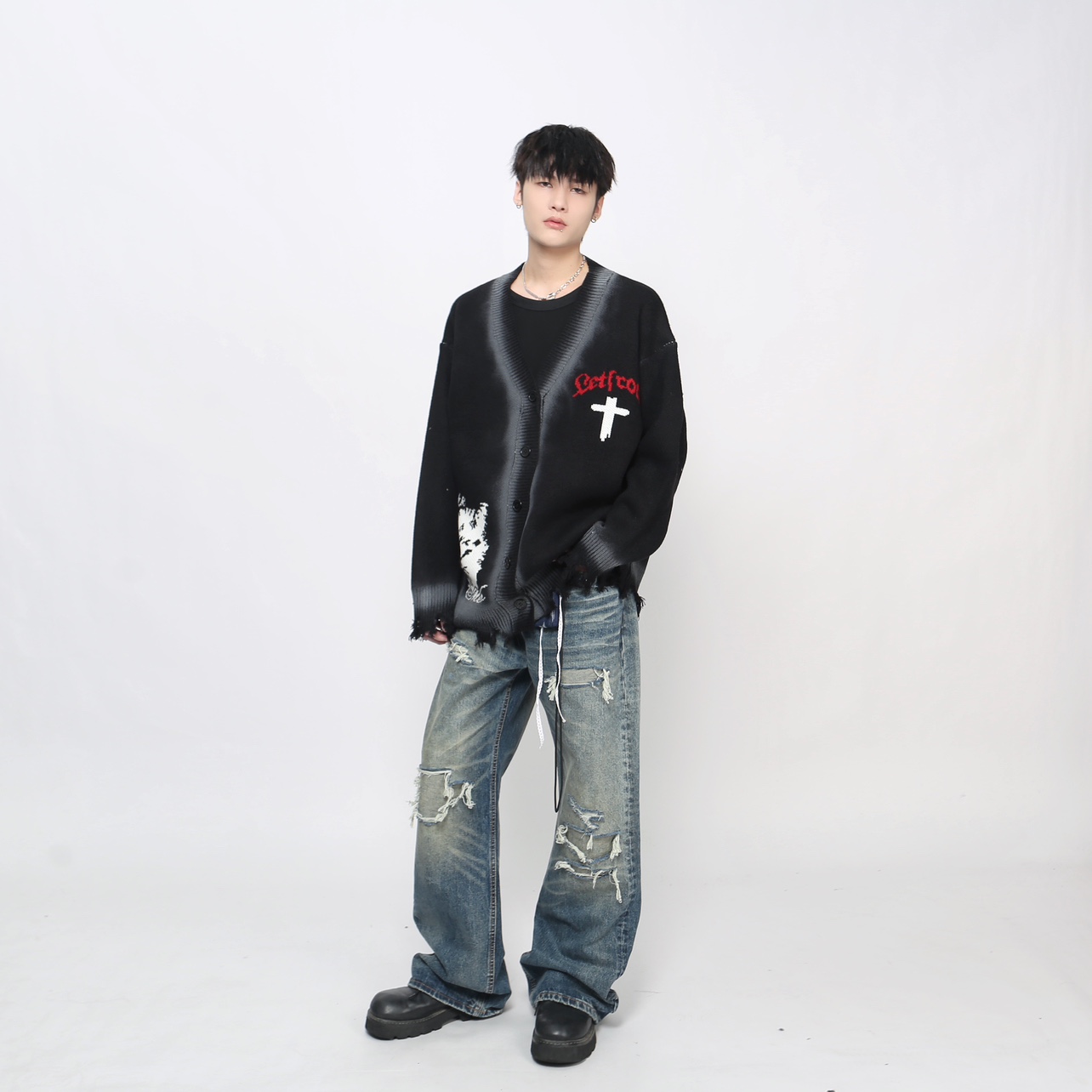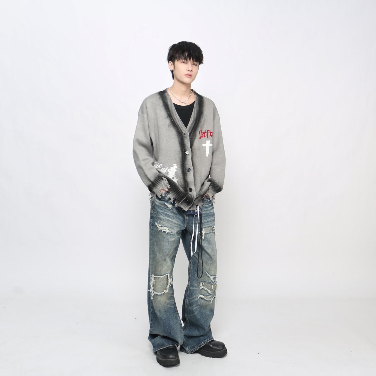Spray Paint Zipper Damage Knit Cardigan WN21054