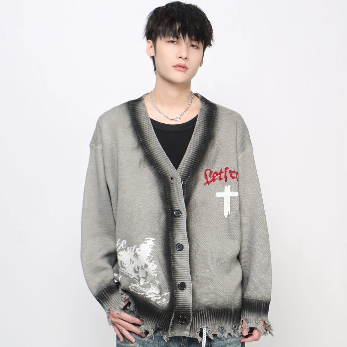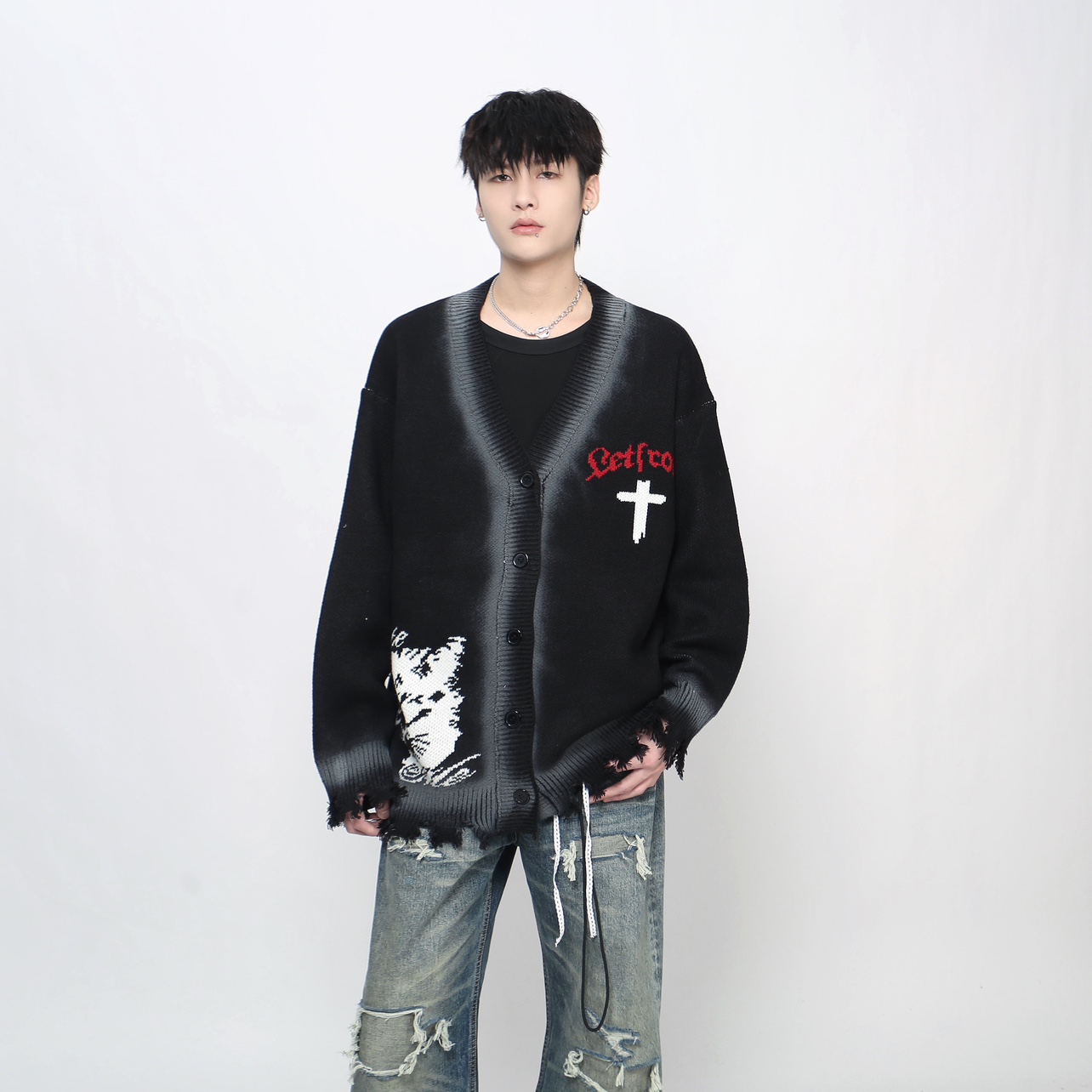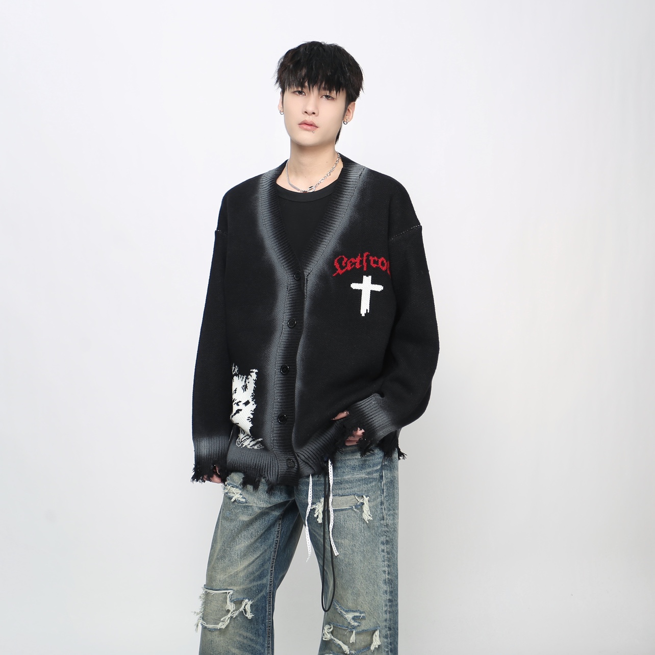 Spray Paint Zipper Damage Knit Cardigan WN21054