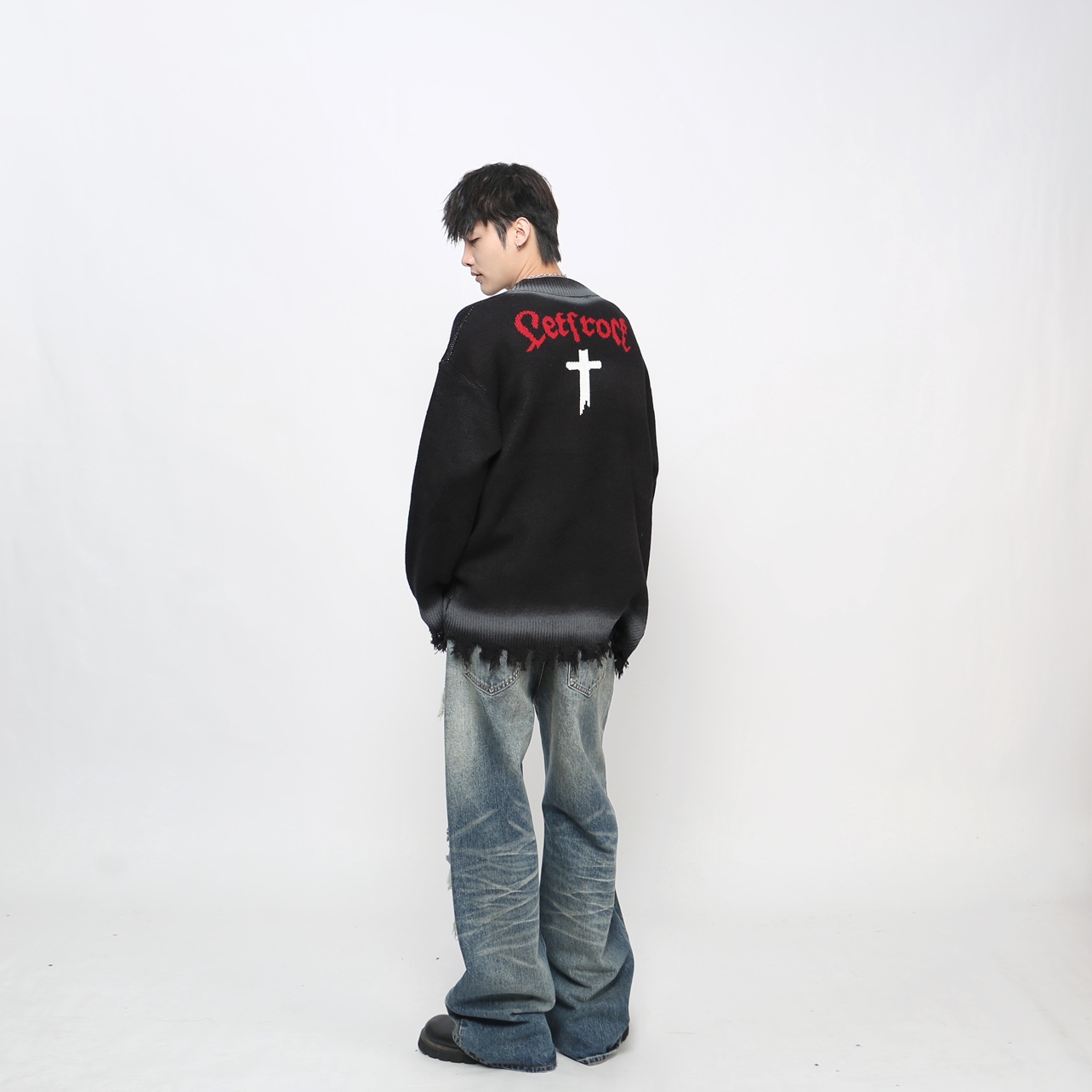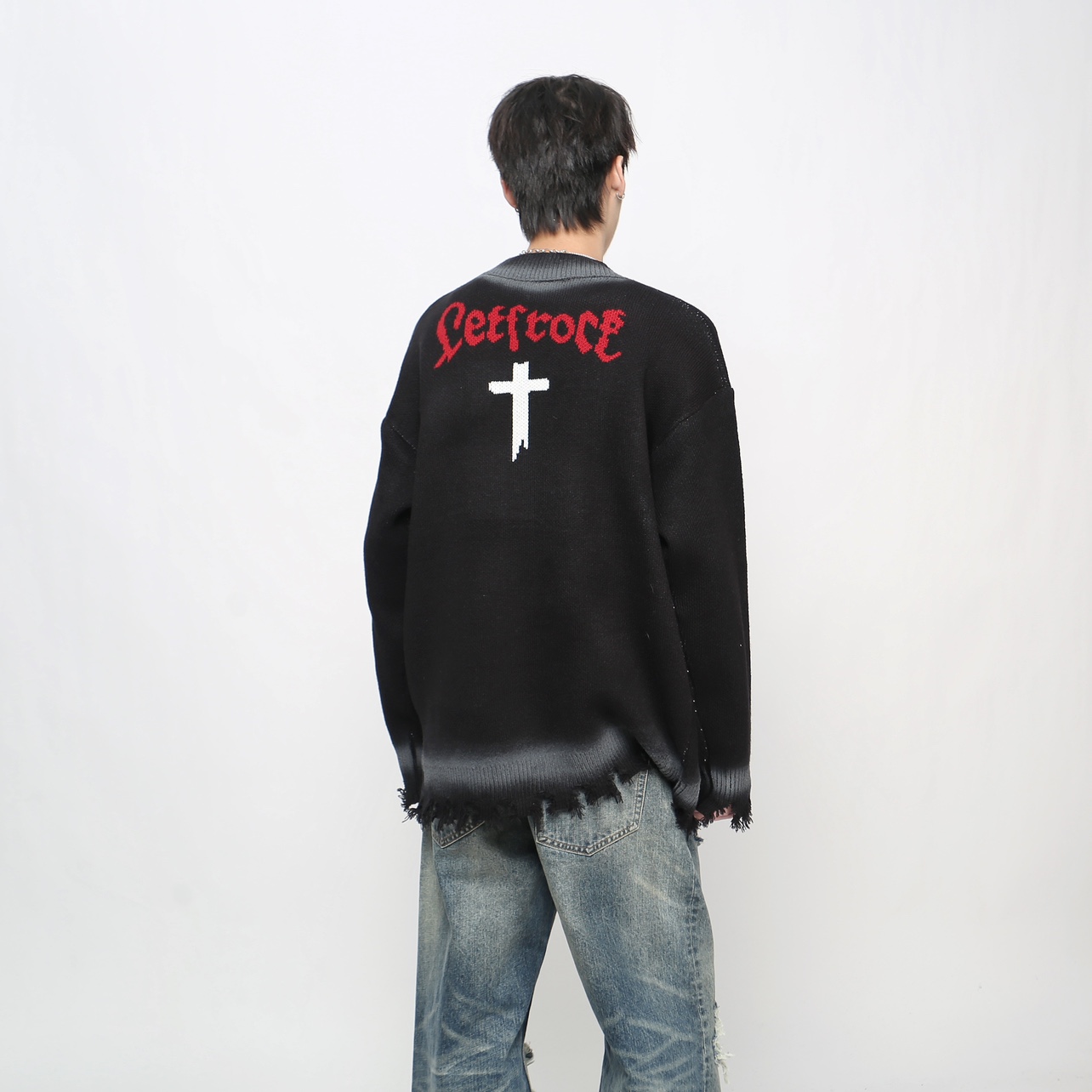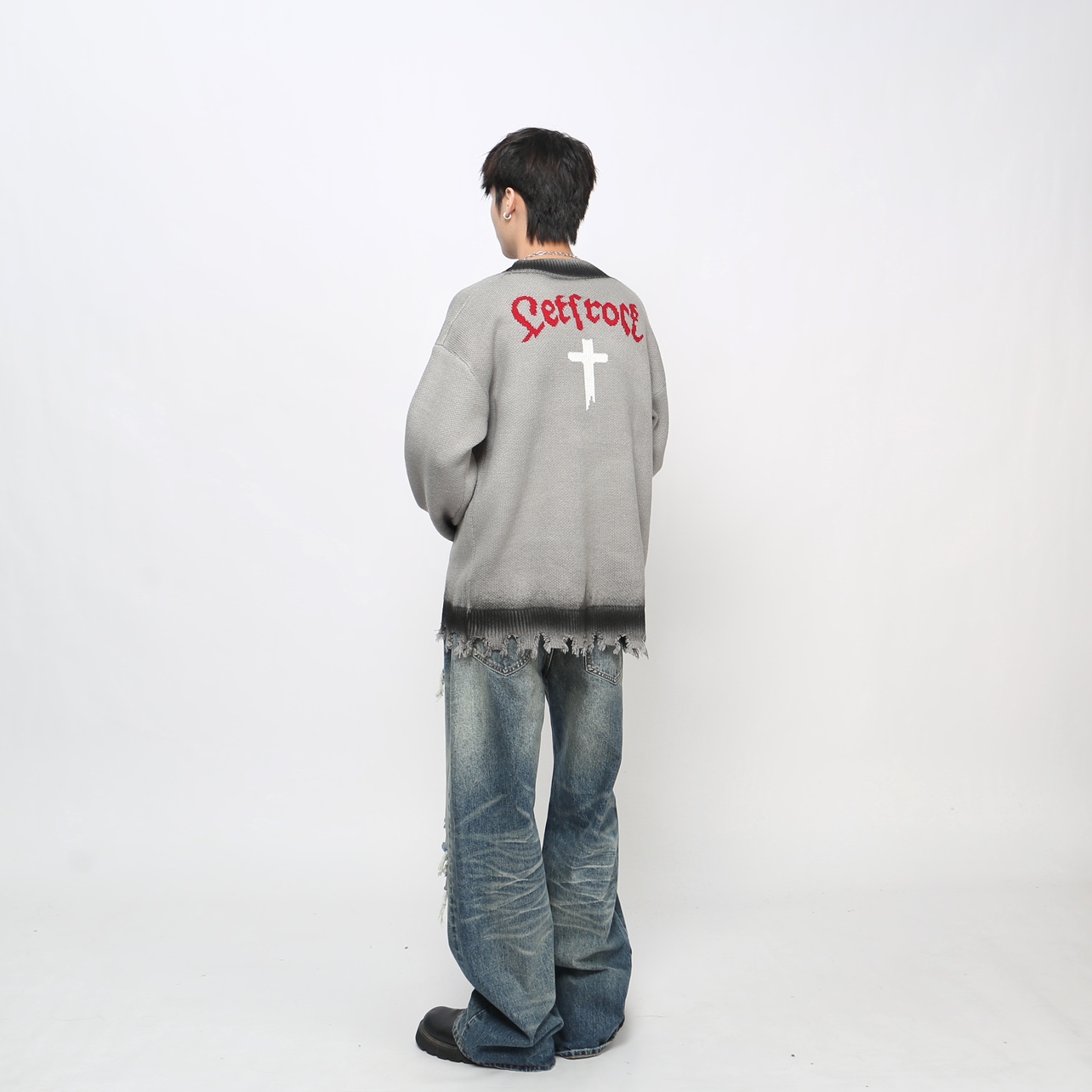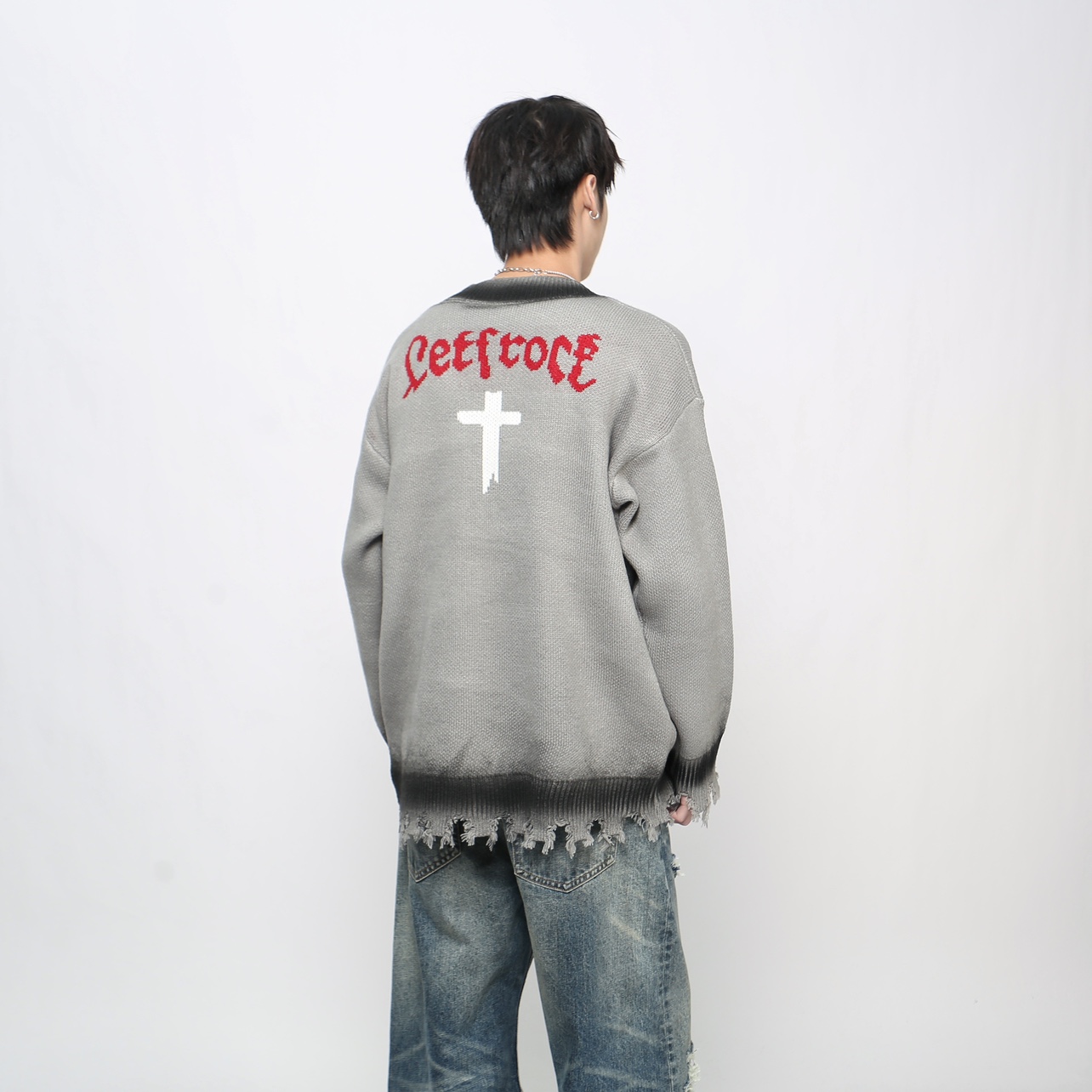 Spray Paint Zipper Damage Knit Cardigan WN21054
