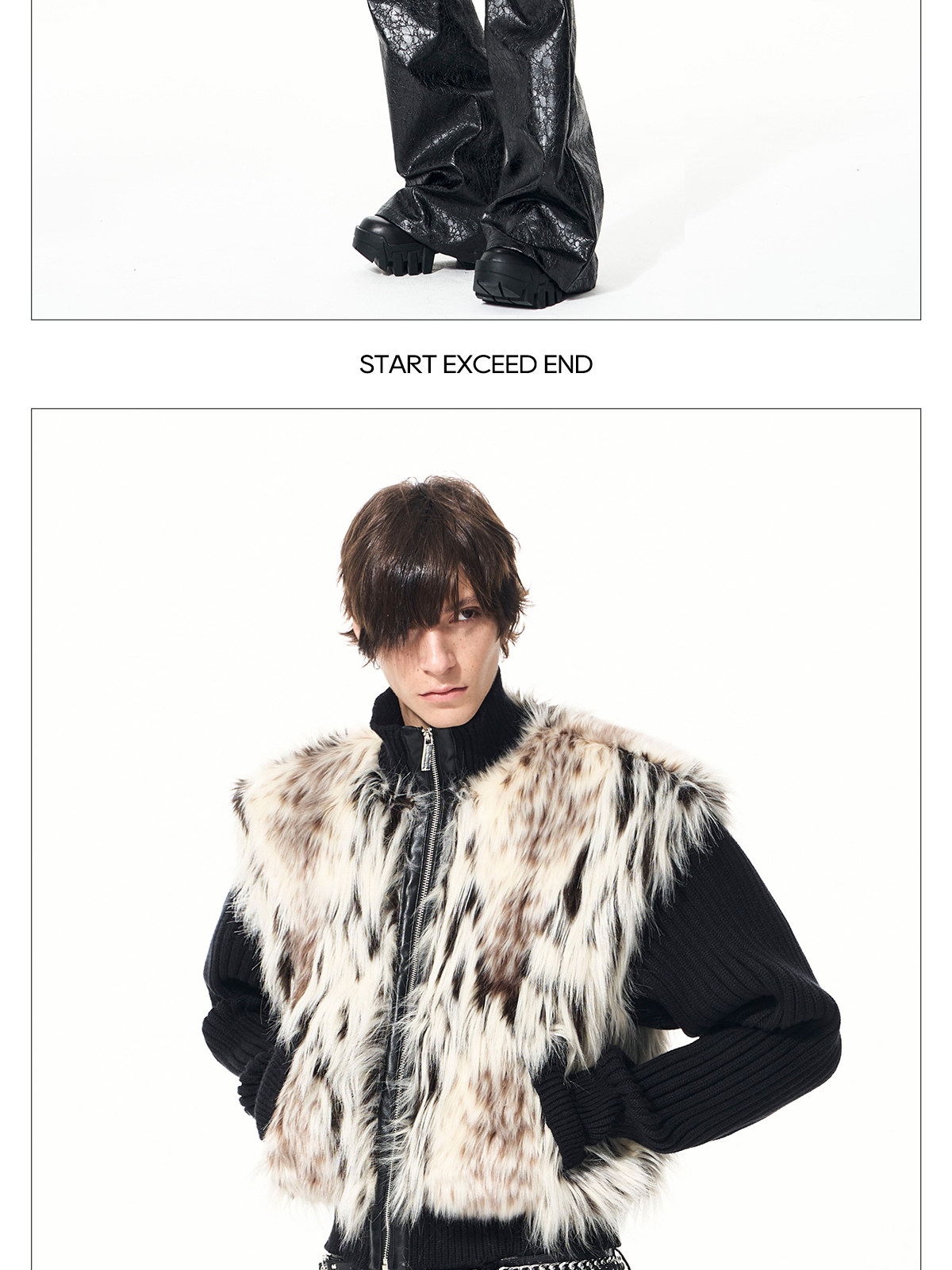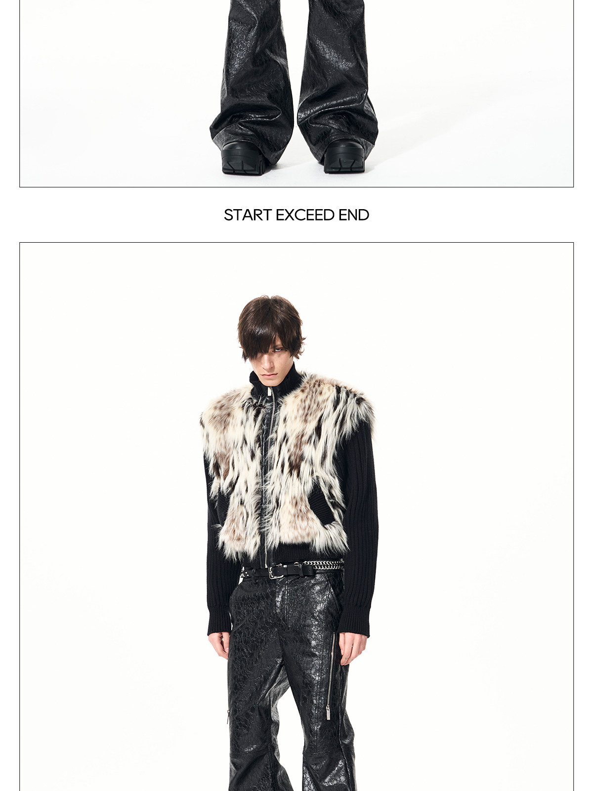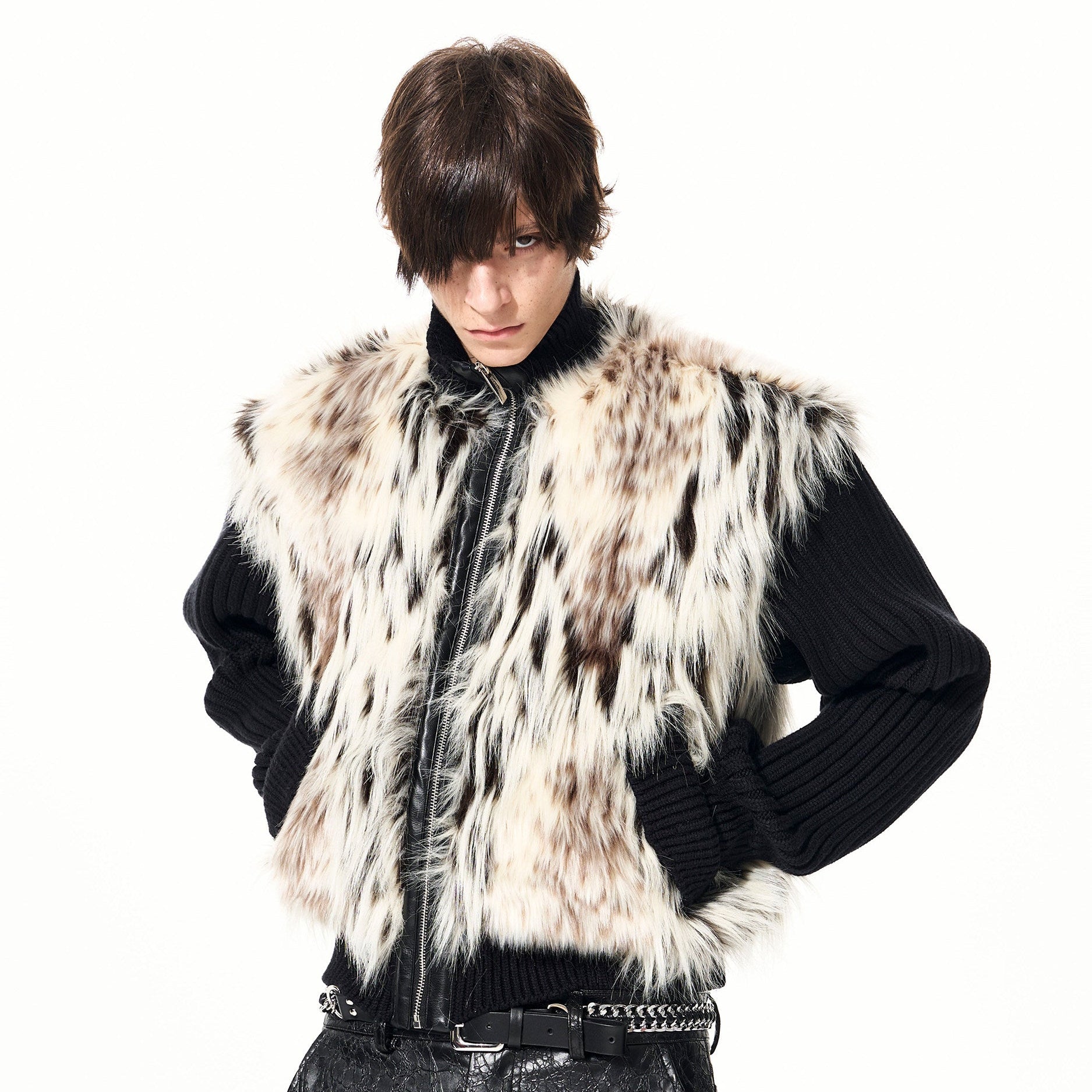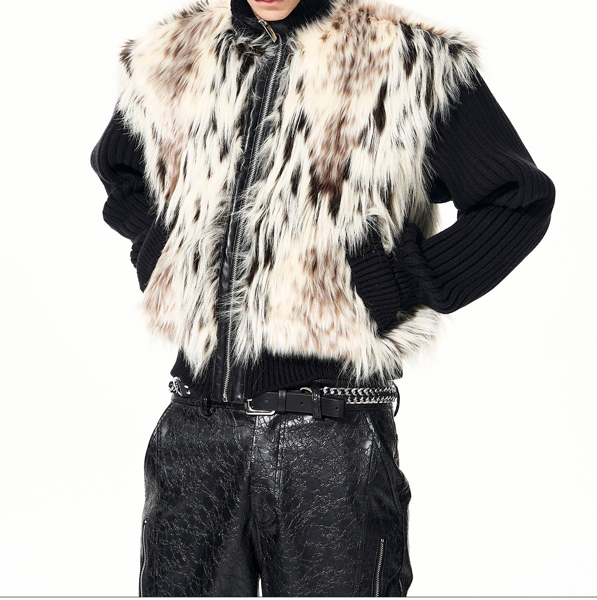 Fake Fur Stand Neck Zipper Knit Cardigan WN22696