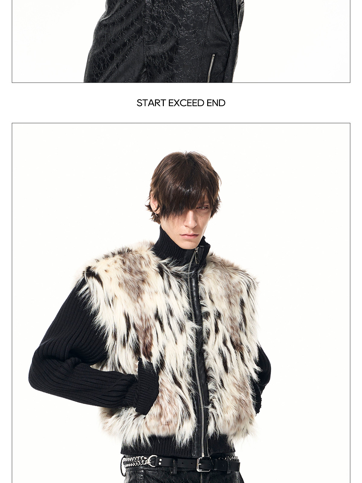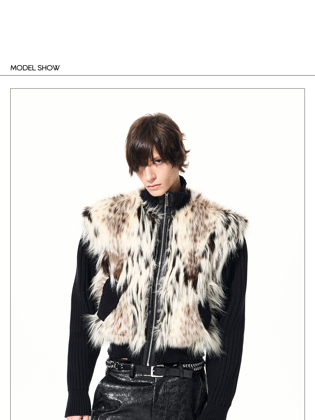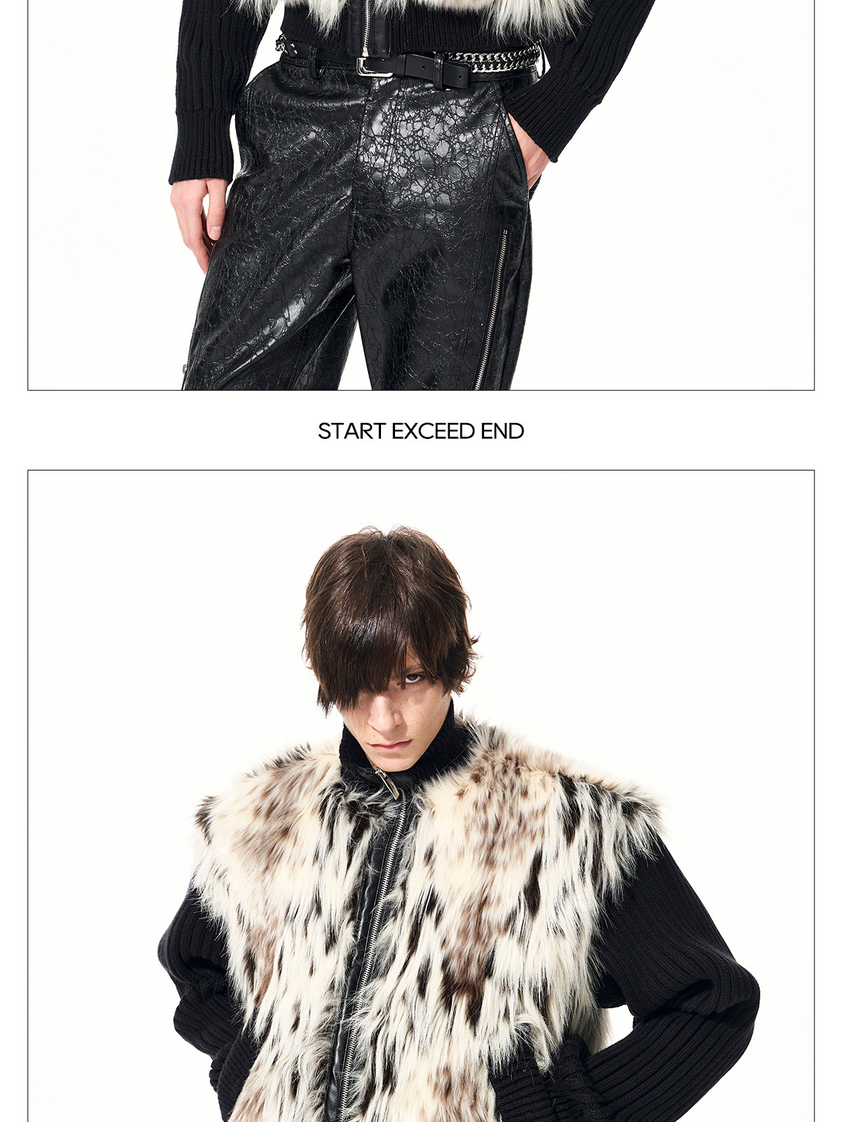 Fake Fur Stand Neck Zipper Knit Cardigan WN22696