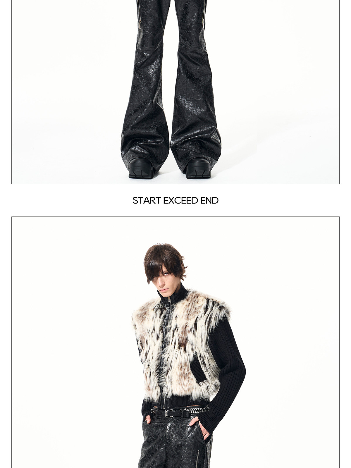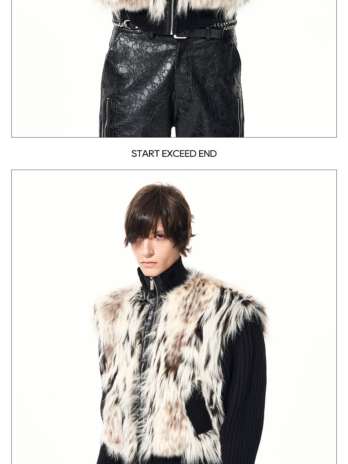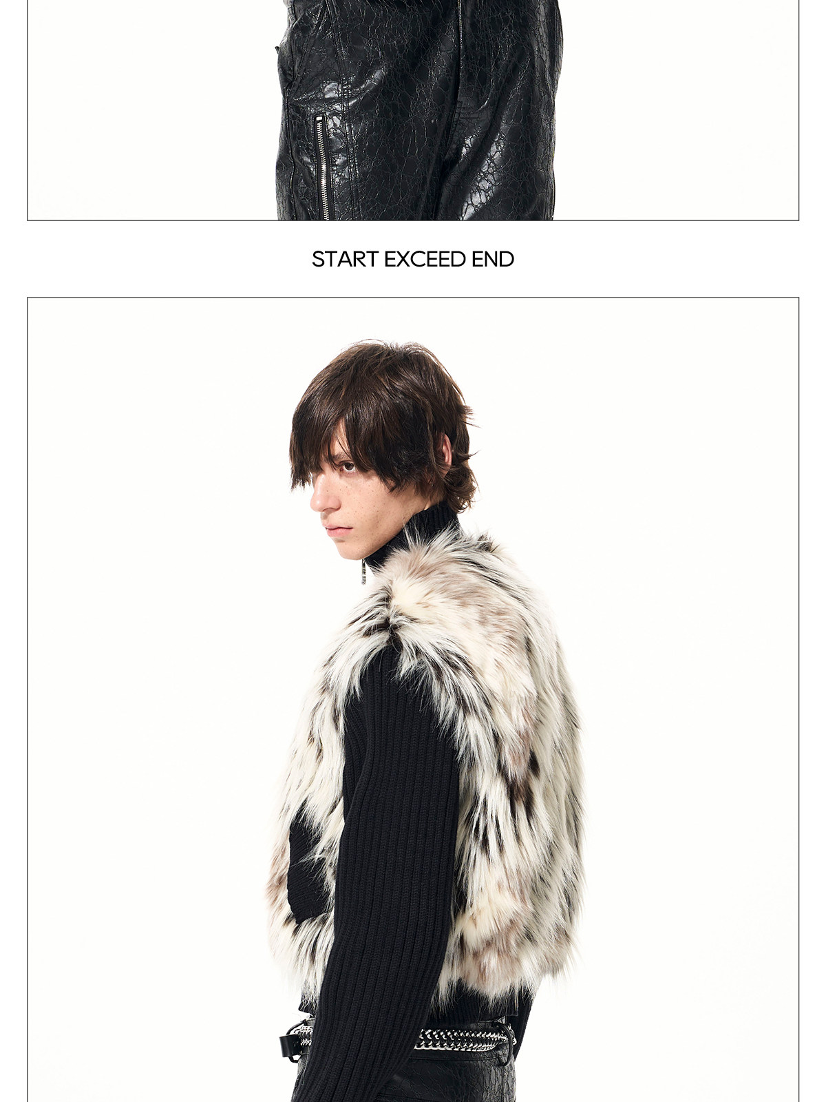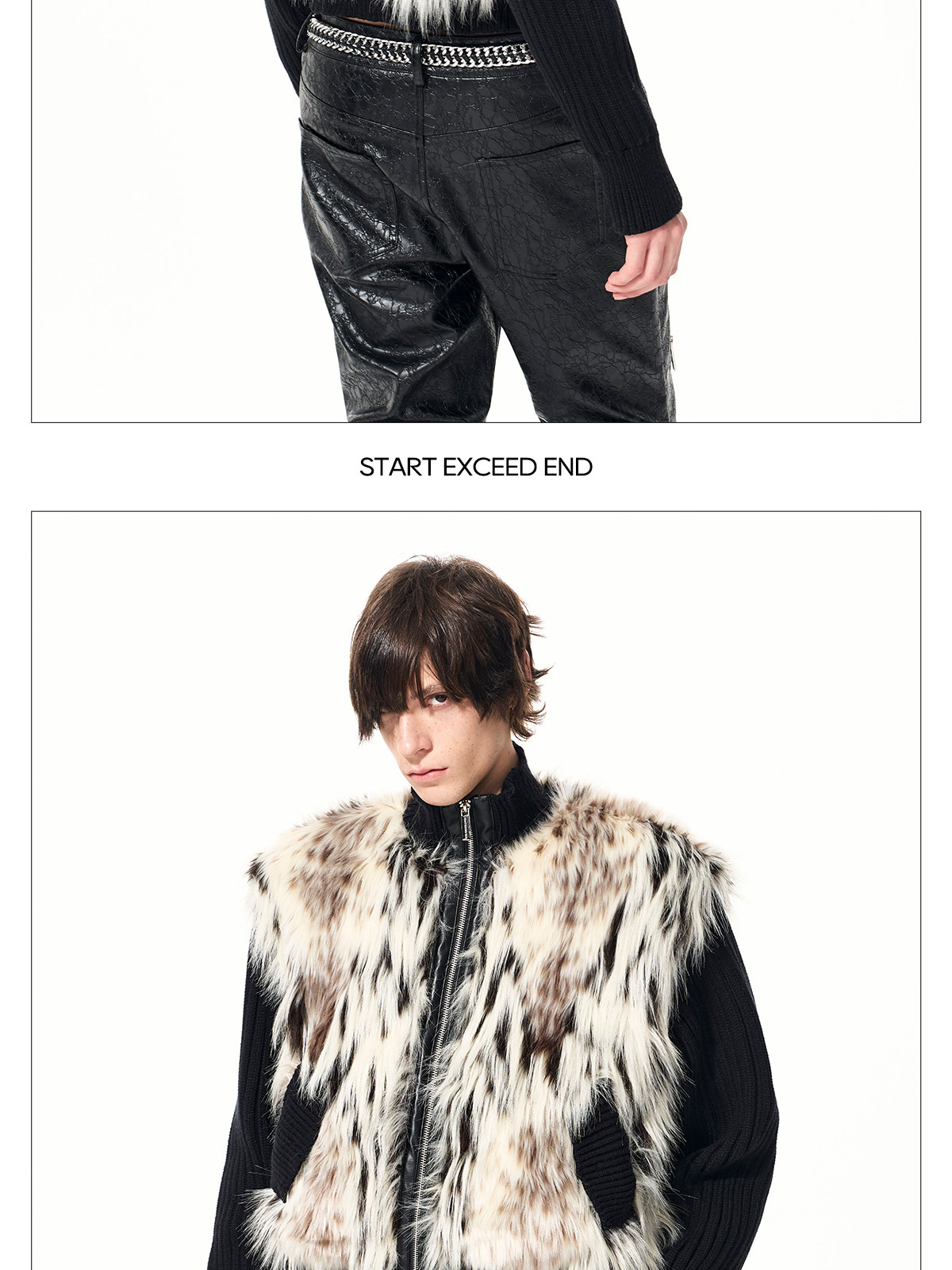 Fake Fur Stand Neck Zipper Knit Cardigan WN22696