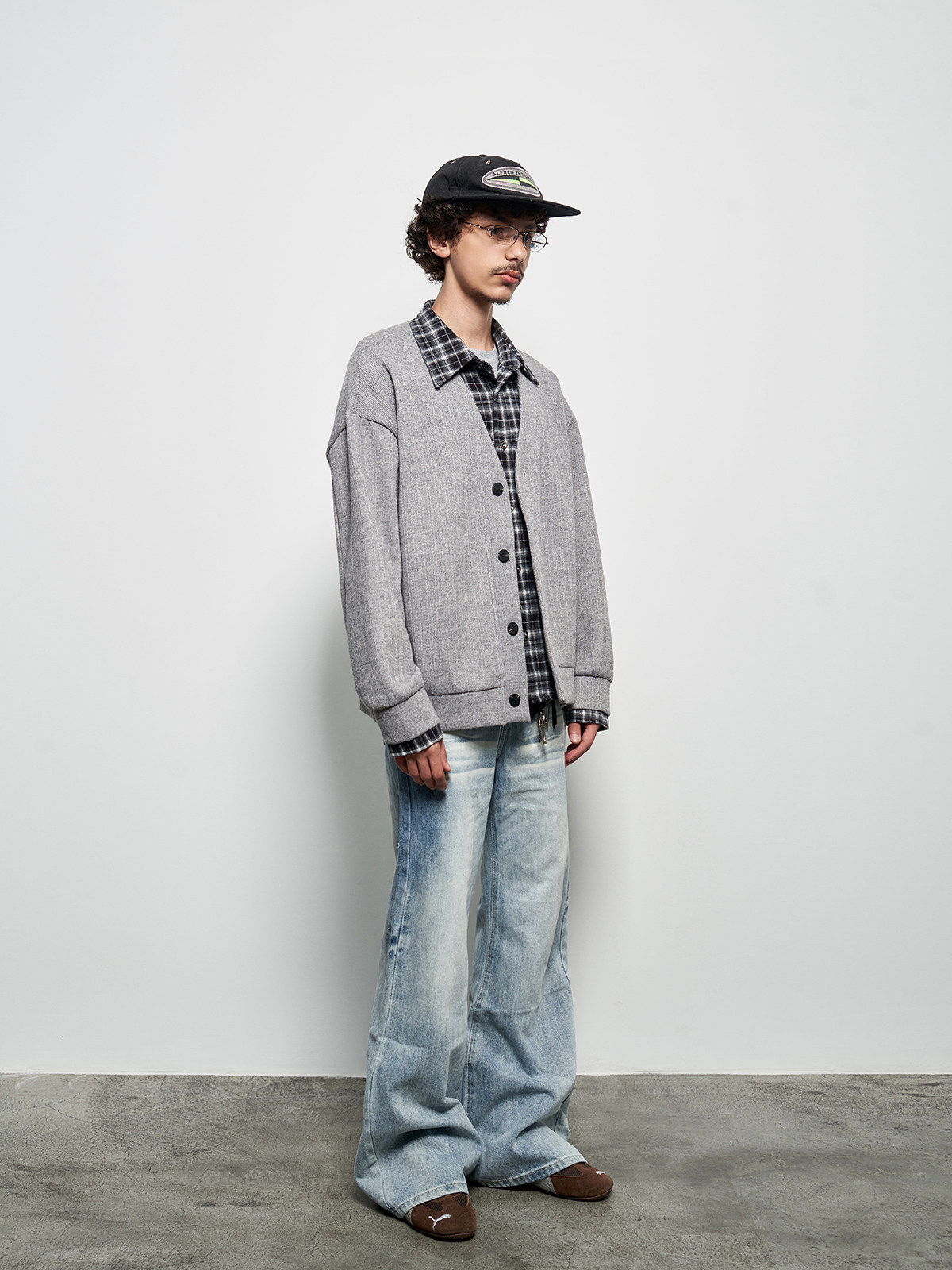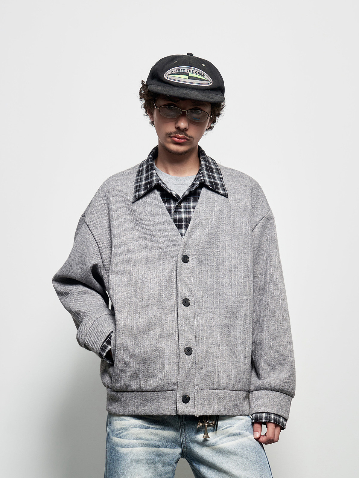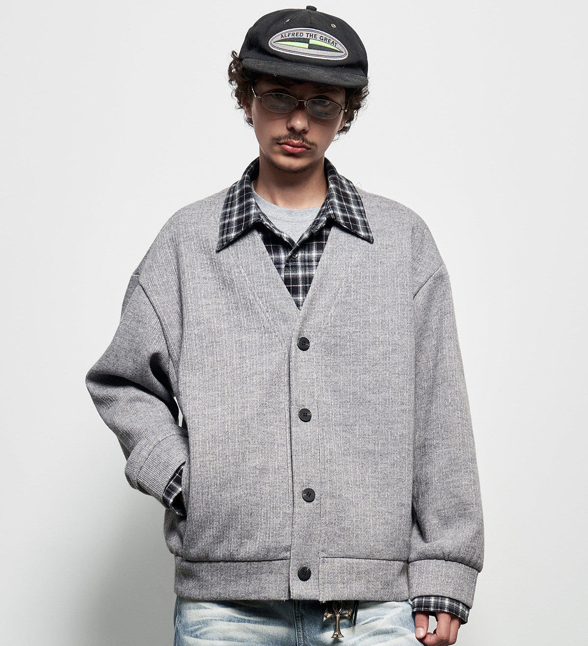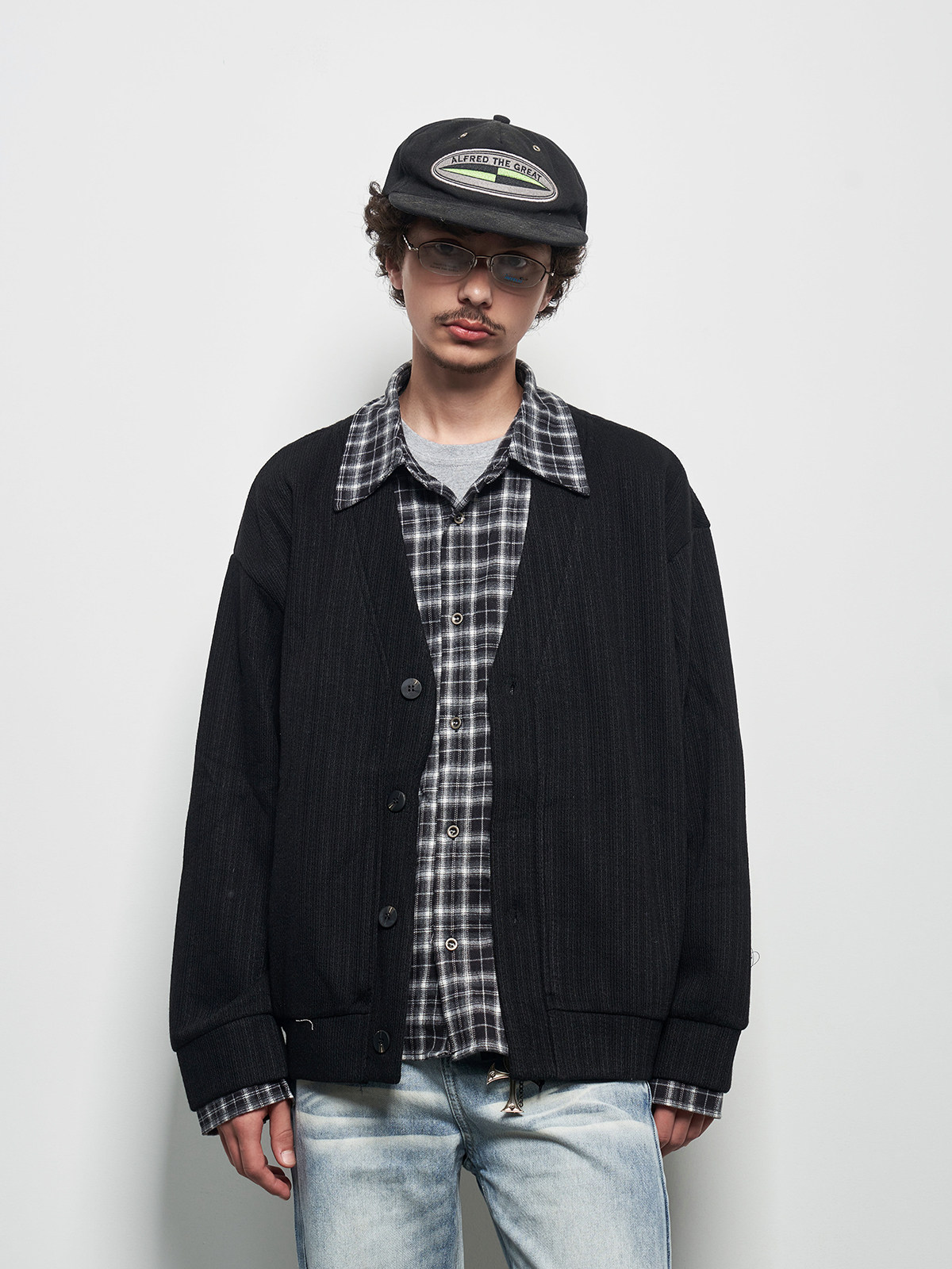 Fake Layered Plaid Patchwork Oversize Knit Cardigan WN22927