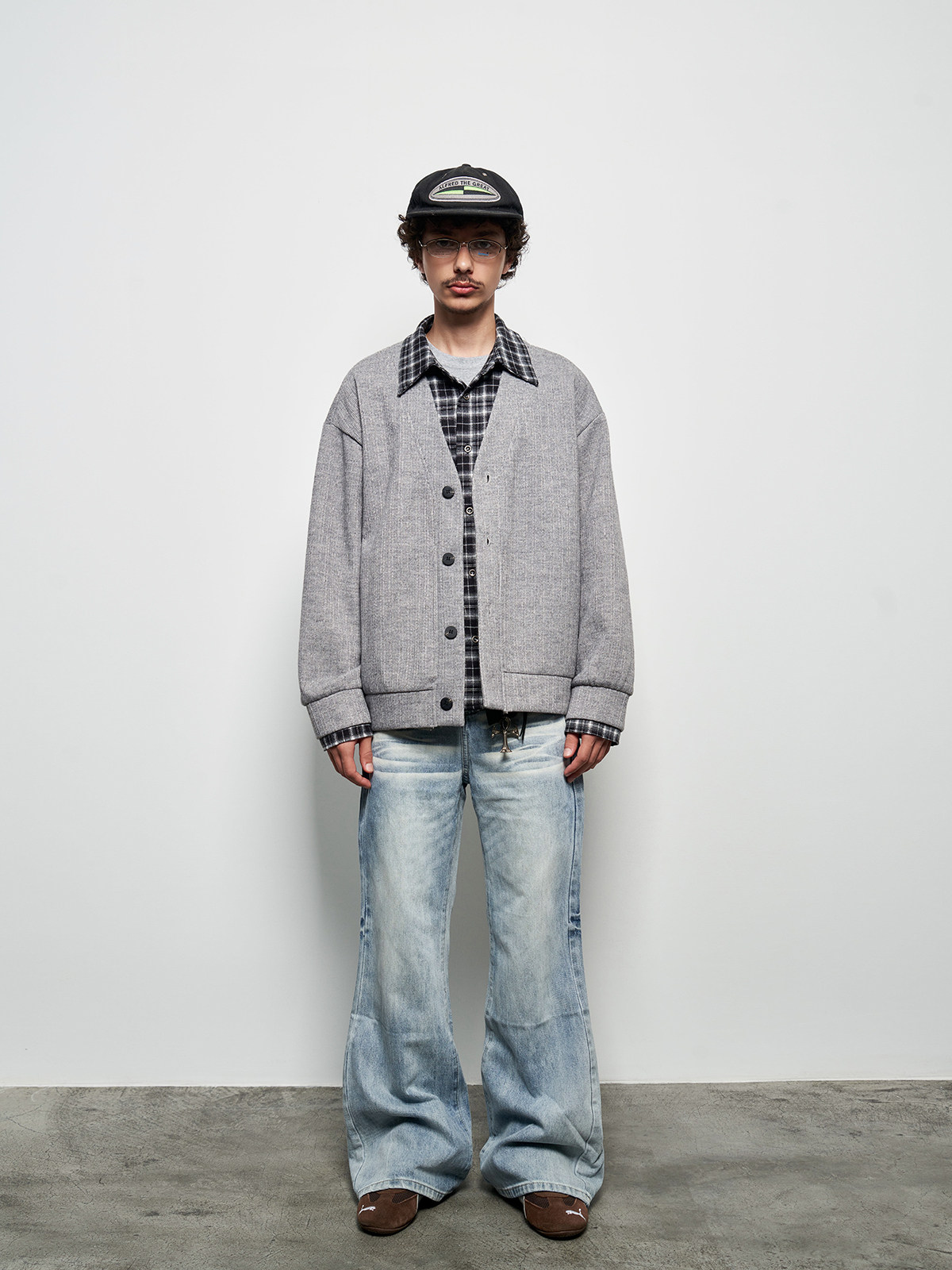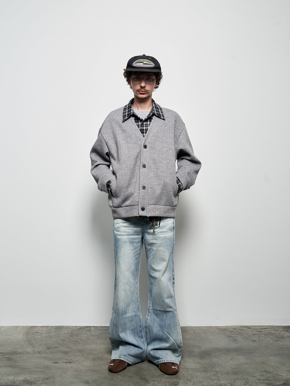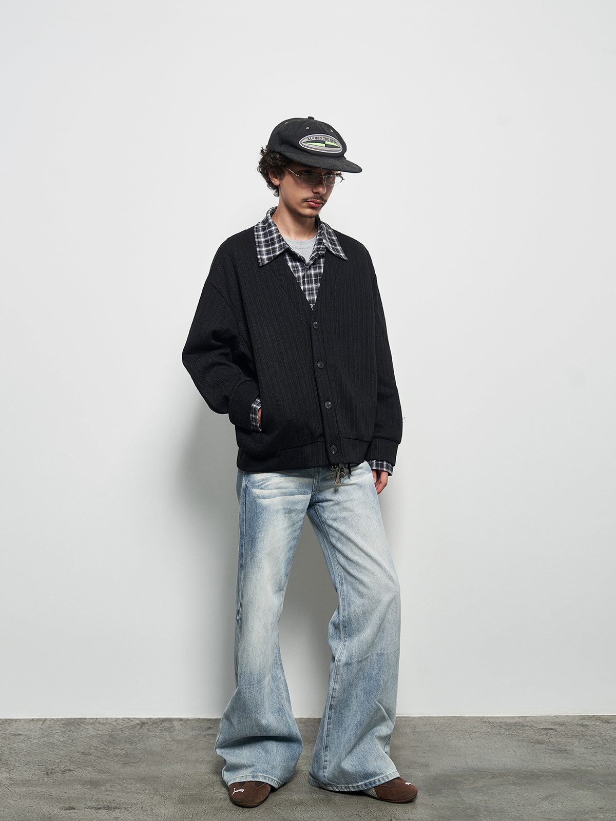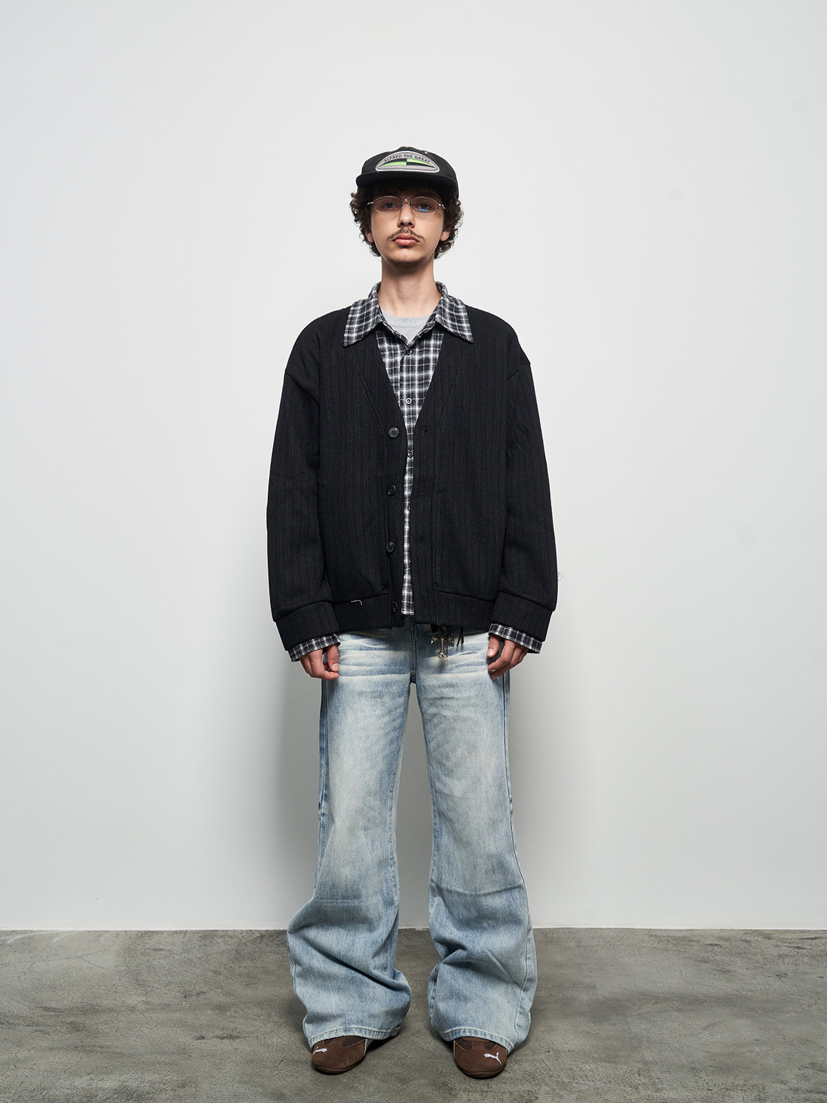 Fake Layered Plaid Patchwork Oversize Knit Cardigan WN22927