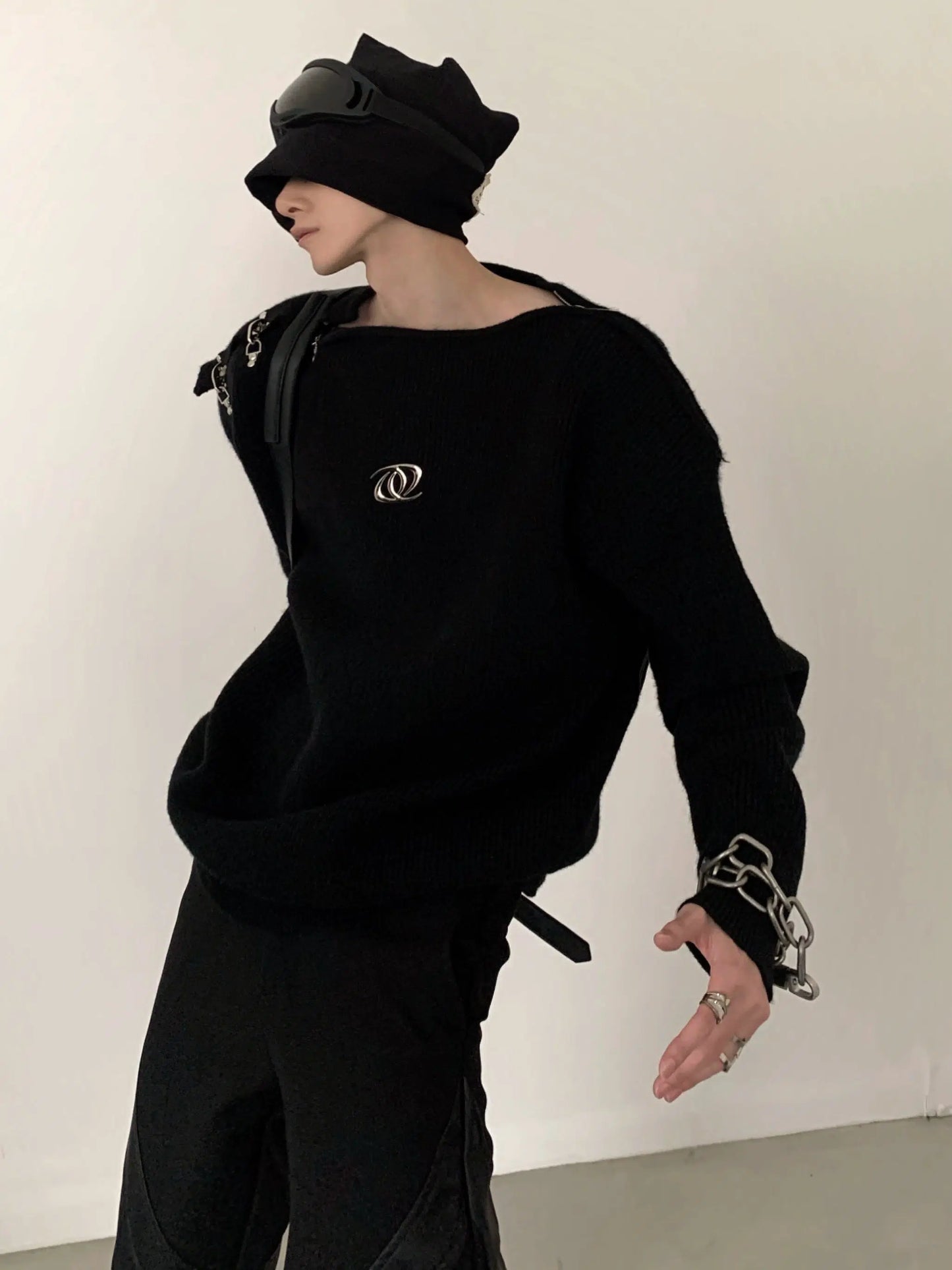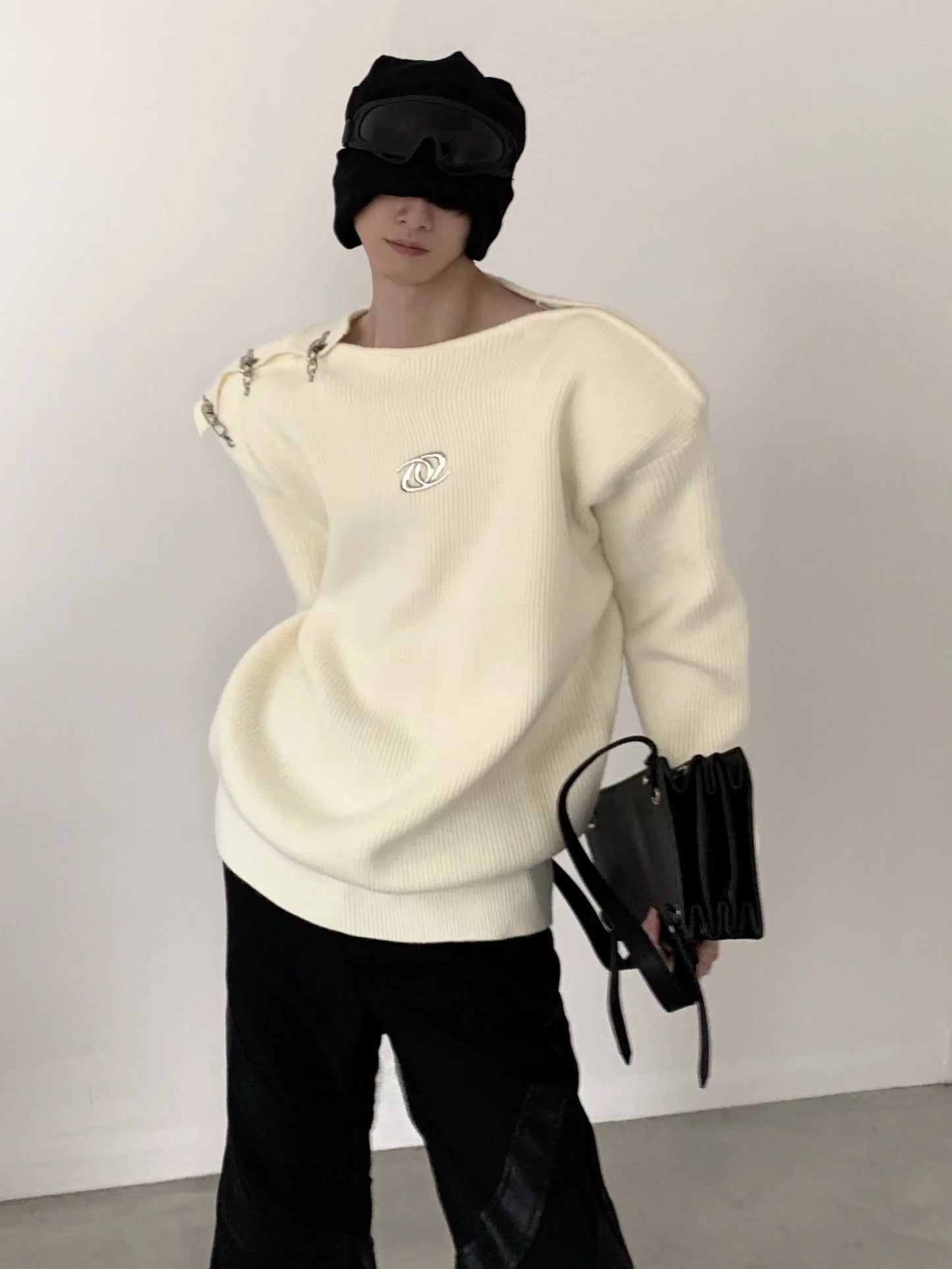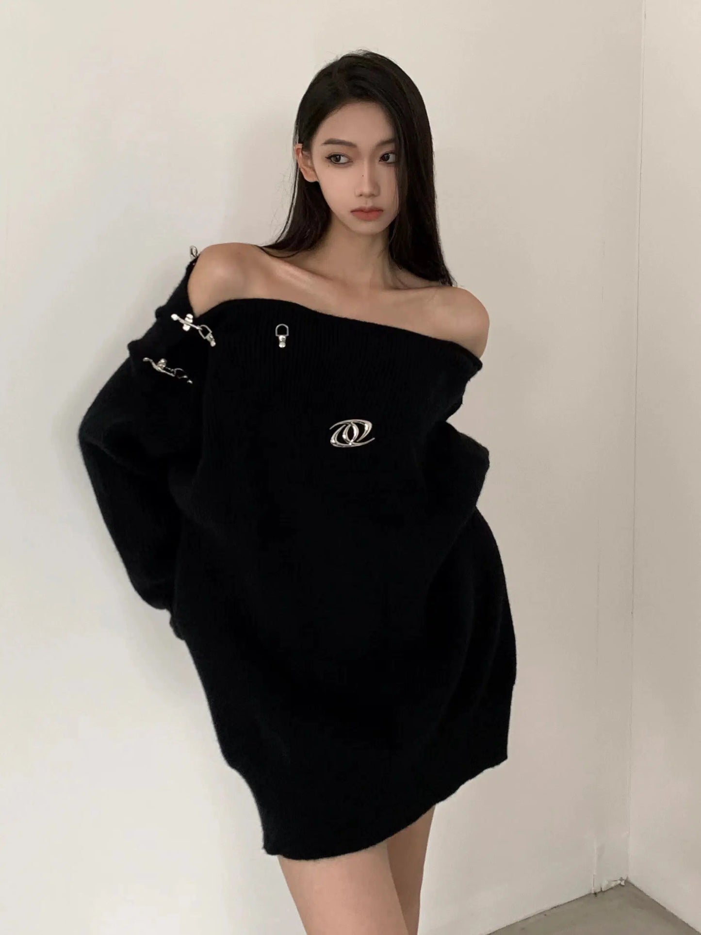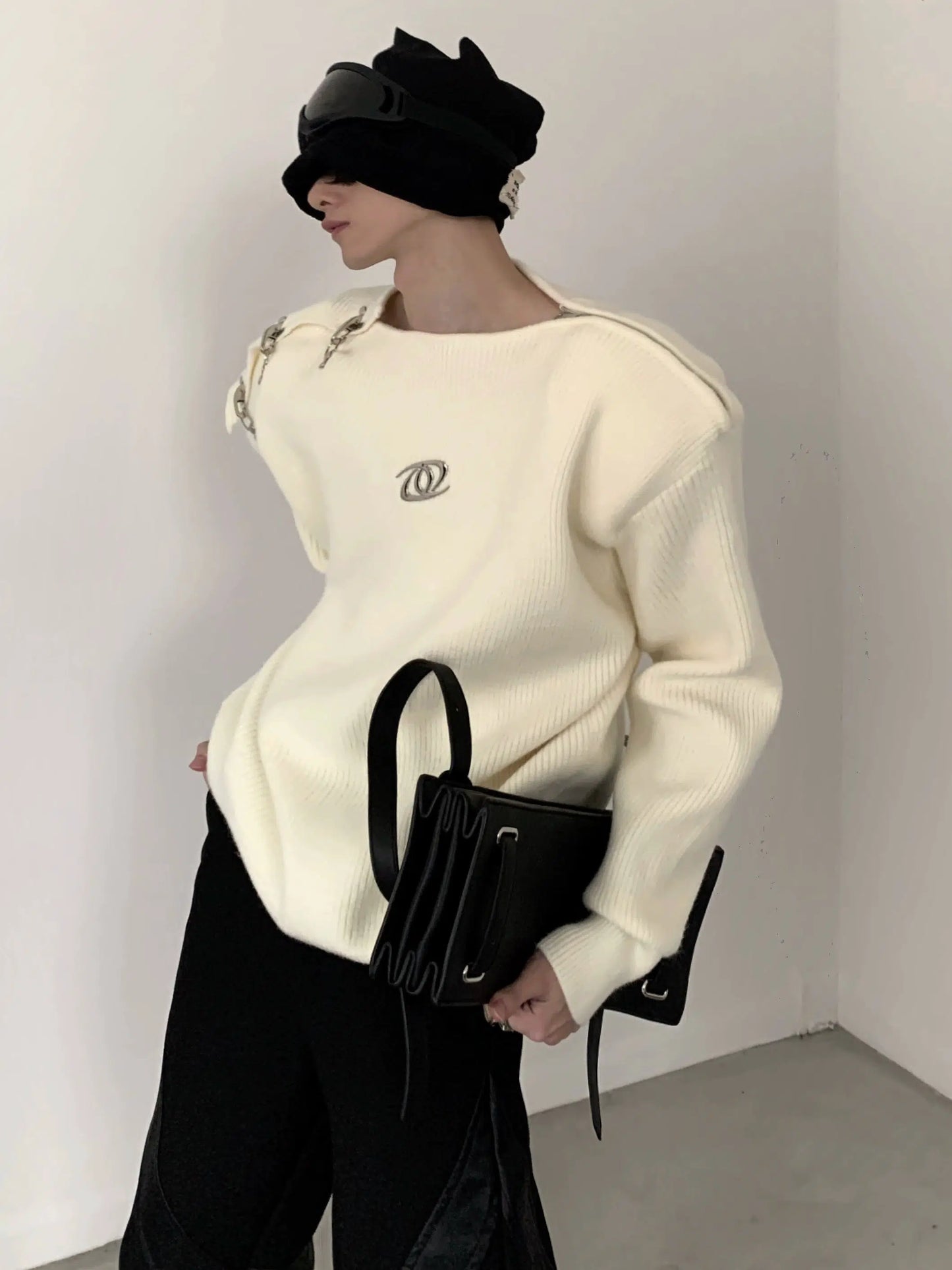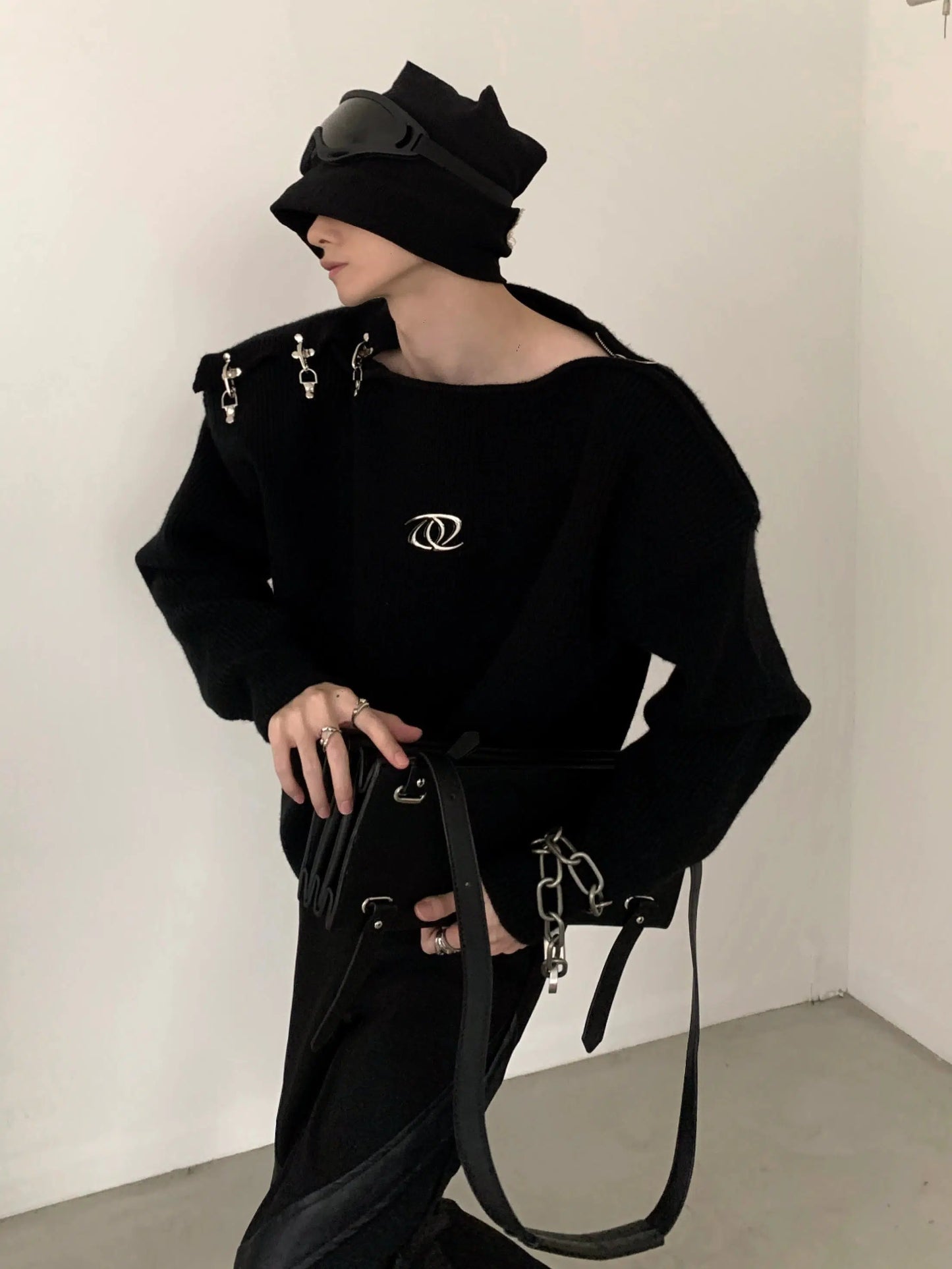 Oversize Metal Buckle Knit Sweater WN2674